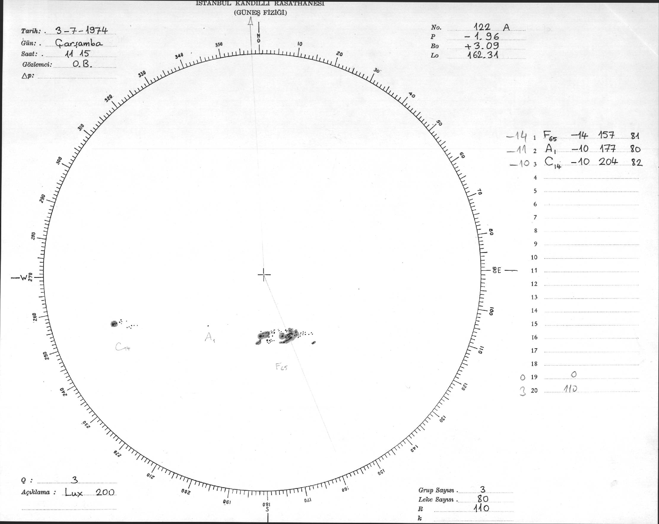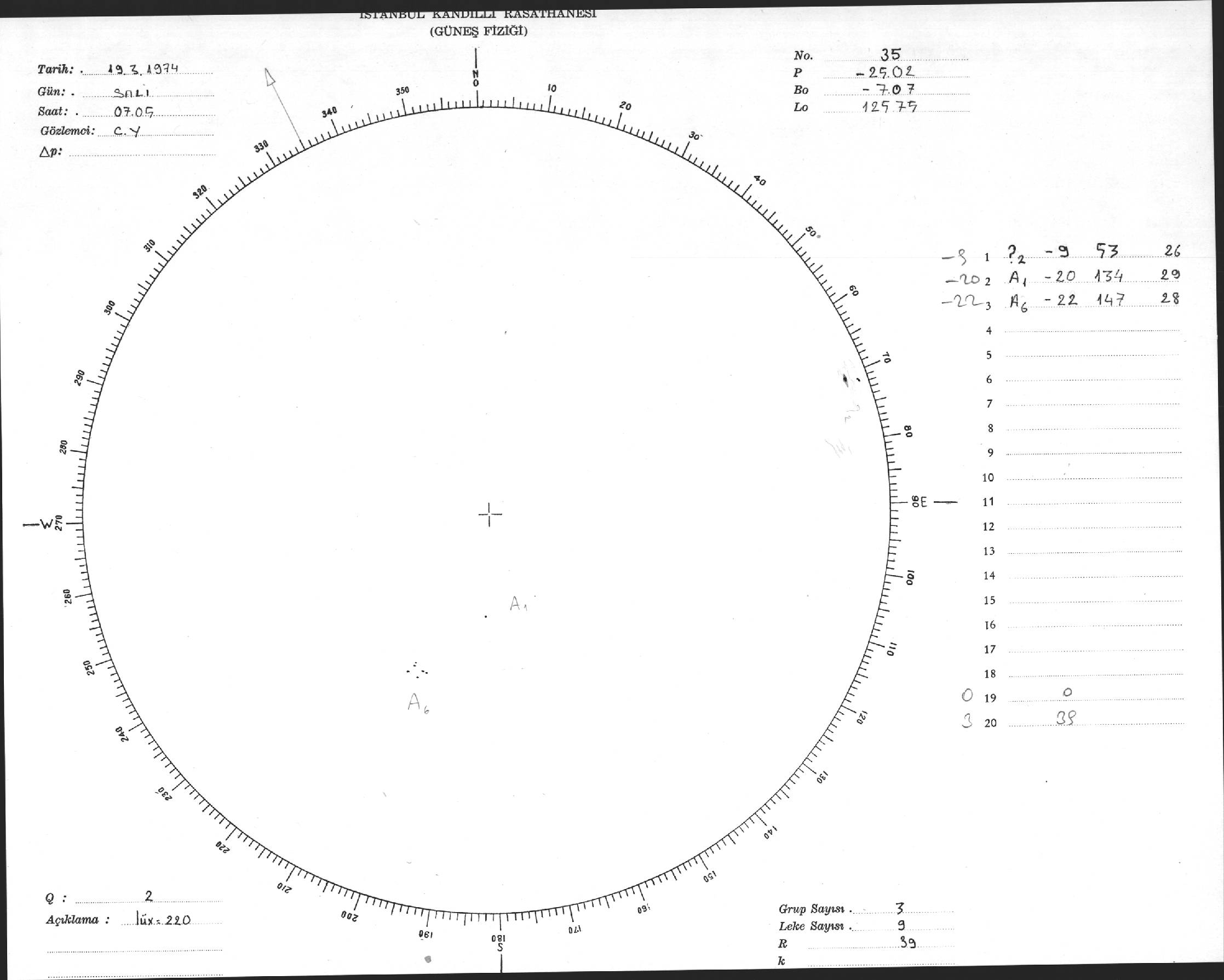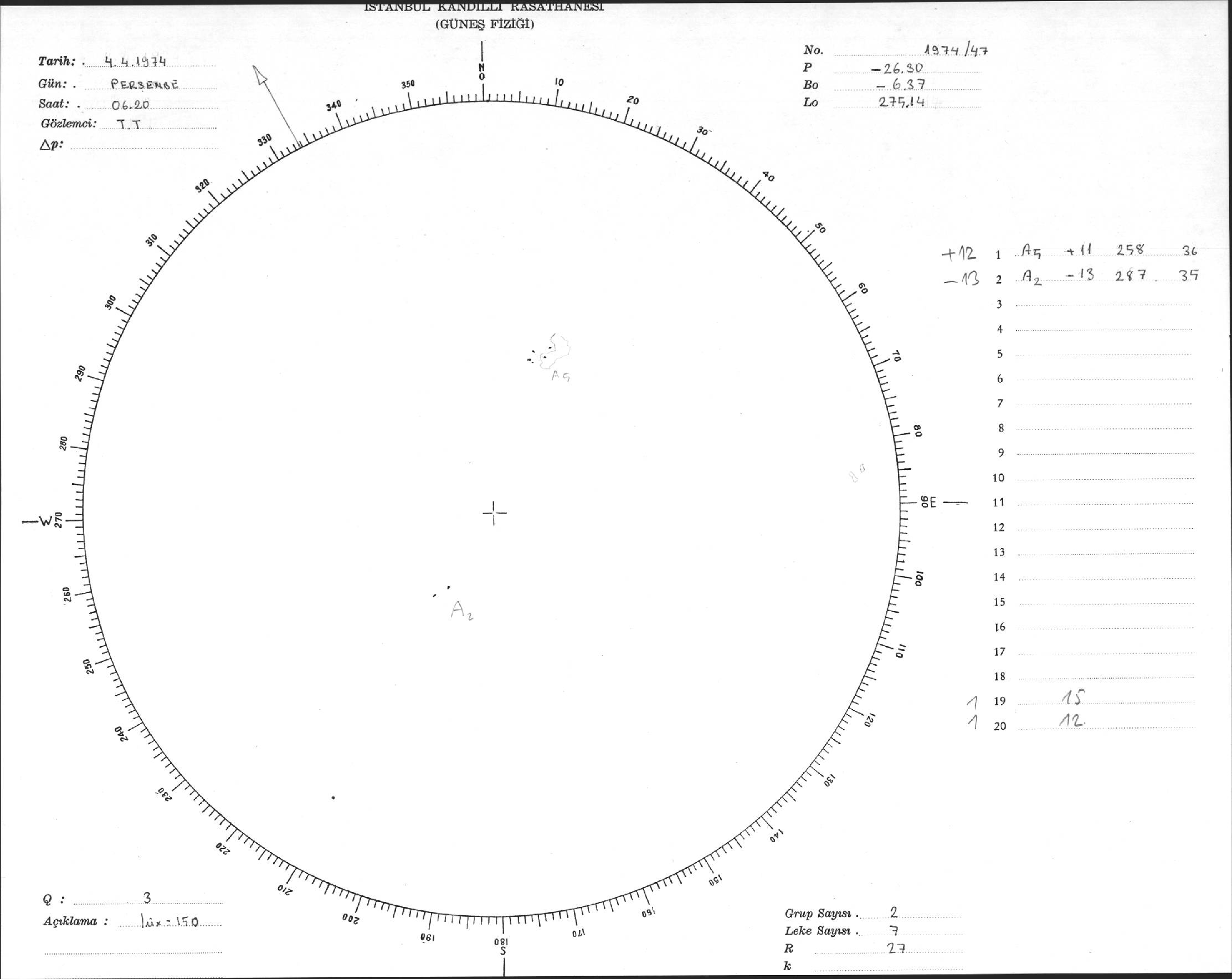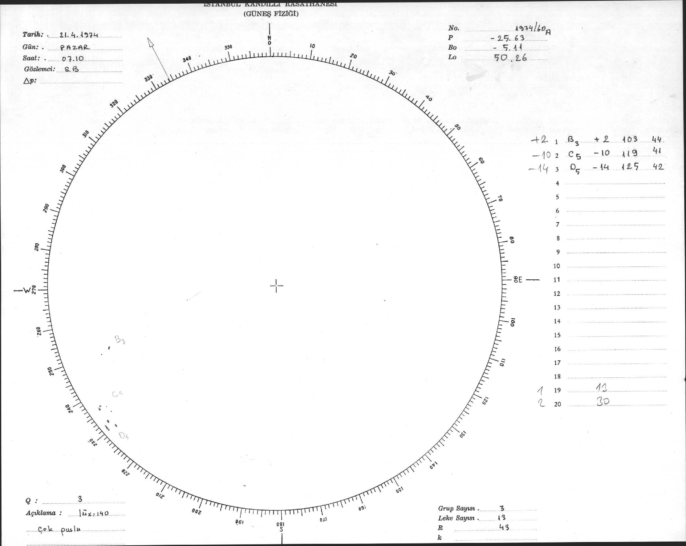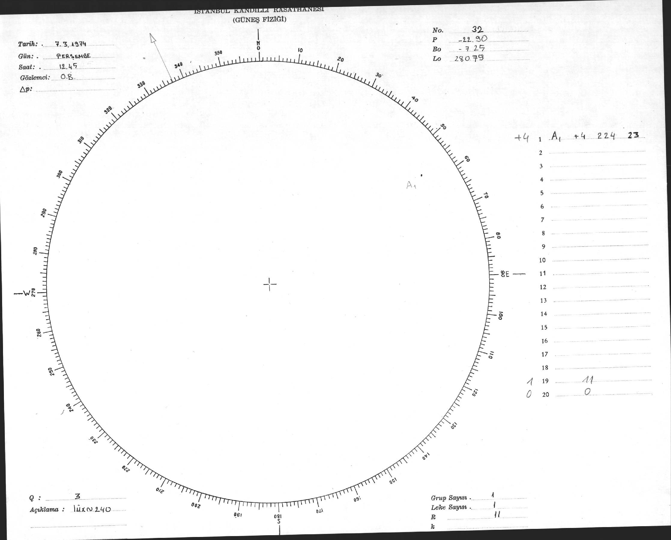 Güneş Lekesi Çizimleri / Kandilli Sunspot Drawings