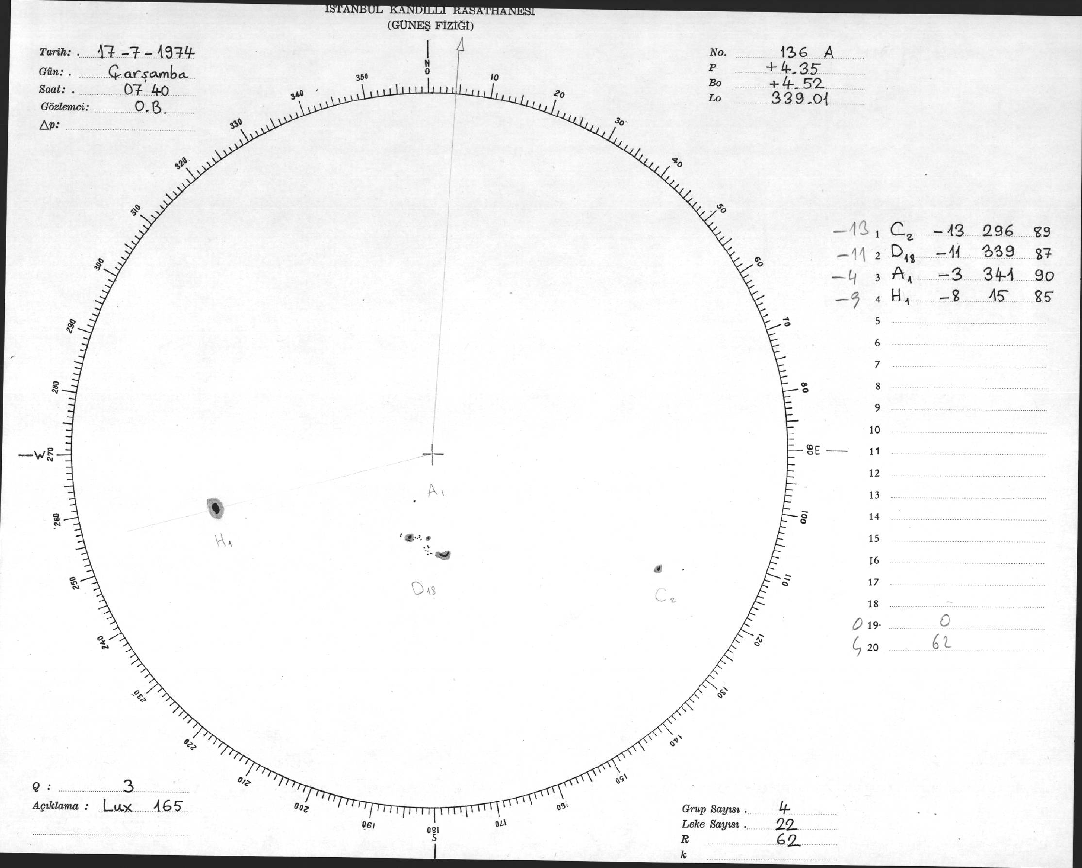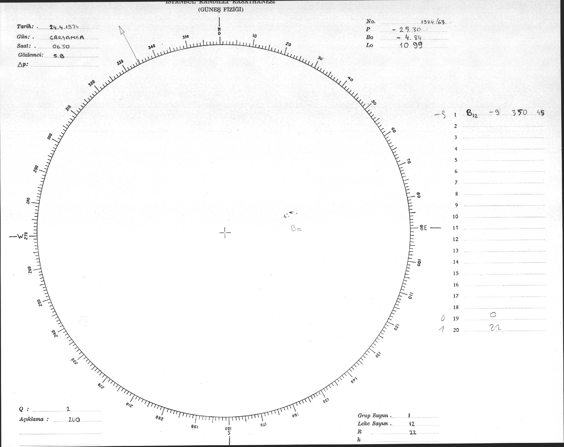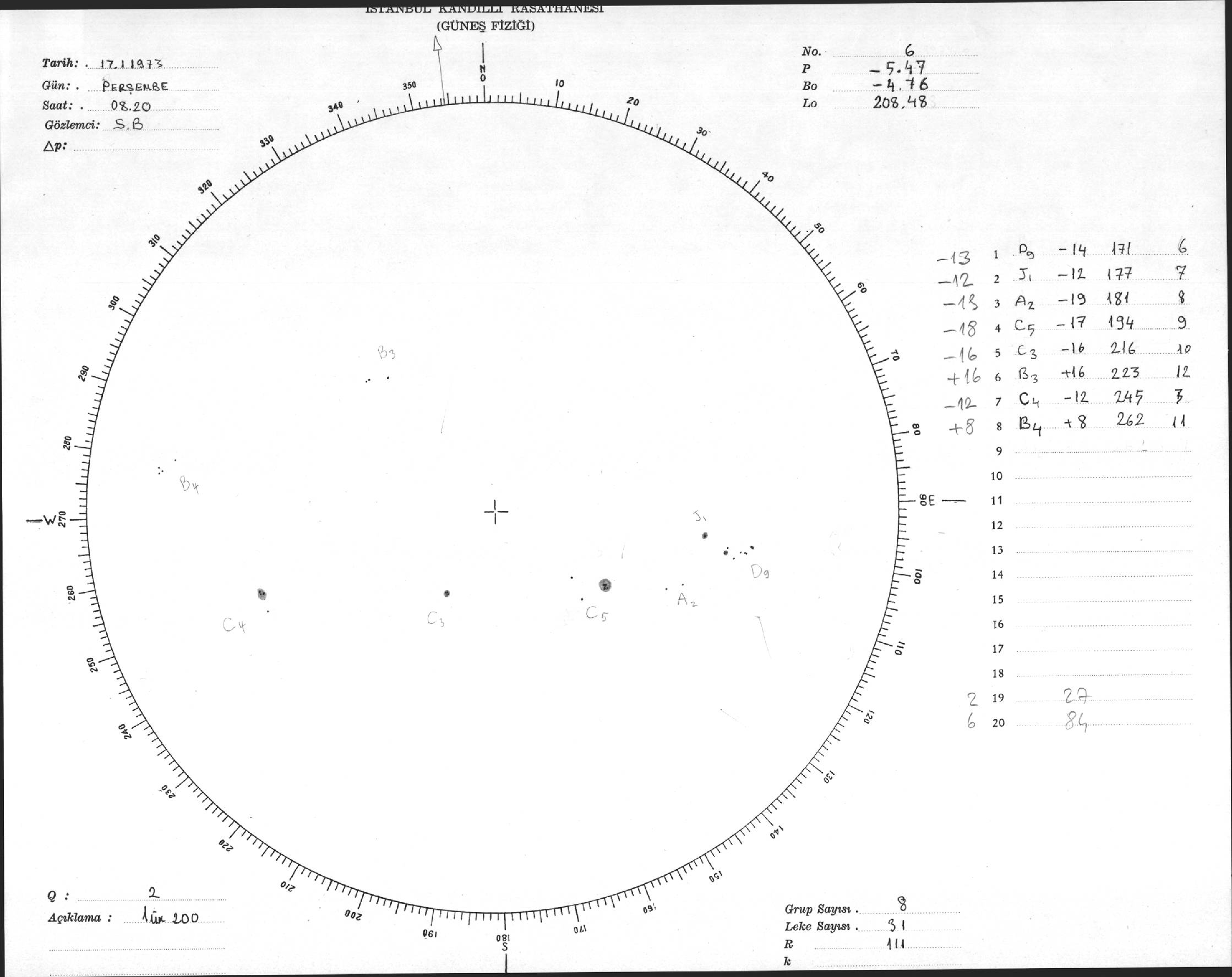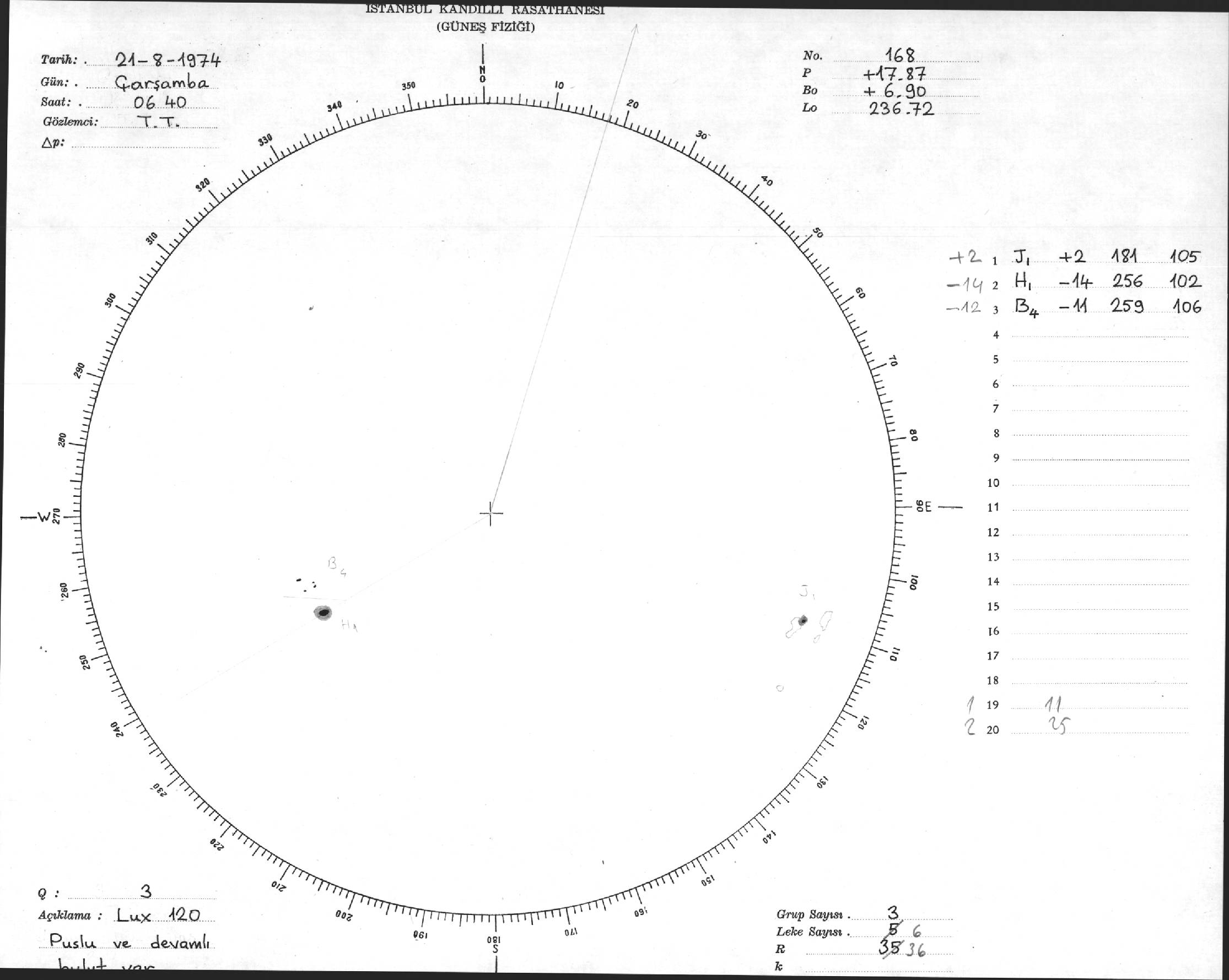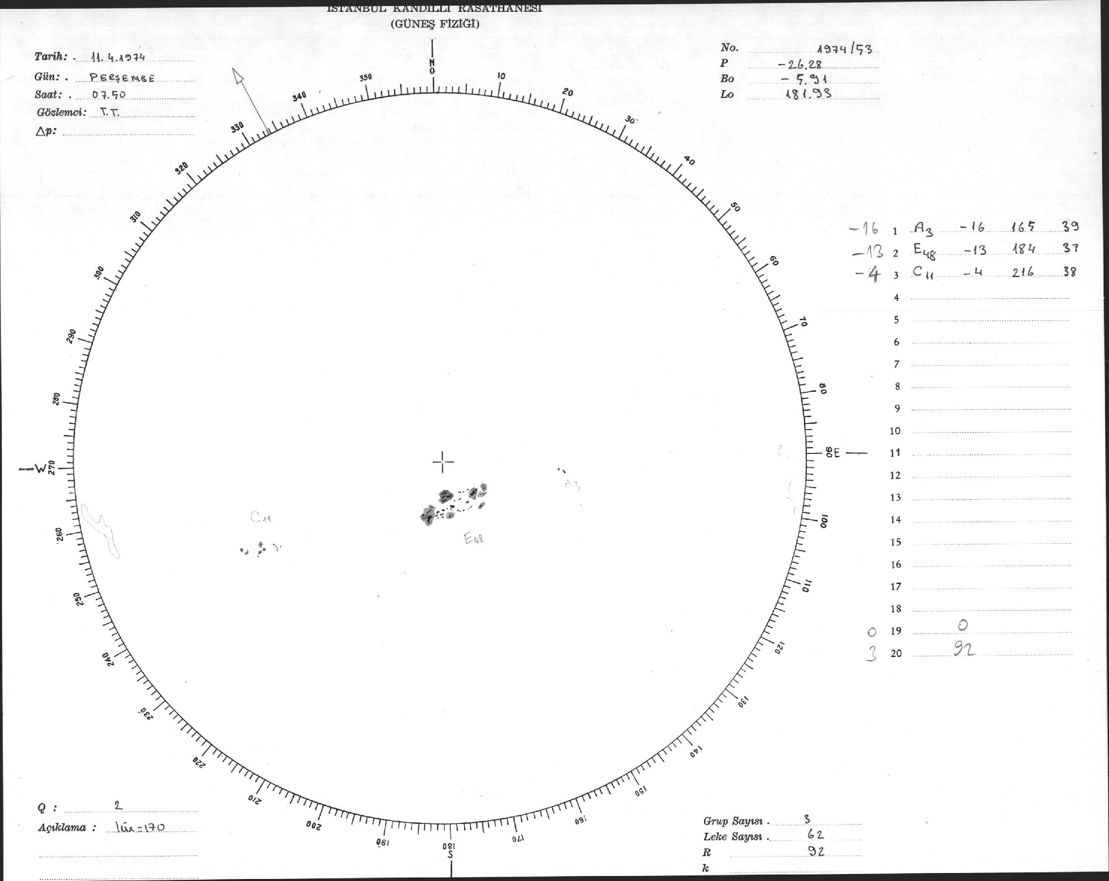 Güneş Lekesi Çizimleri / Kandilli Sunspot Drawings