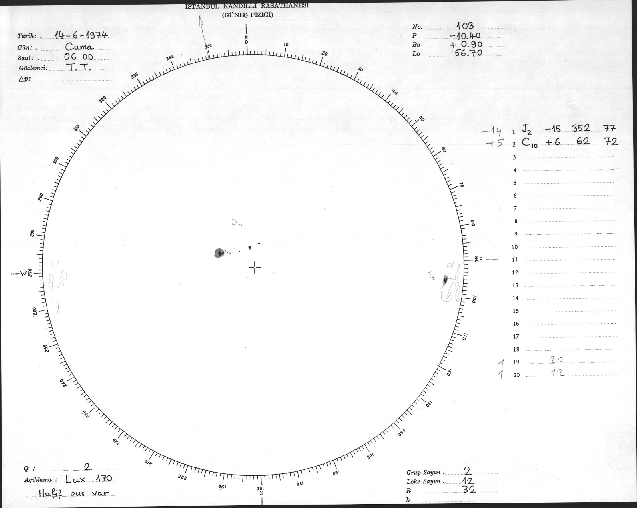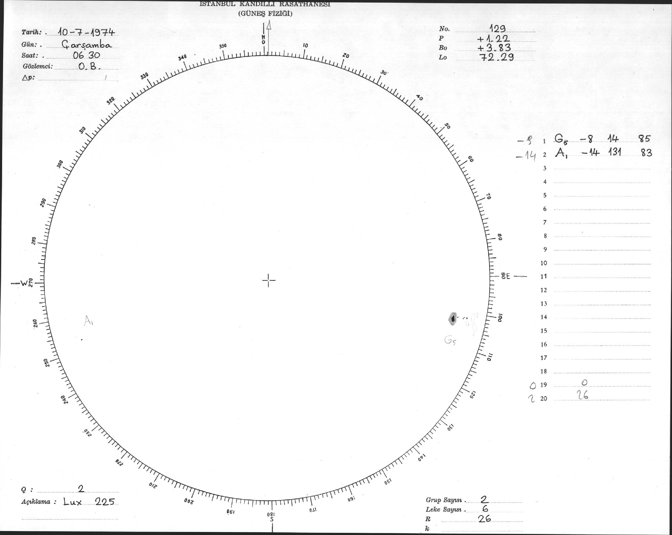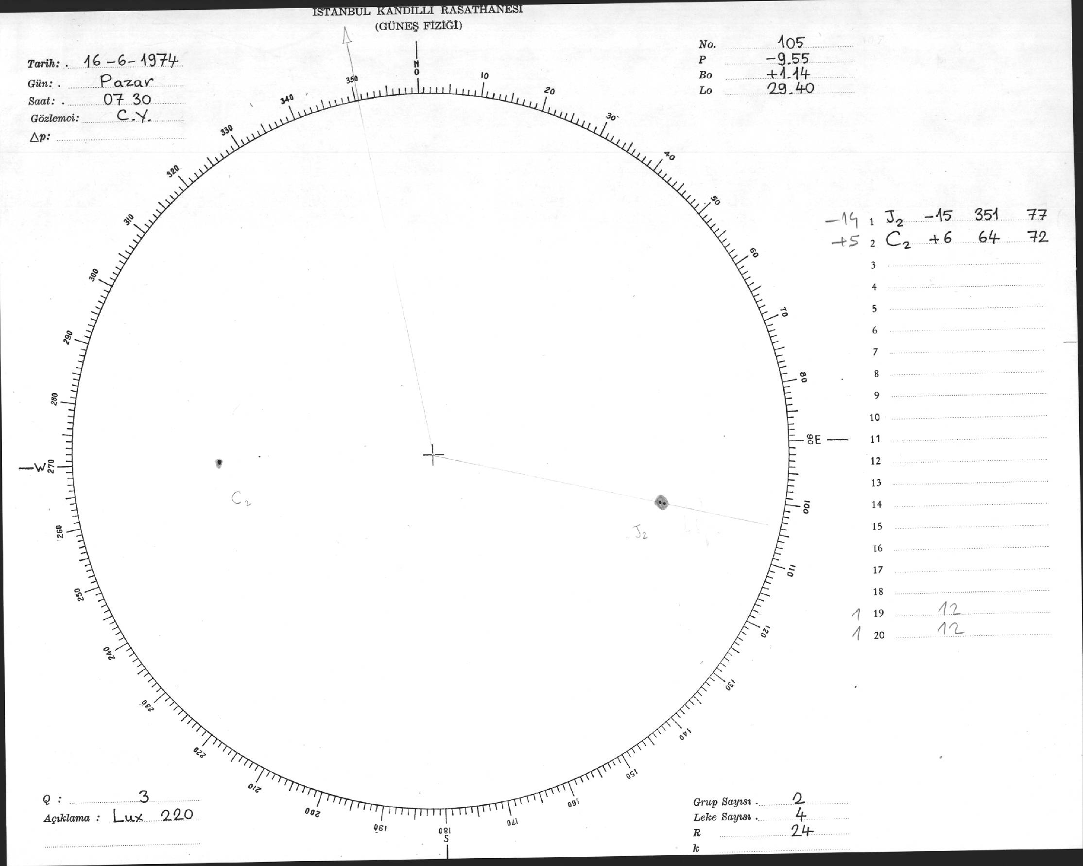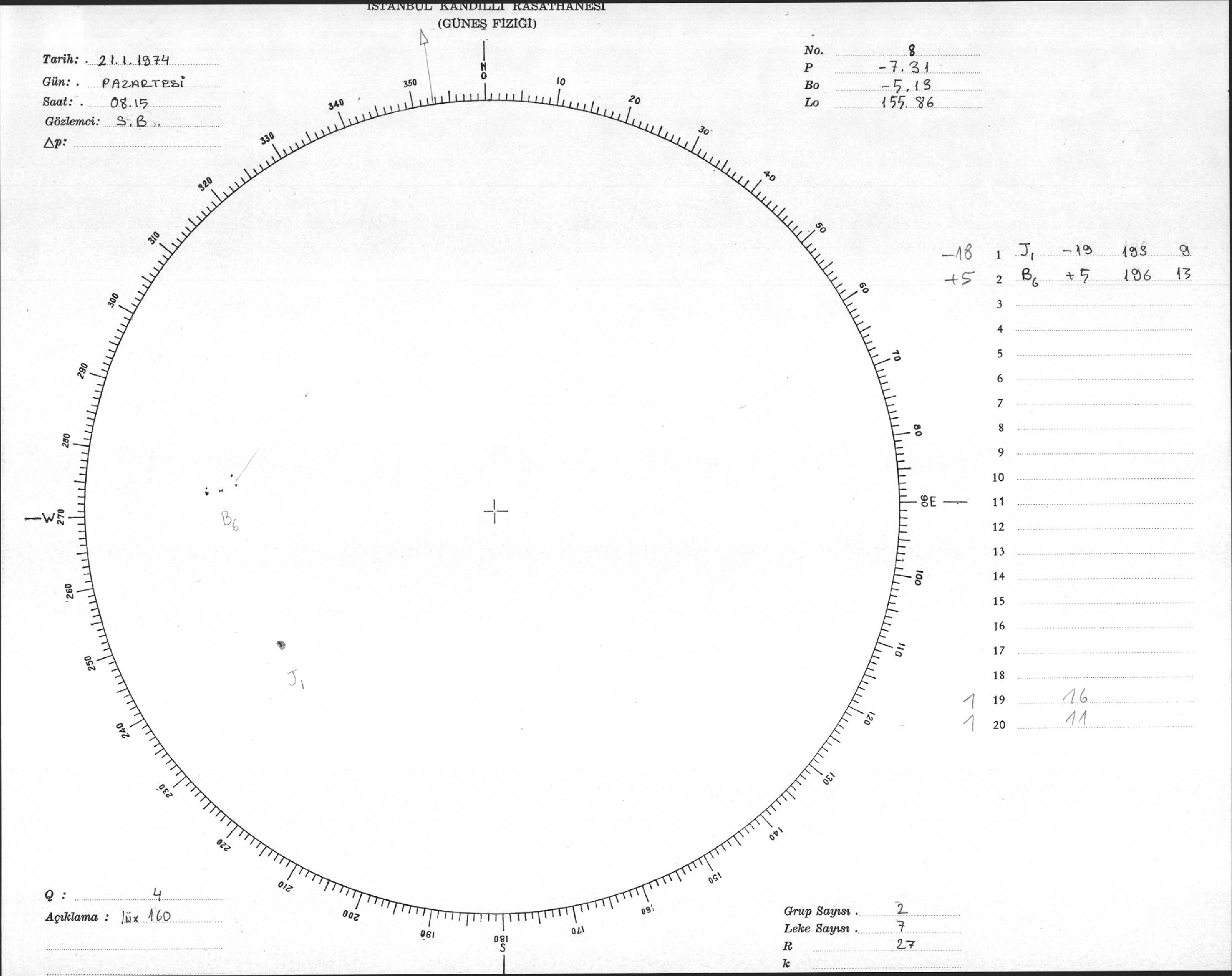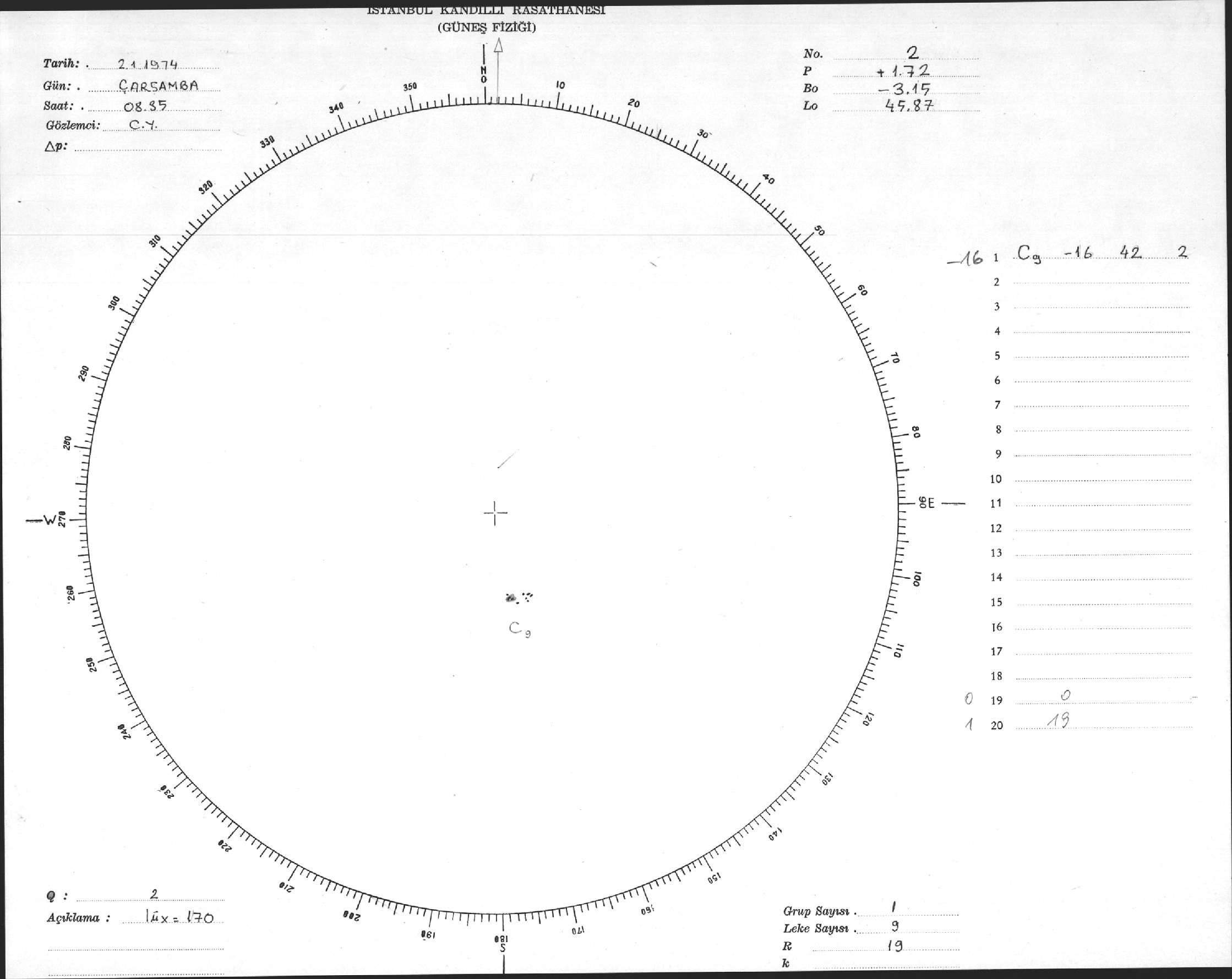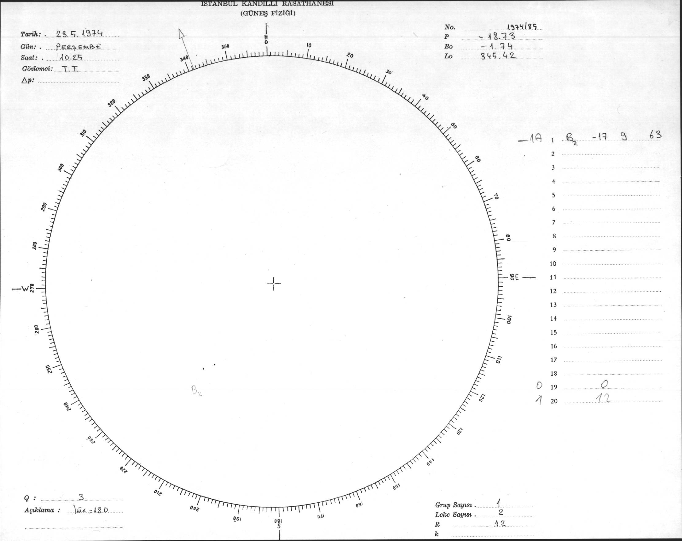 Güneş Lekesi Çizimleri / Kandilli Sunspot Drawings