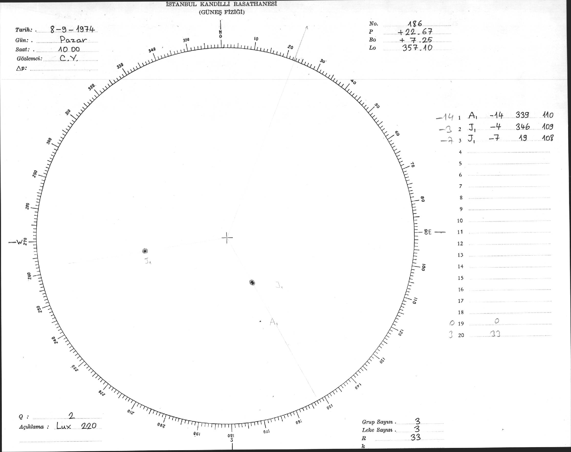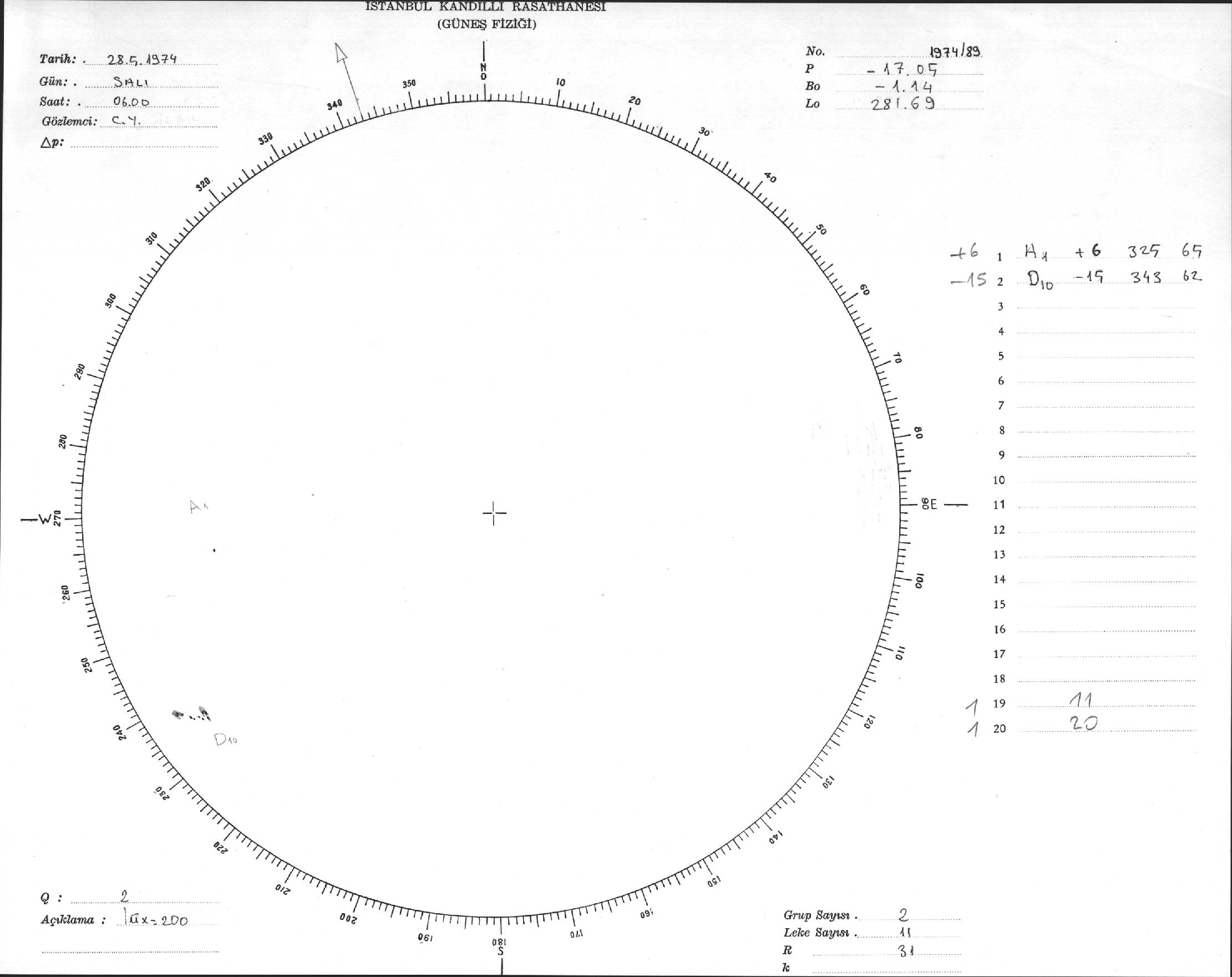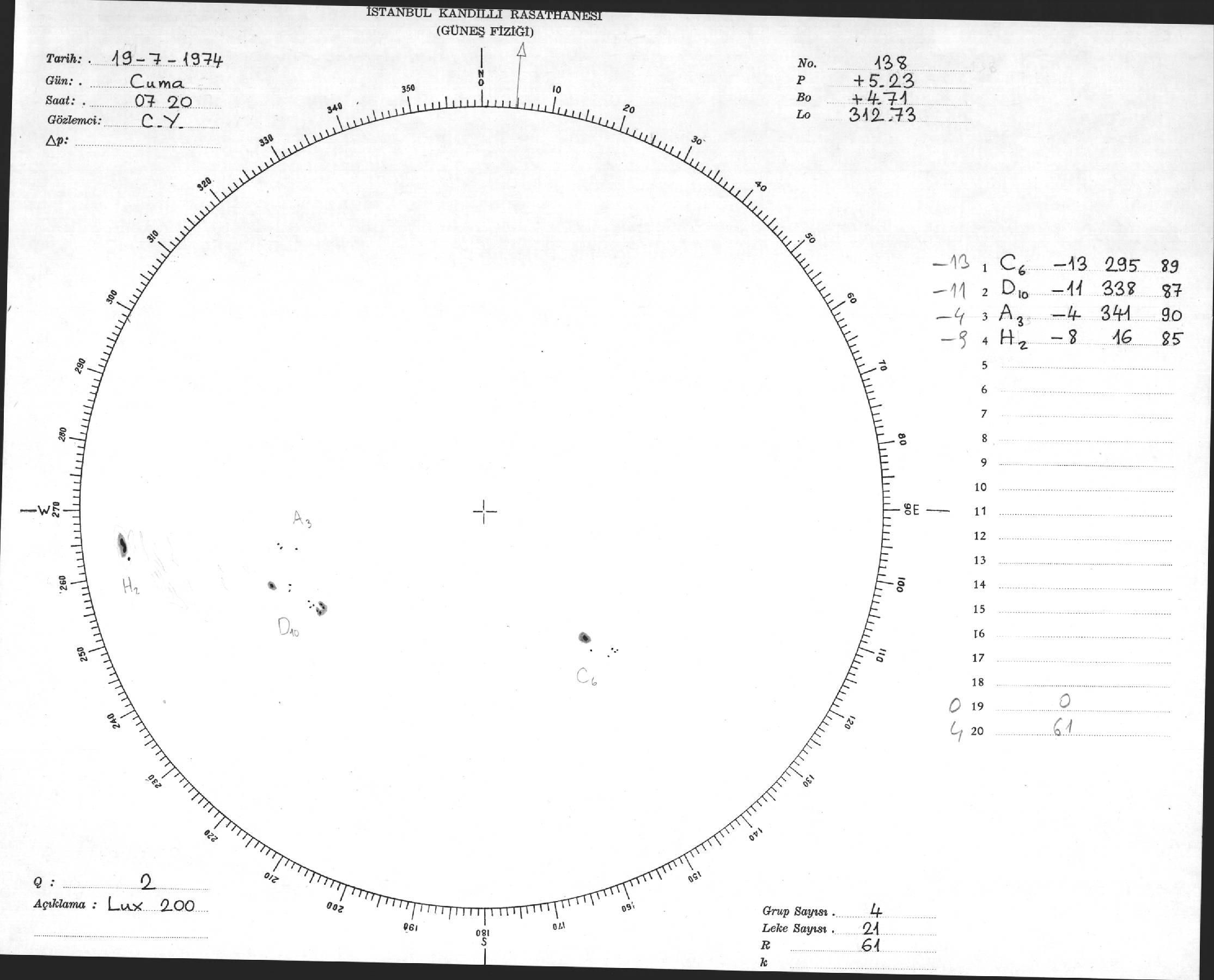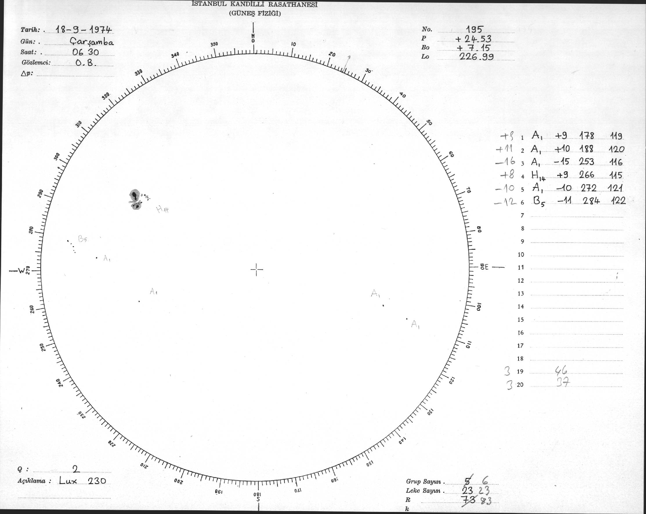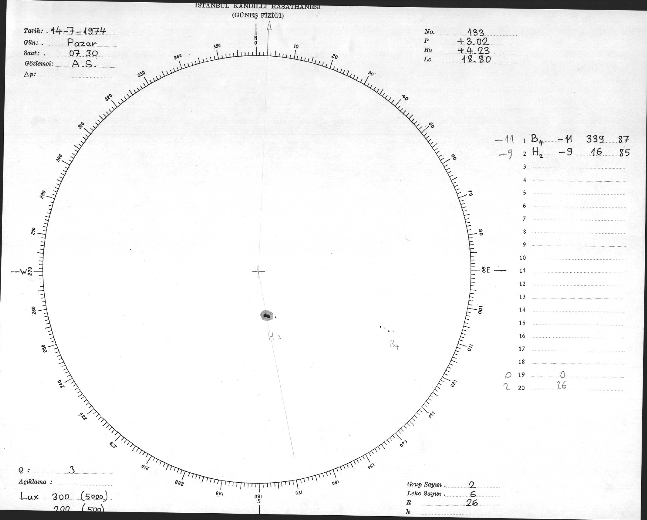 Güneş Lekesi Çizimleri / Kandilli Sunspot Drawings