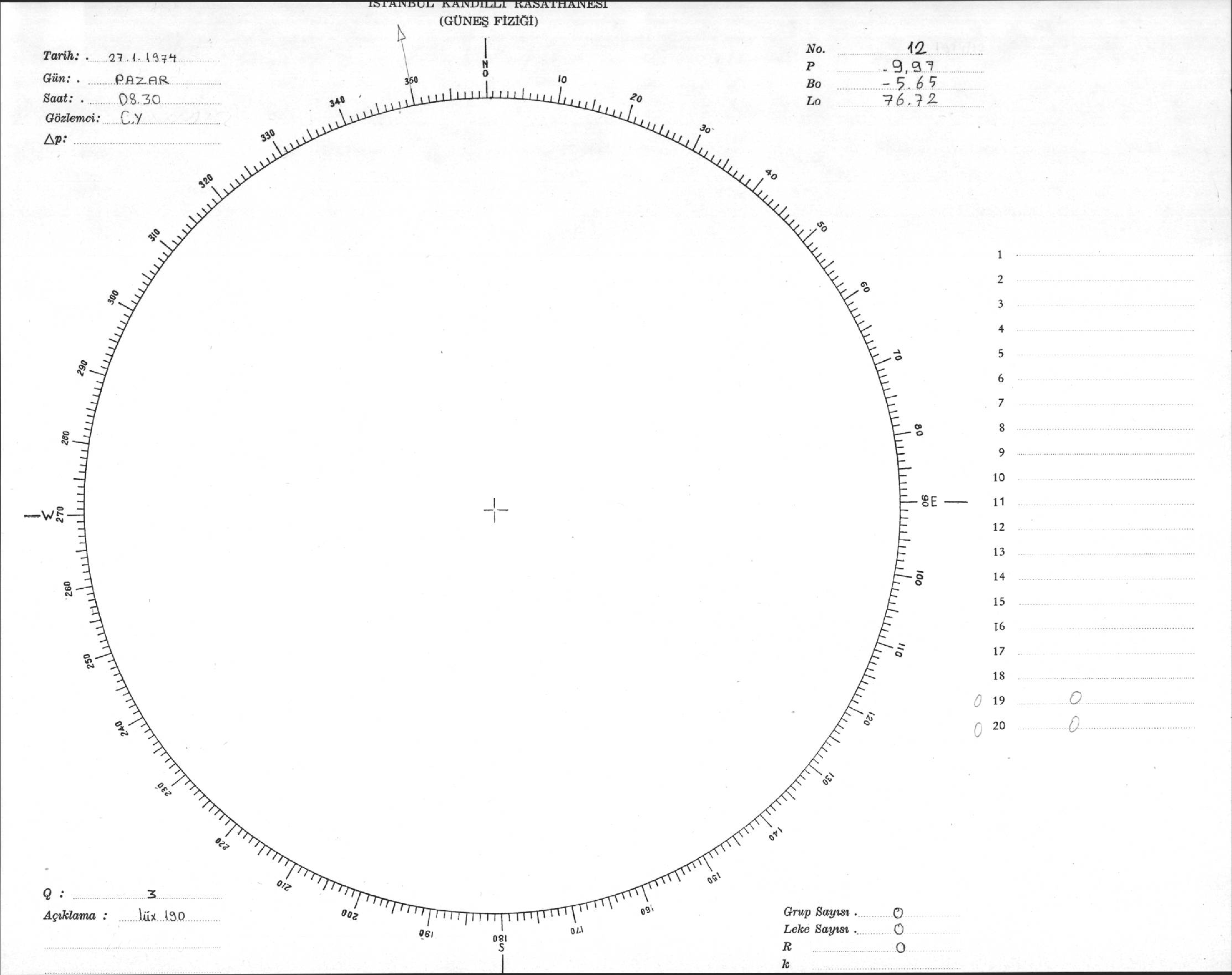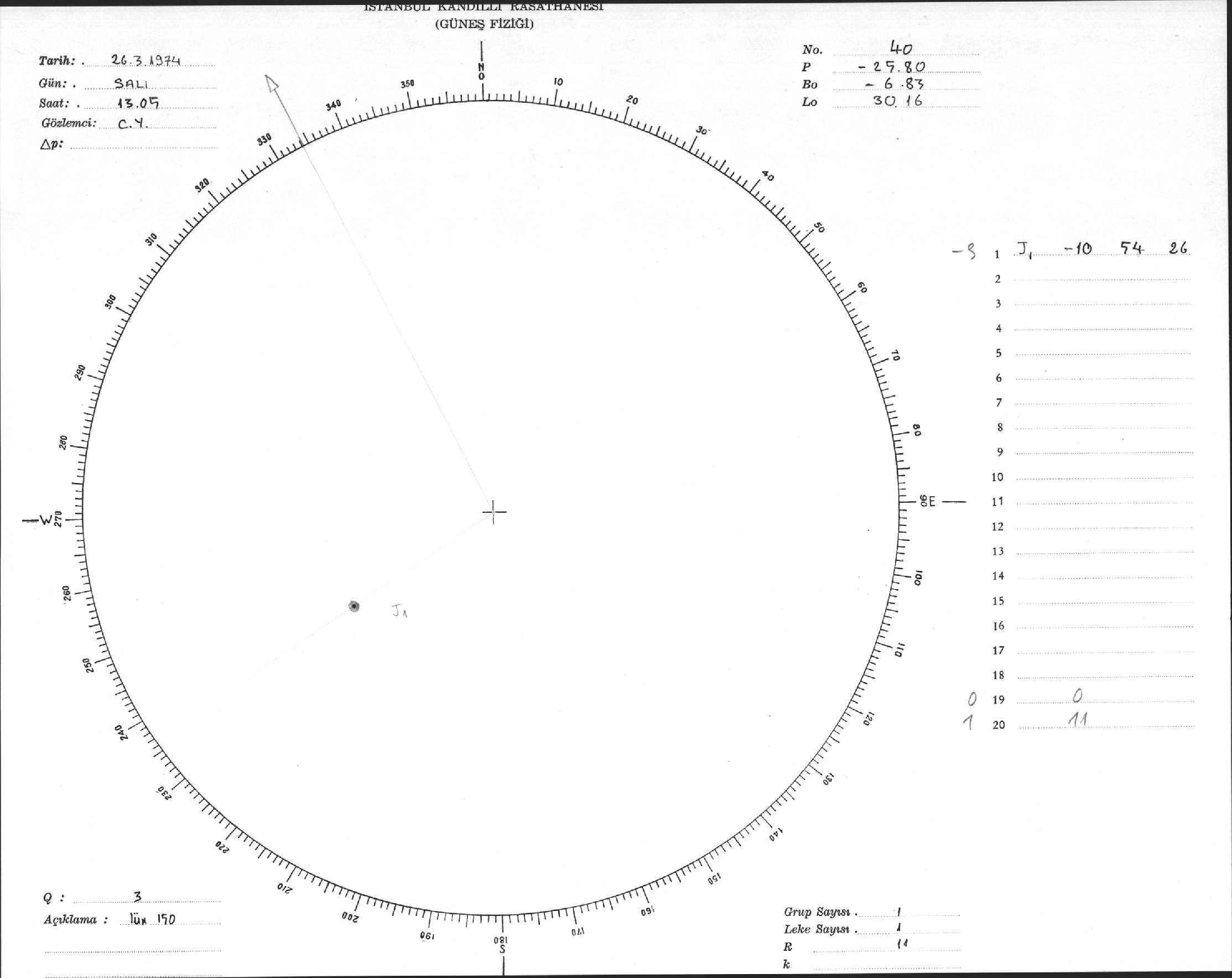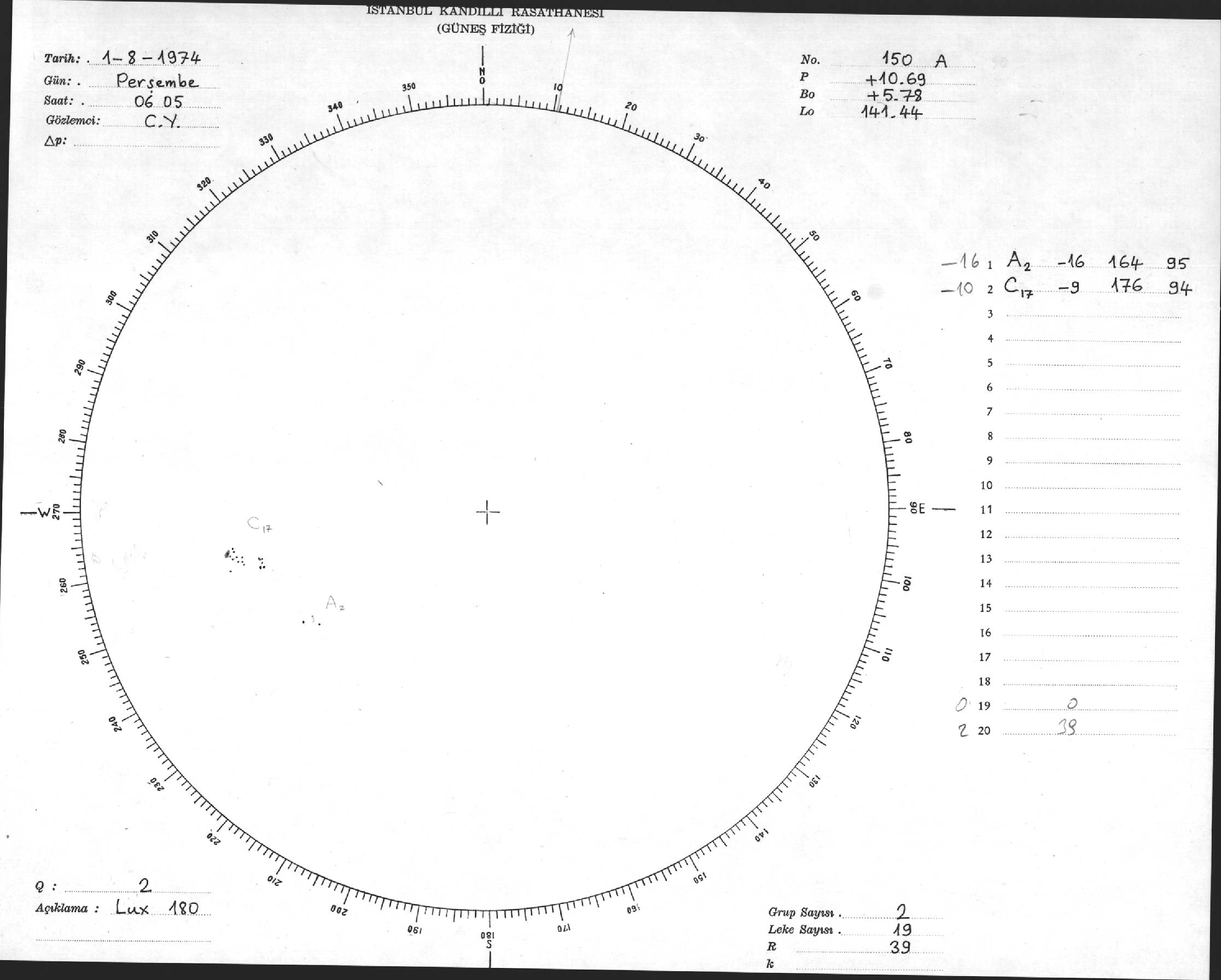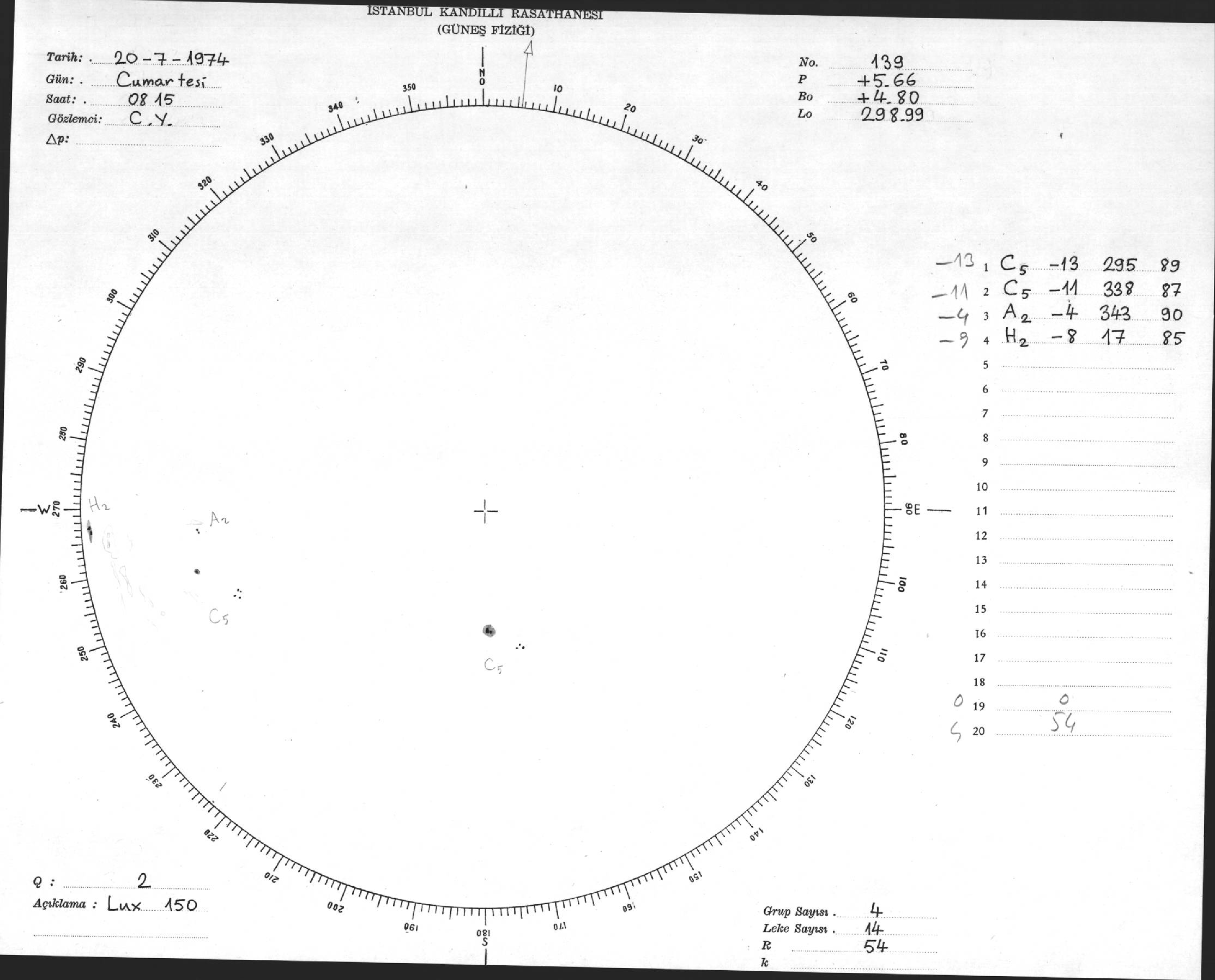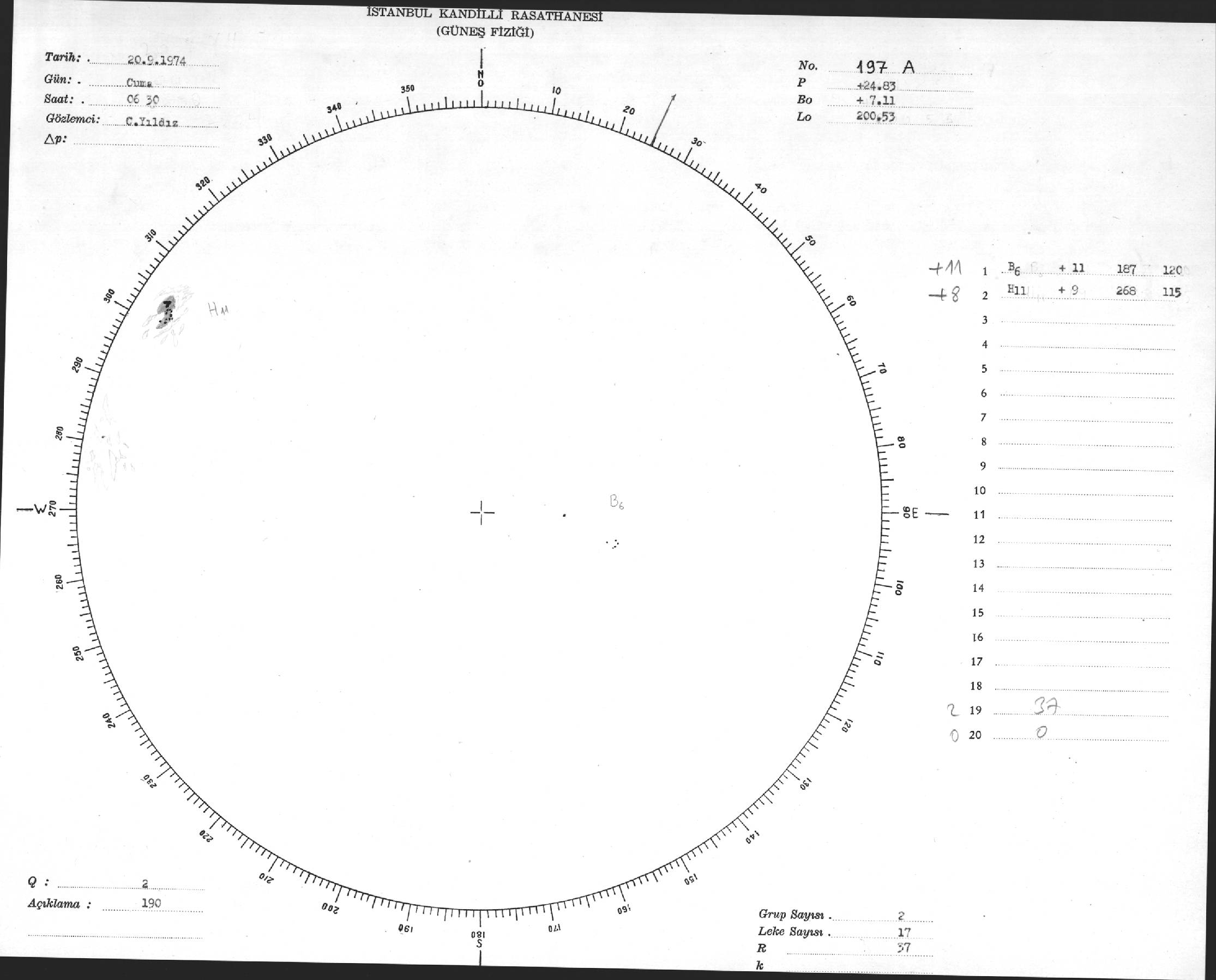 Güneş Lekesi Çizimleri / Kandilli Sunspot Drawings