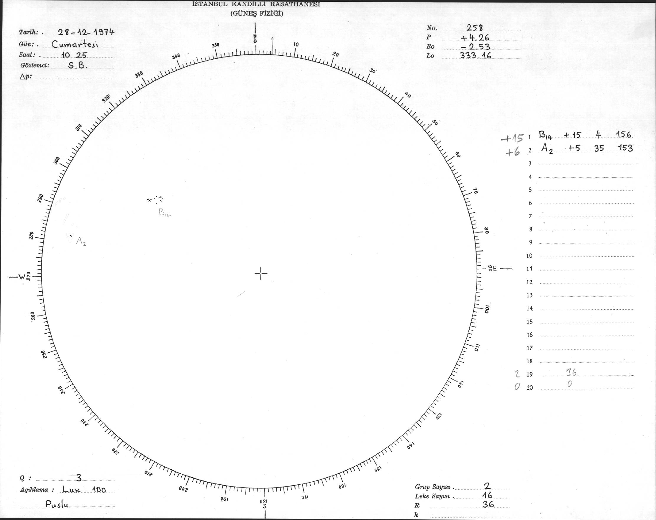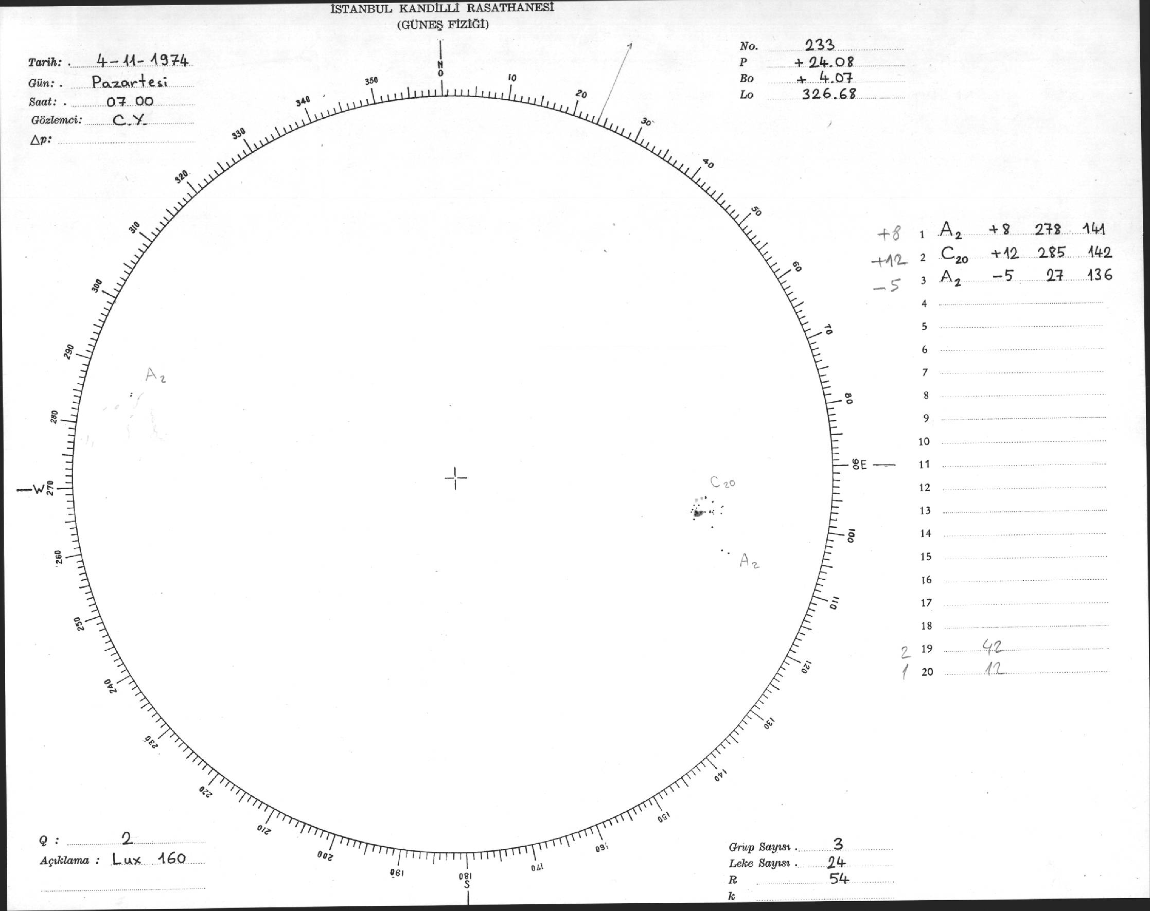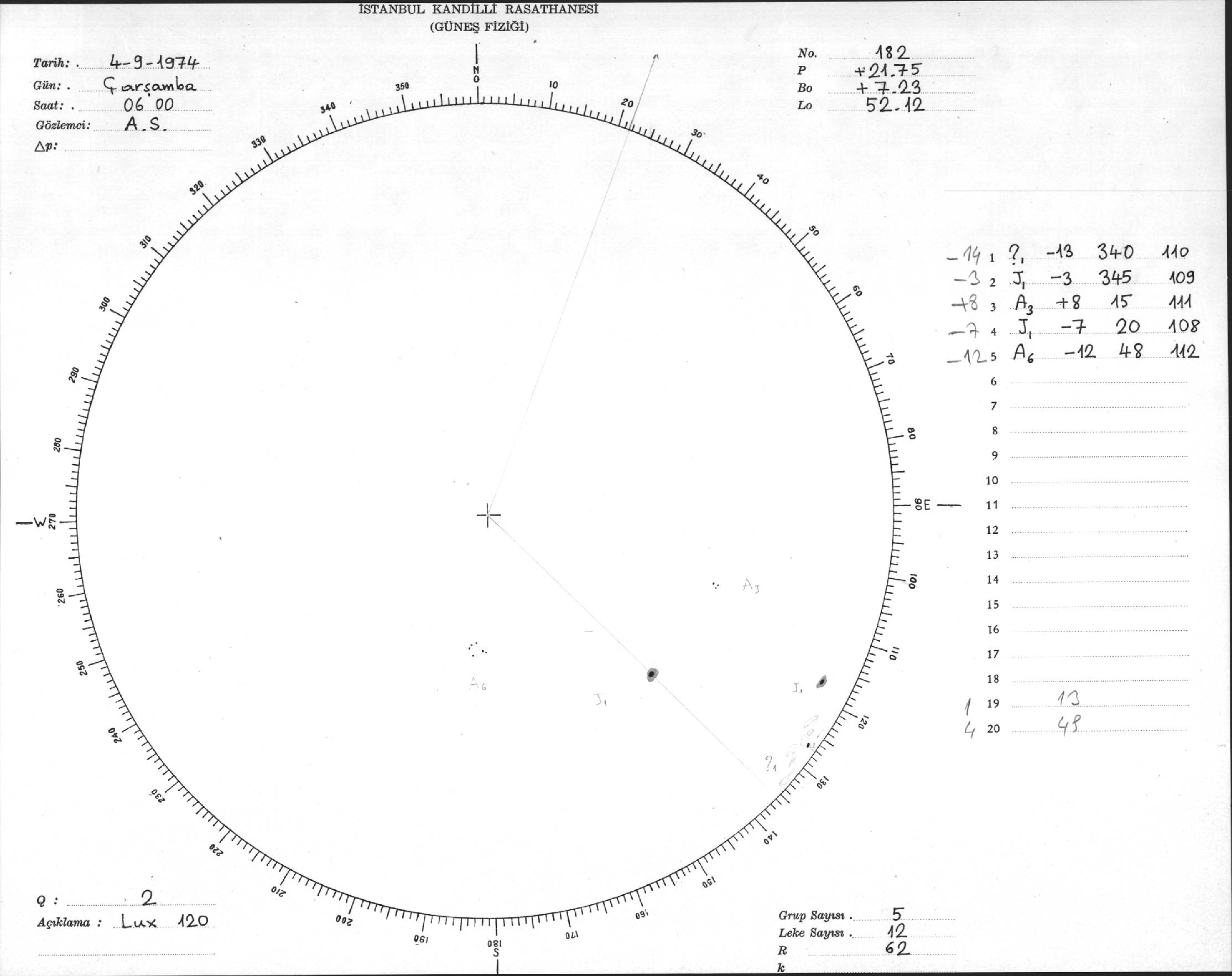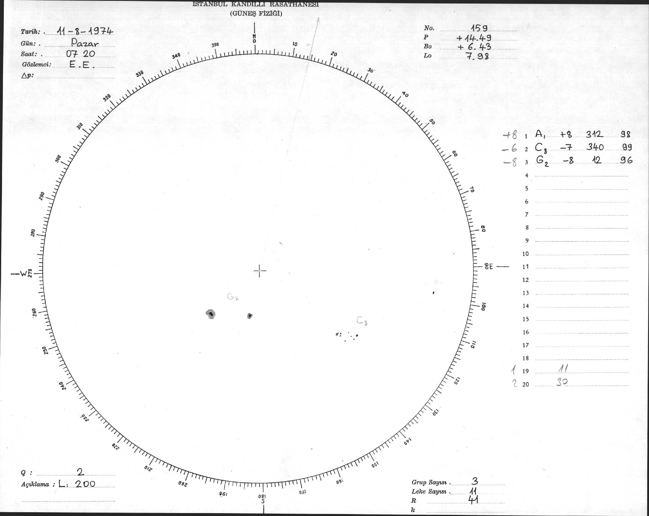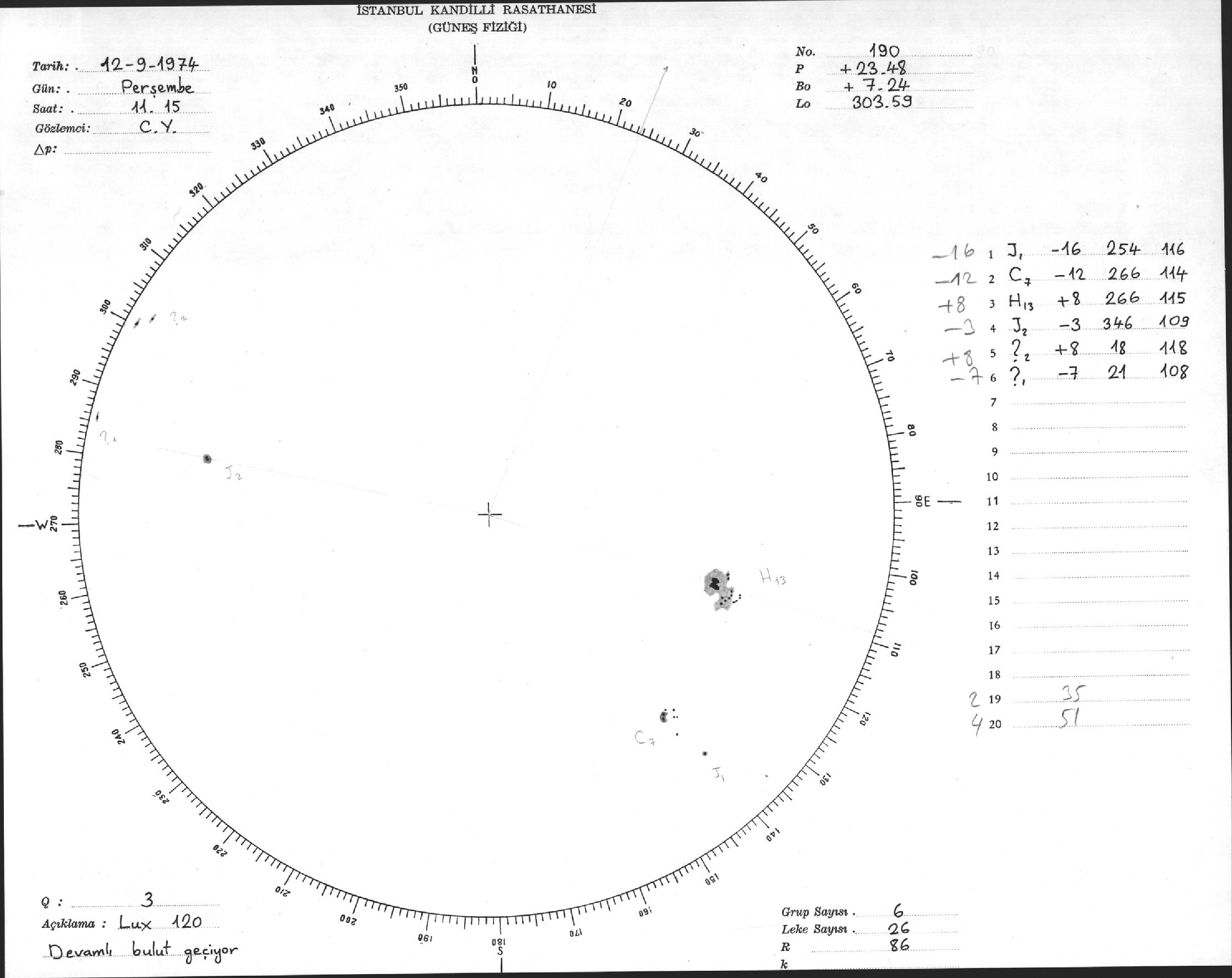 Güneş Lekesi Çizimleri / Kandilli Sunspot Drawings