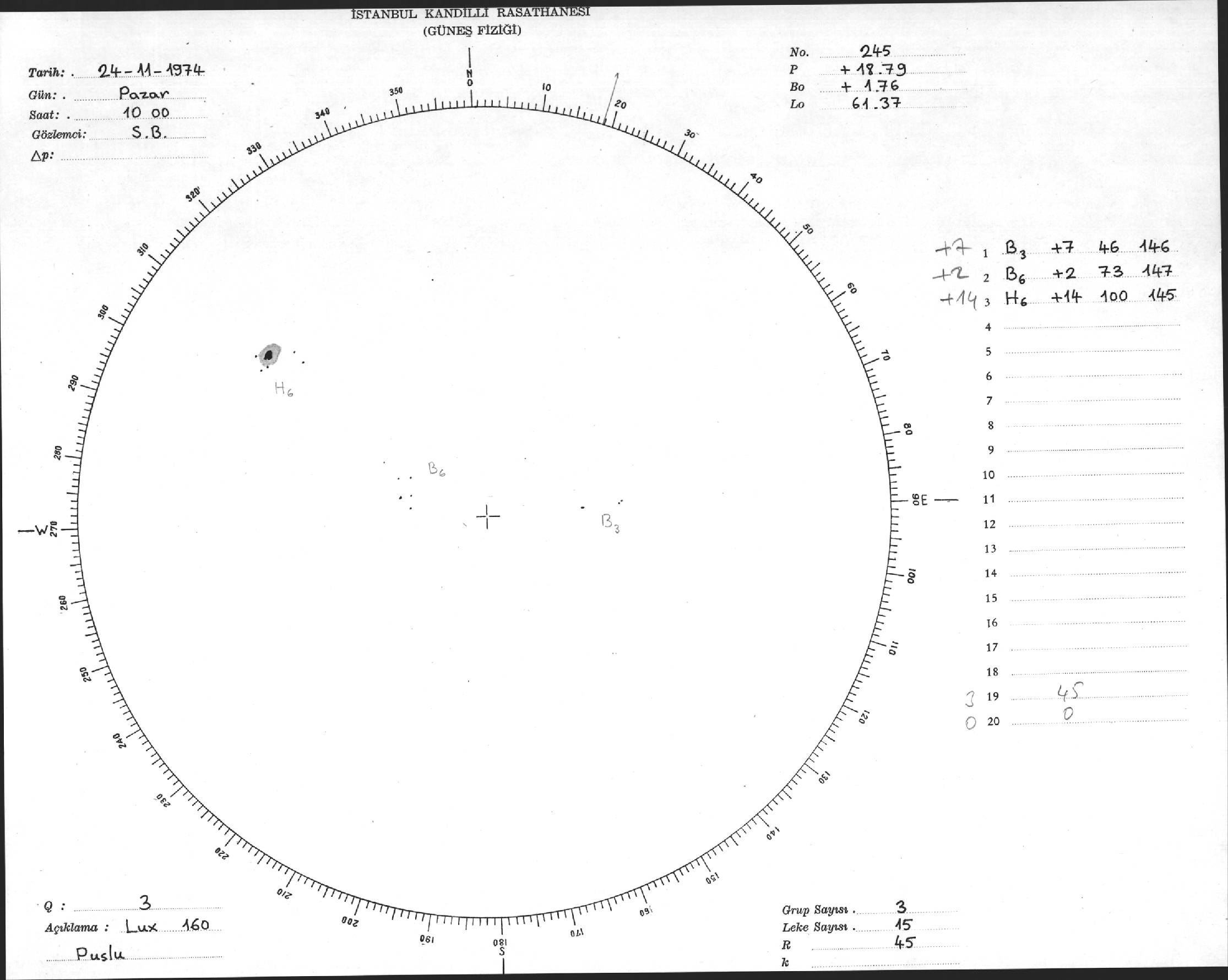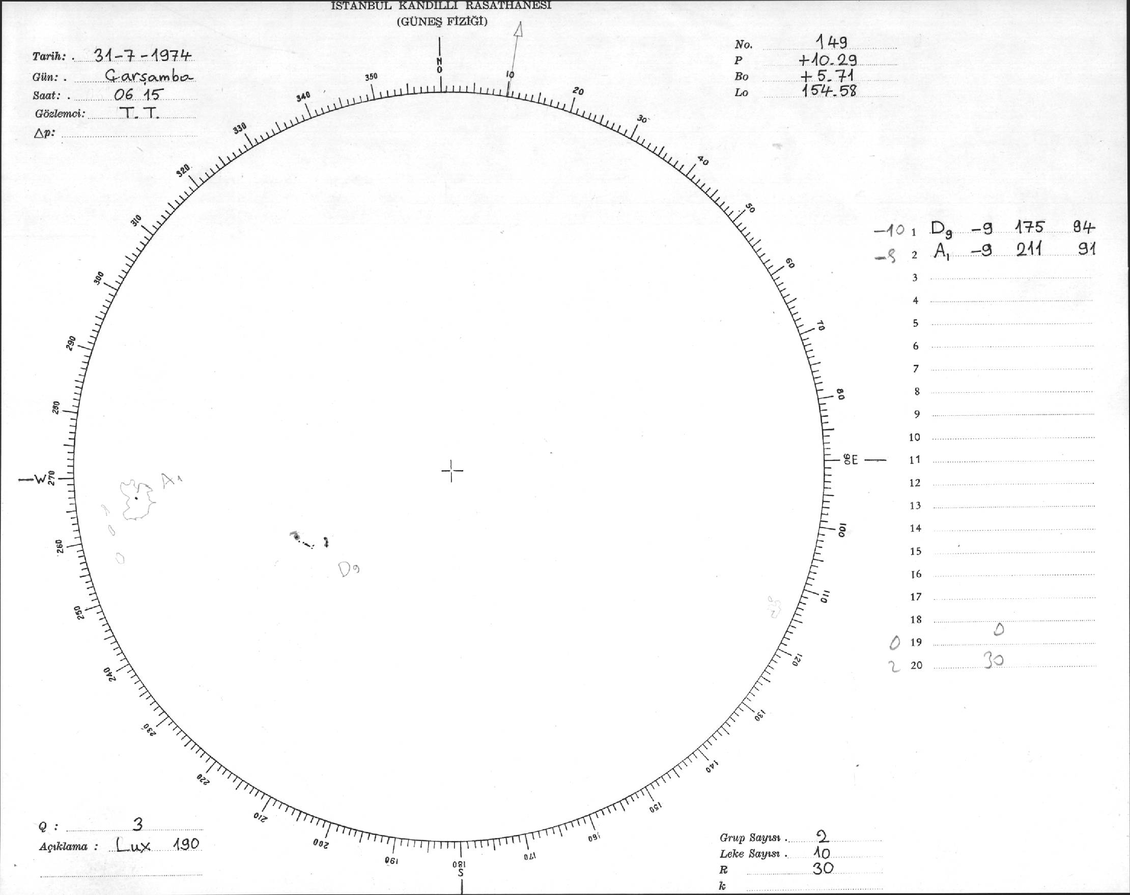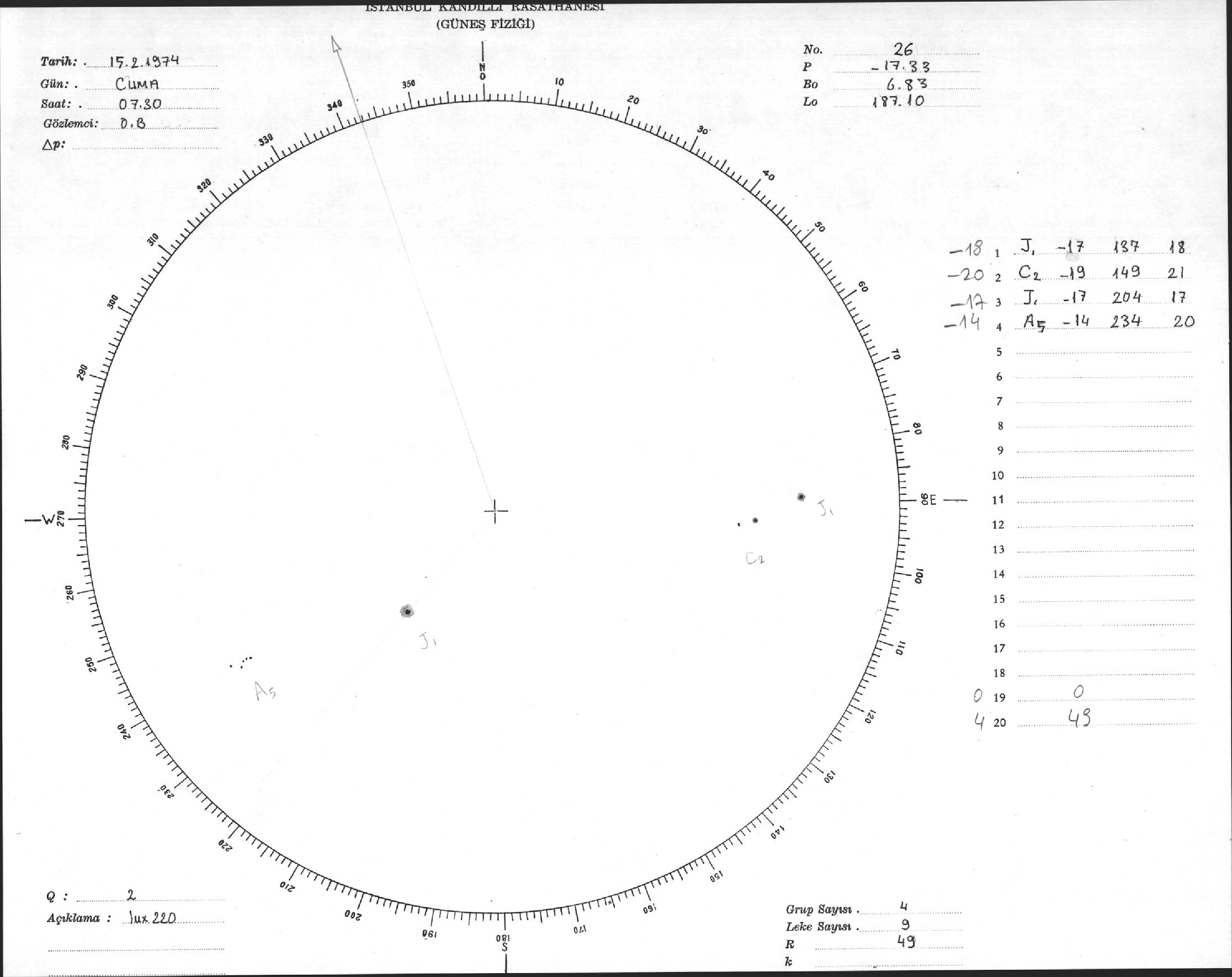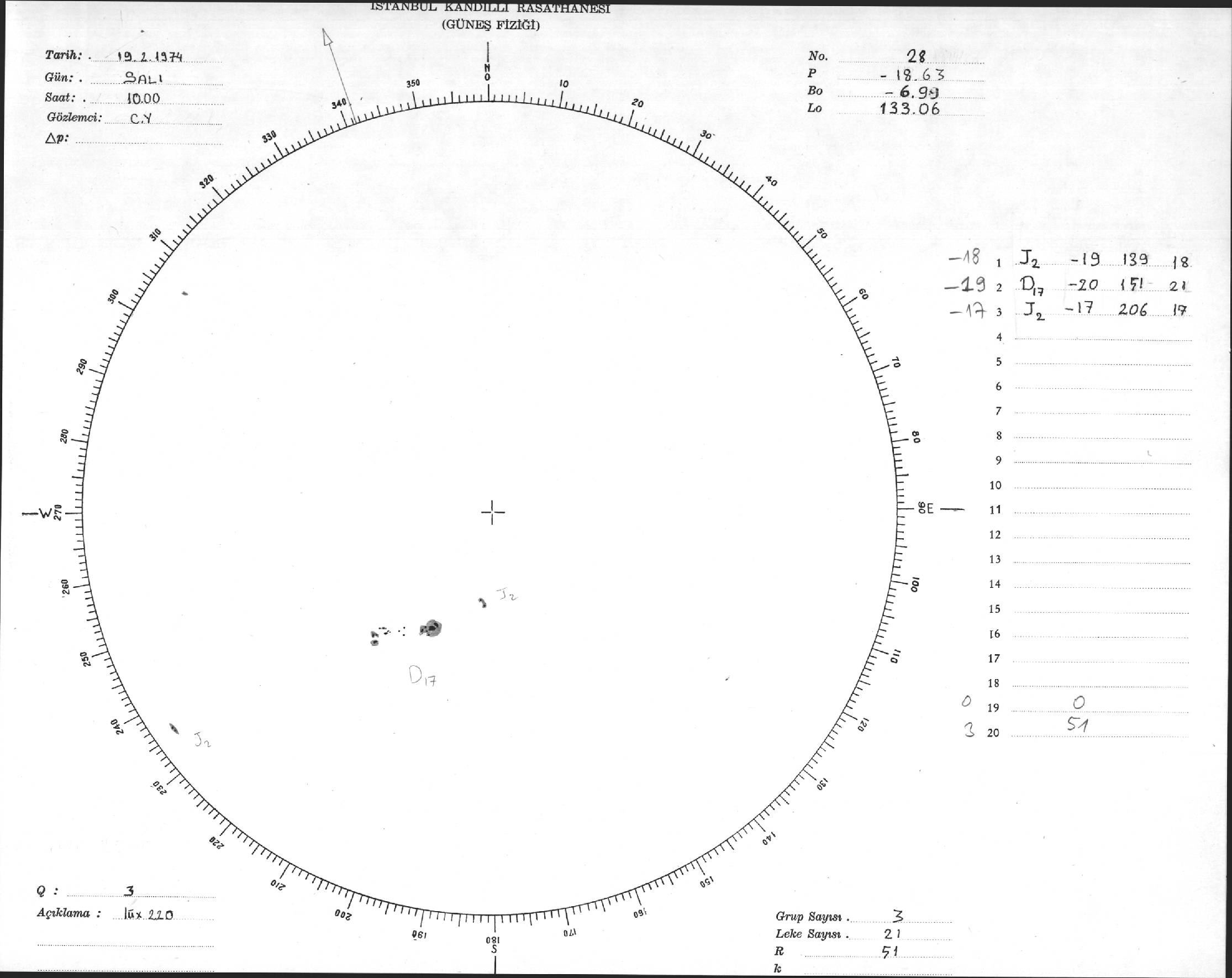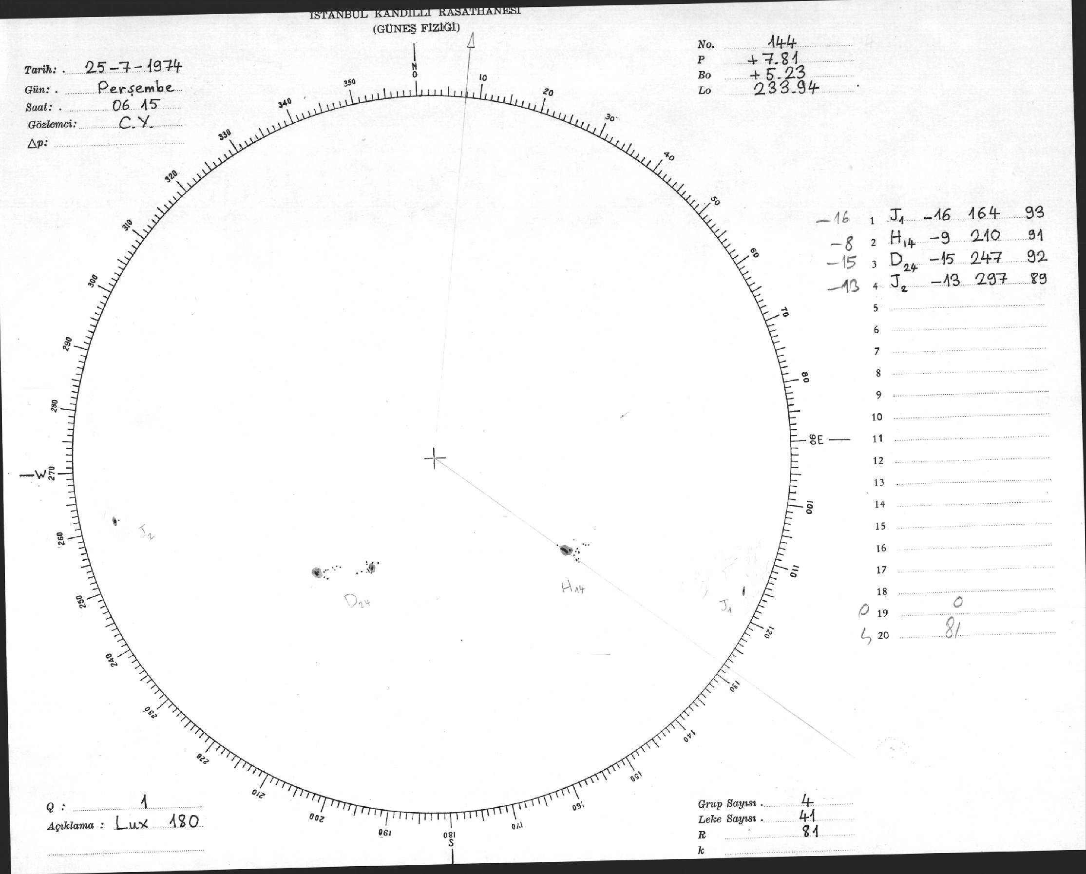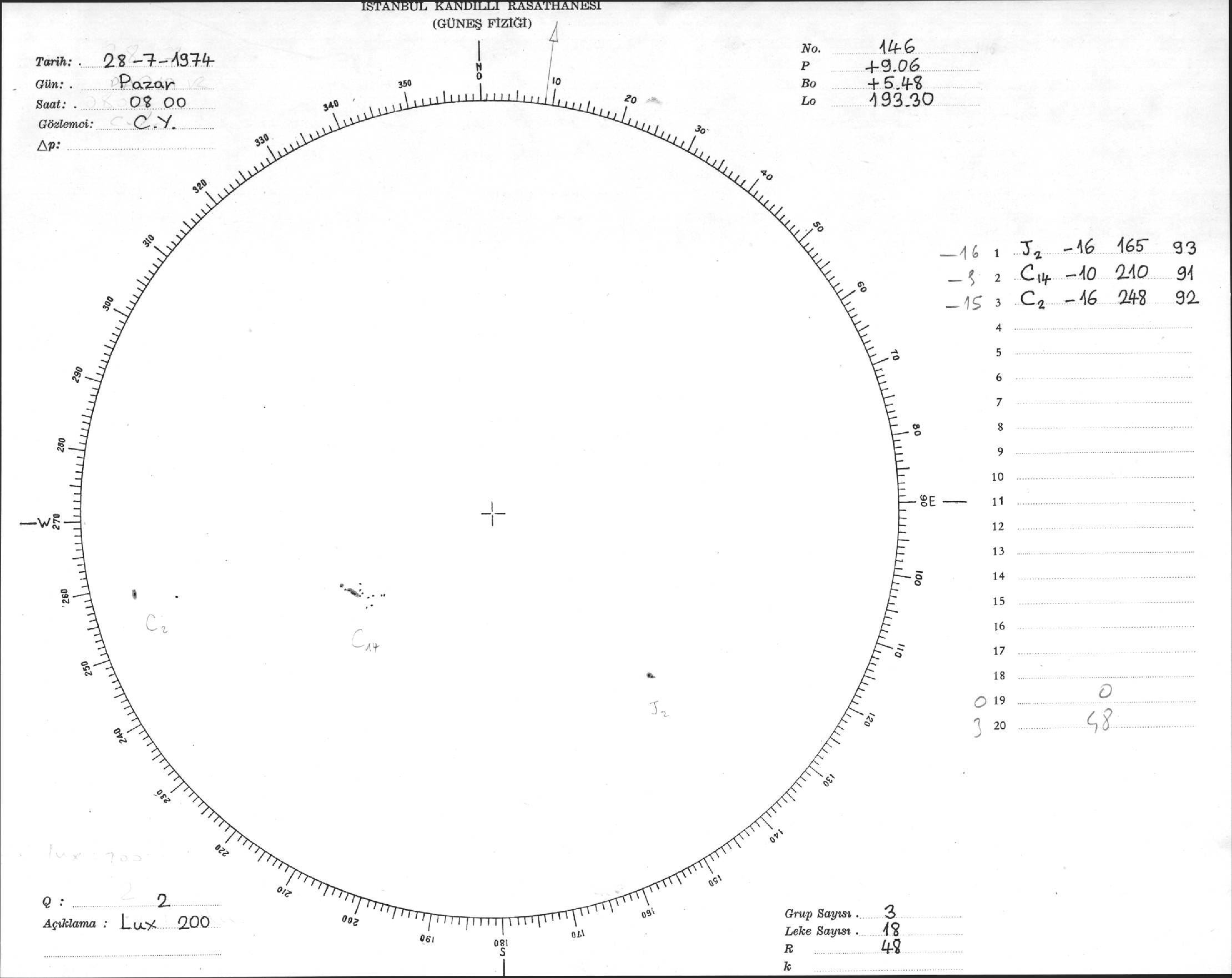 Güneş Lekesi Çizimleri / Kandilli Sunspot Drawings