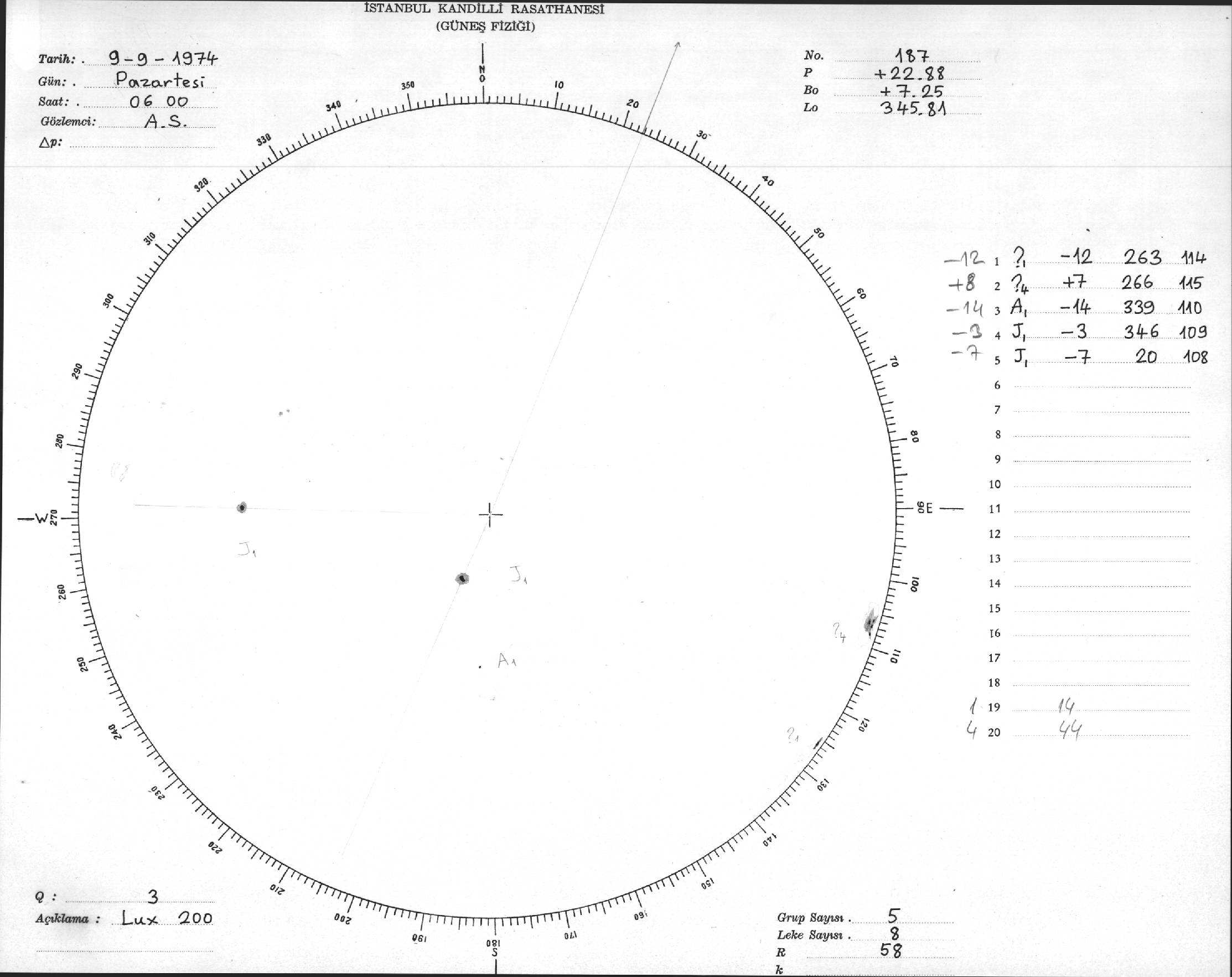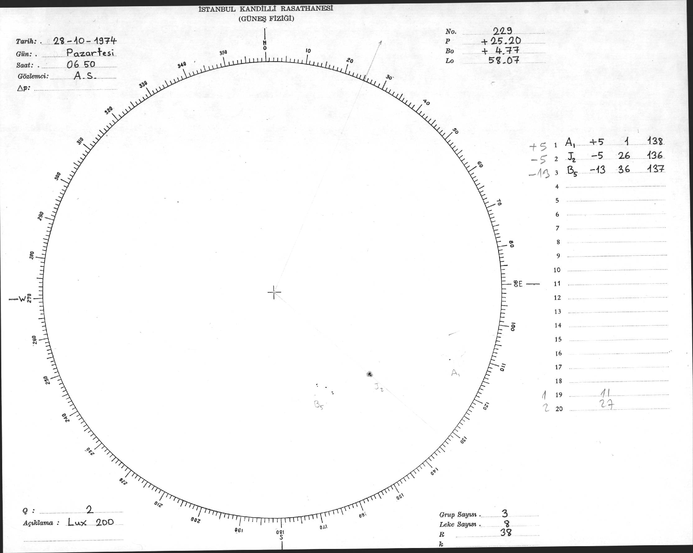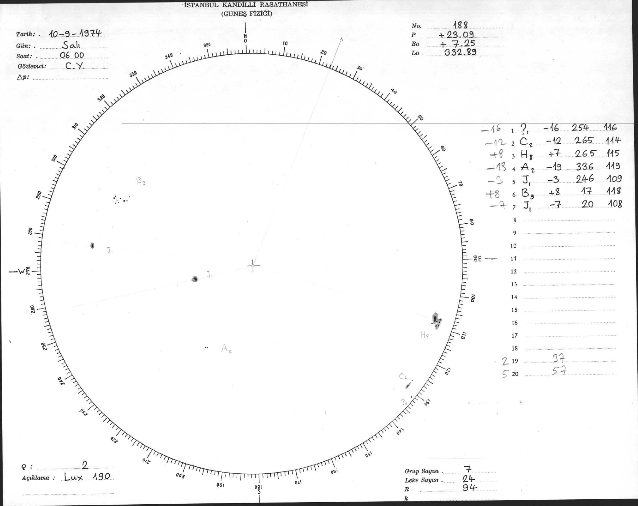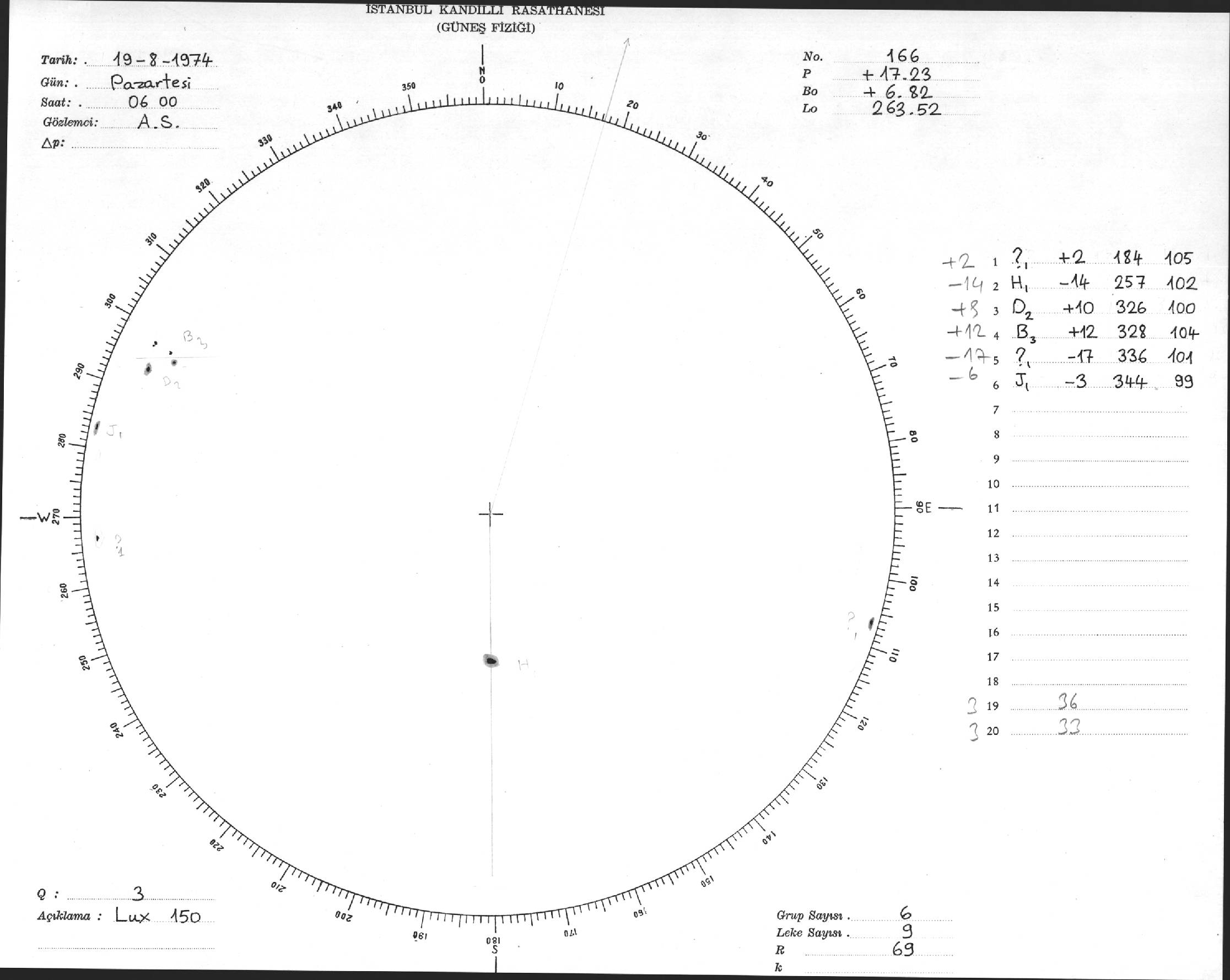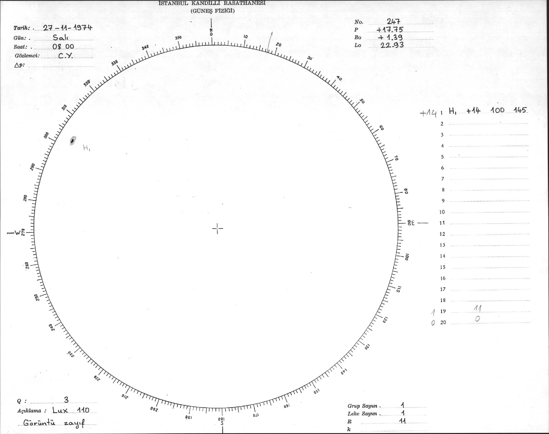Güneş Lekesi Çizimleri / Kandilli Sunspot Drawings