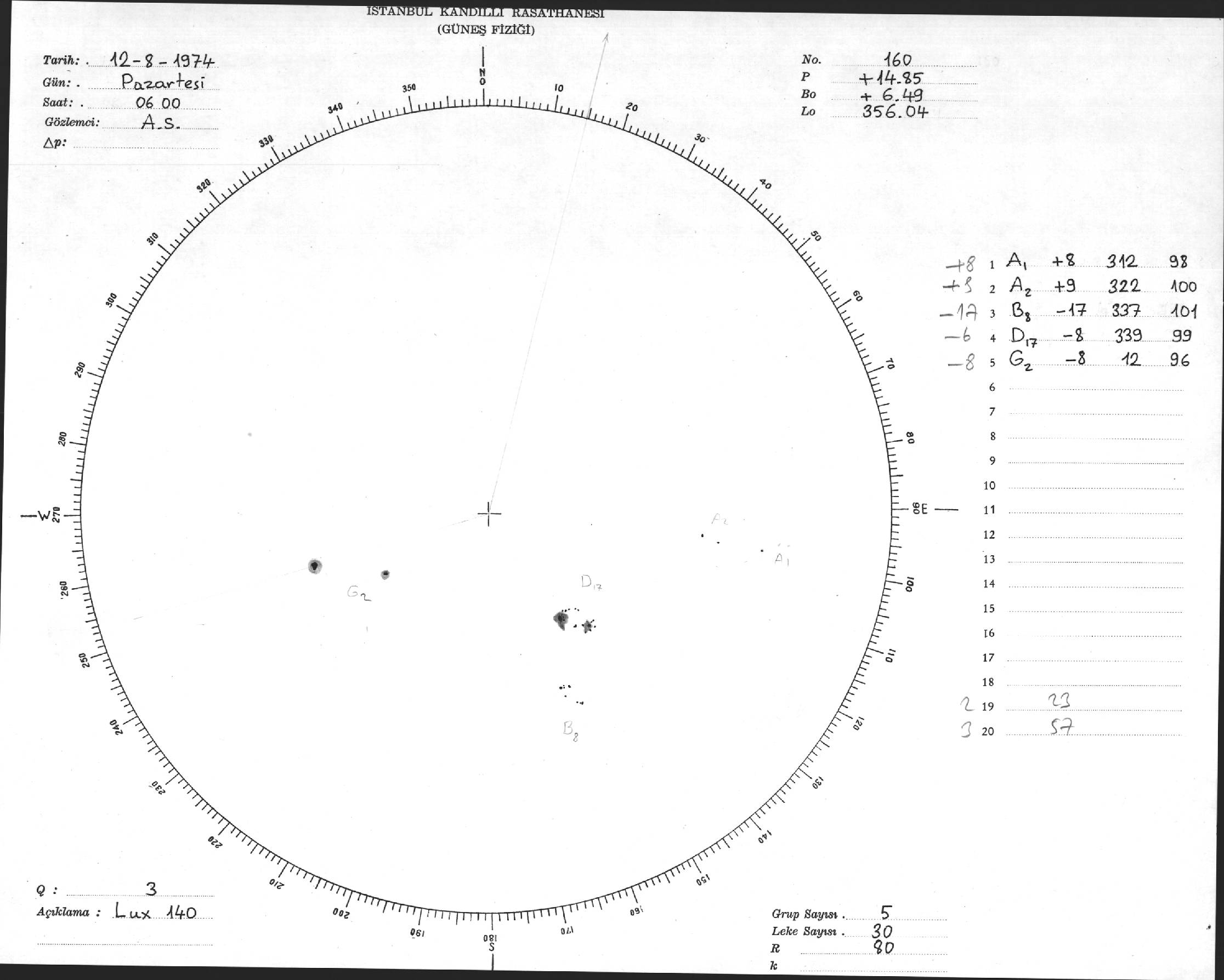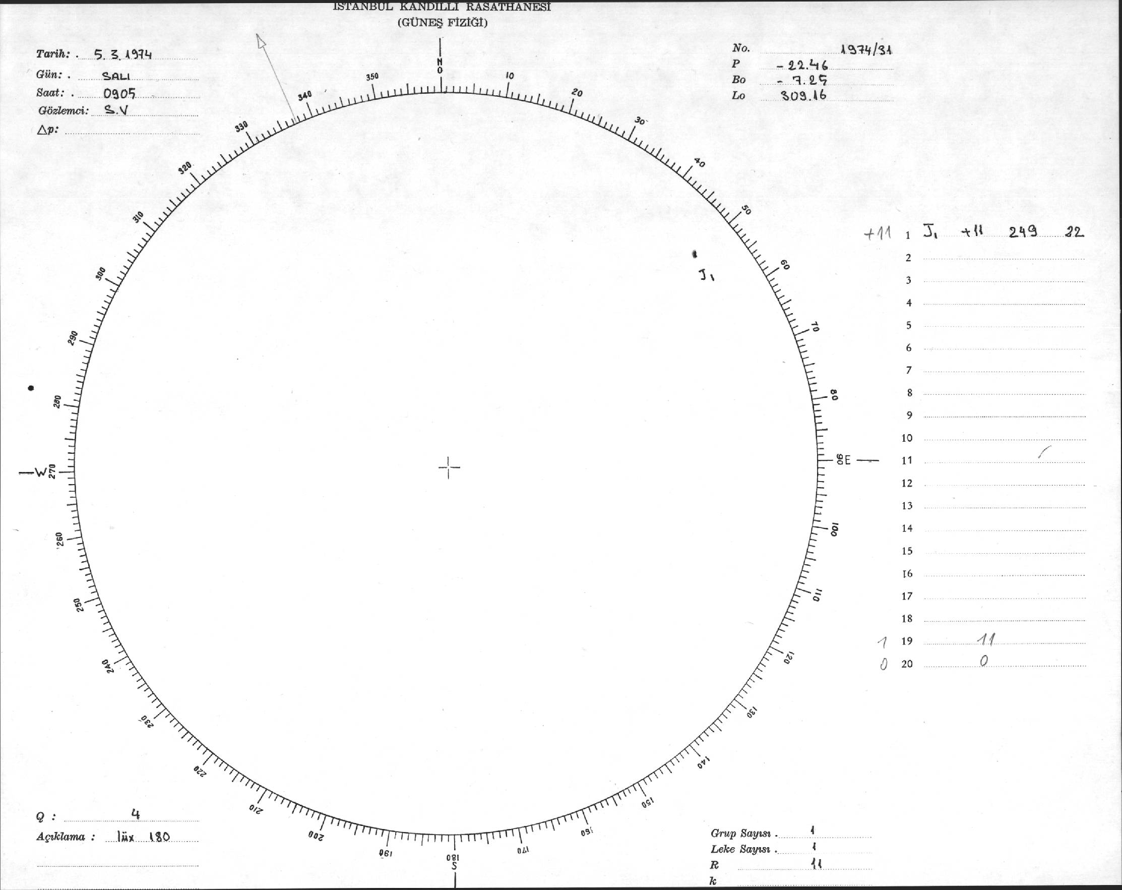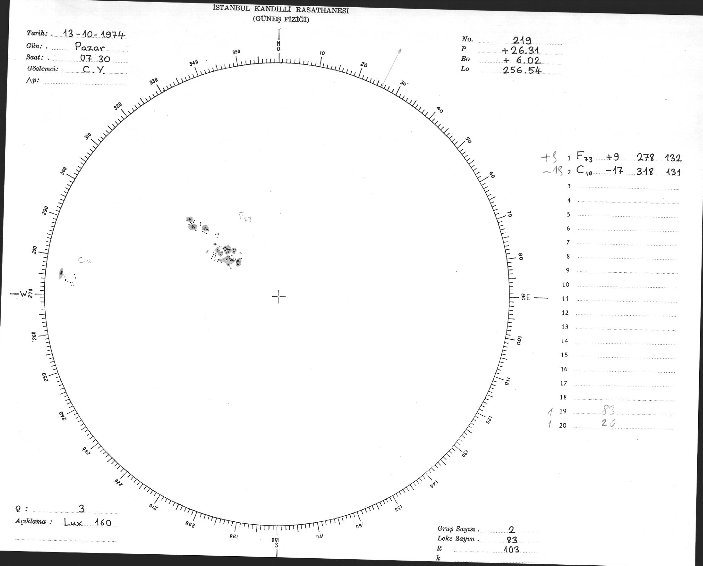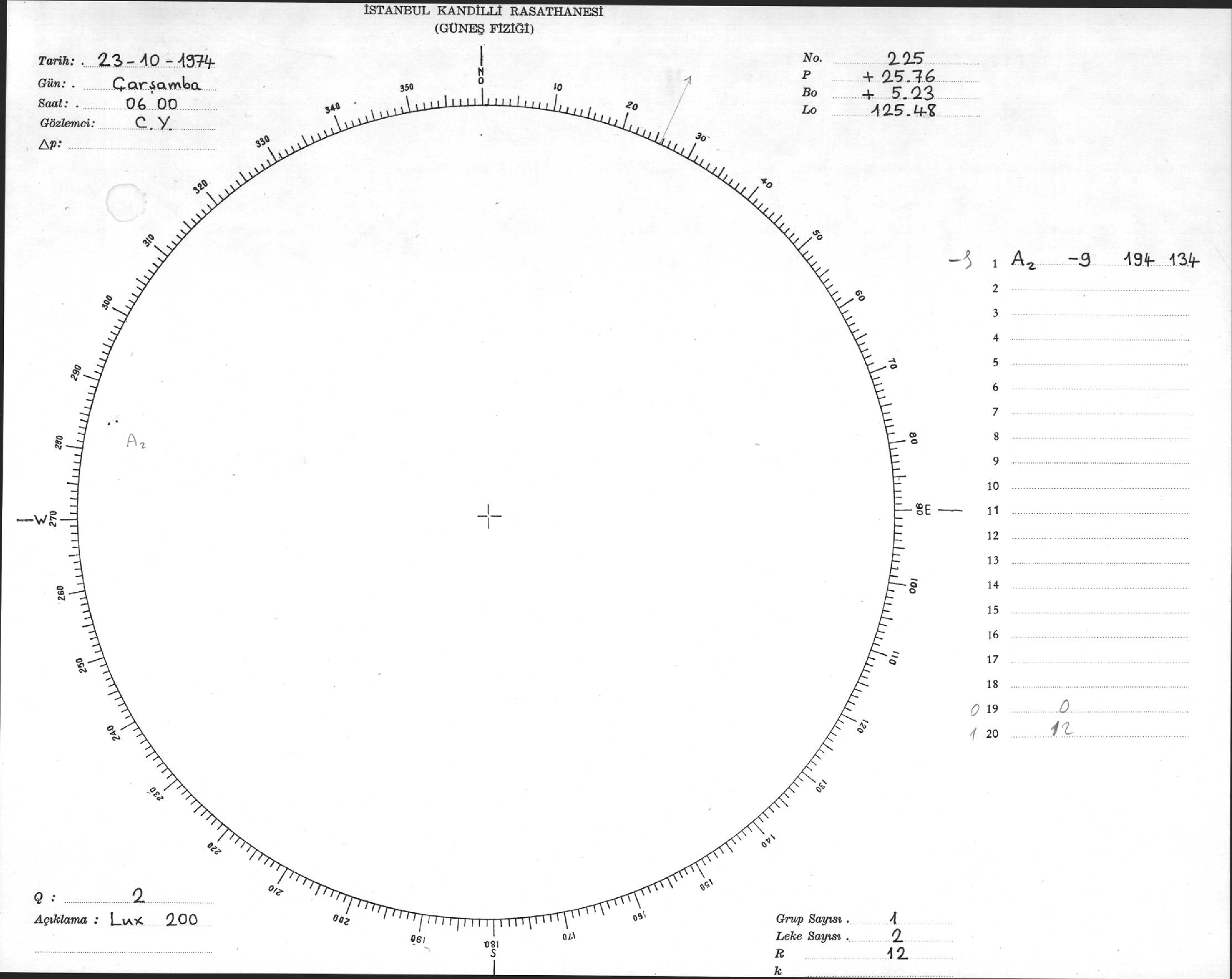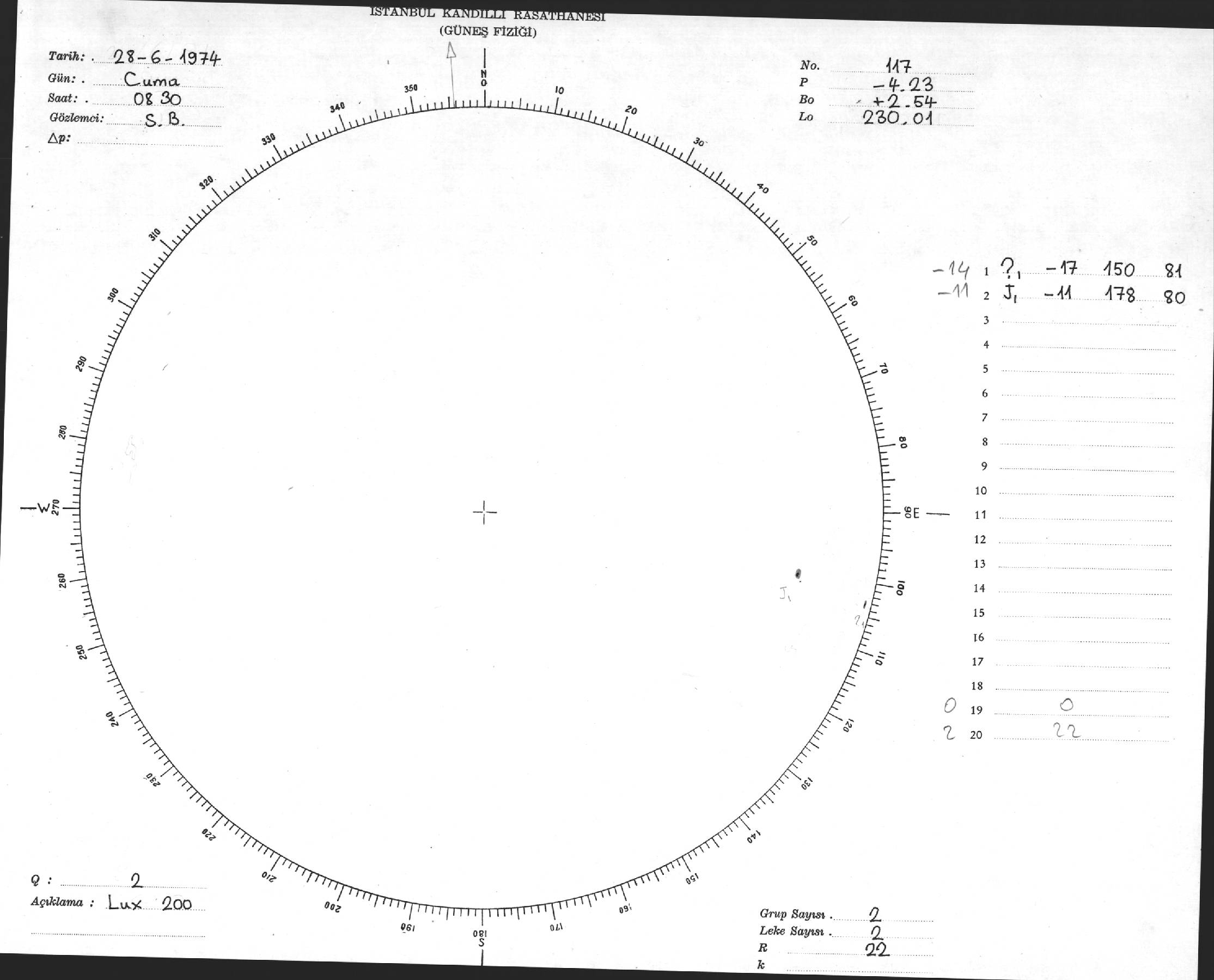 Güneş Lekesi Çizimleri / Kandilli Sunspot Drawings