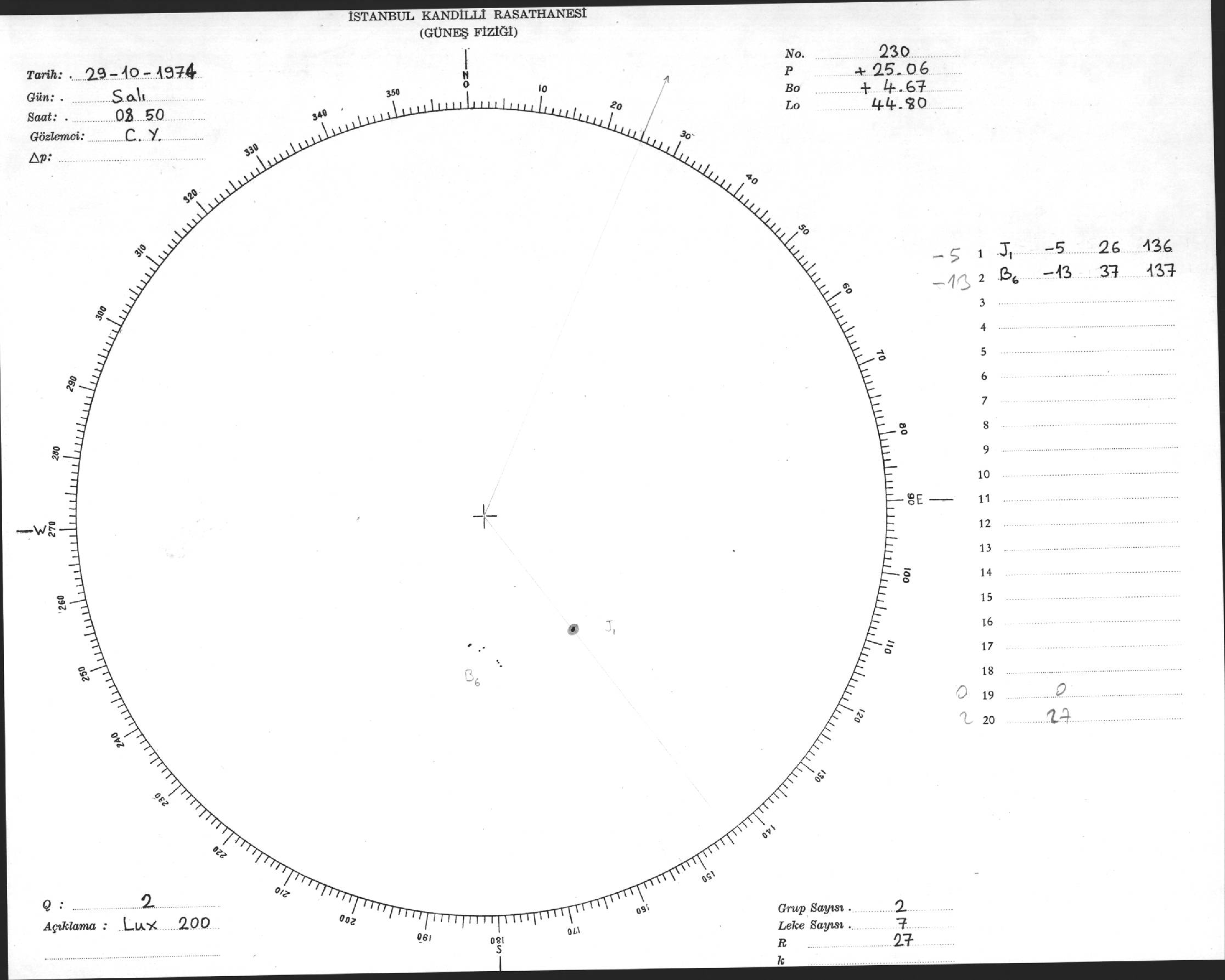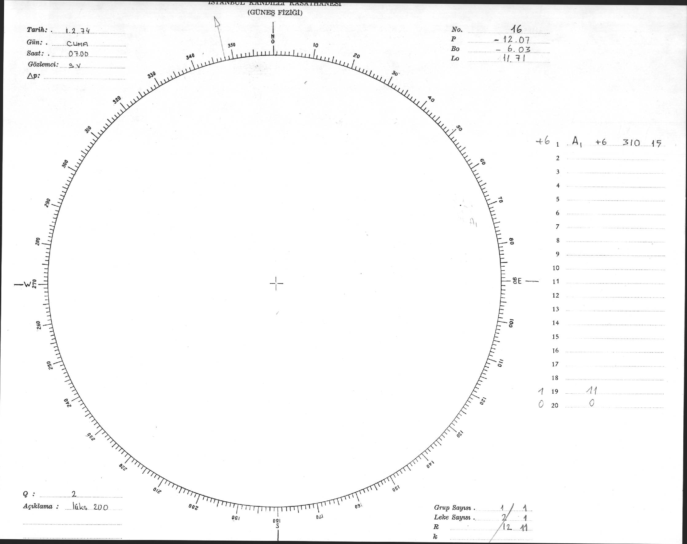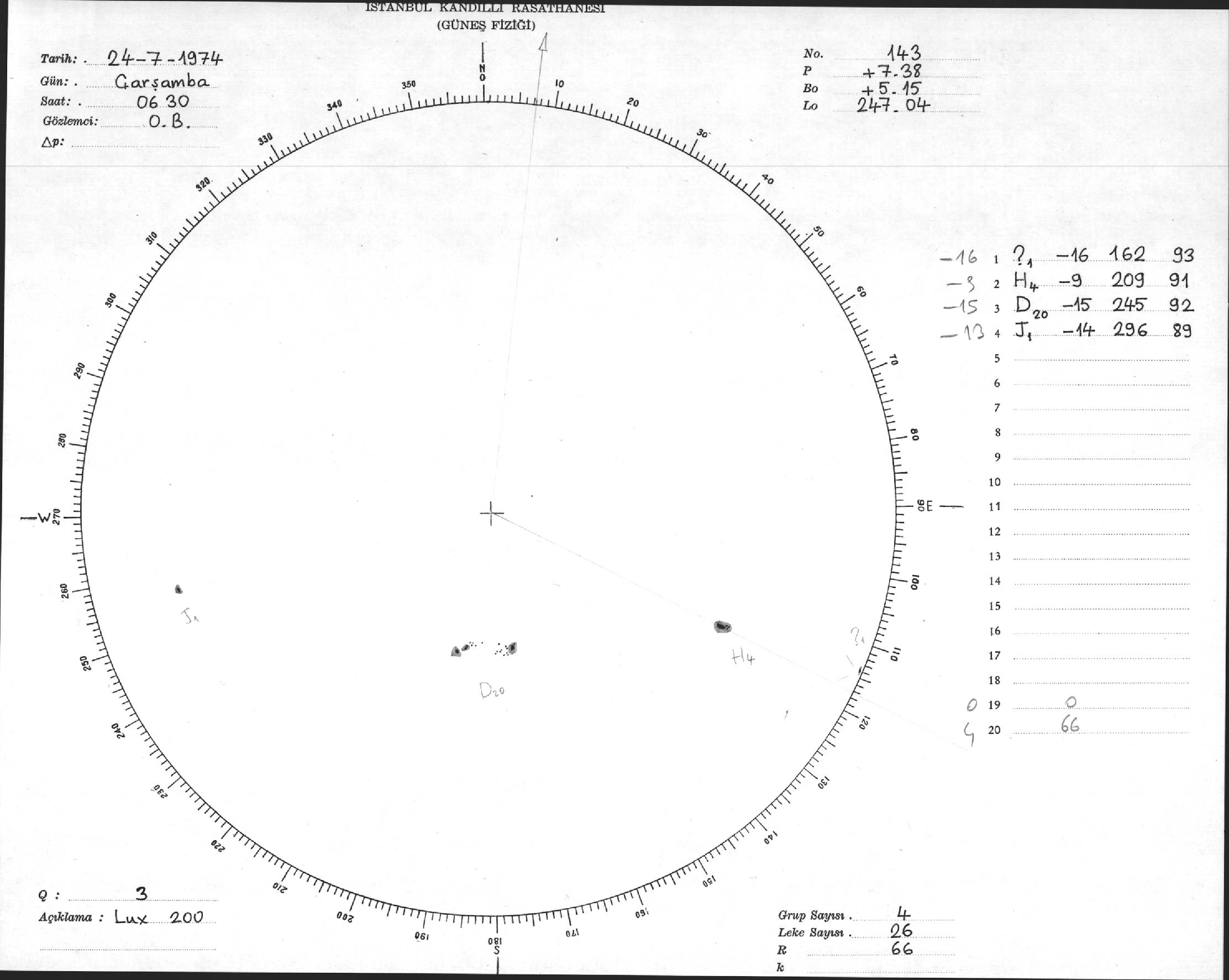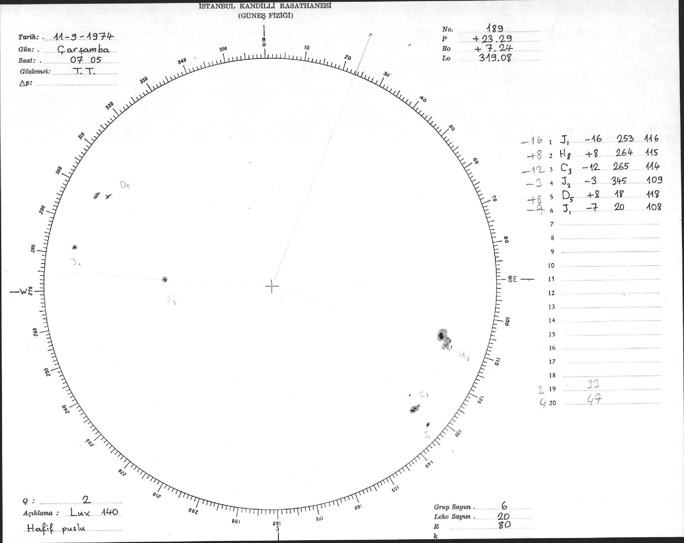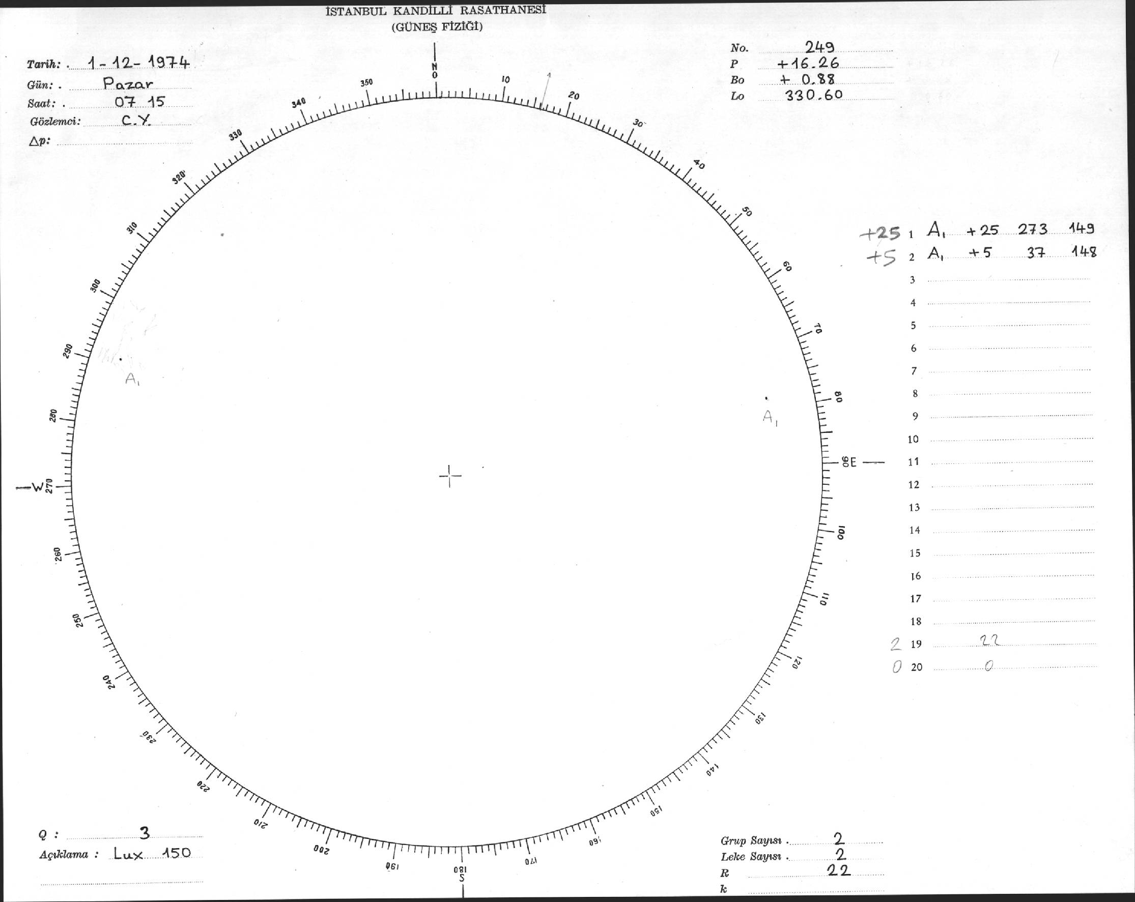 Güneş Lekesi Çizimleri / Kandilli Sunspot Drawings