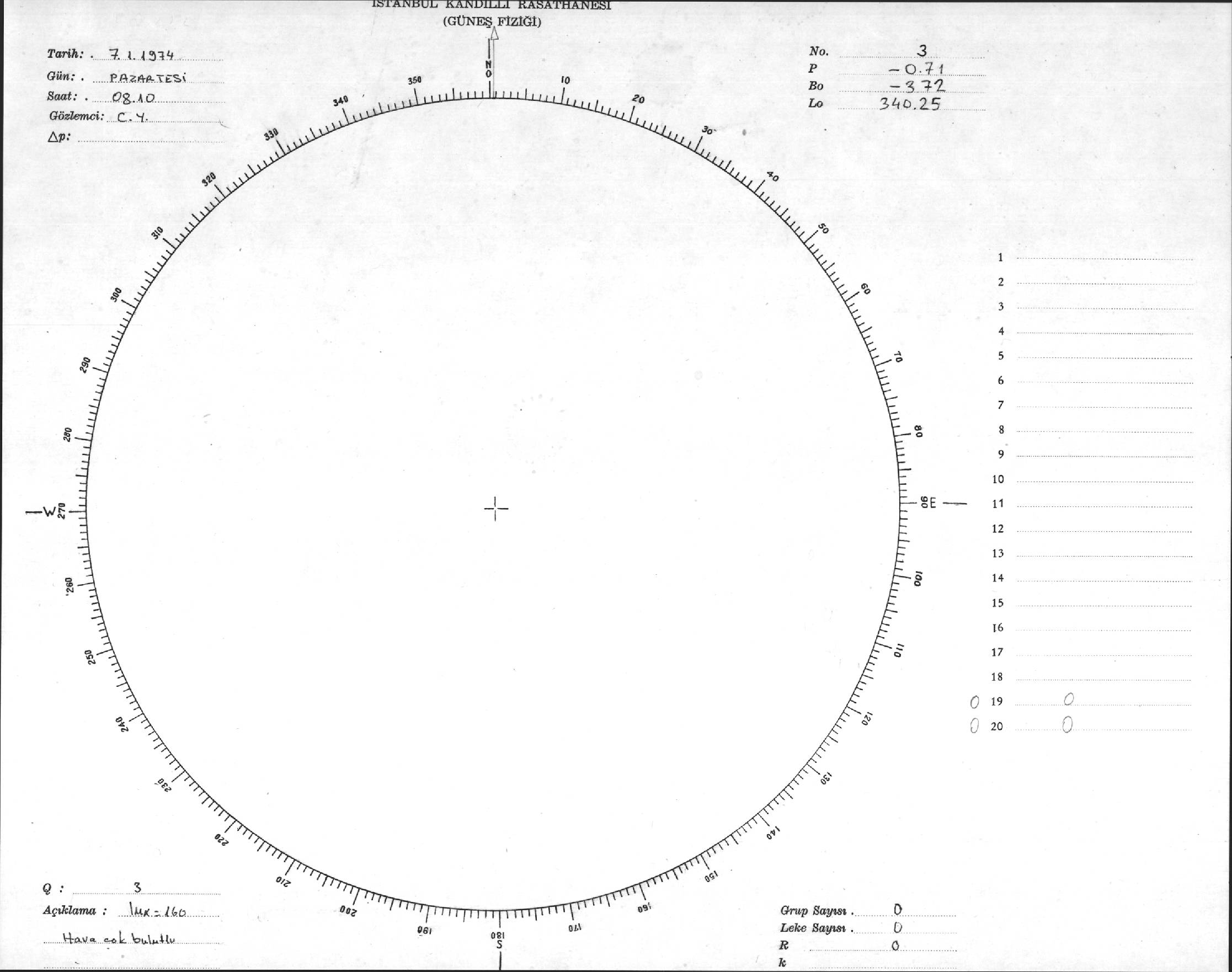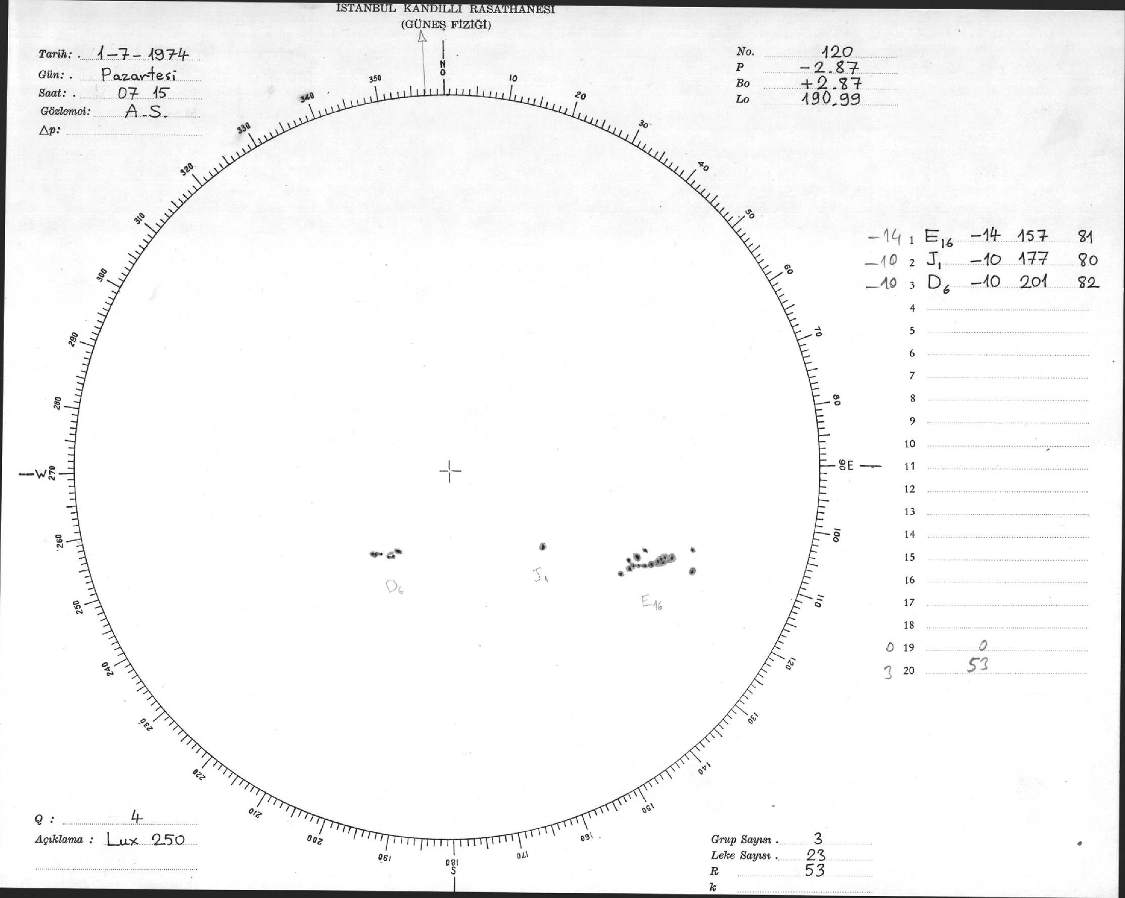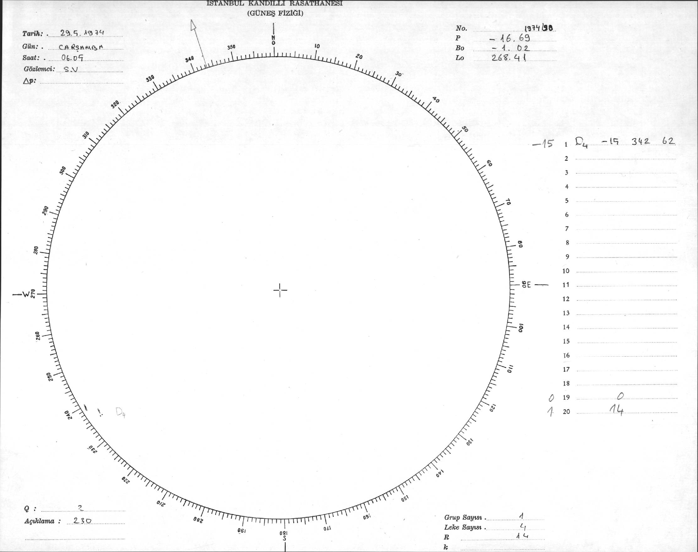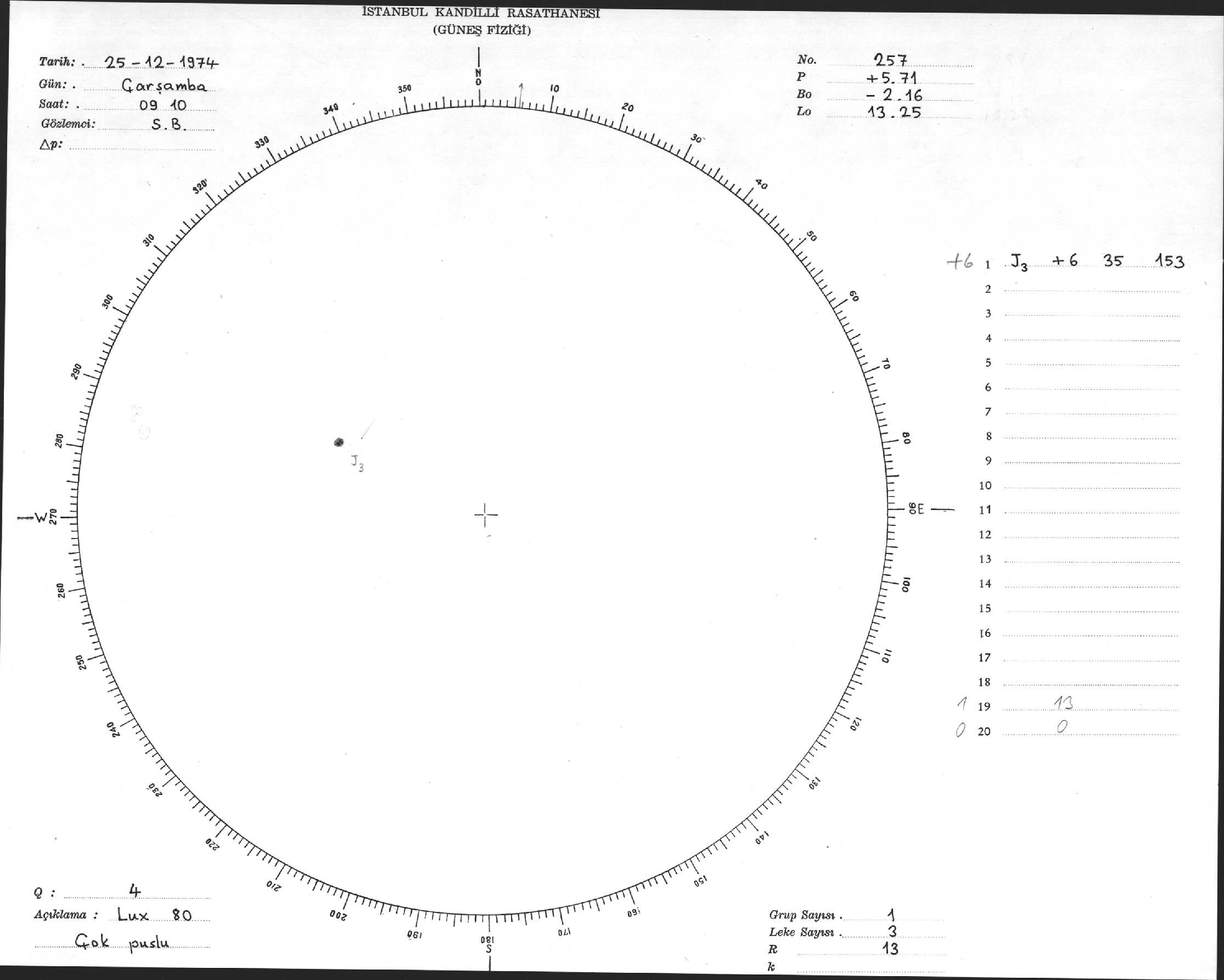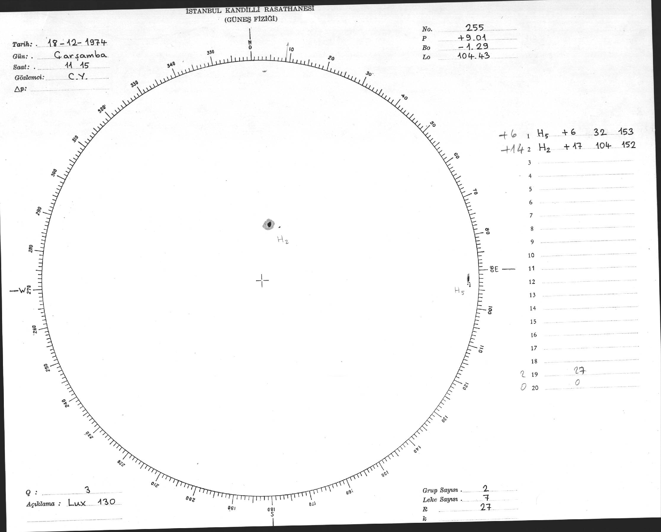 Güneş Lekesi Çizimleri / Kandilli Sunspot Drawings