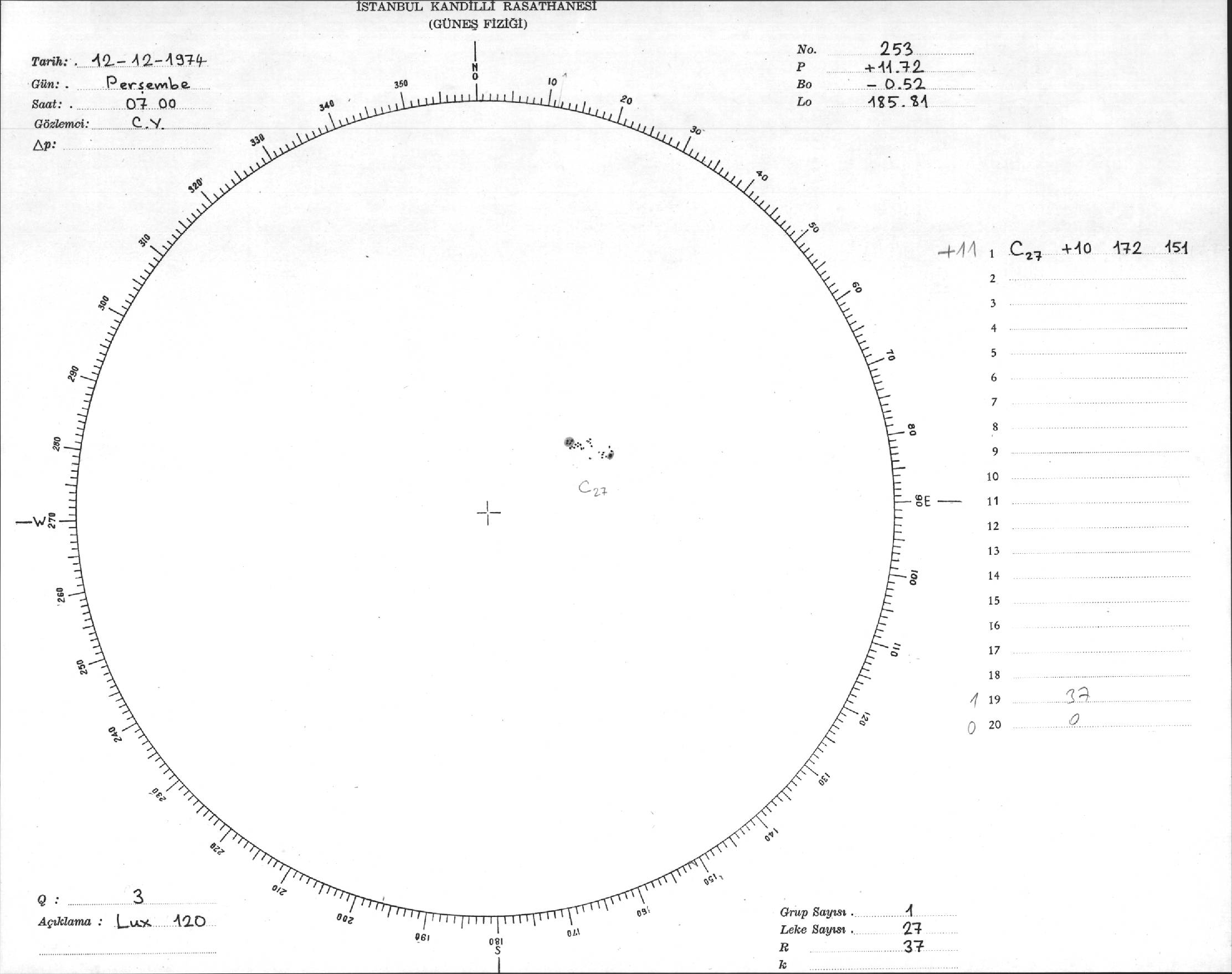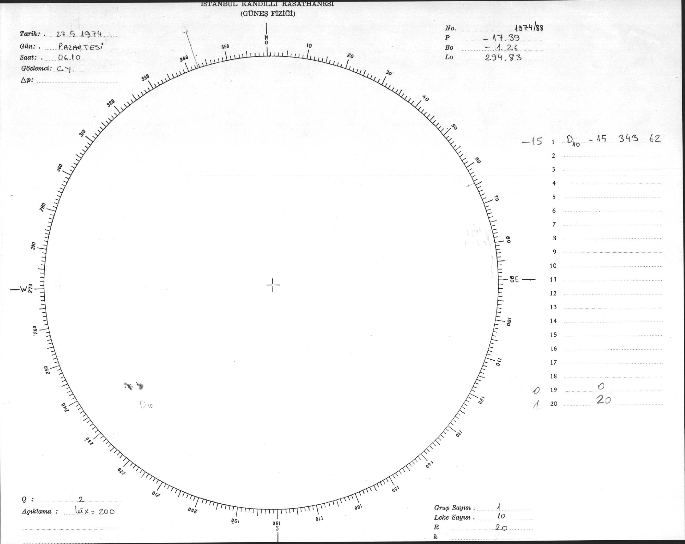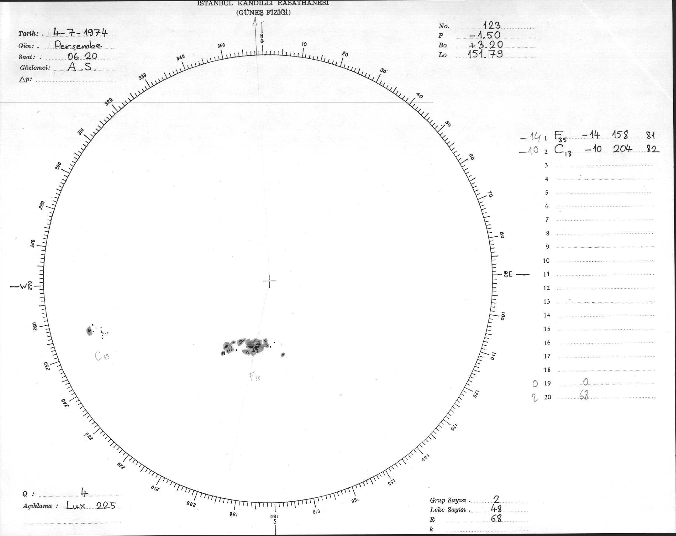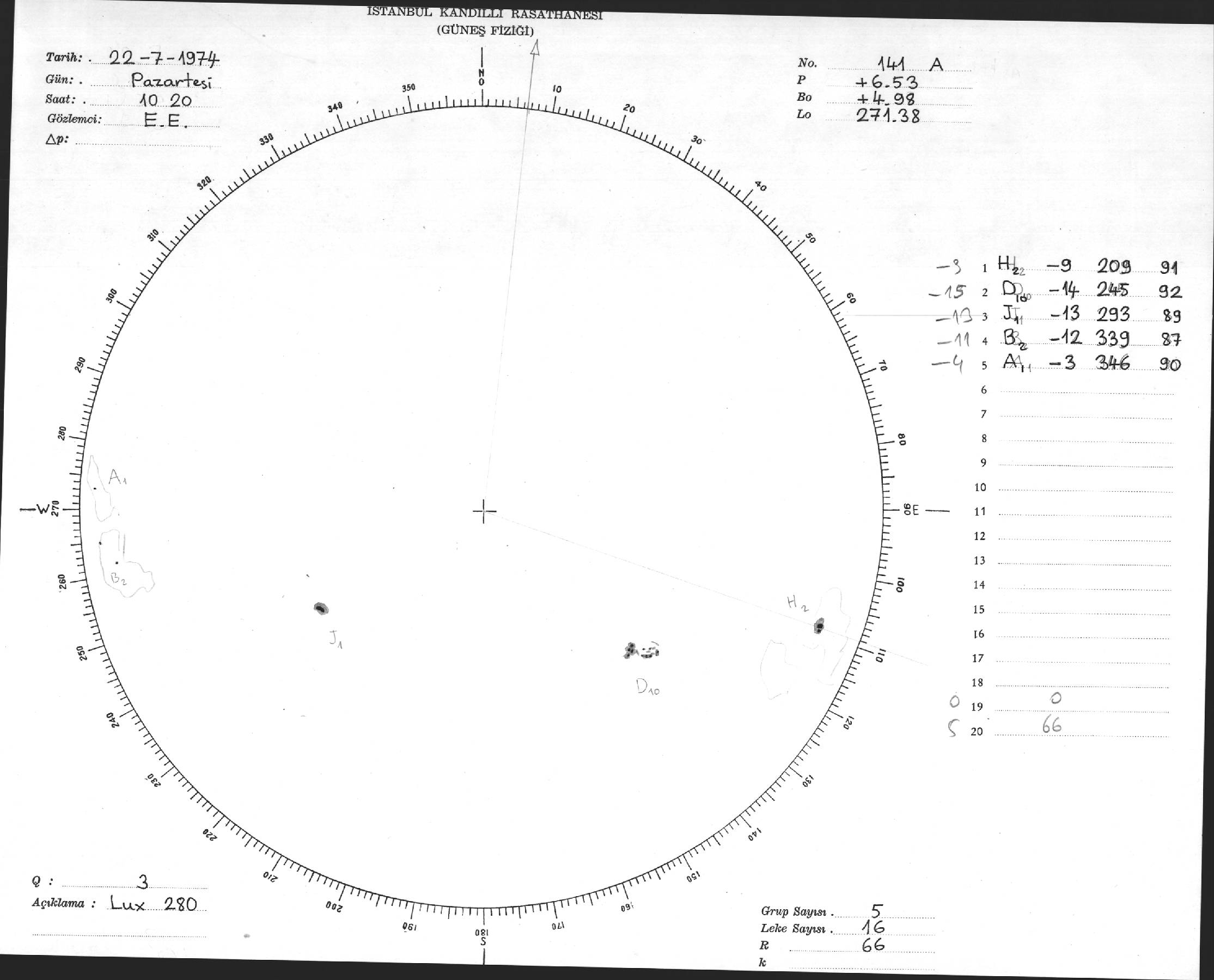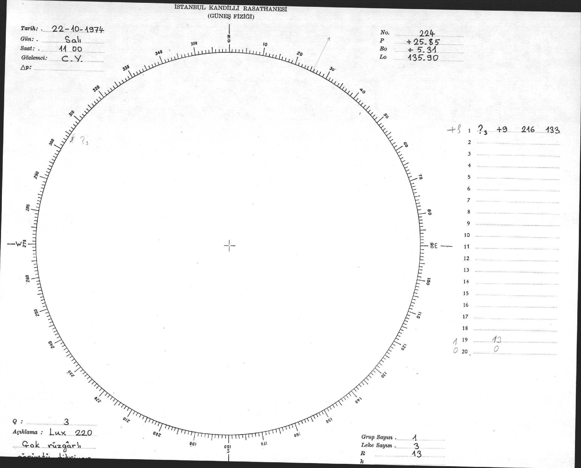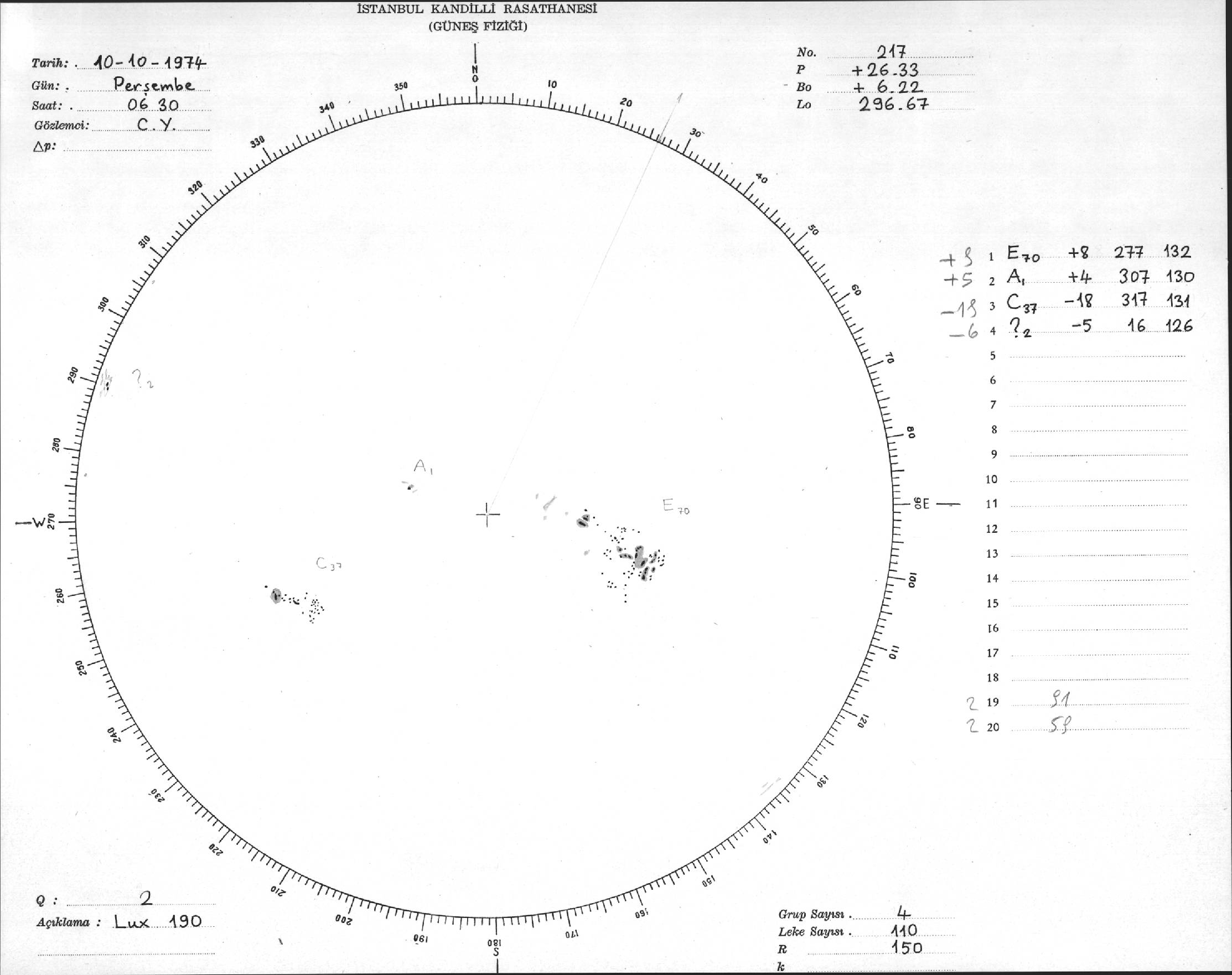 Güneş Lekesi Çizimleri / Kandilli Sunspot Drawings