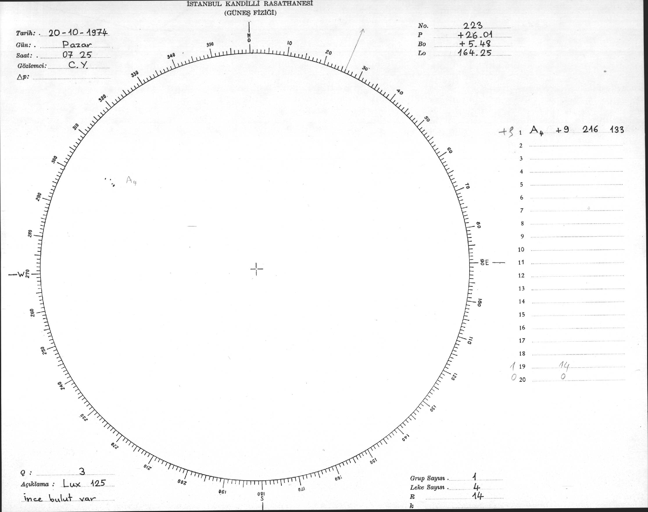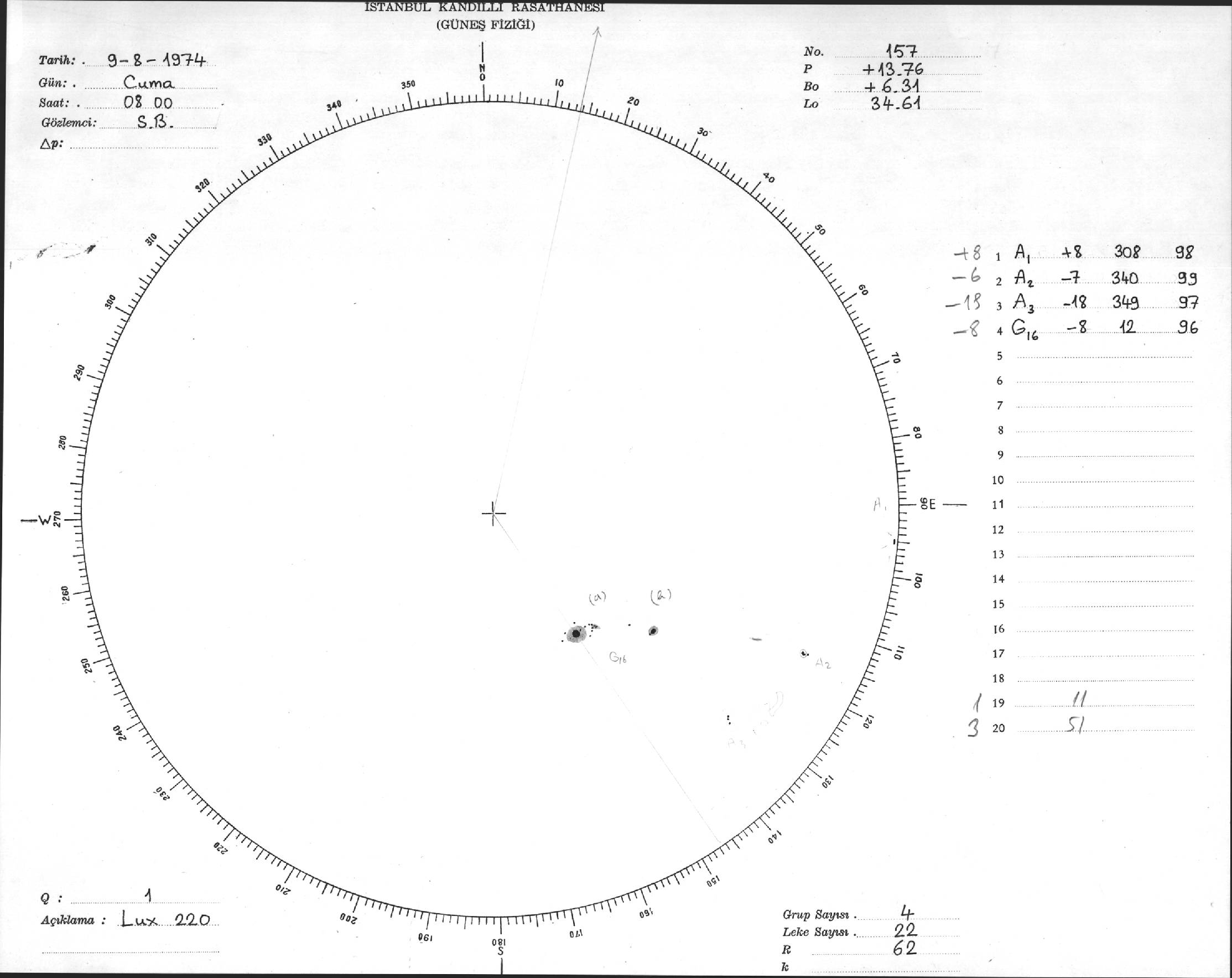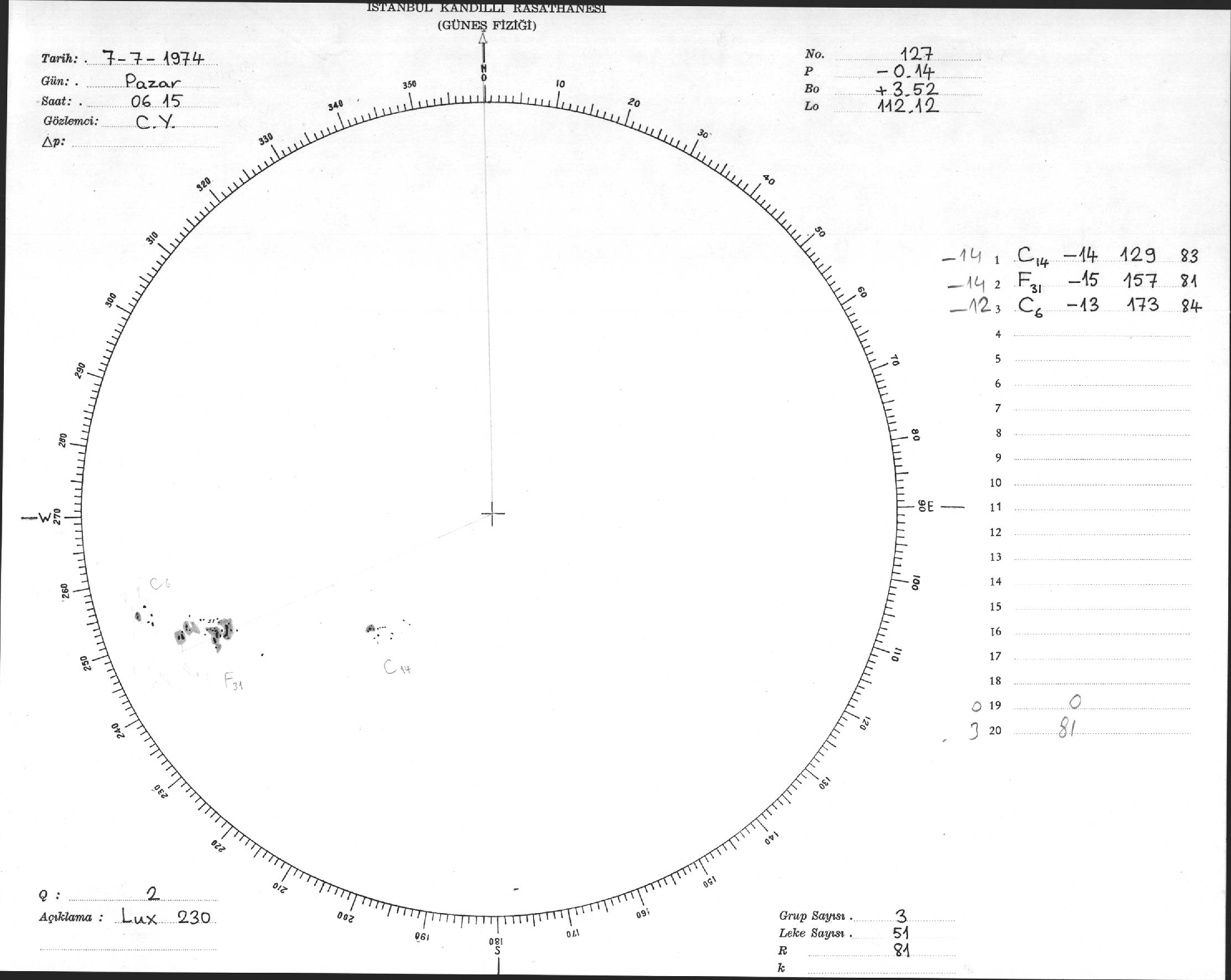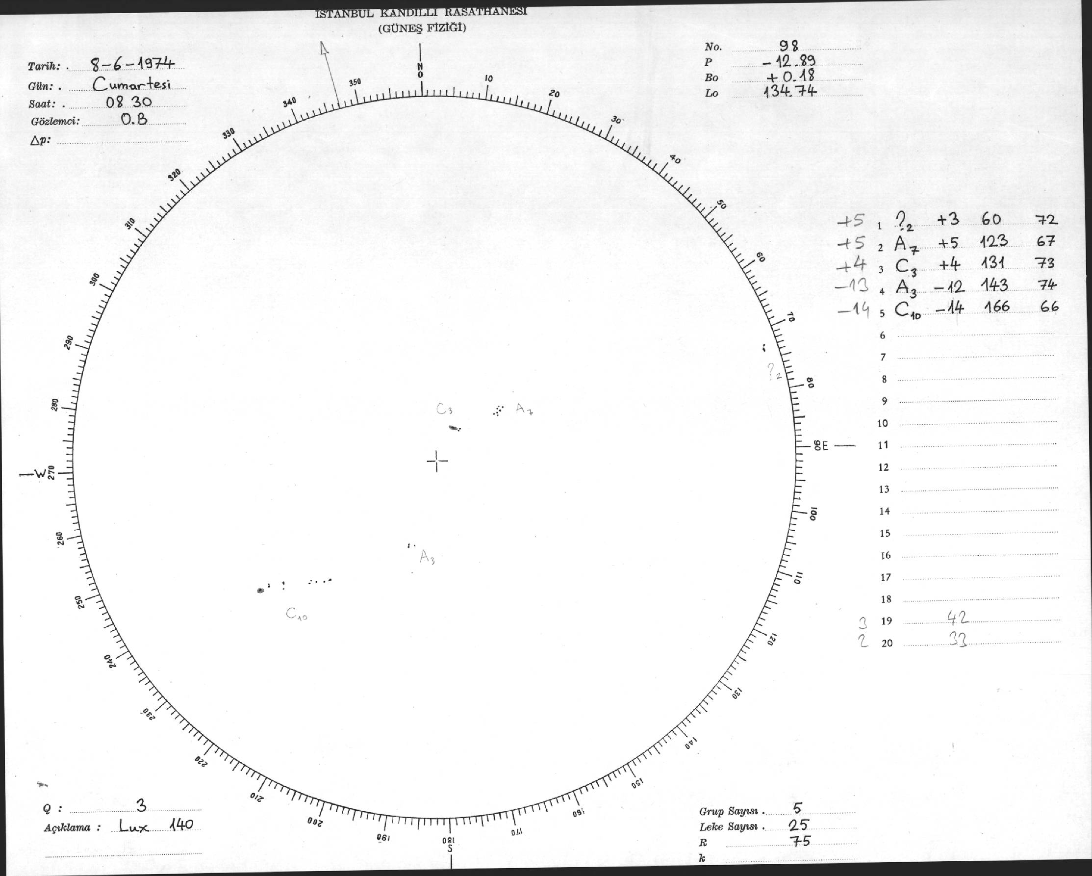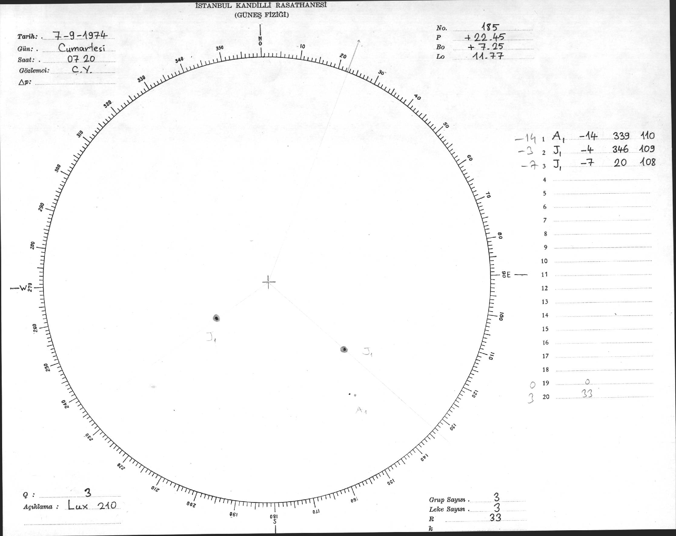 Güneş Lekesi Çizimleri / Kandilli Sunspot Drawings