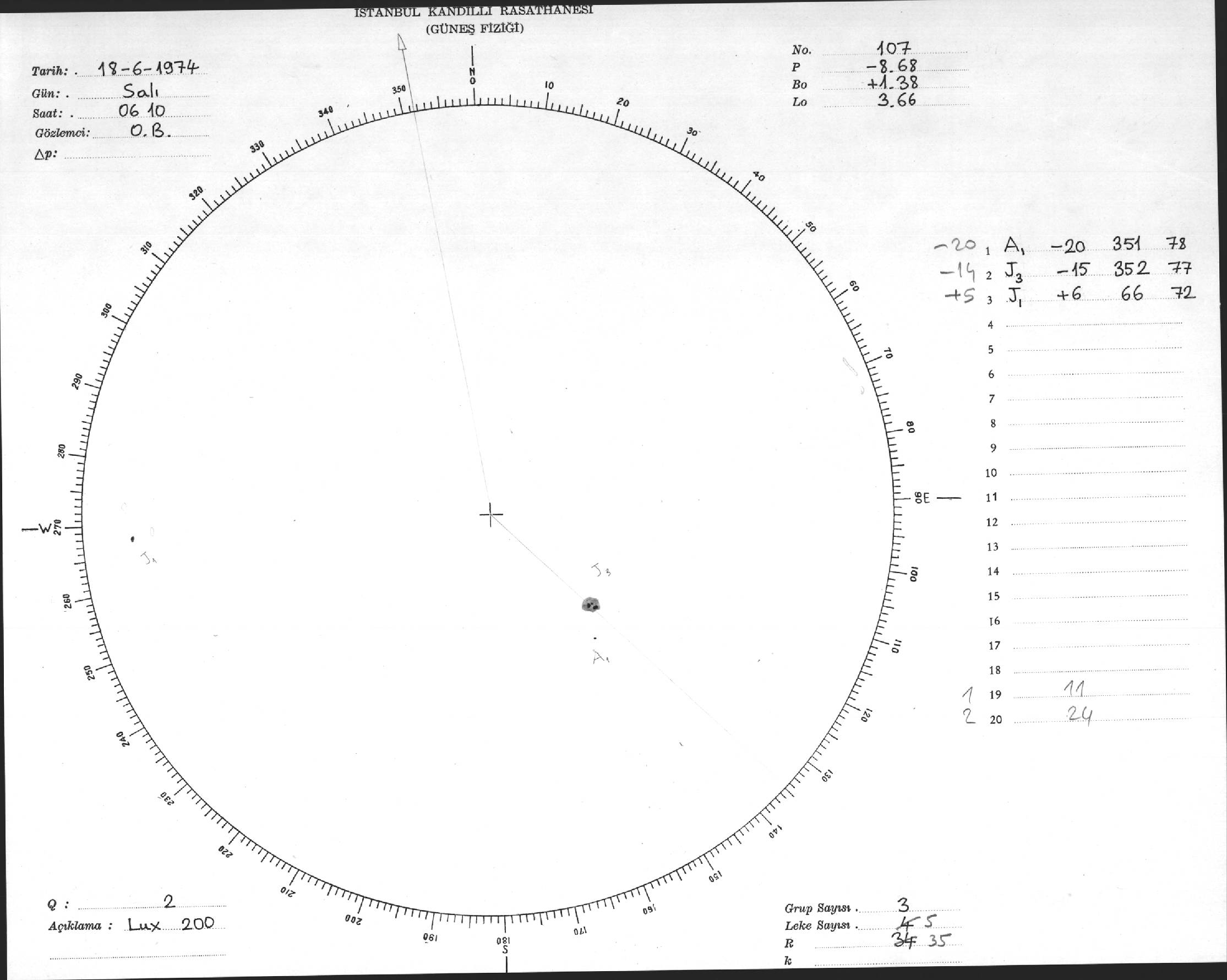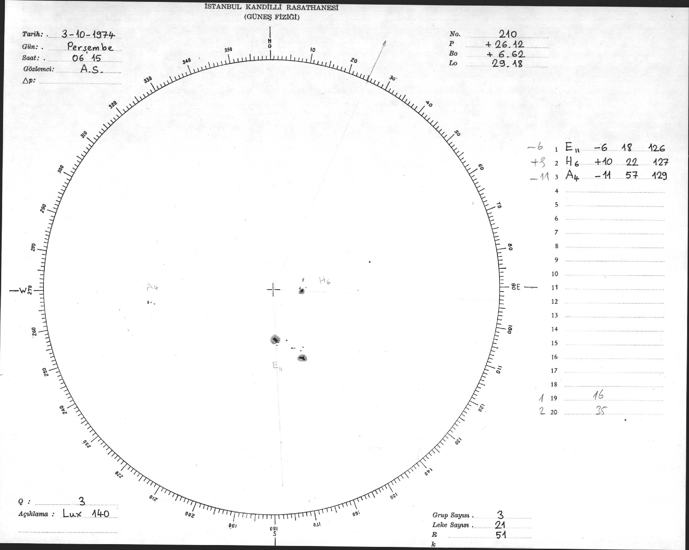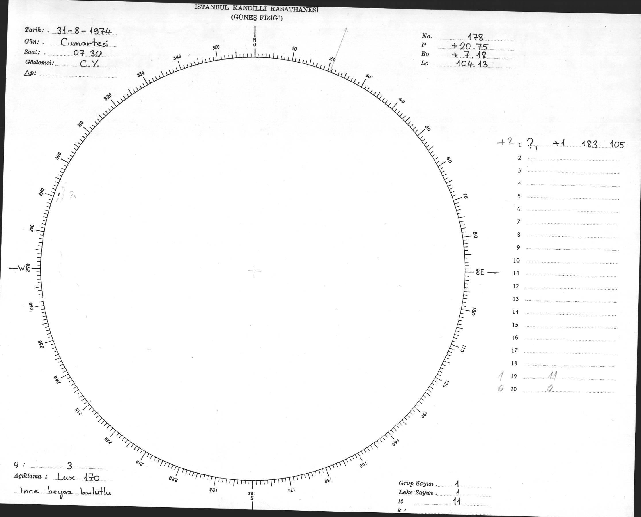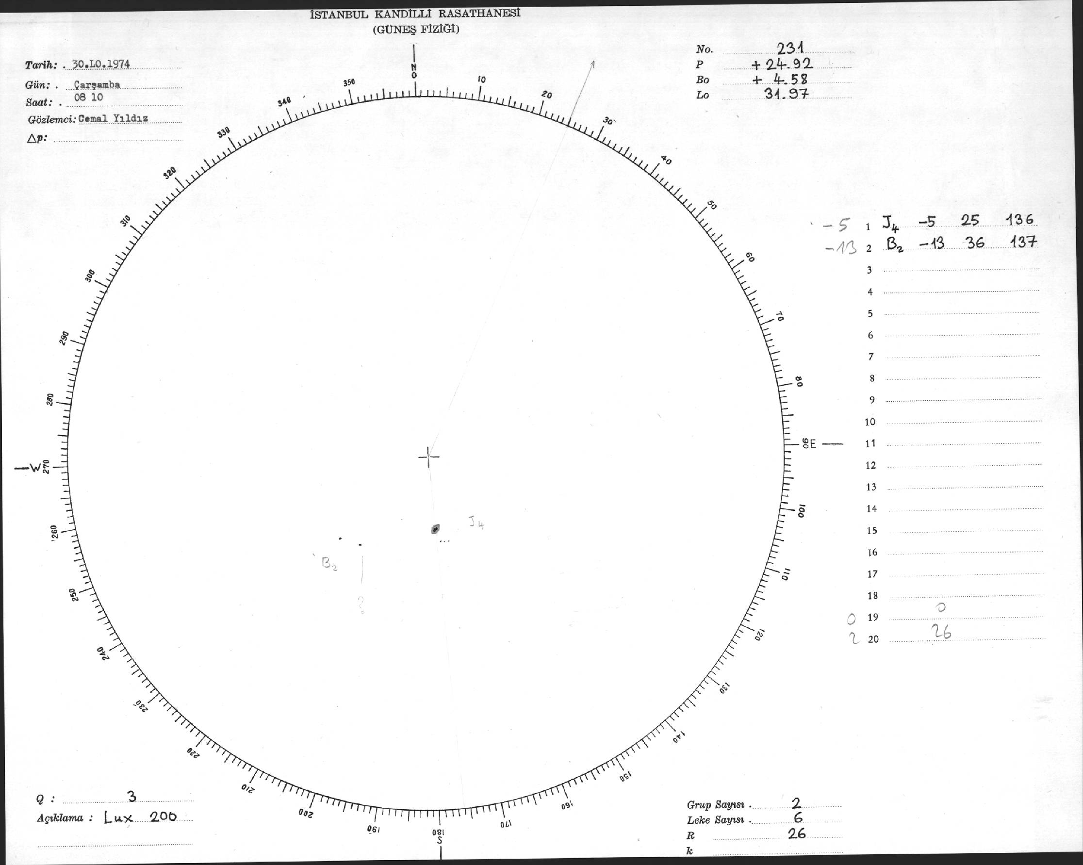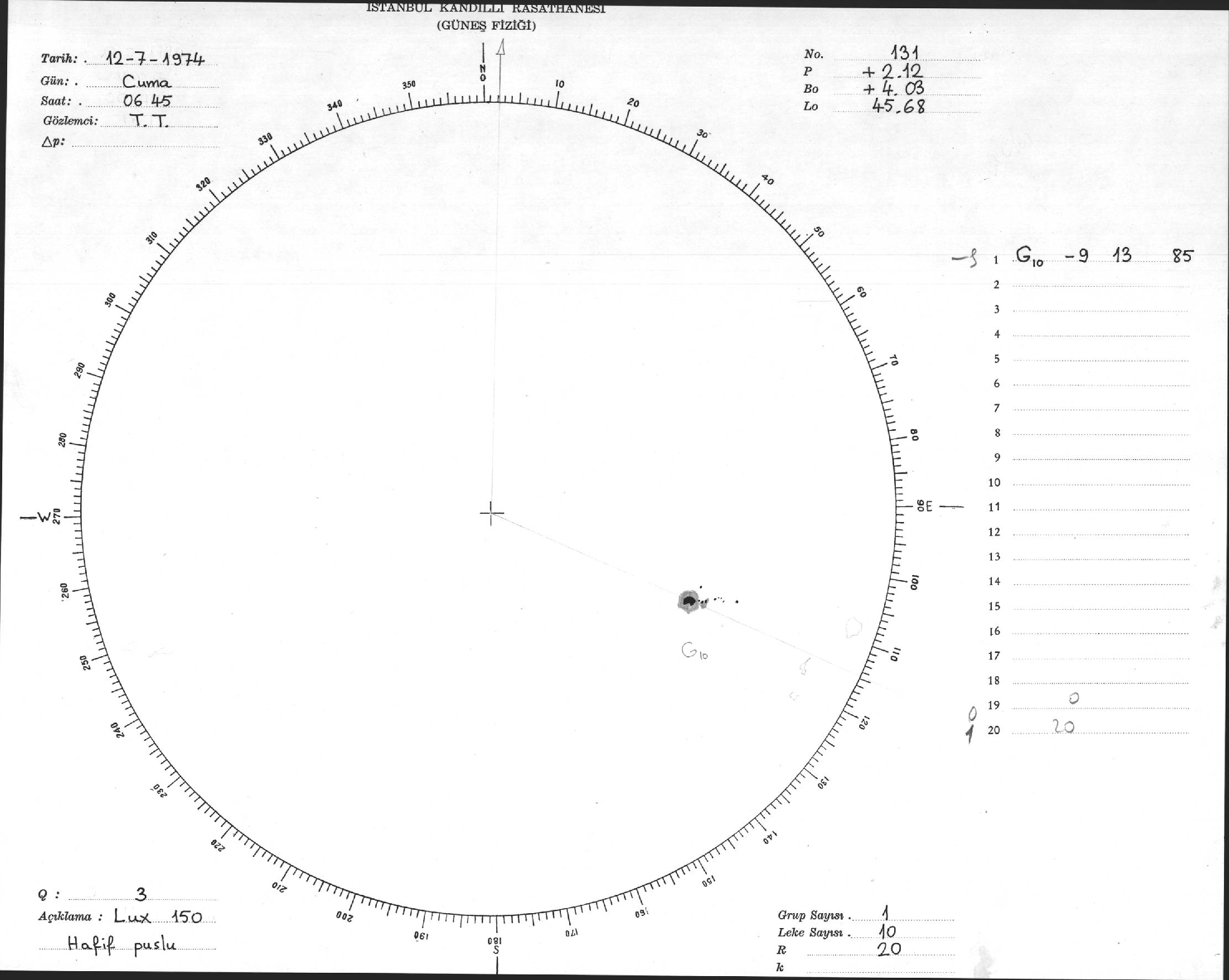 Güneş Lekesi Çizimleri / Kandilli Sunspot Drawings