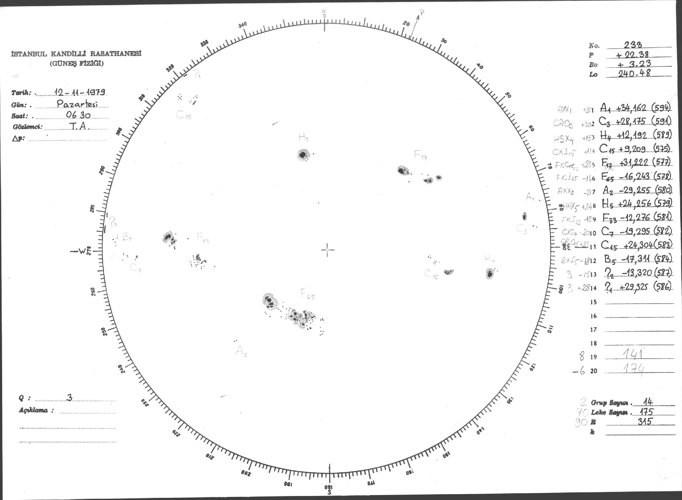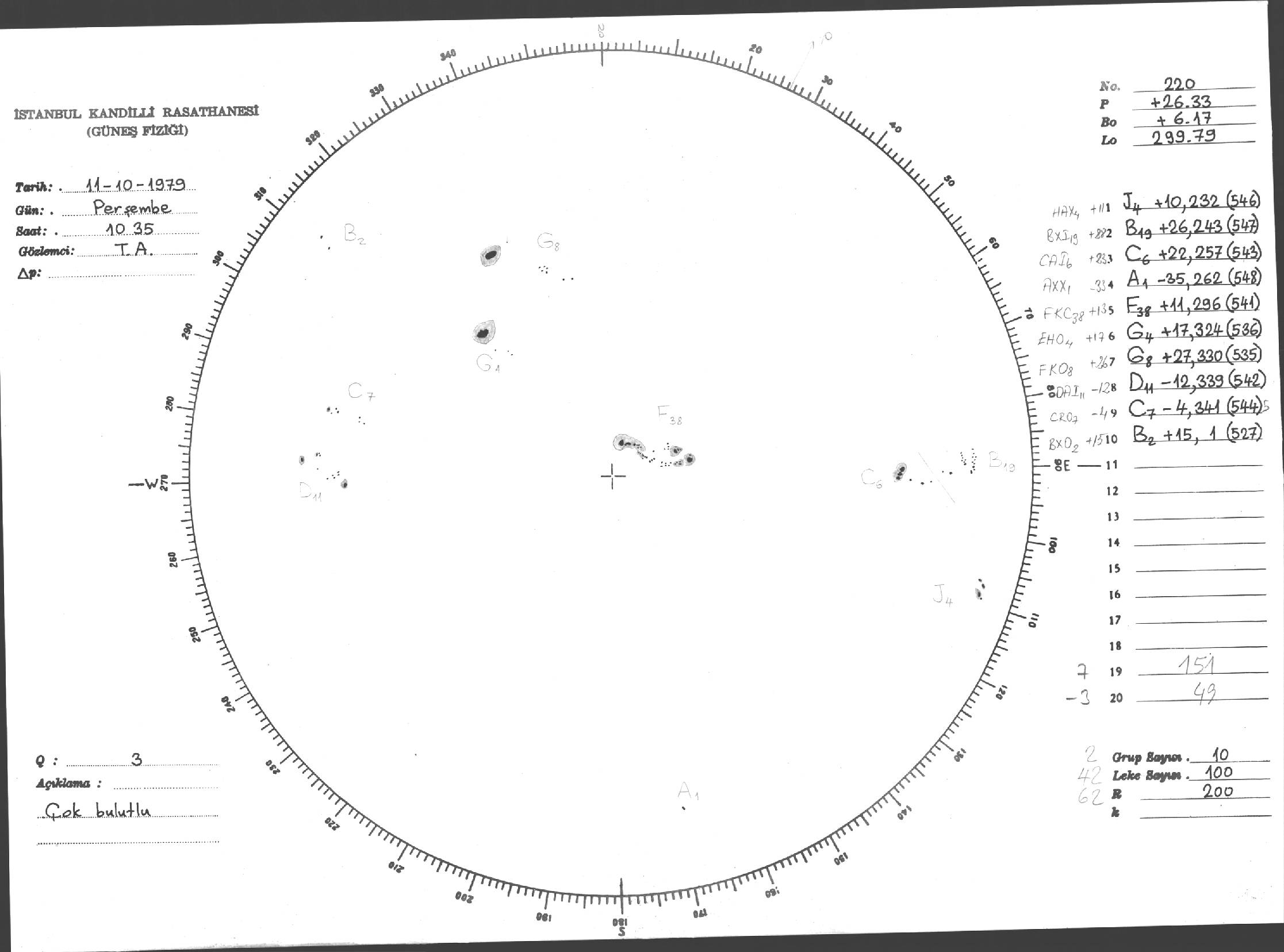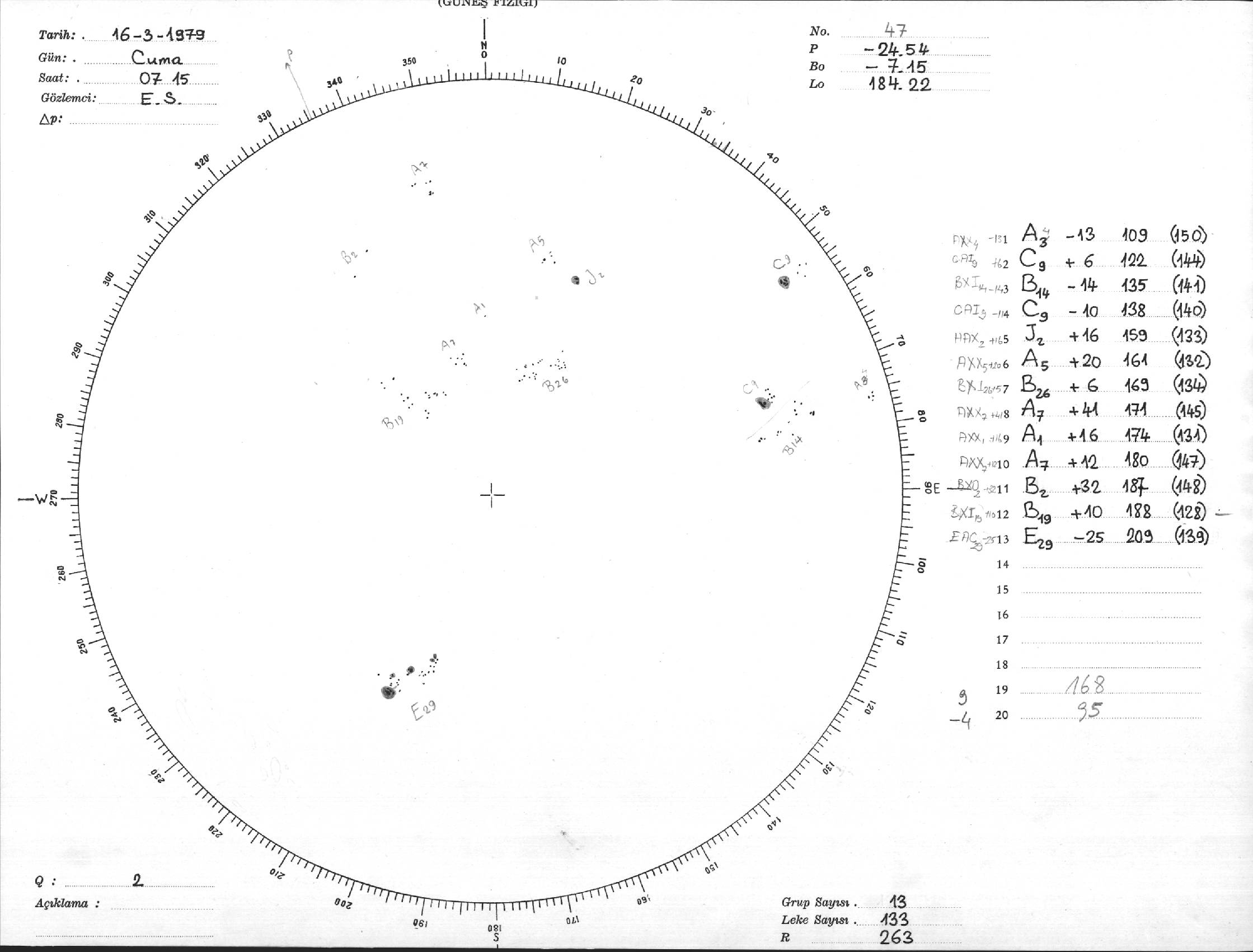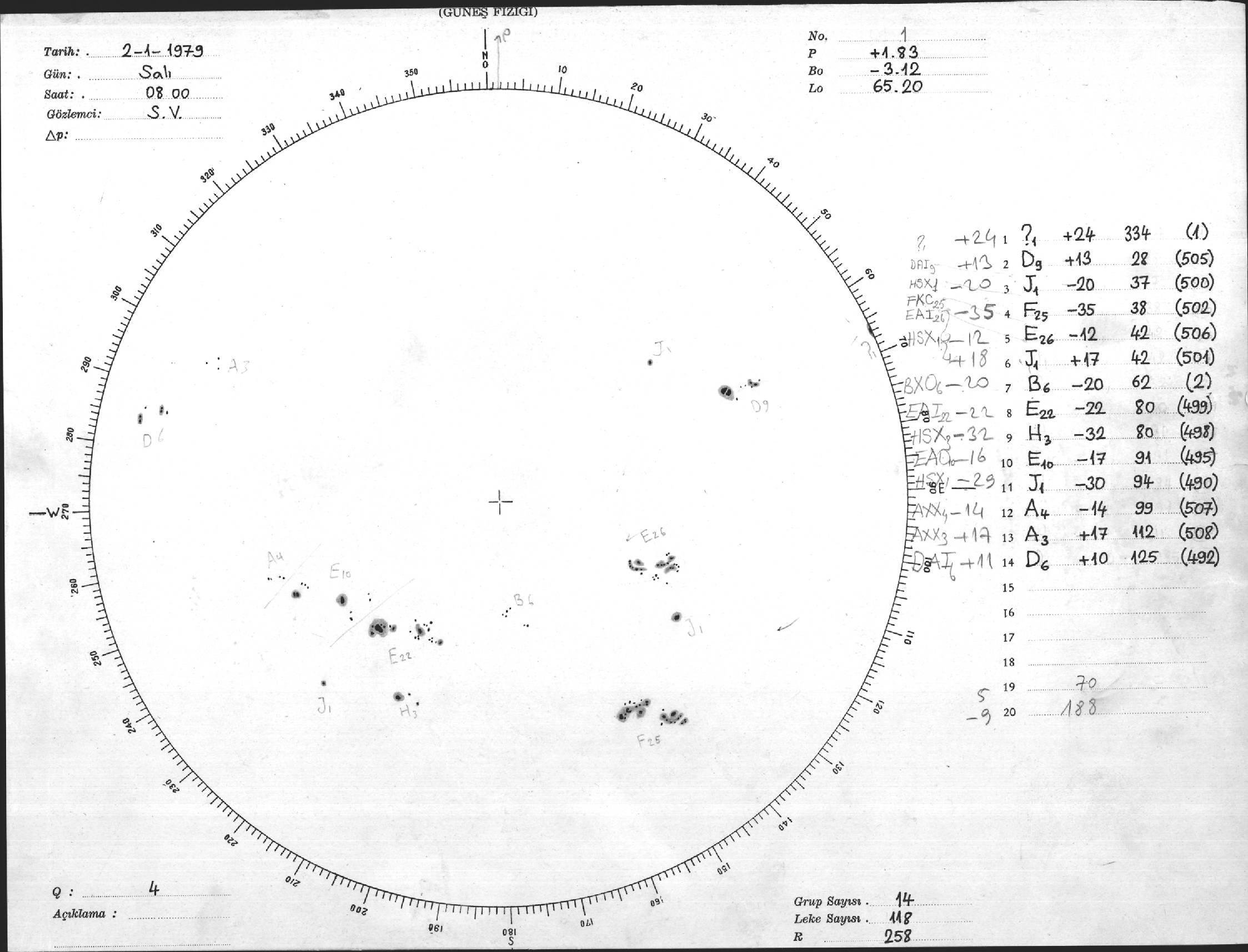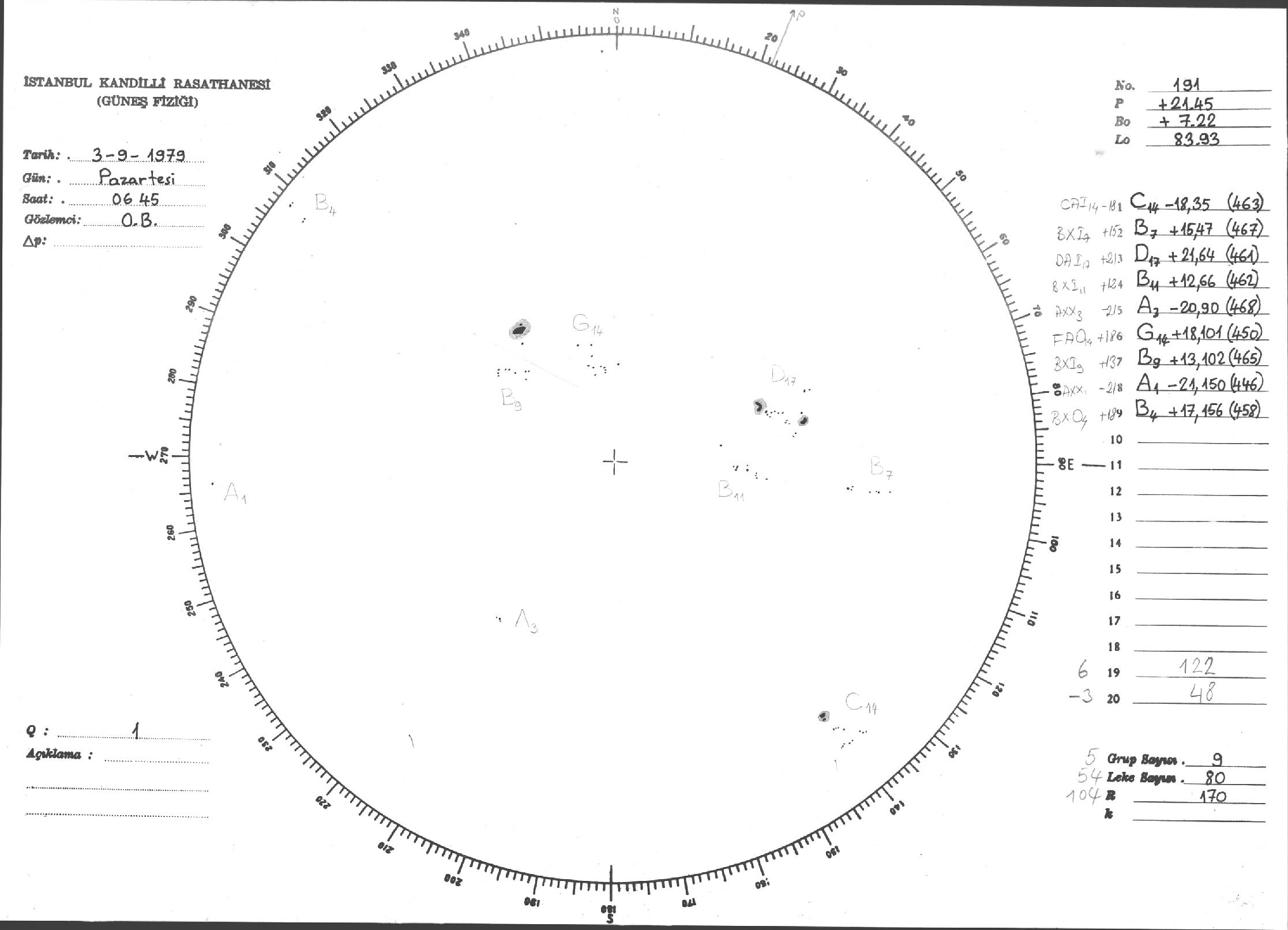 Güneş Lekesi Çizimleri / Kandilli Sunspot Drawings