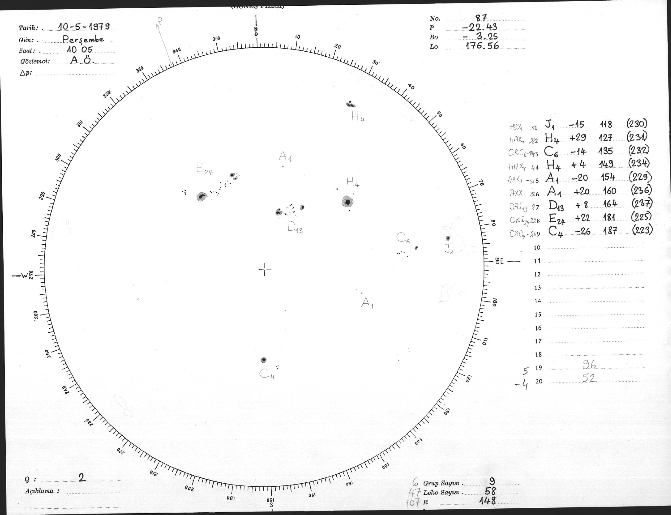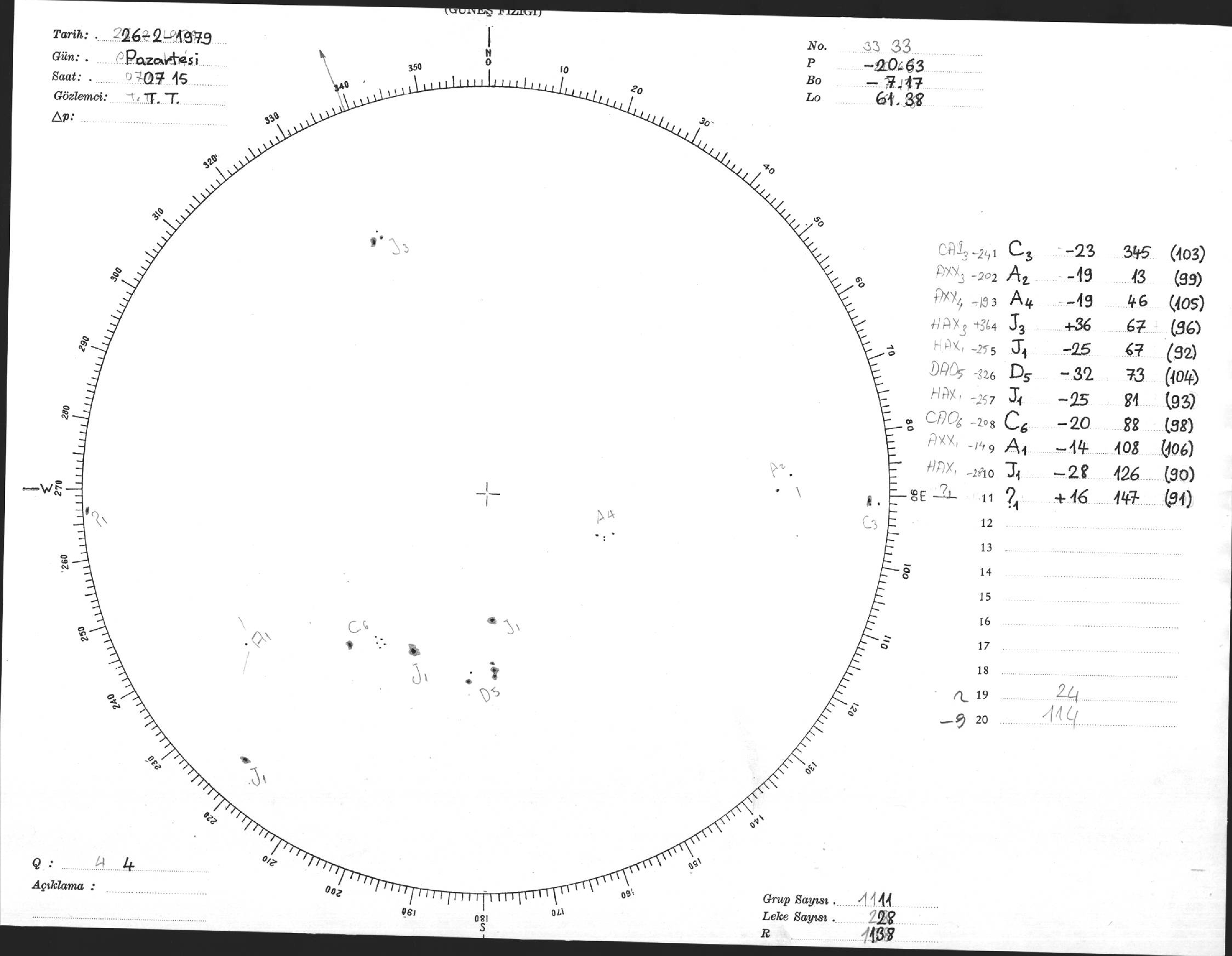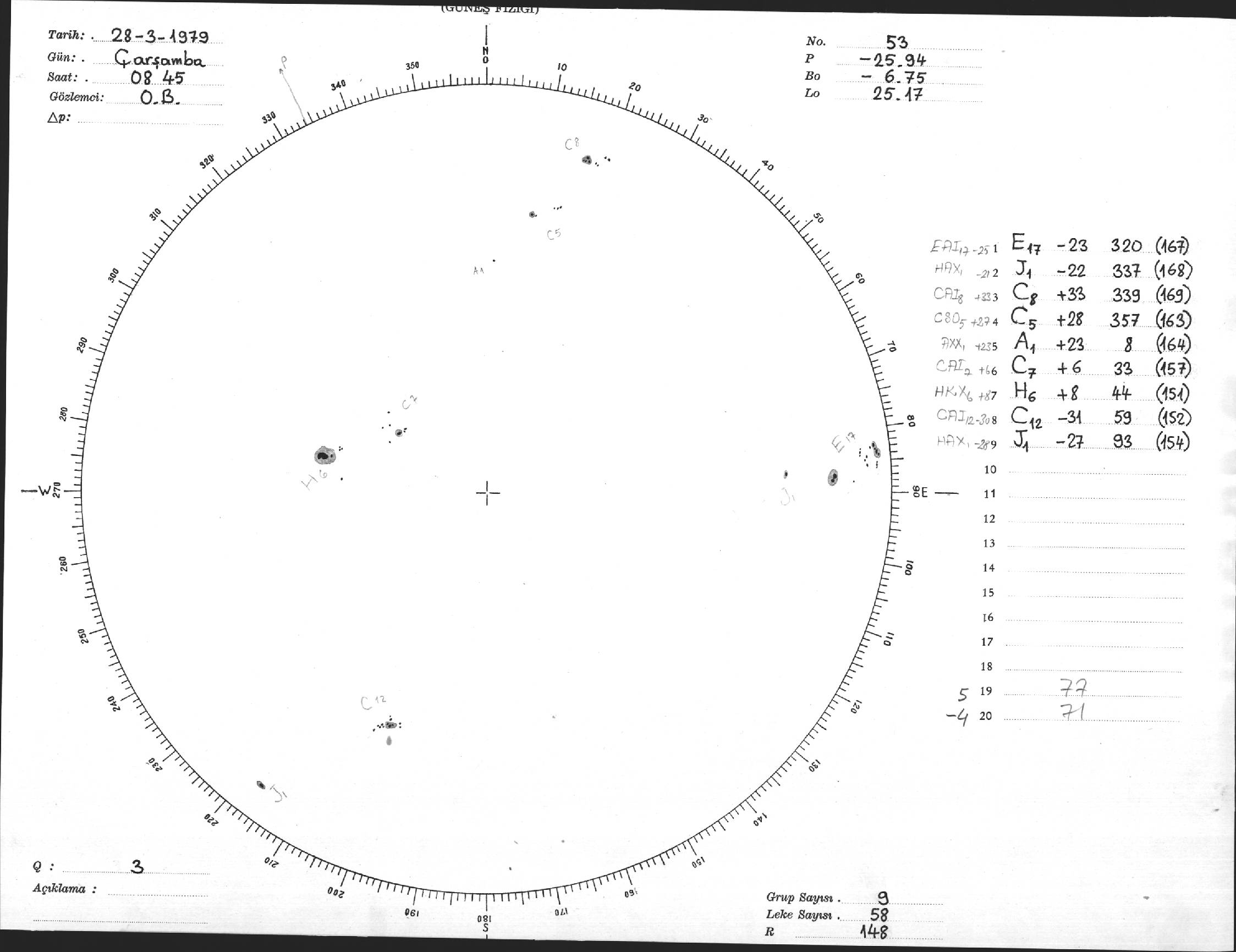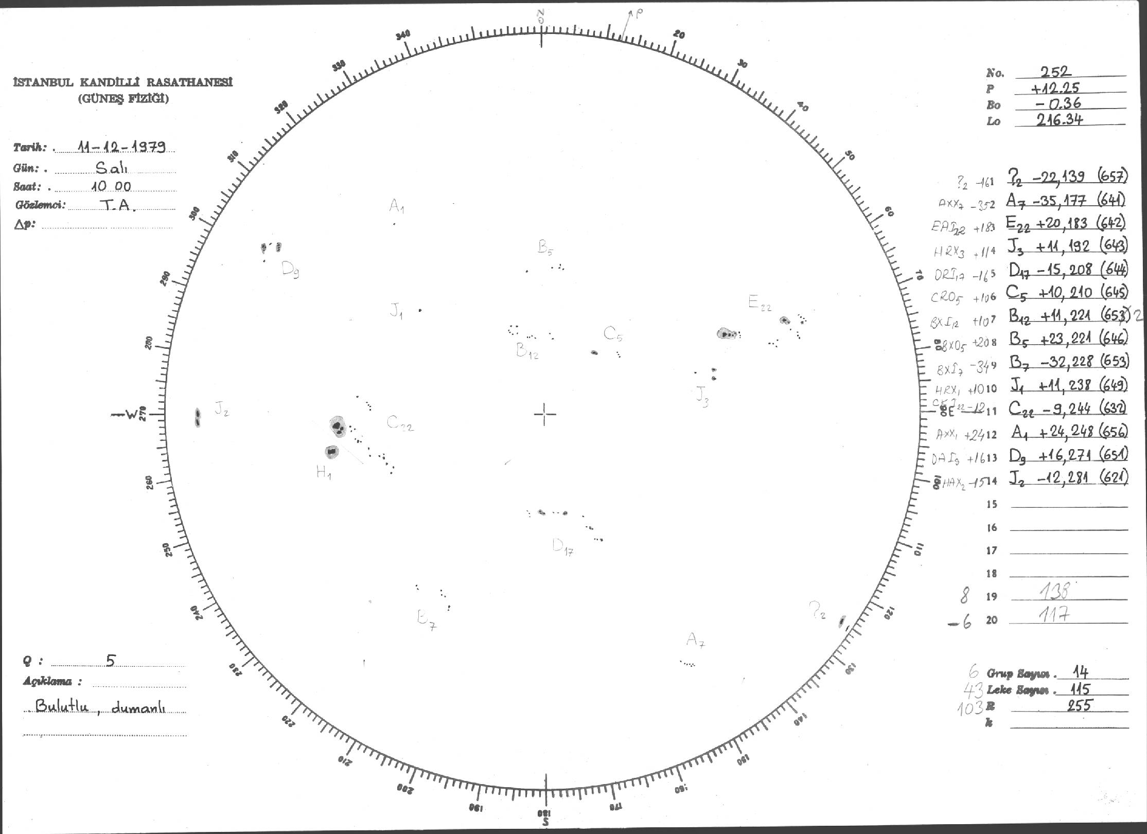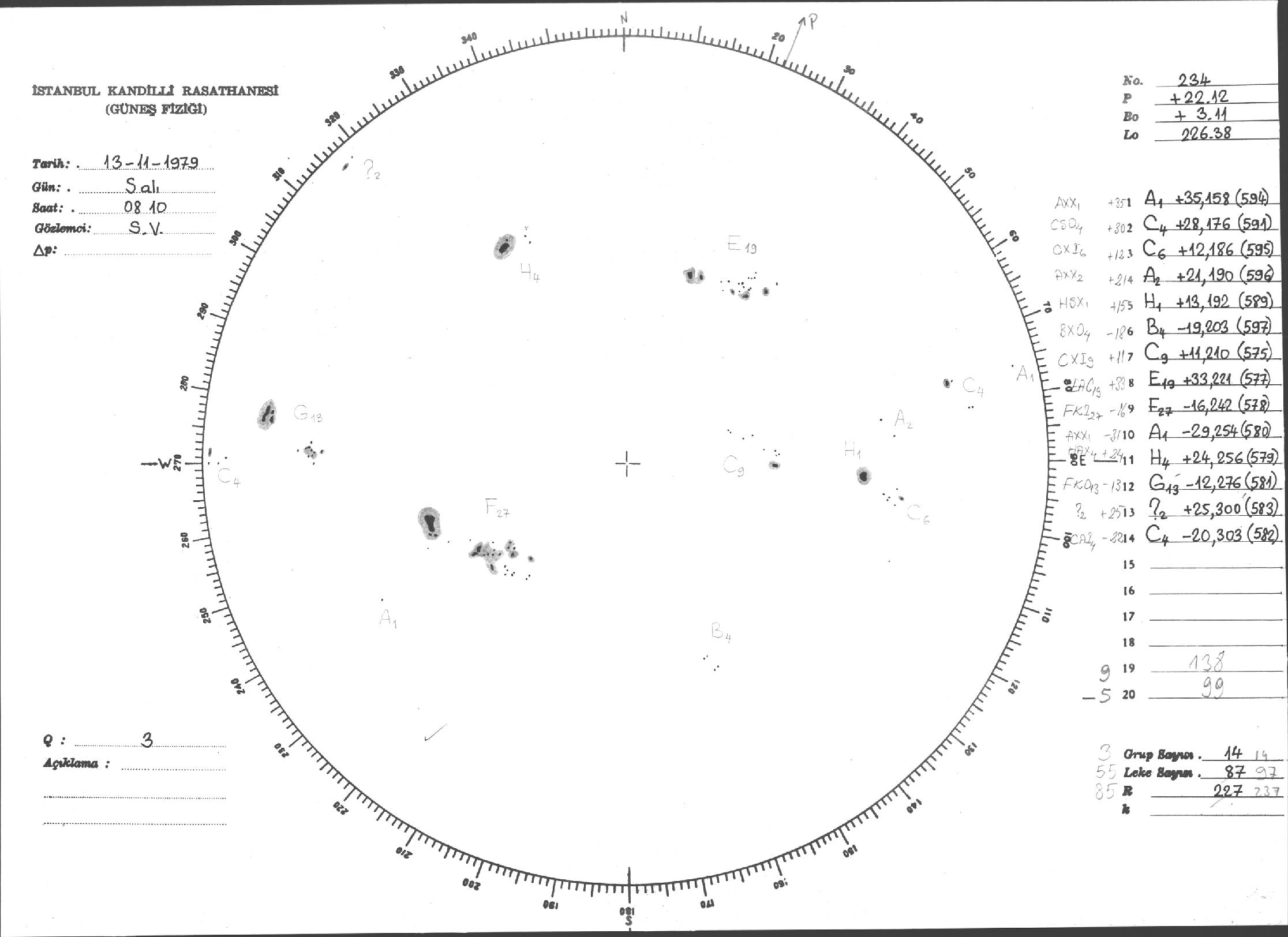 Güneş Lekesi Çizimleri / Kandilli Sunspot Drawings