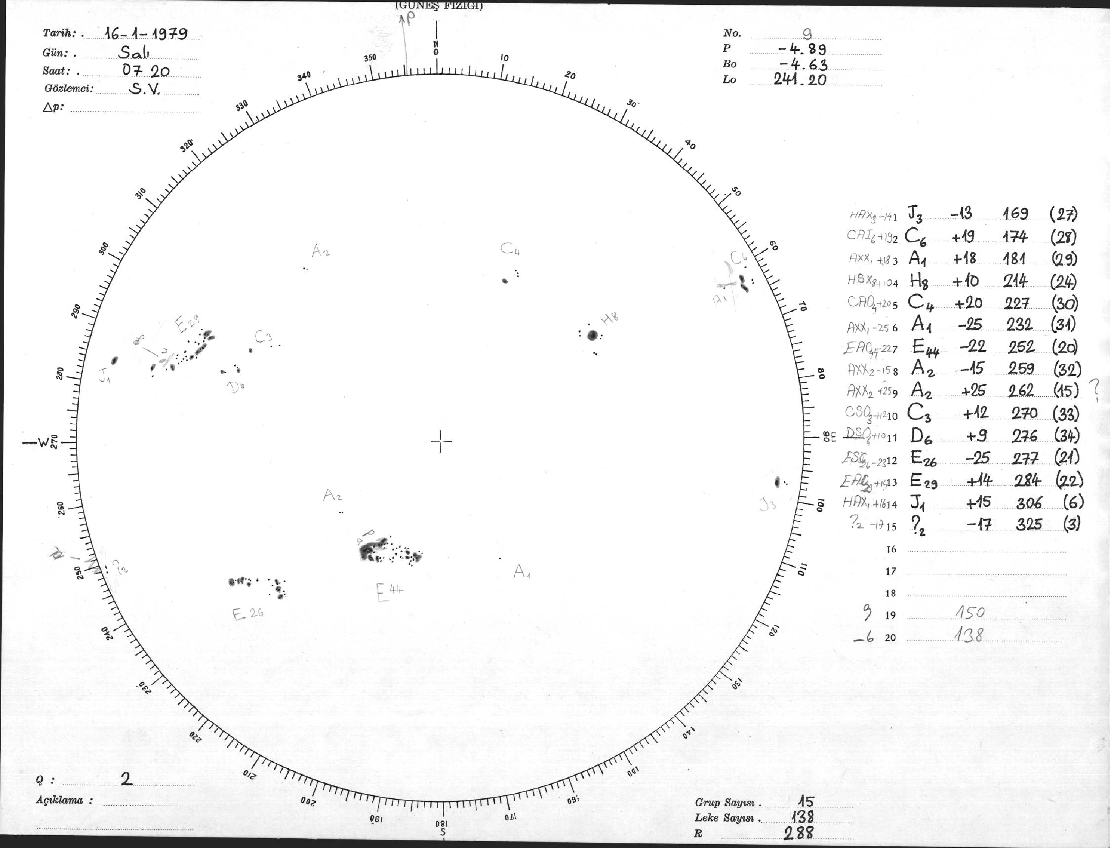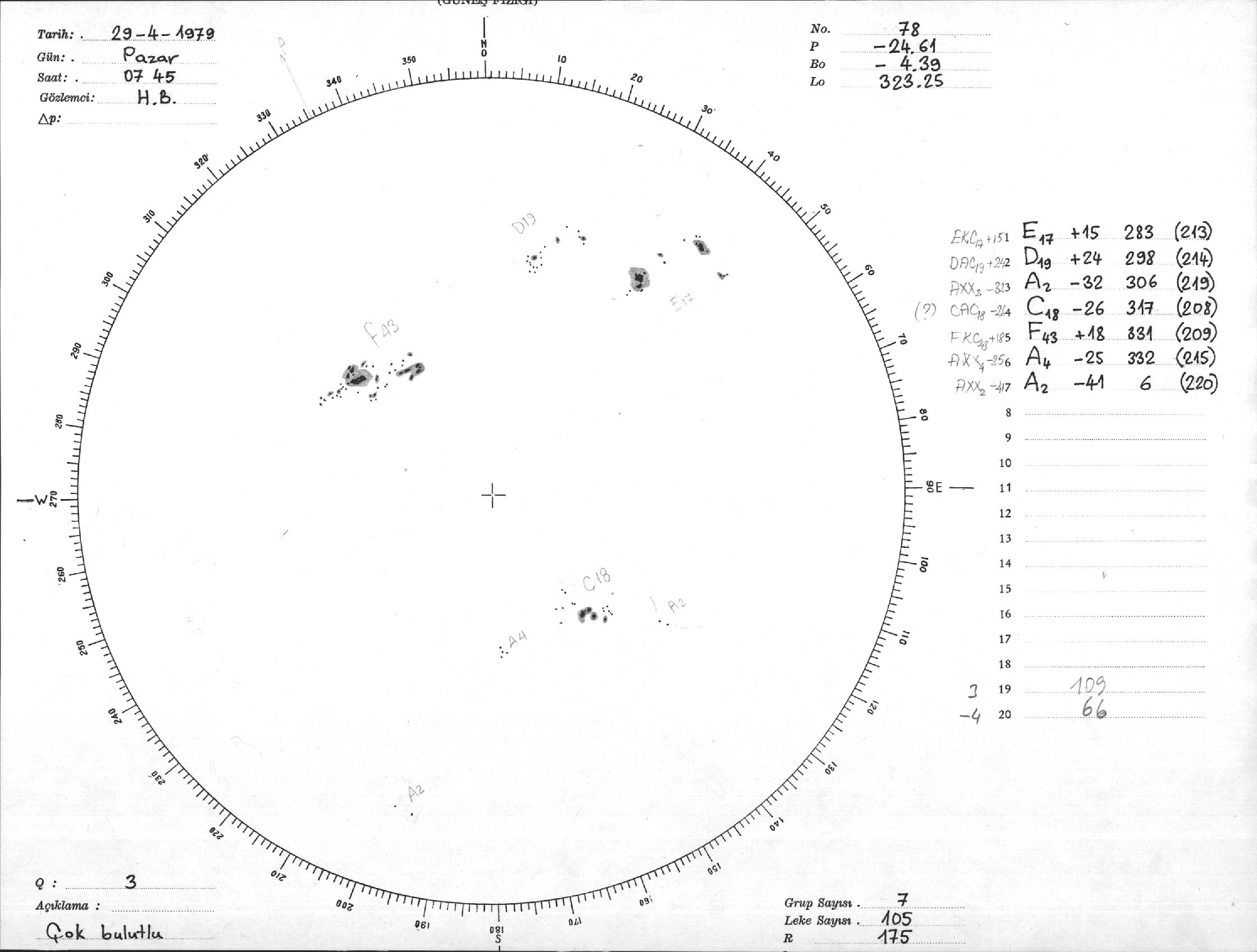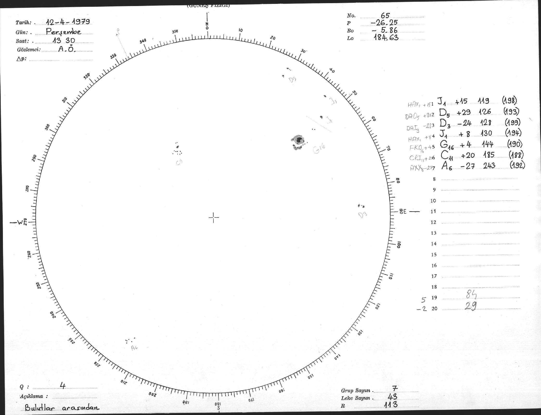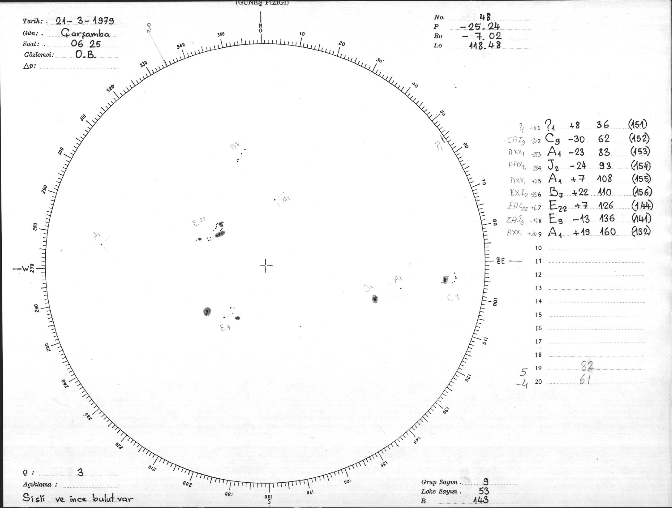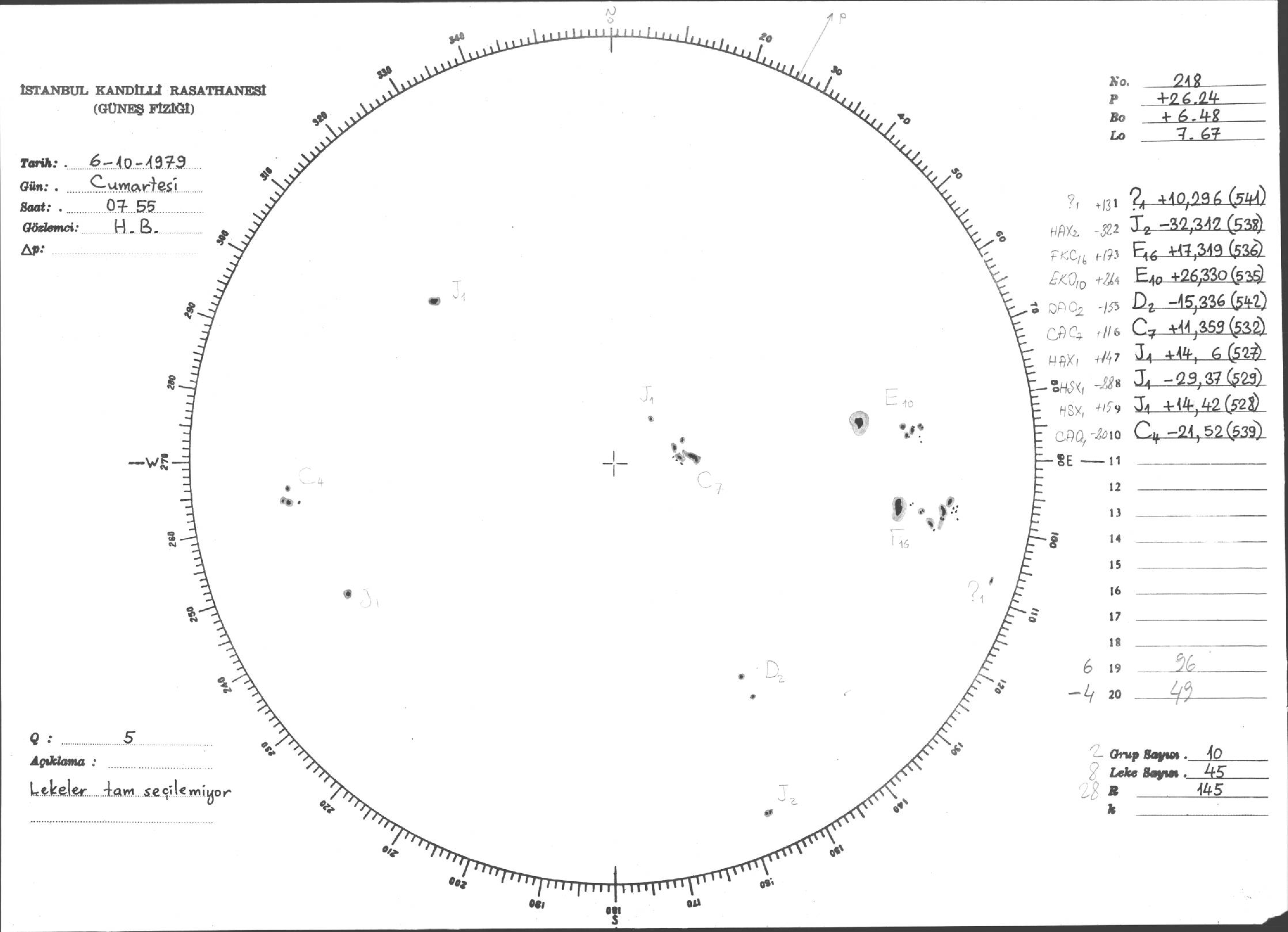Güneş Lekesi Çizimleri / Kandilli Sunspot Drawings