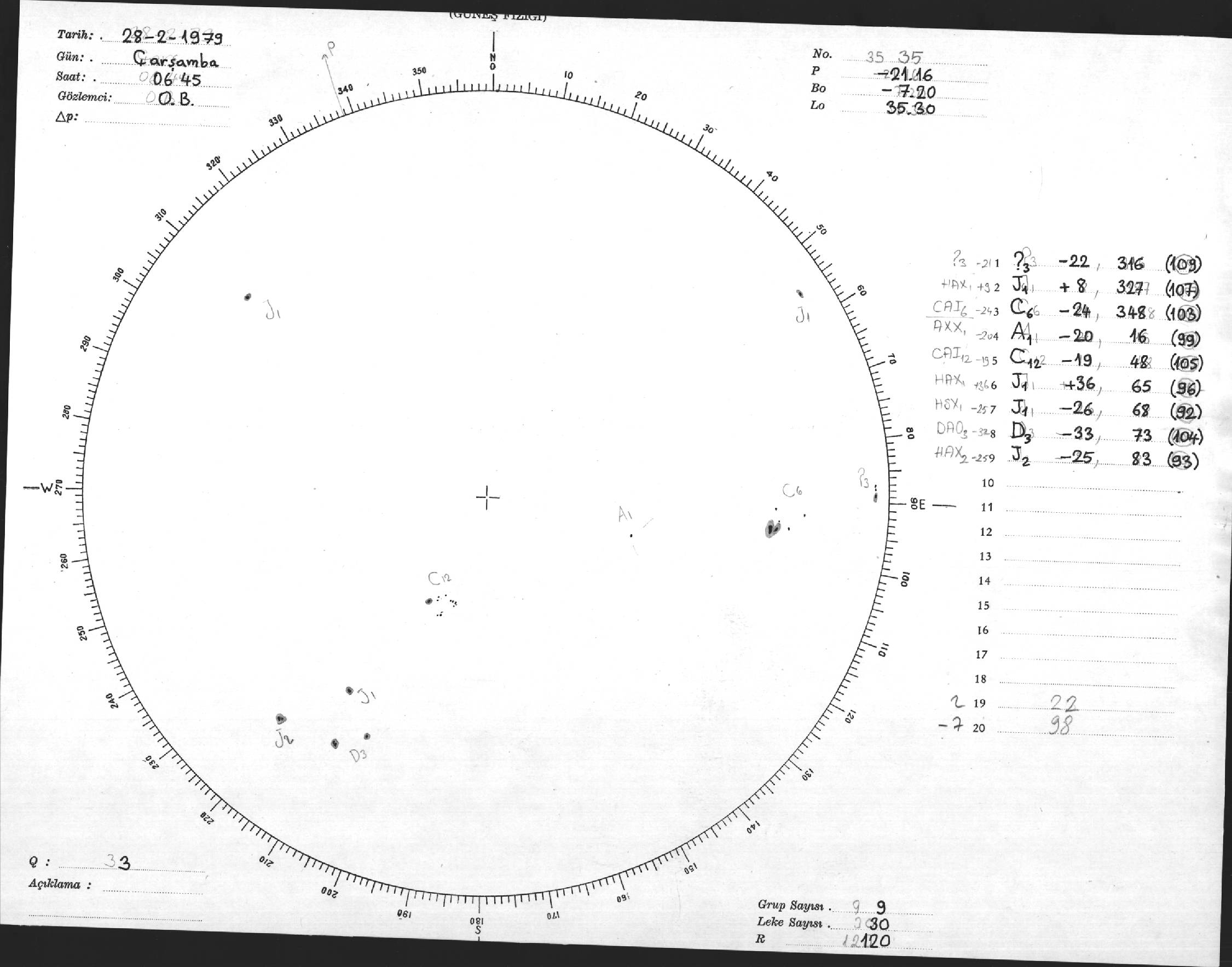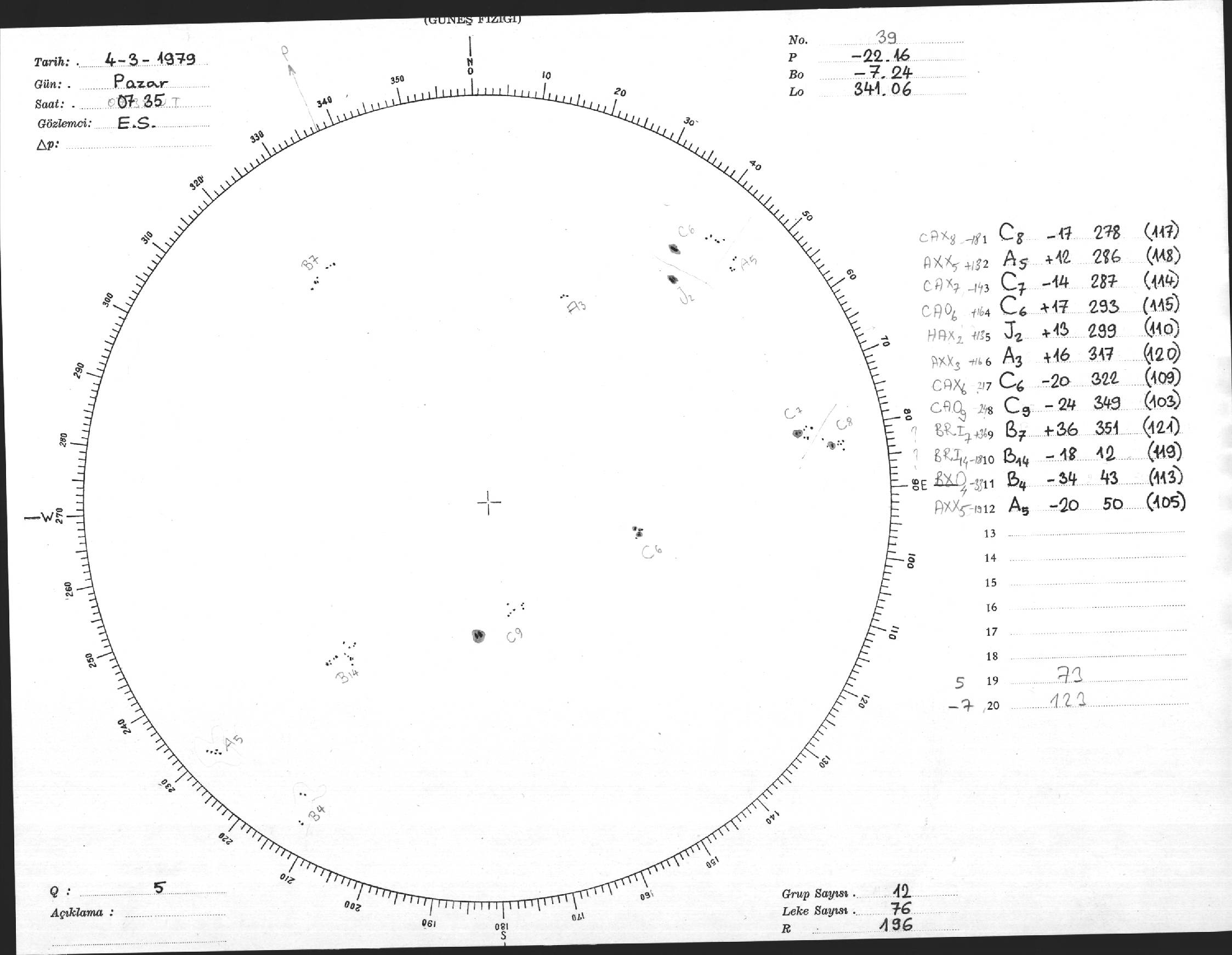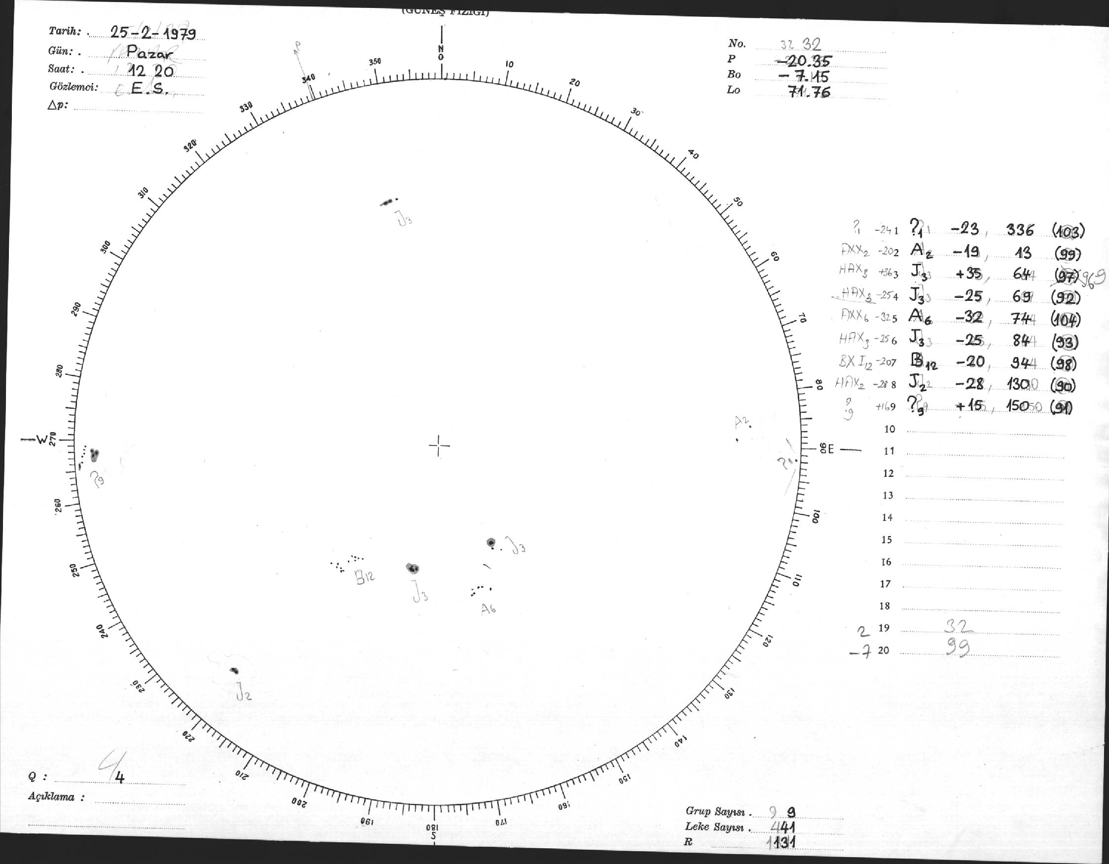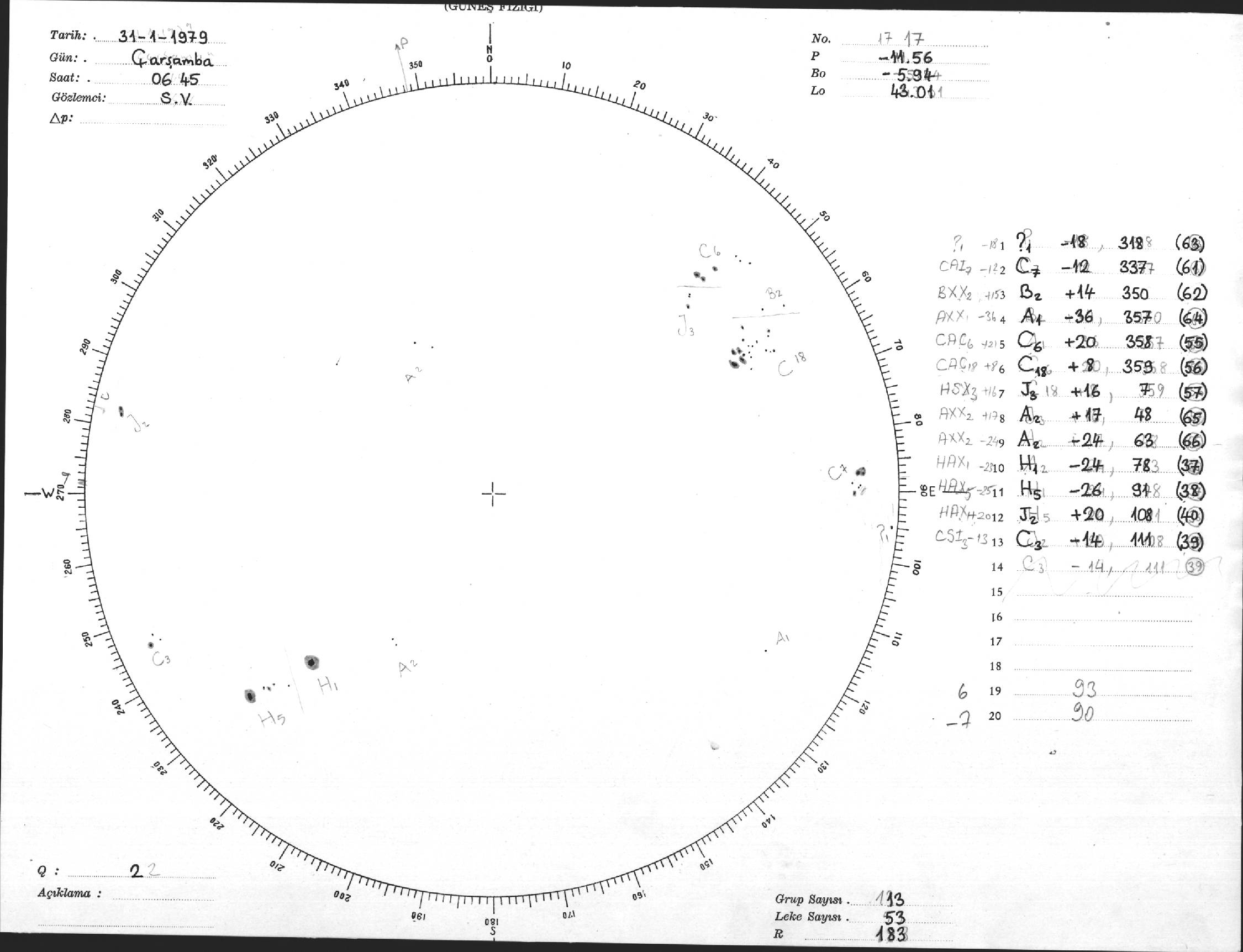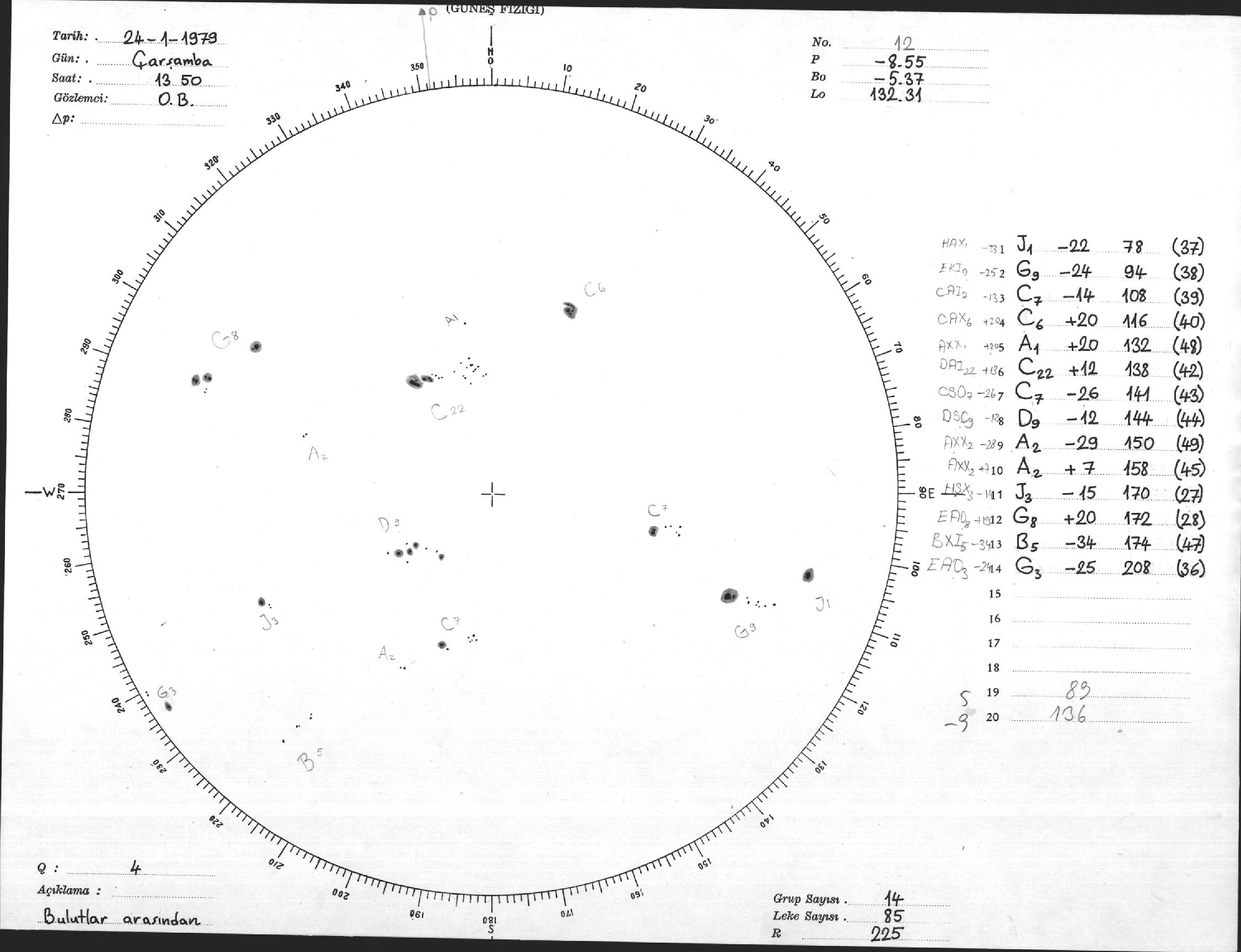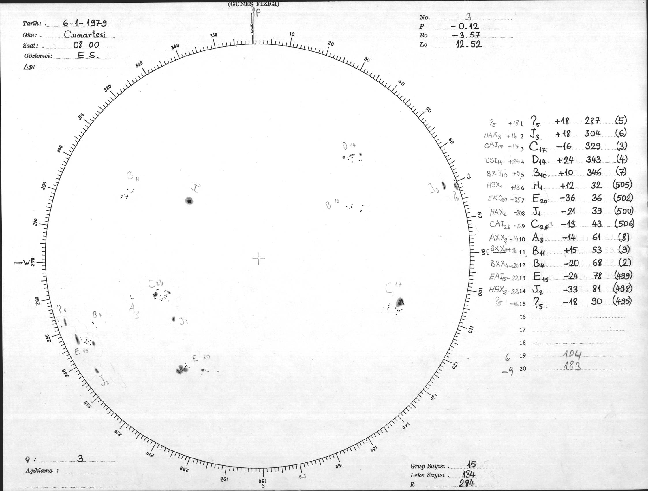 Güneş Lekesi Çizimleri / Kandilli Sunspot Drawings