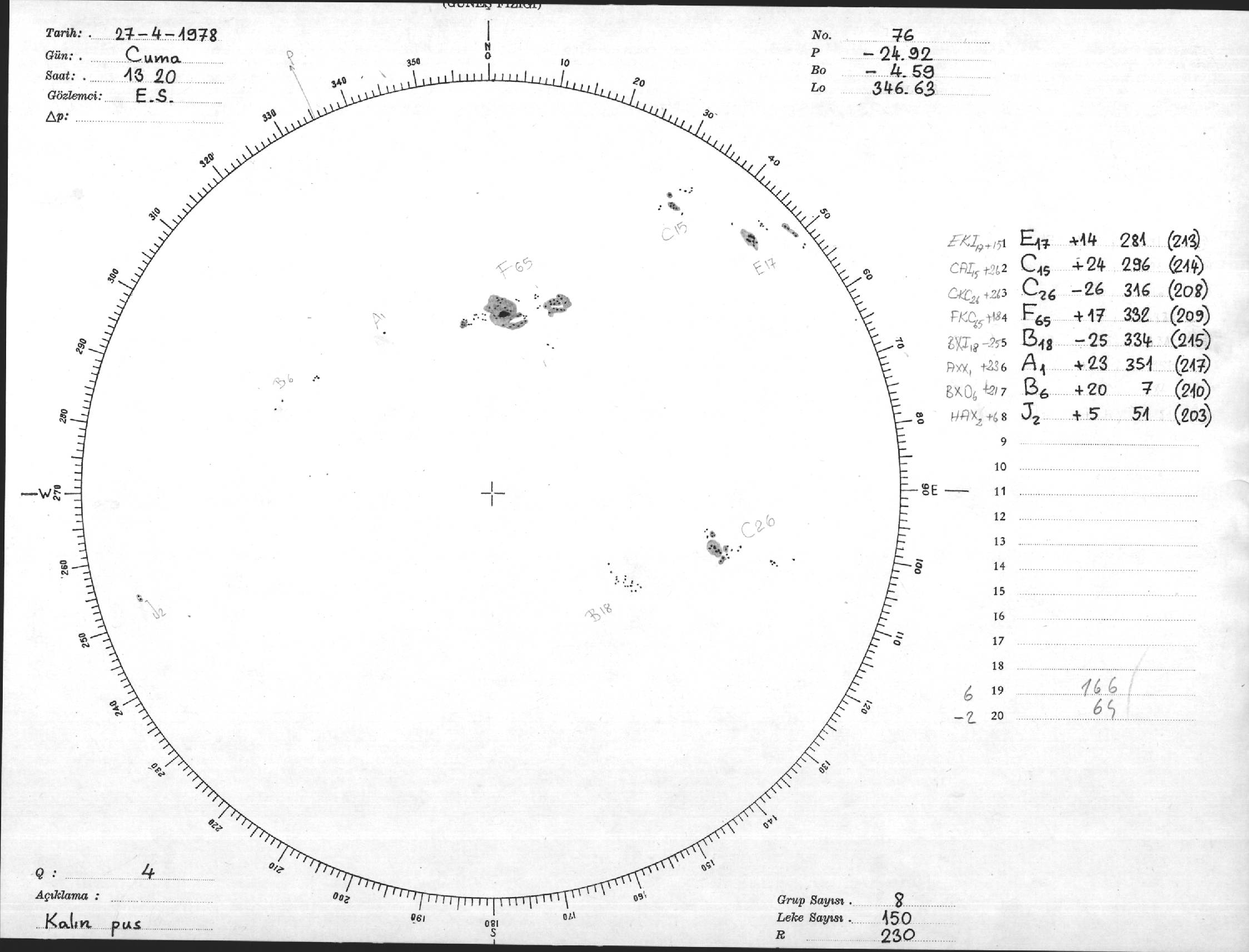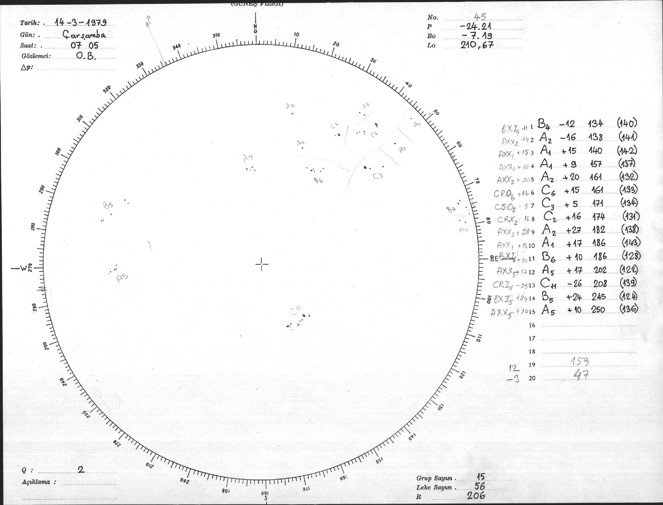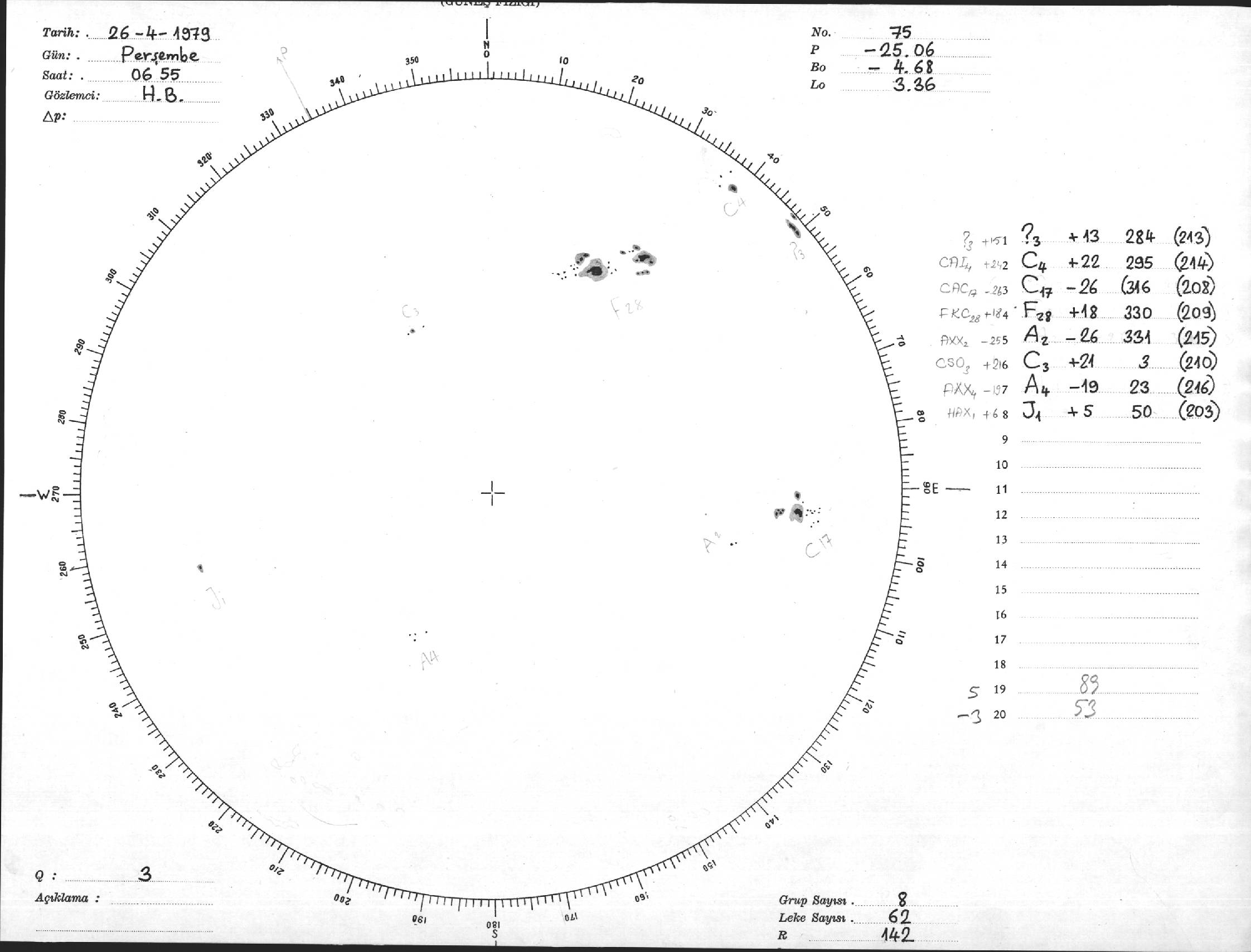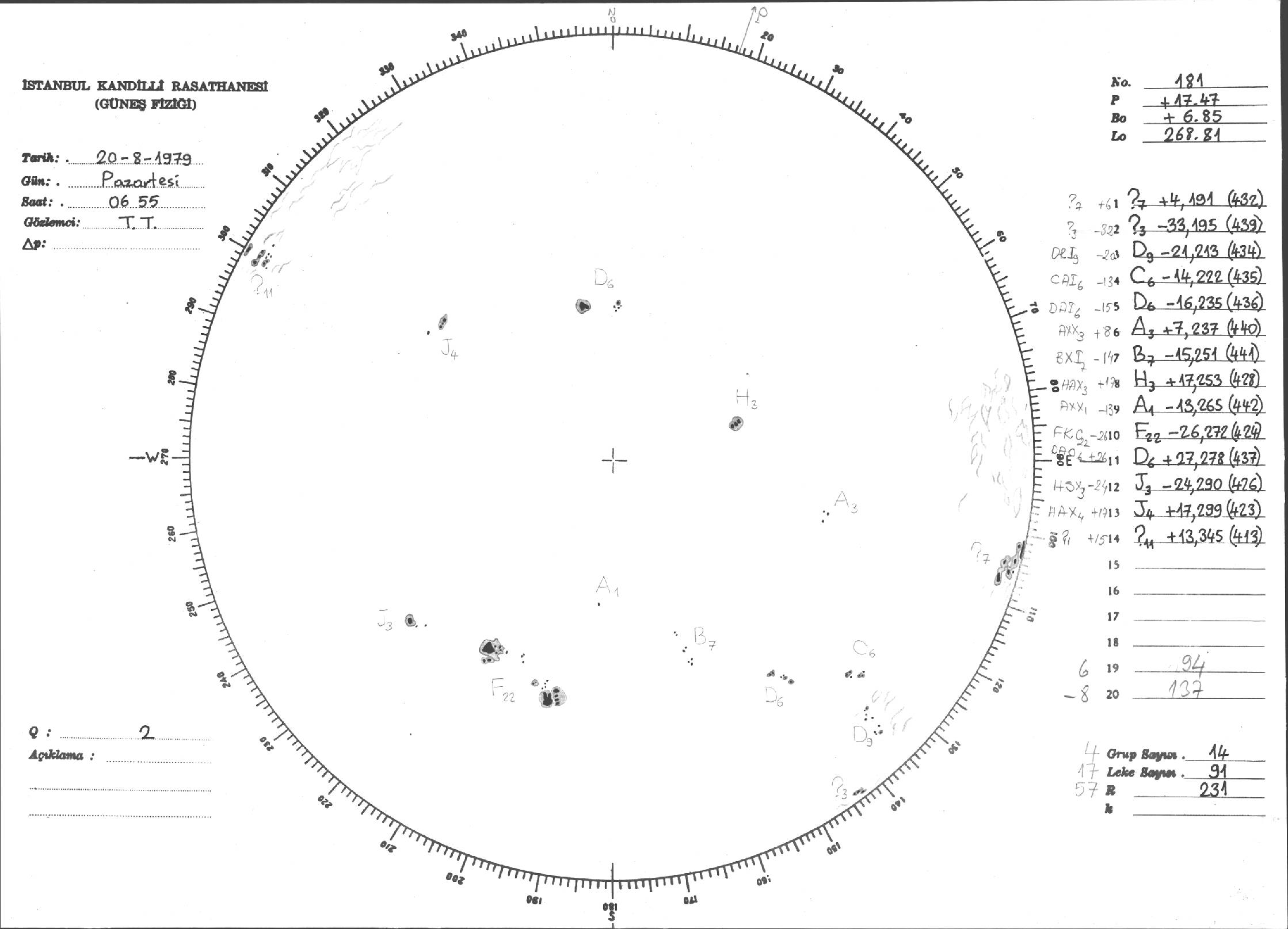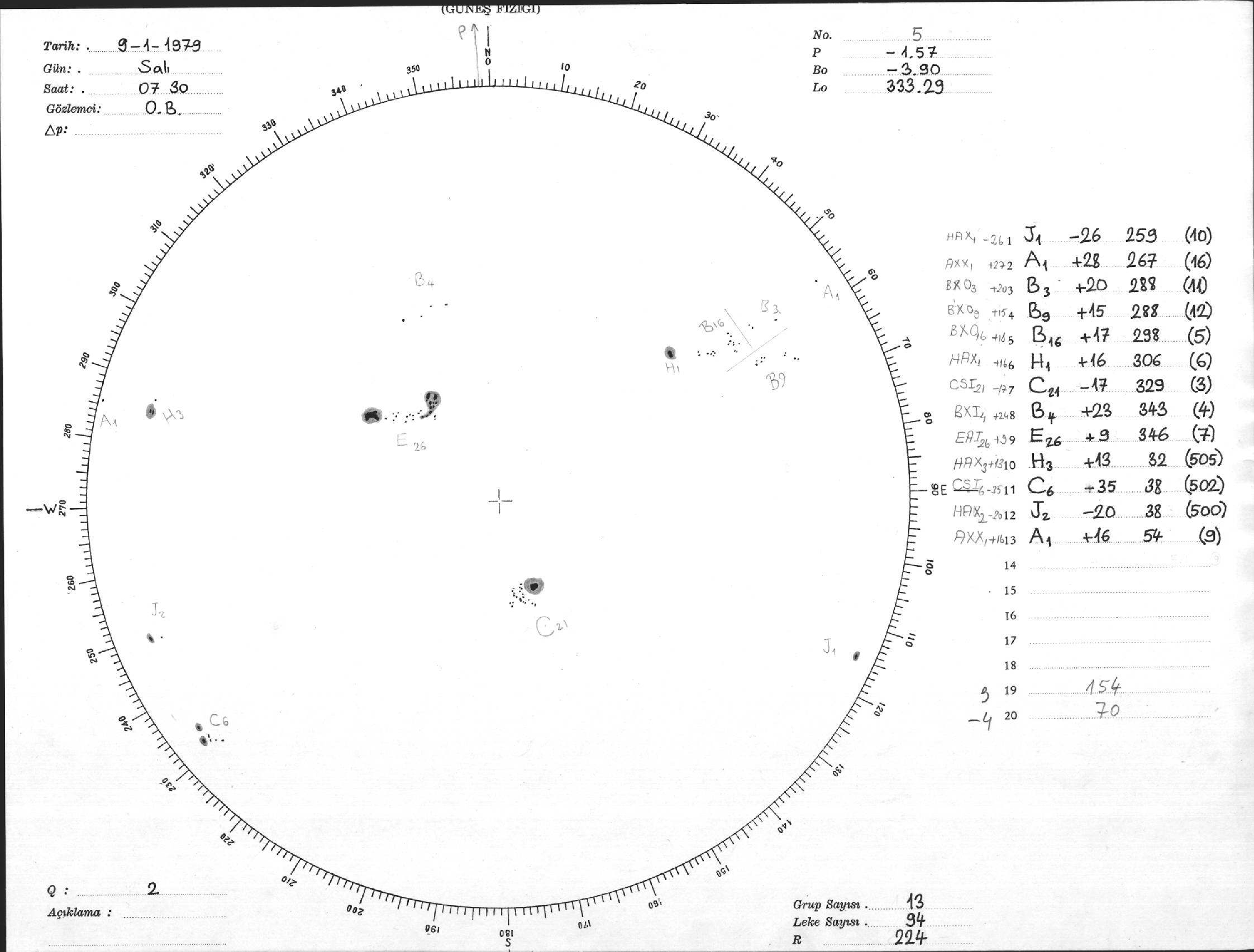 Güneş Lekesi Çizimleri / Kandilli Sunspot Drawings
