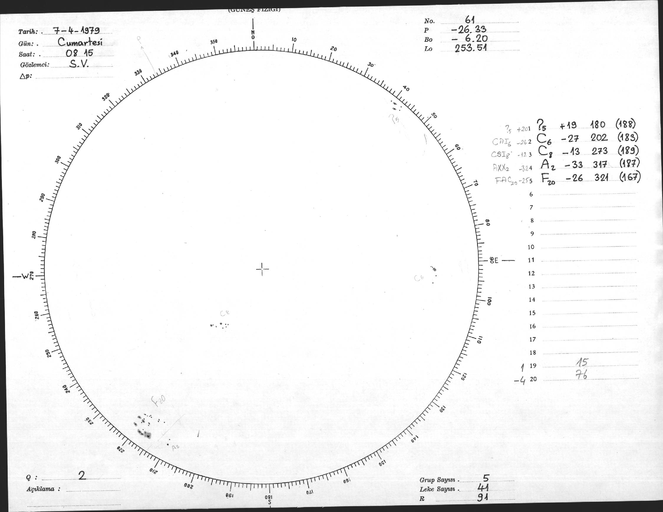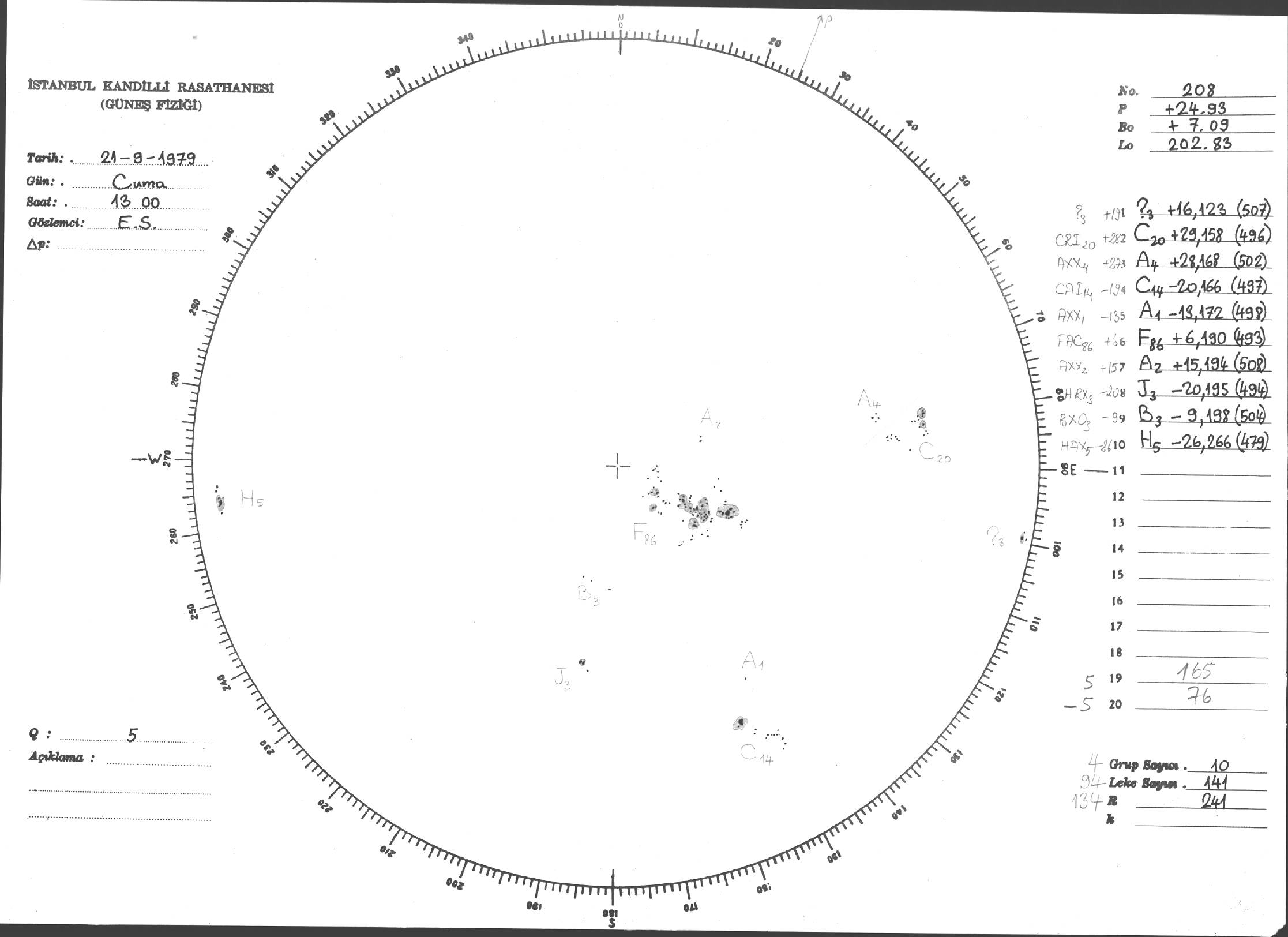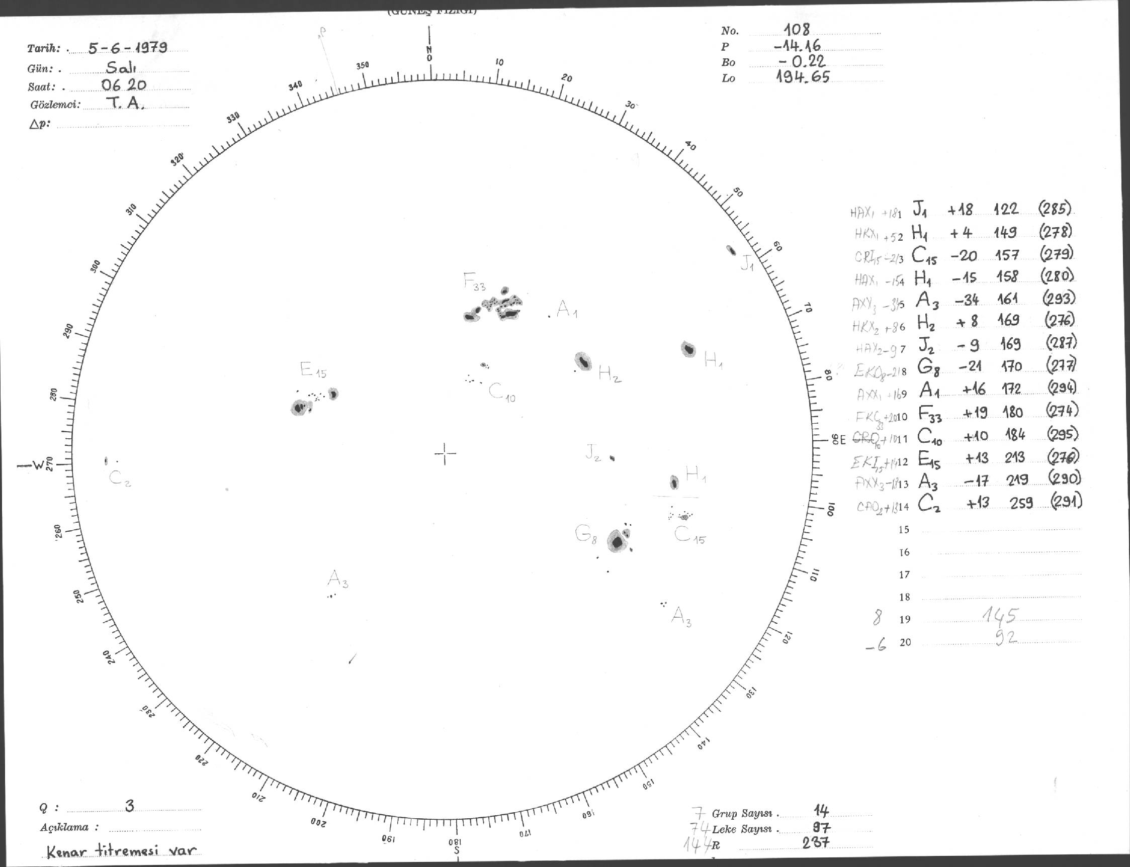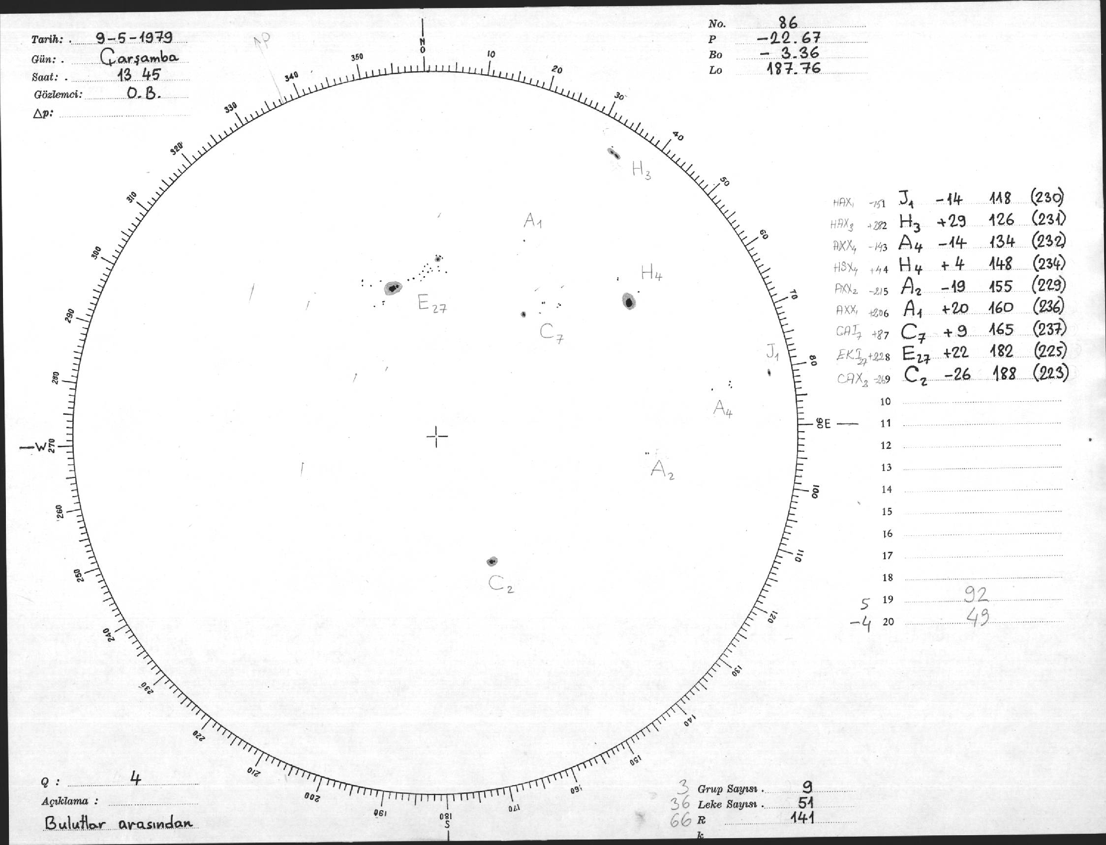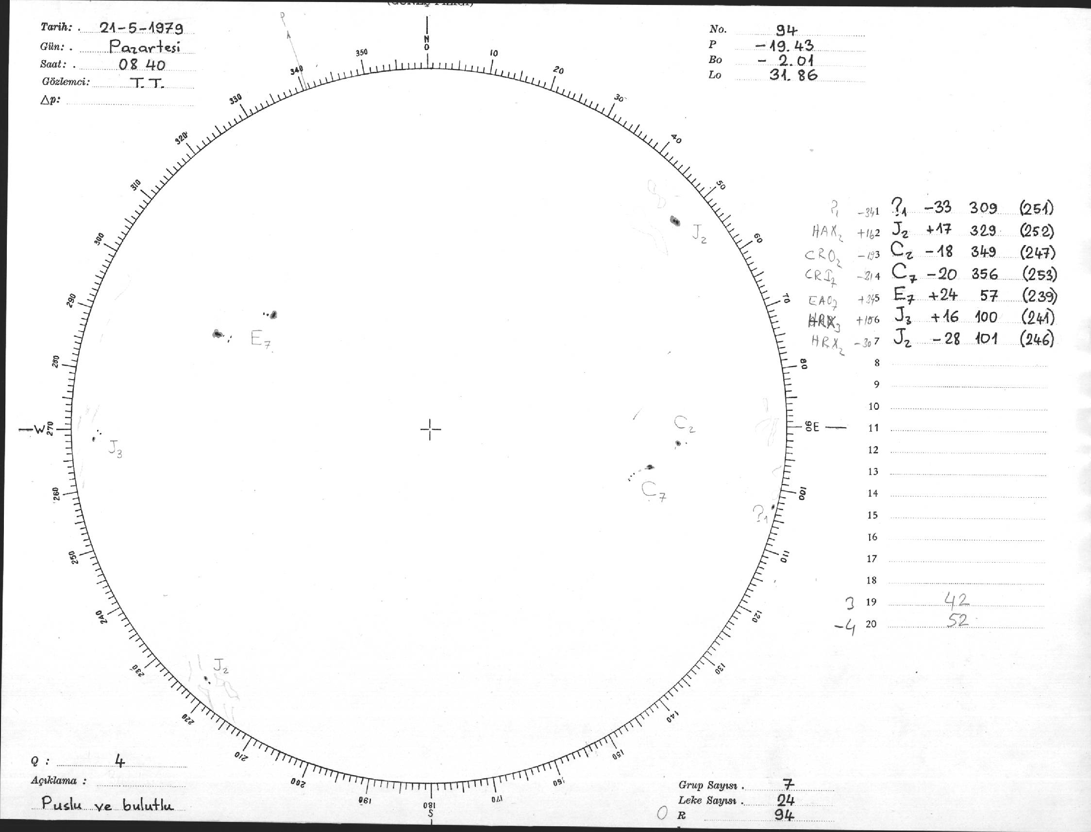 Güneş Lekesi Çizimleri / Kandilli Sunspot Drawings