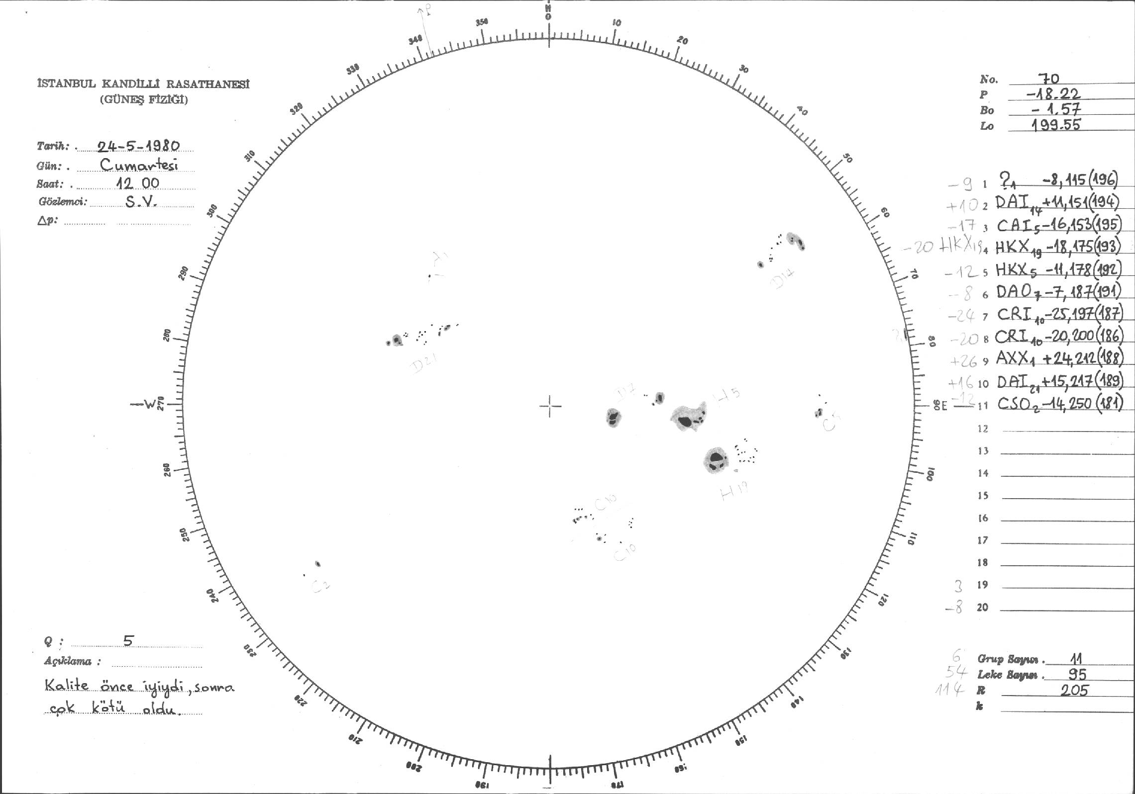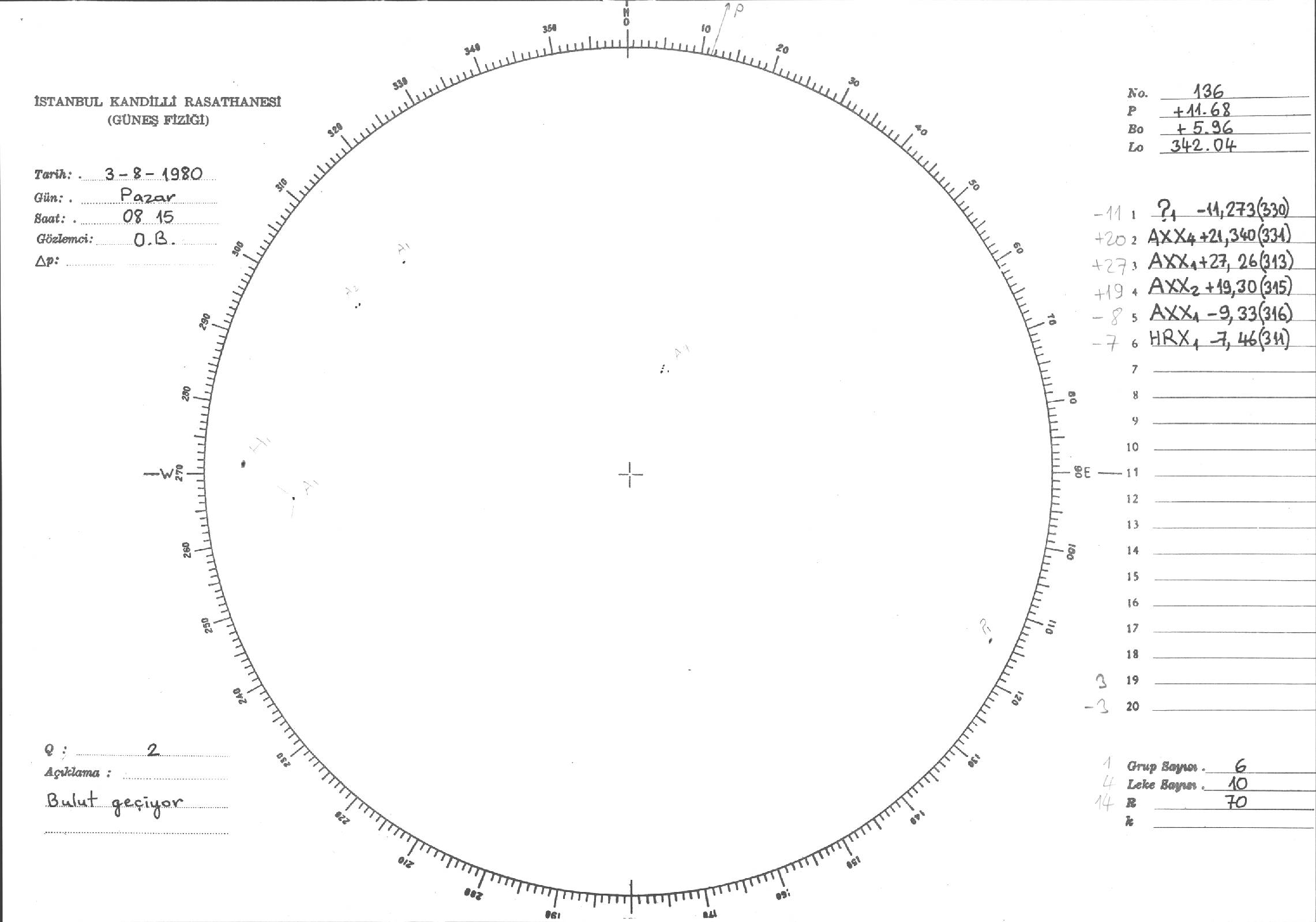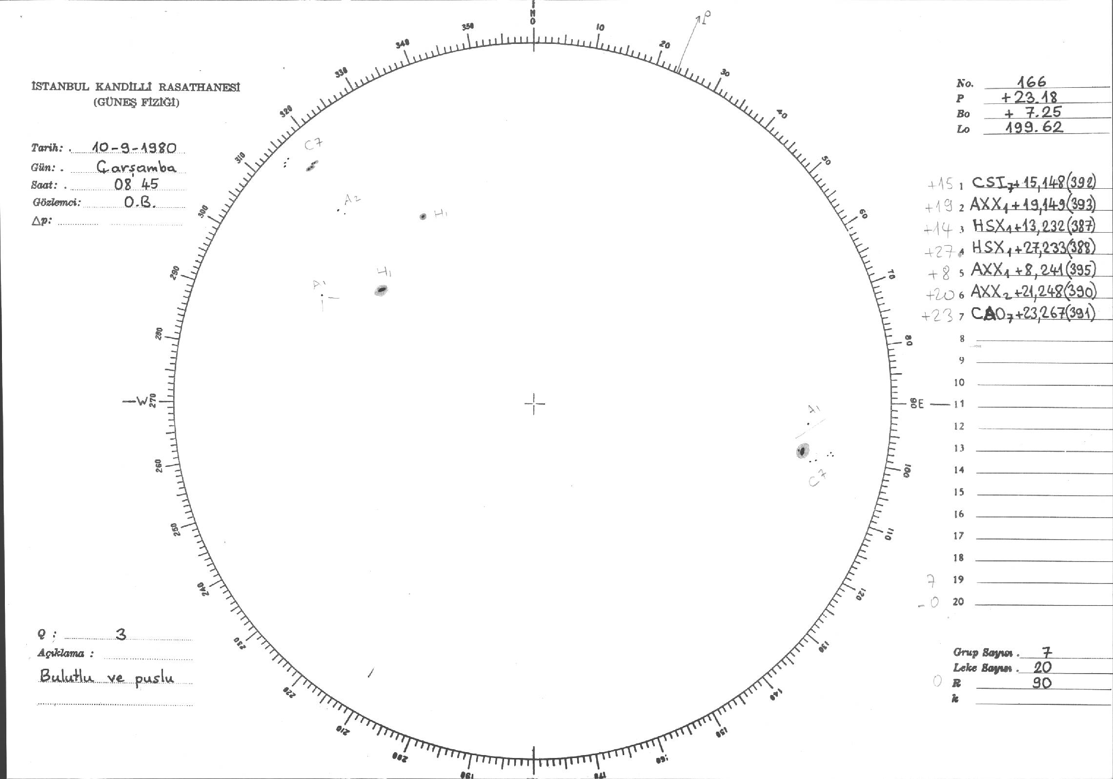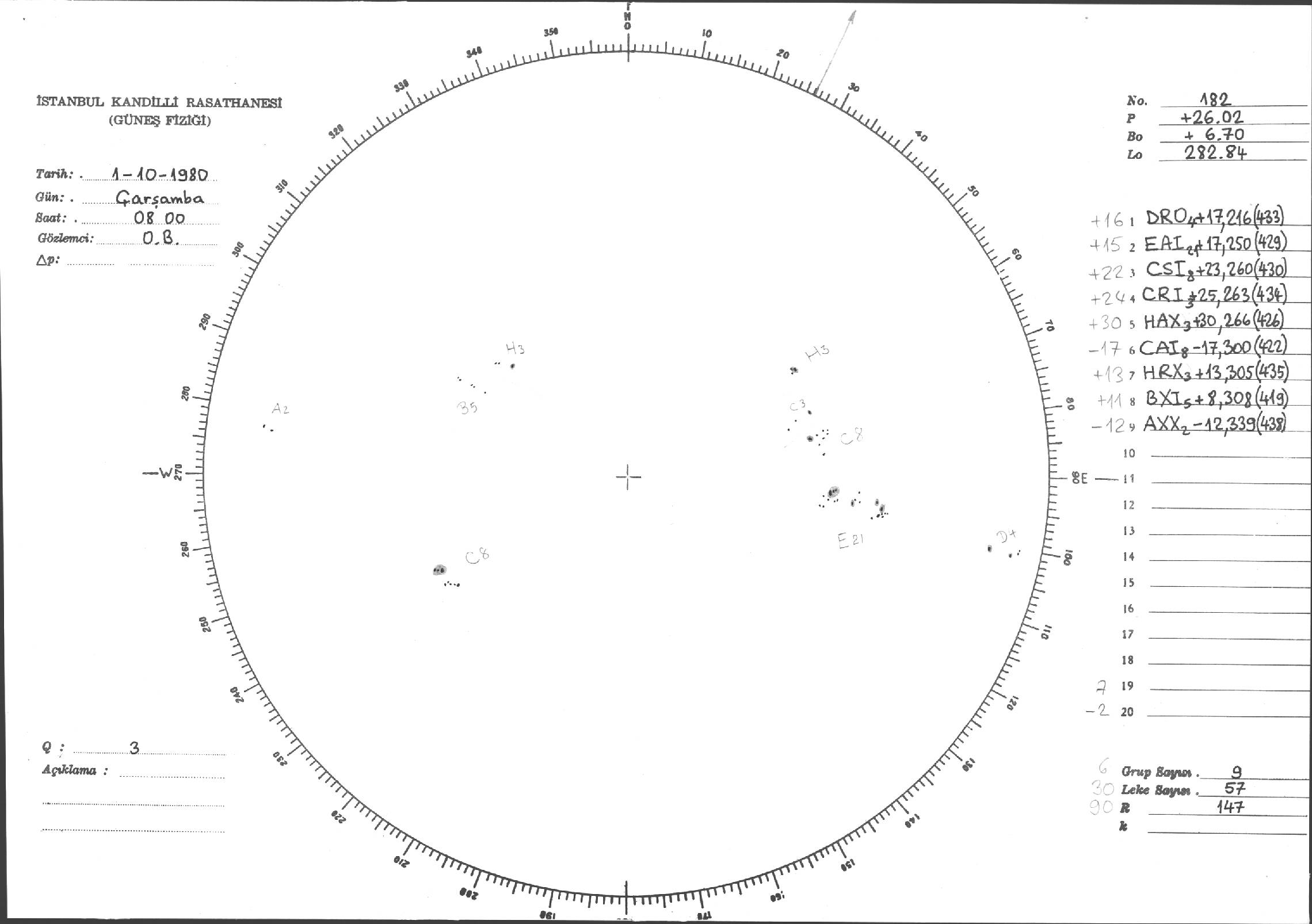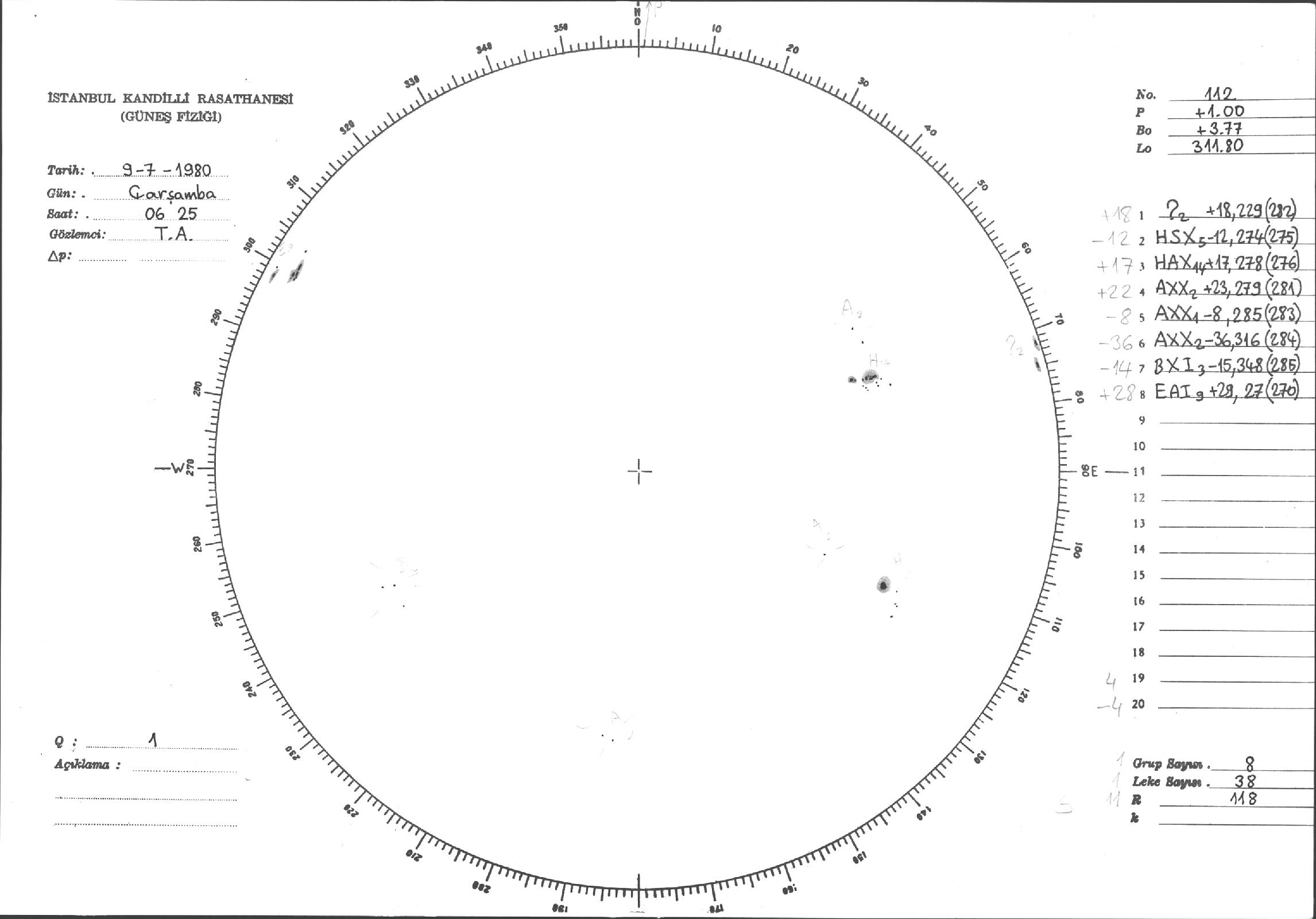 Güneş Lekesi Çizimleri / Kandilli Sunspot Drawings
