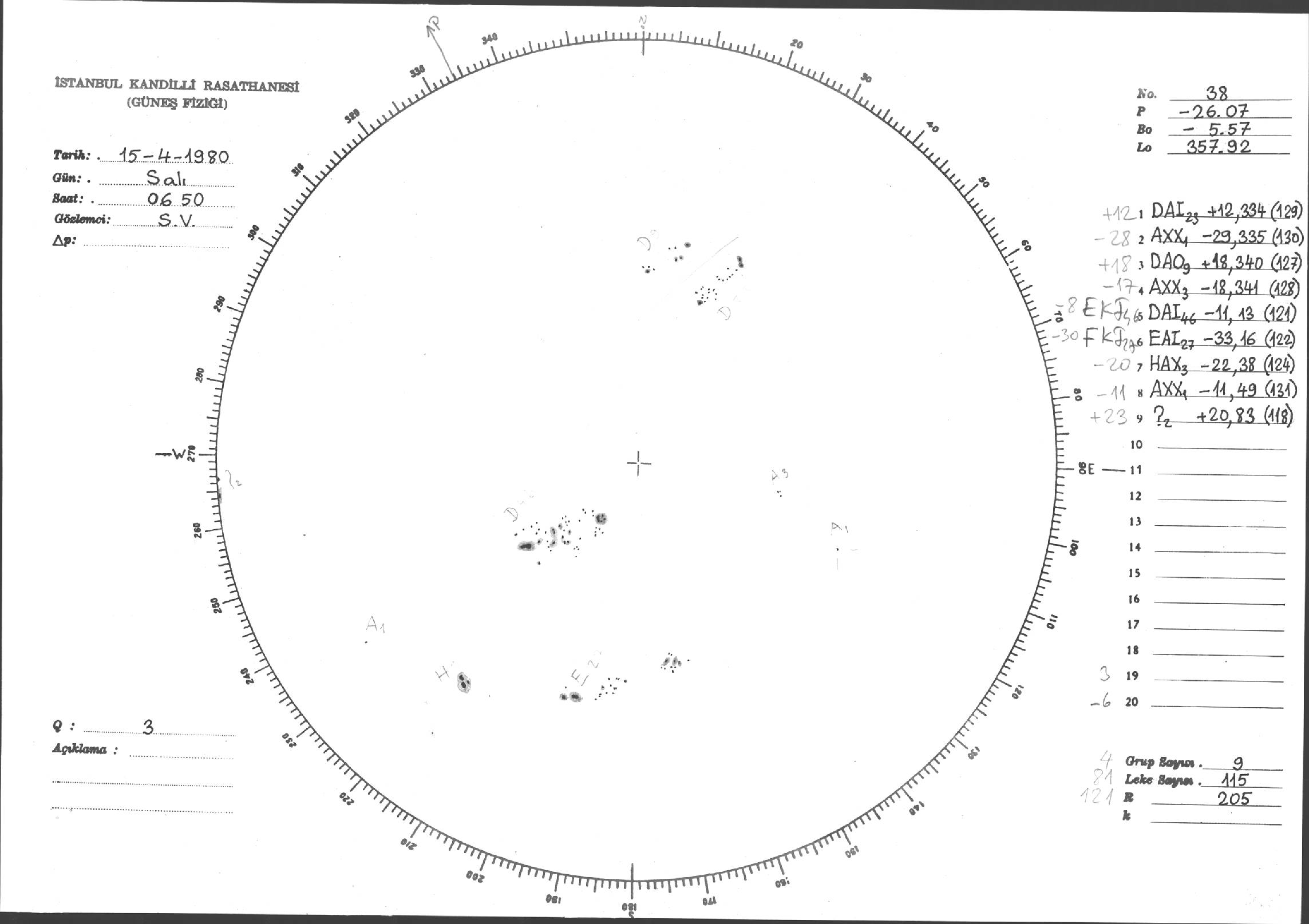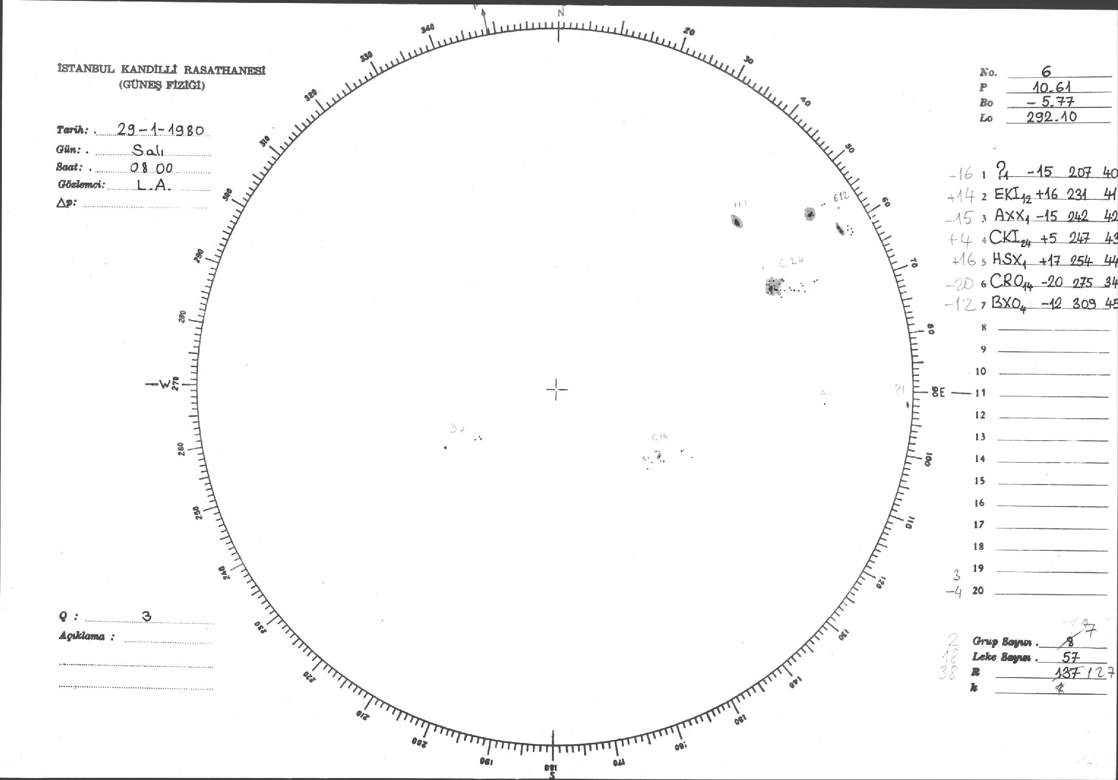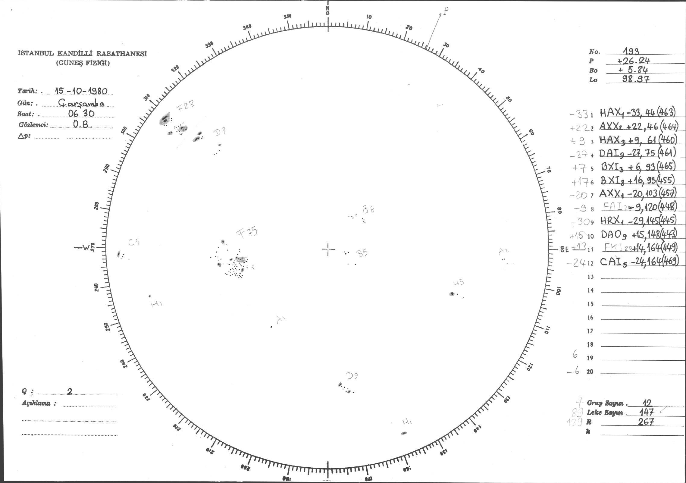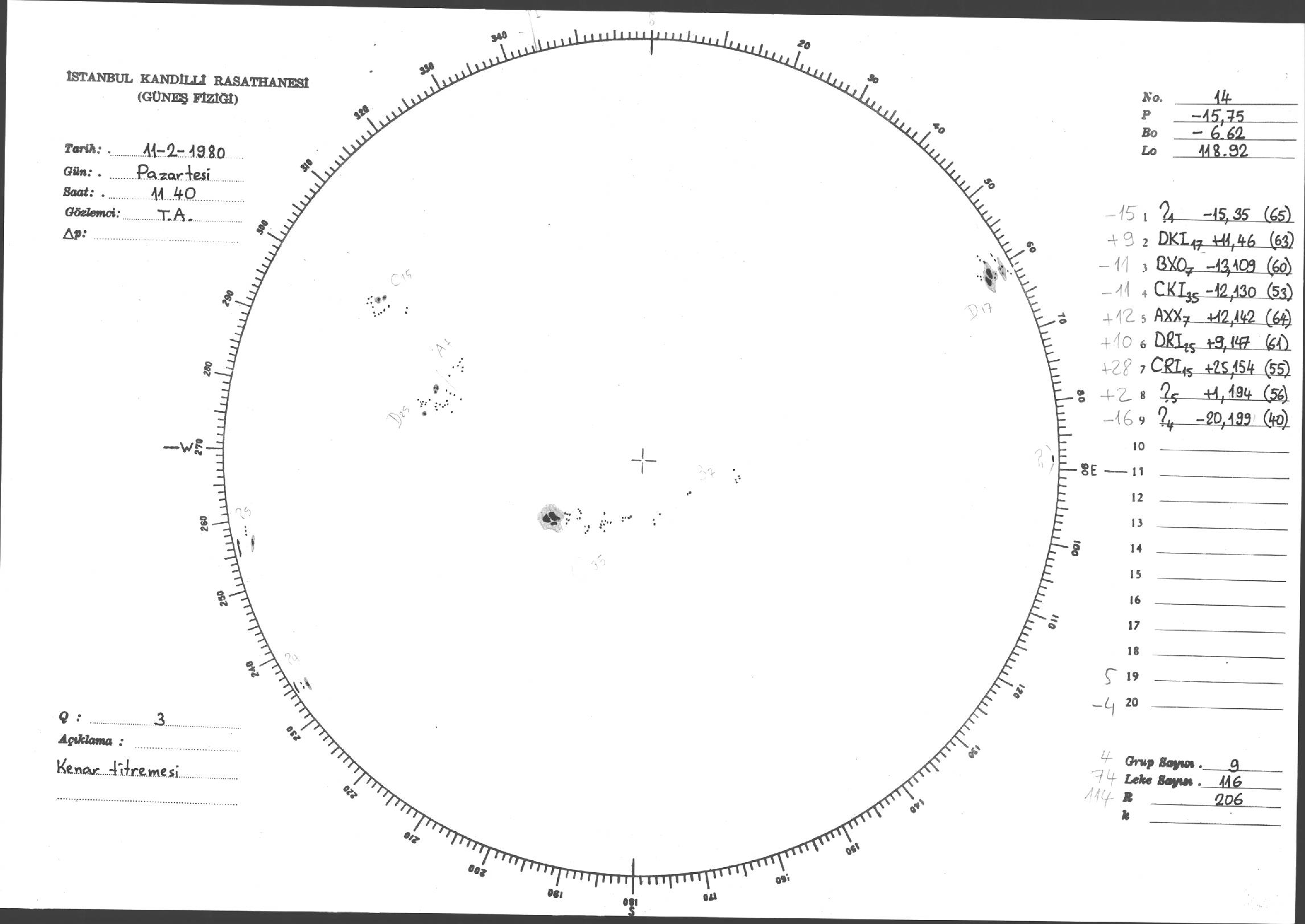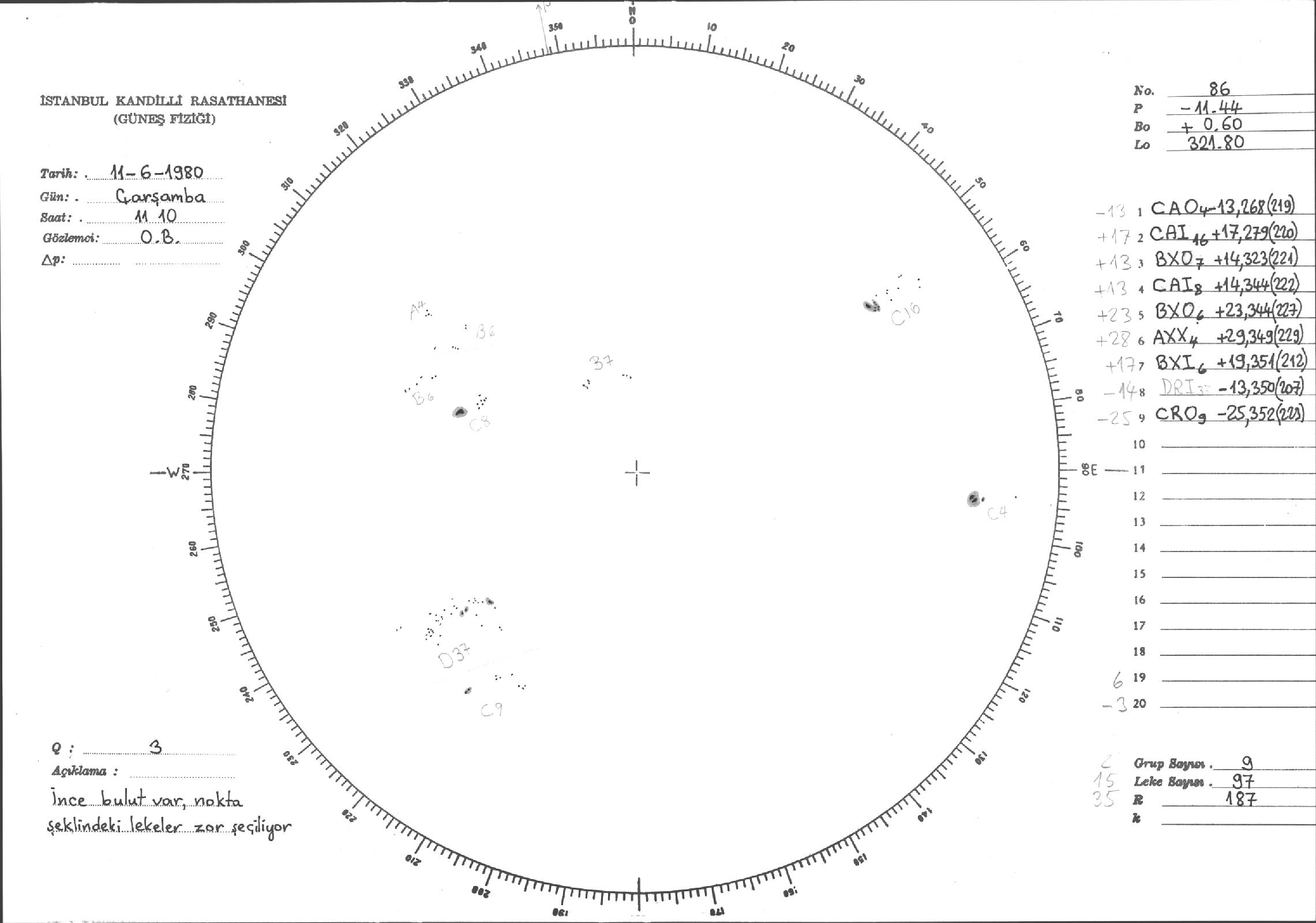 Güneş Lekesi Çizimleri / Kandilli Sunspot Drawings