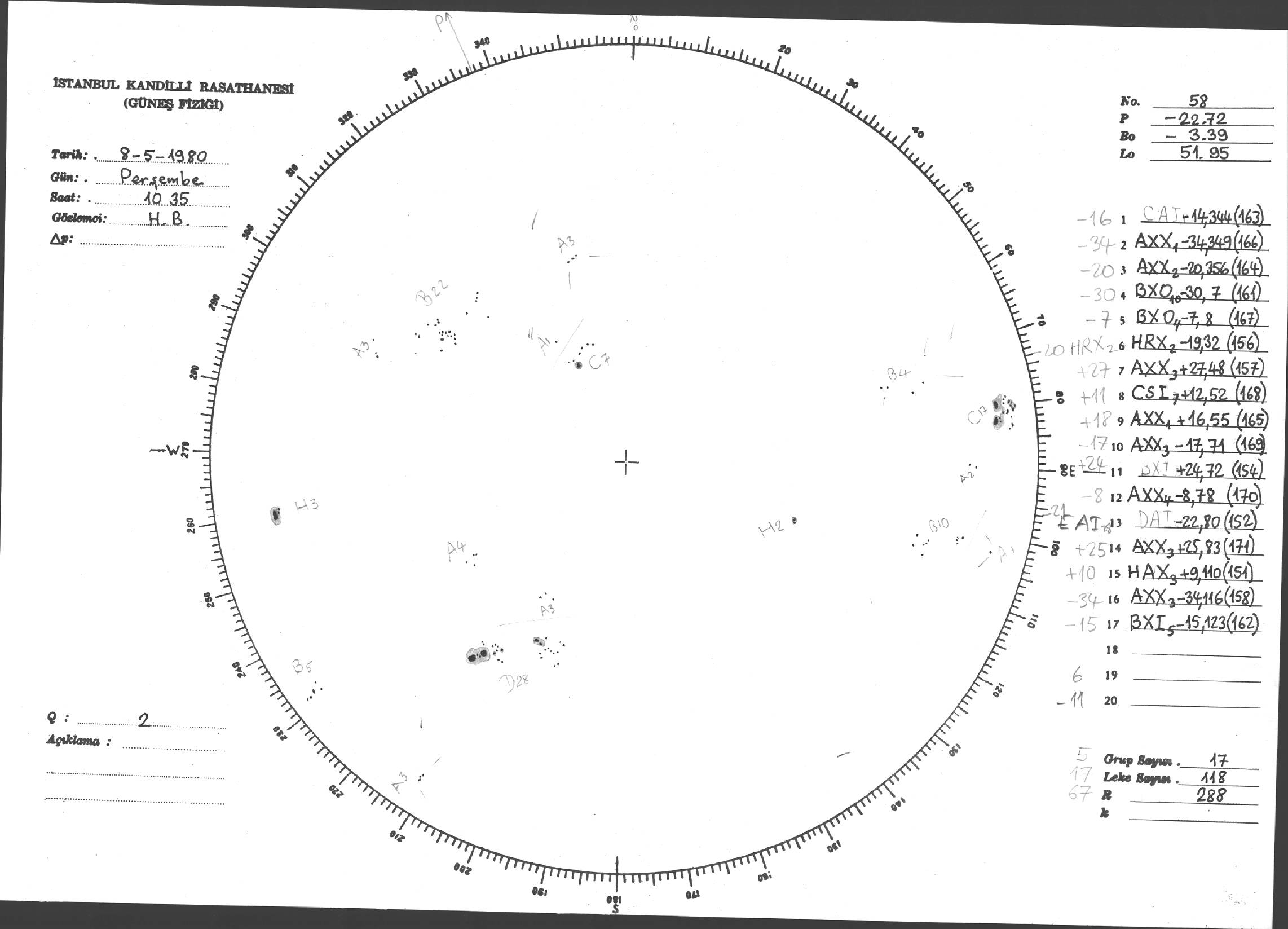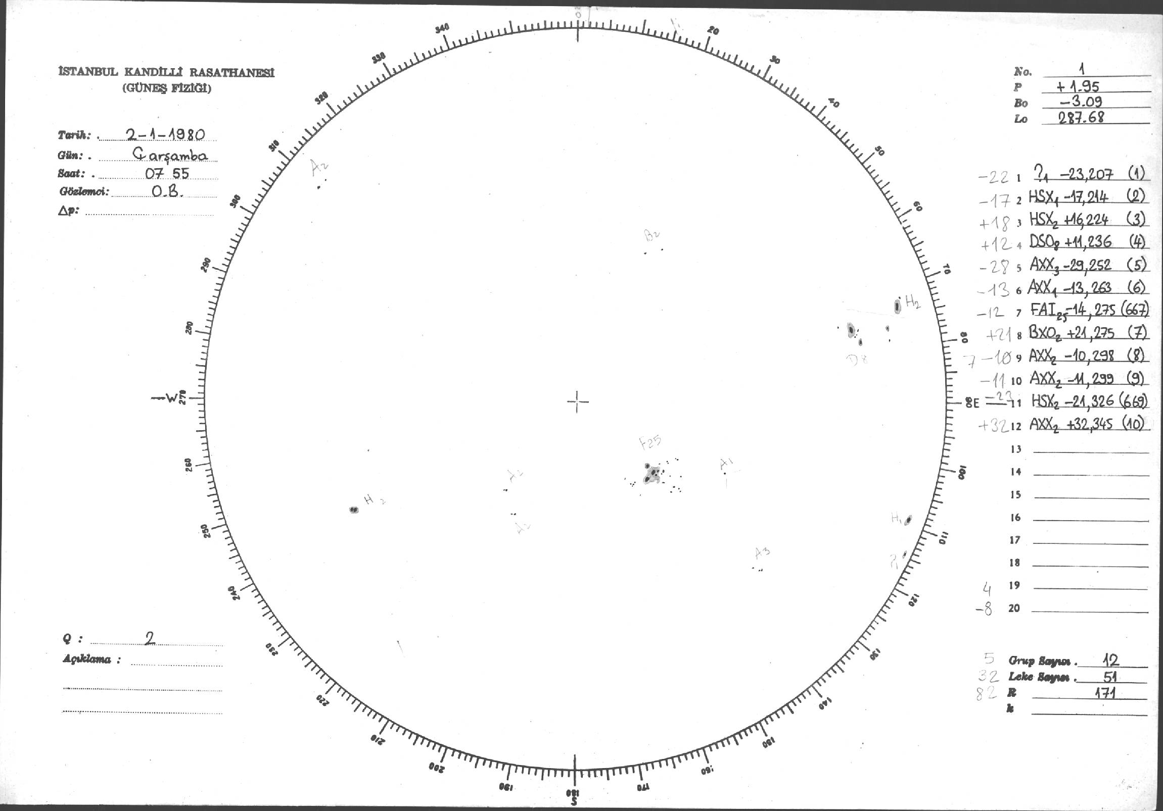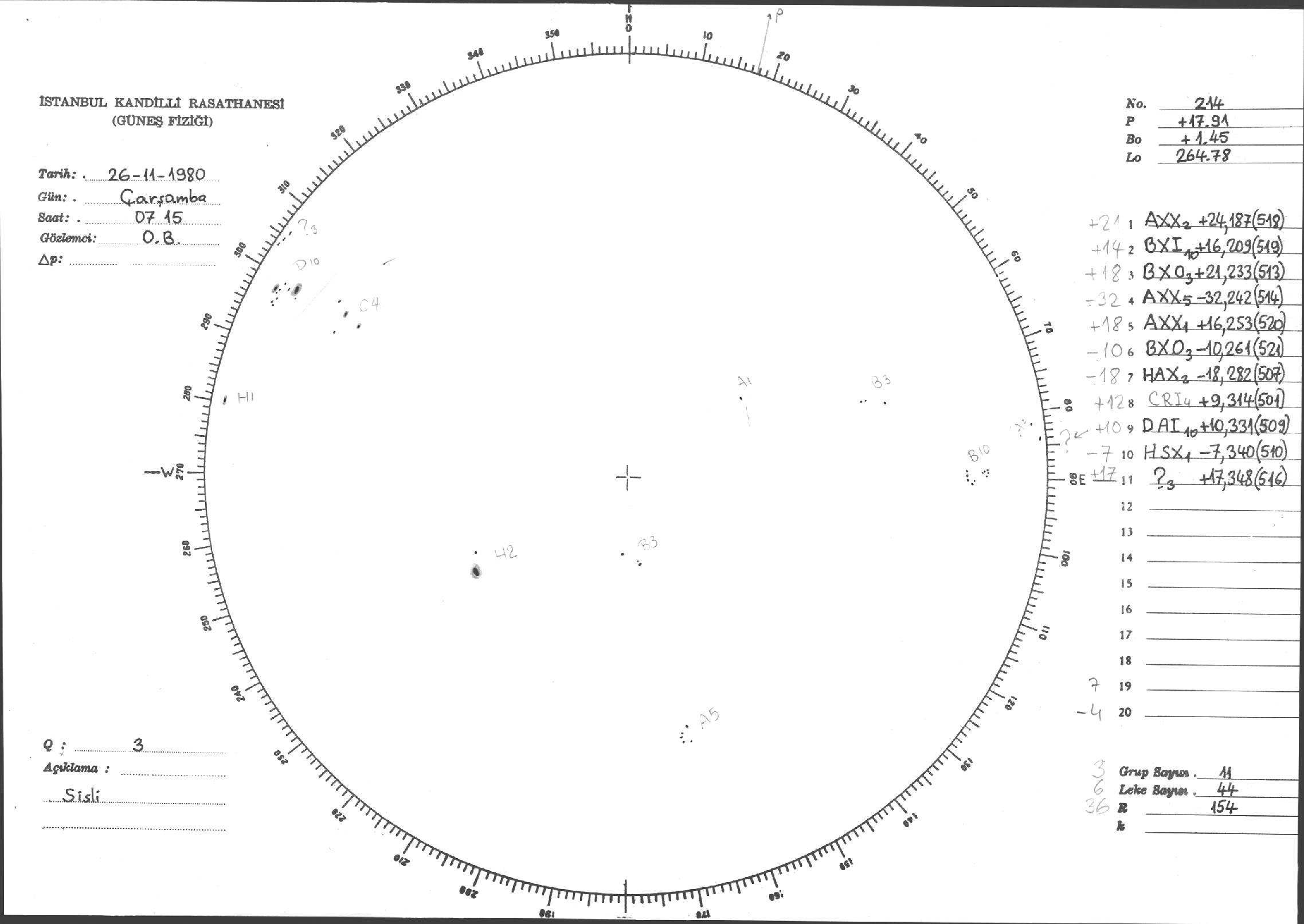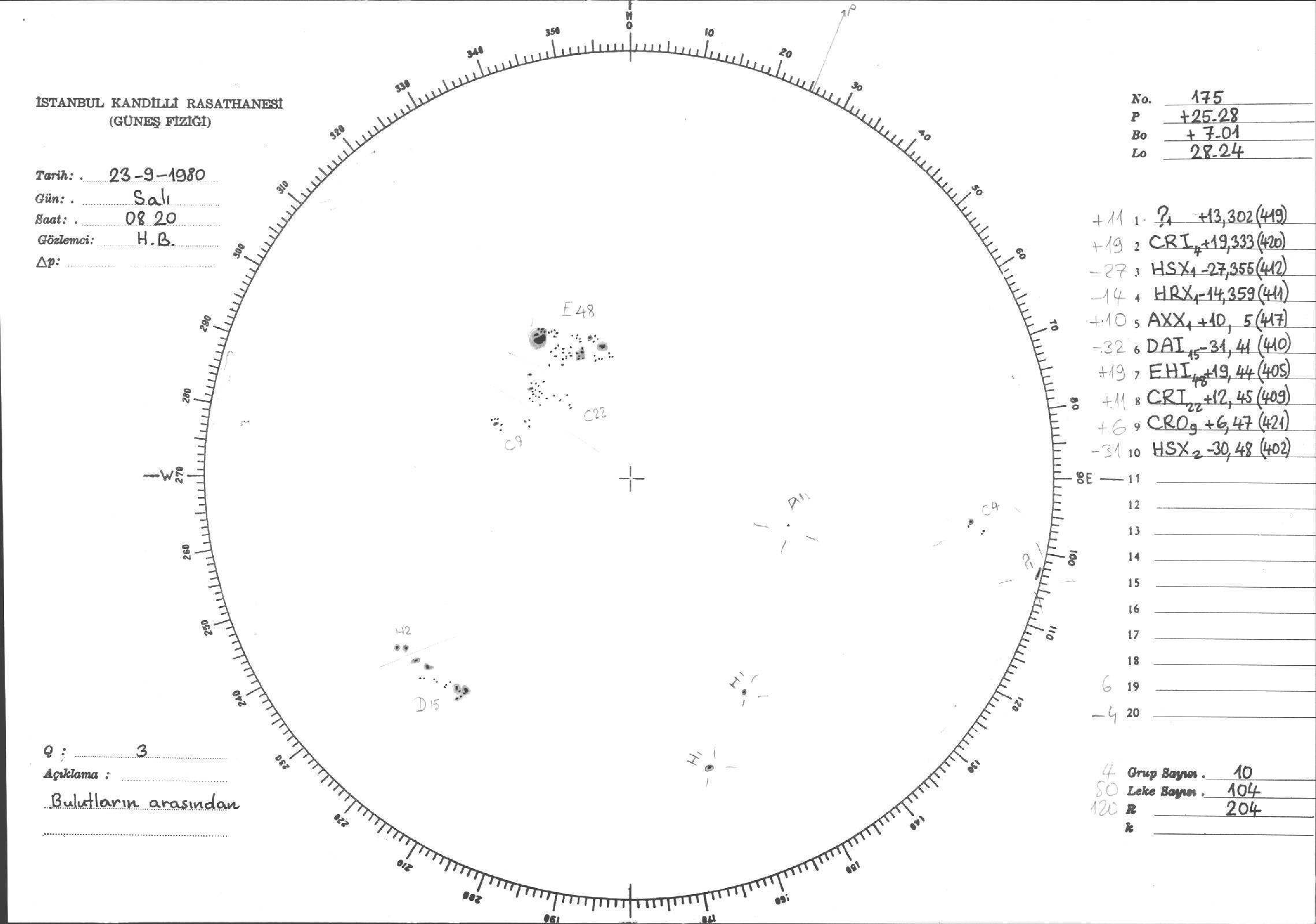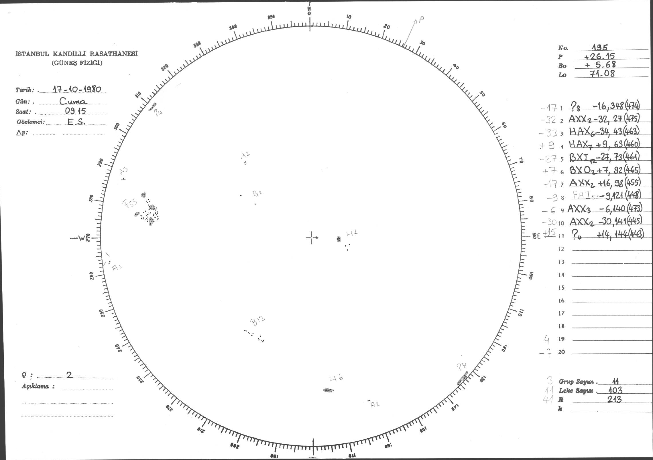 Güneş Lekesi Çizimleri / Kandilli Sunspot Drawings