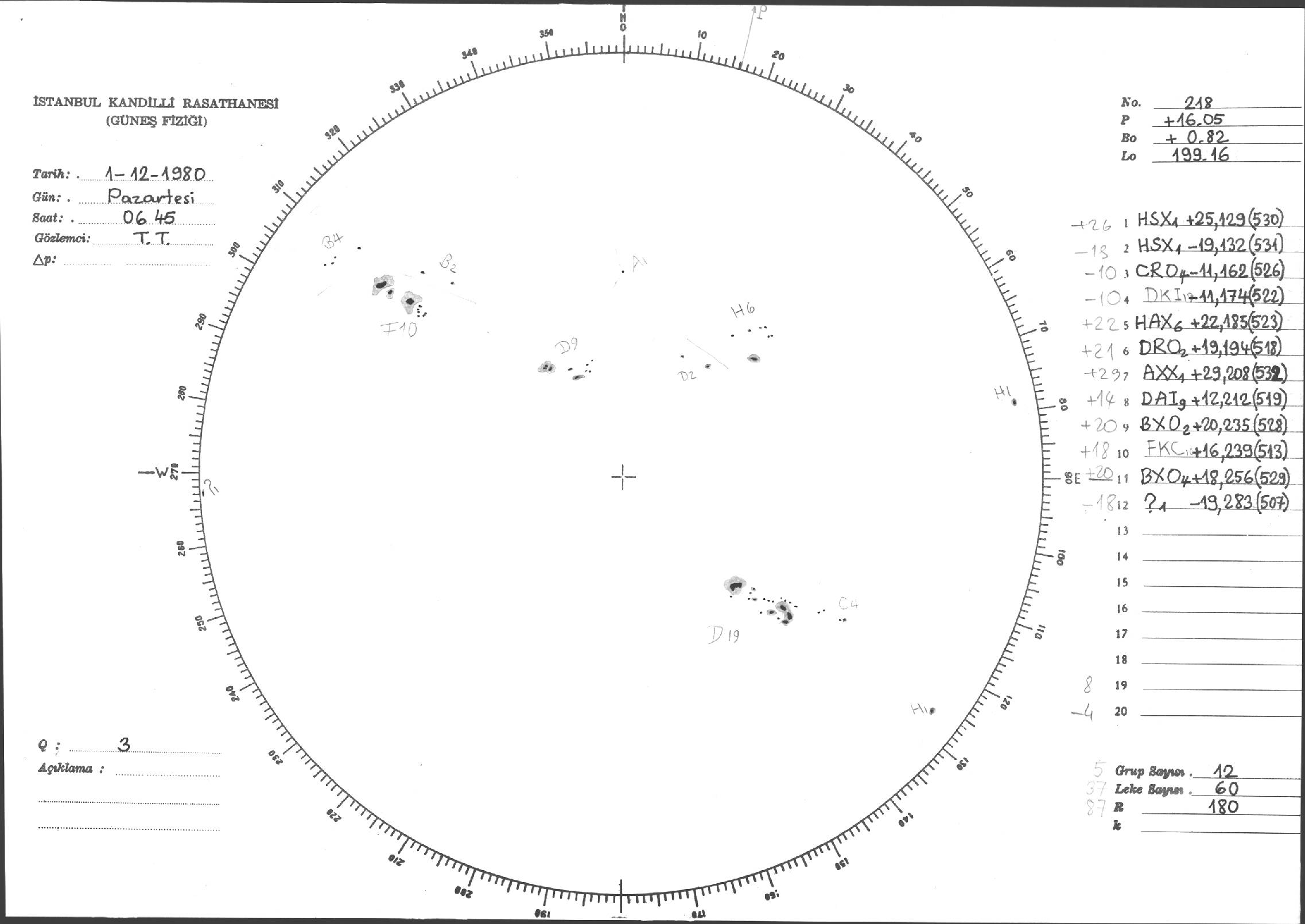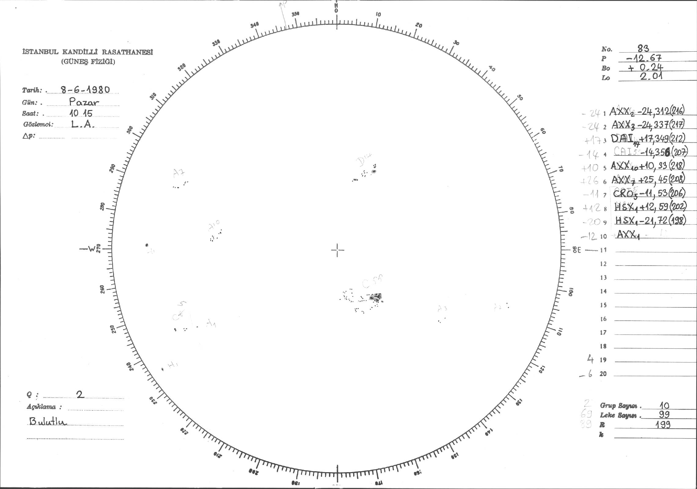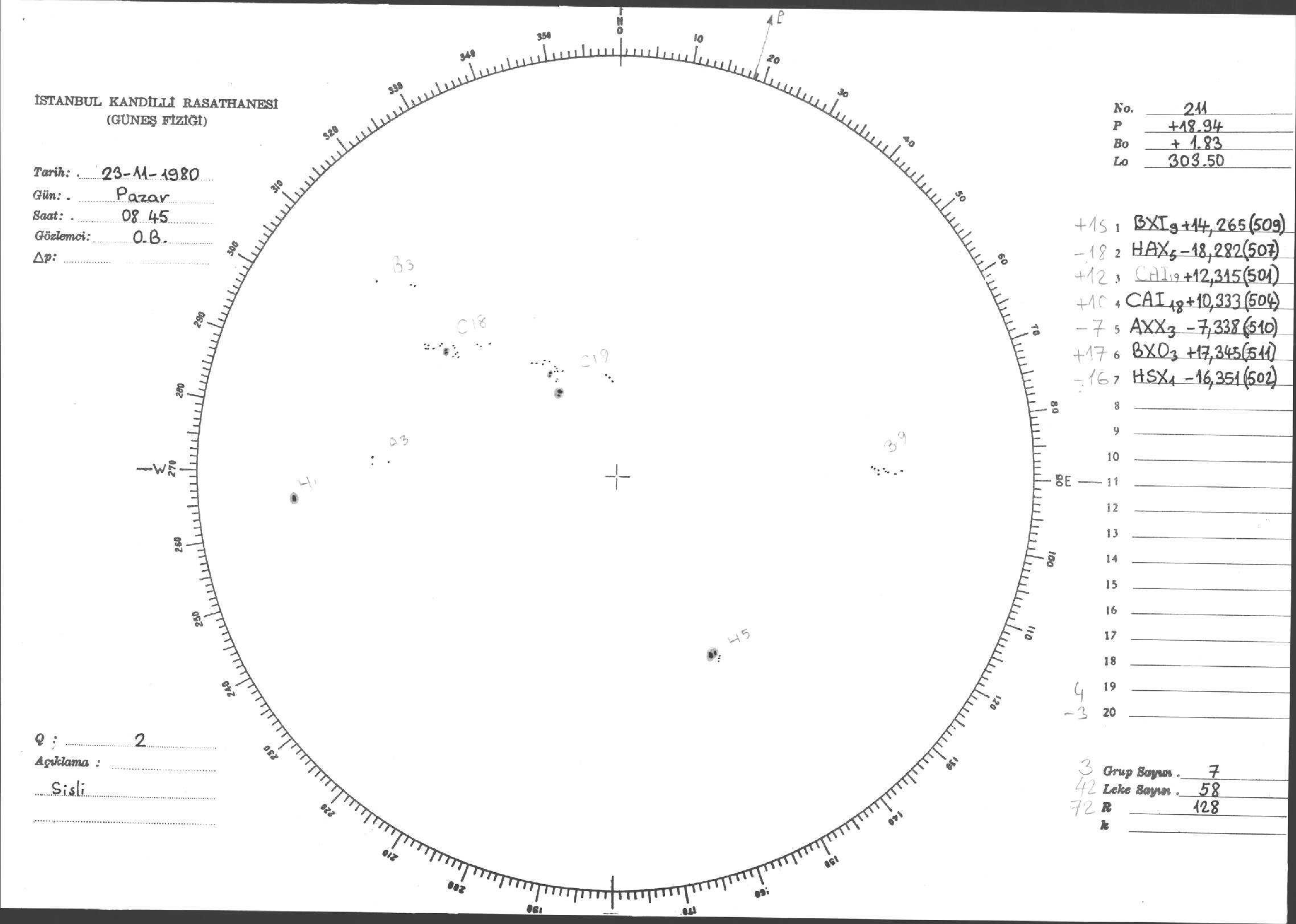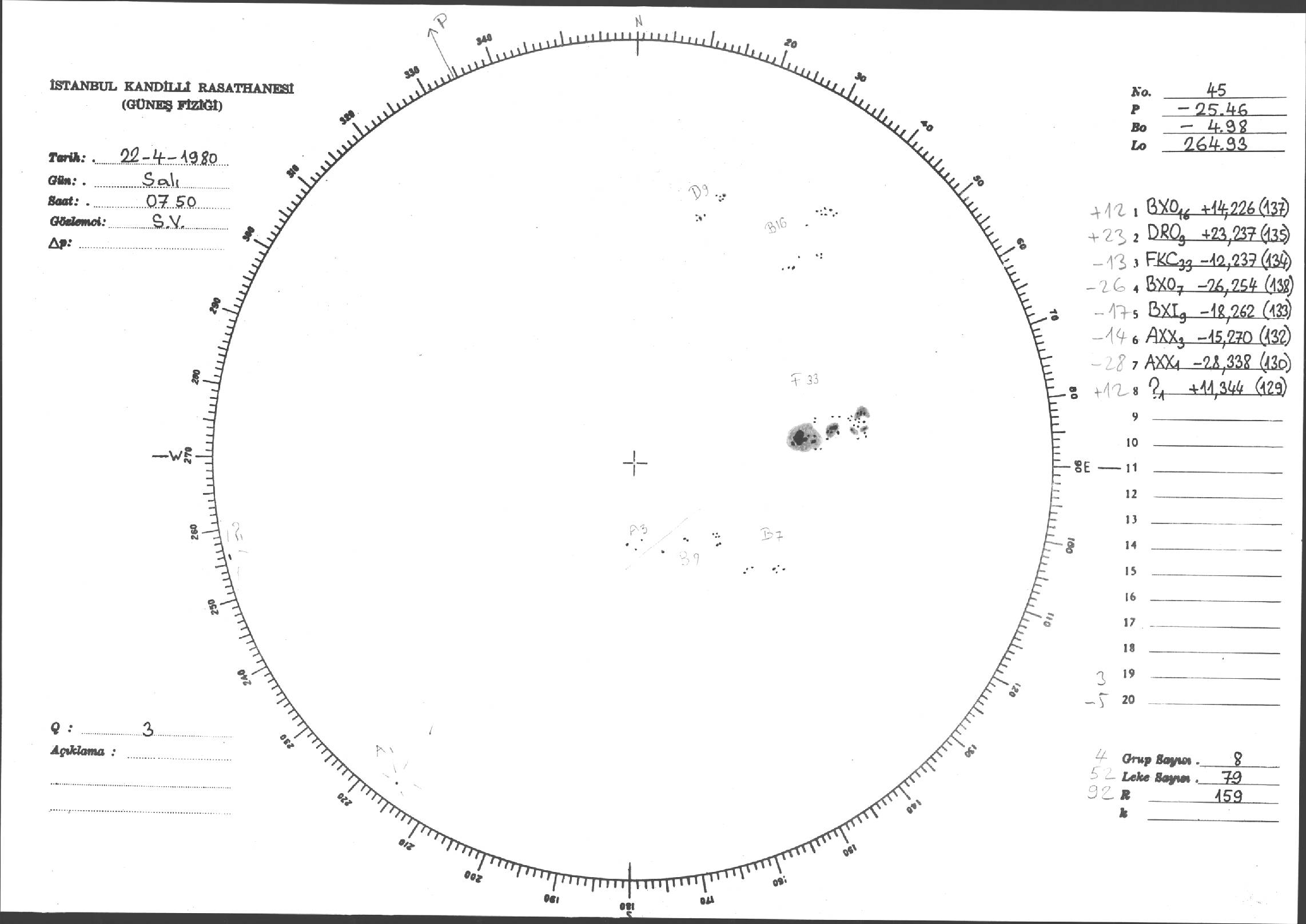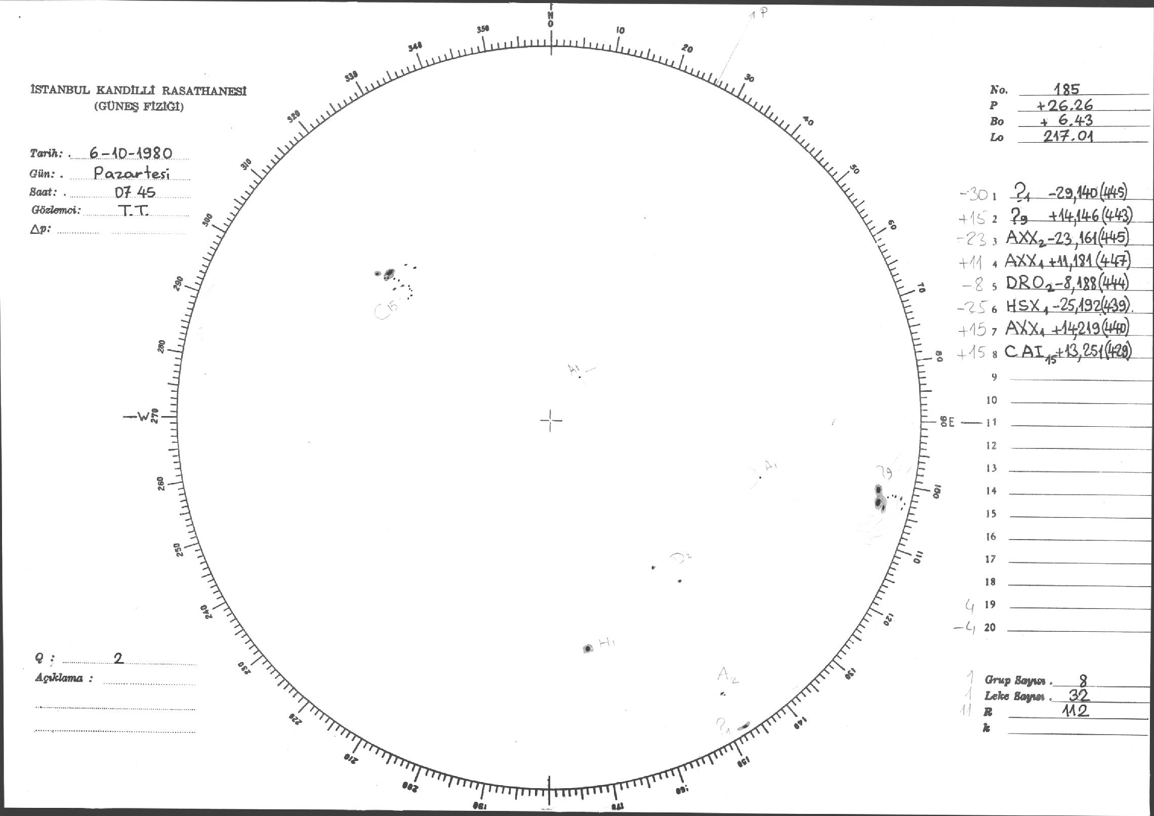 Güneş Lekesi Çizimleri / Kandilli Sunspot Drawings