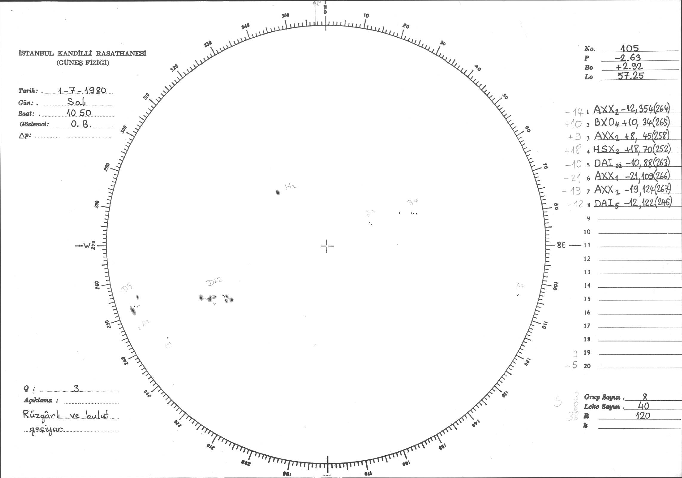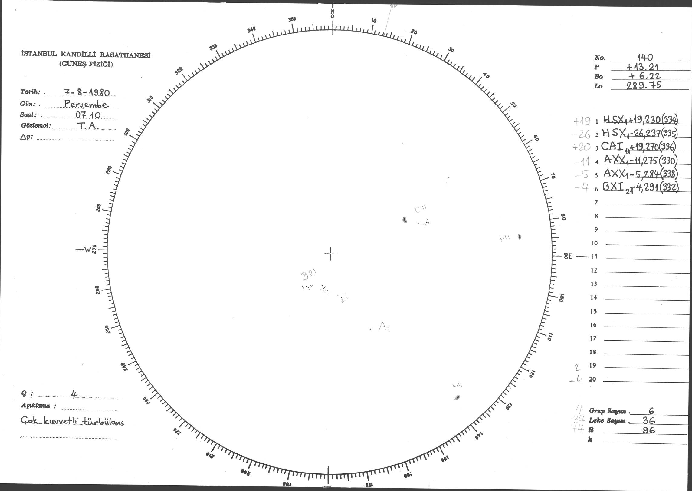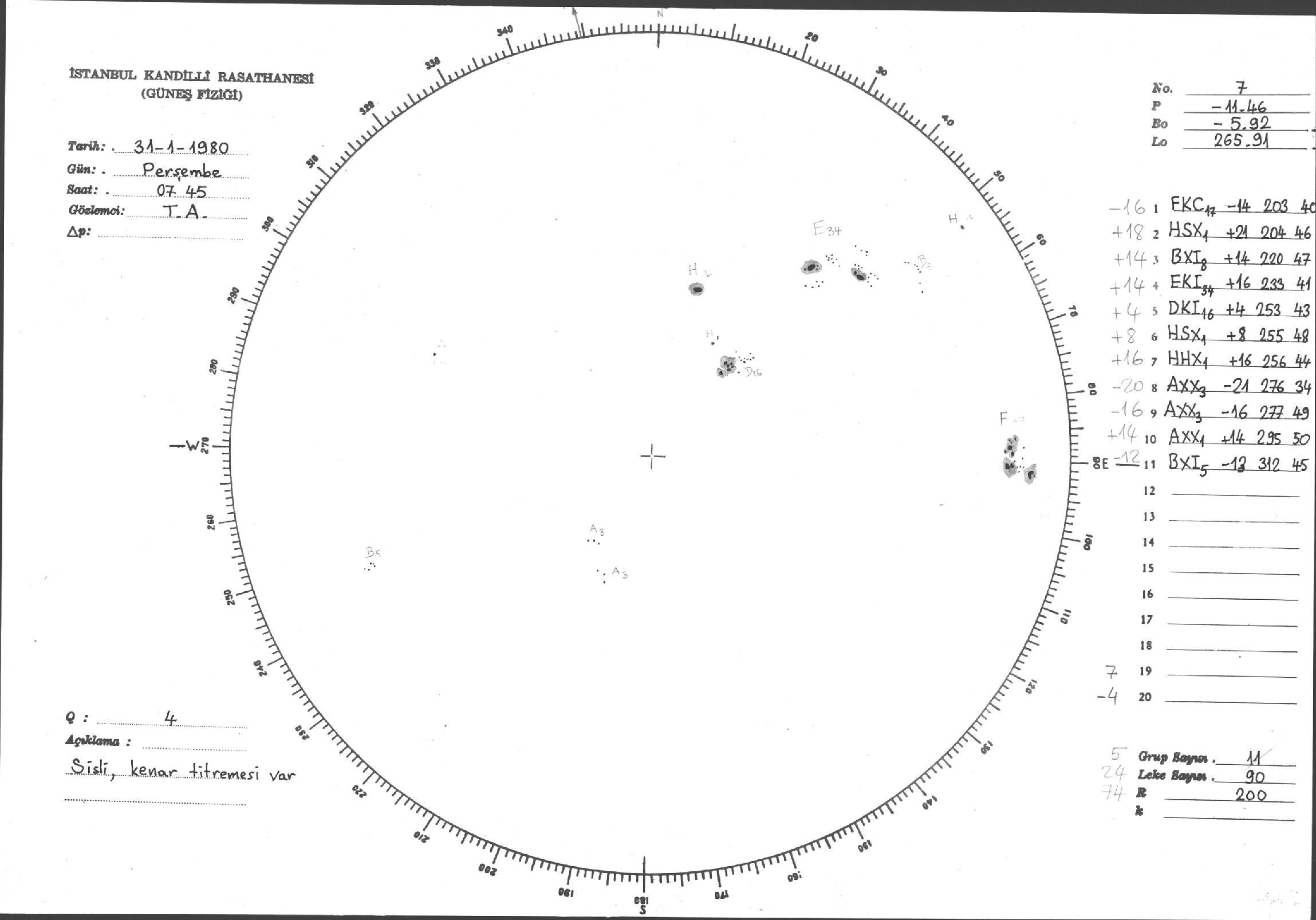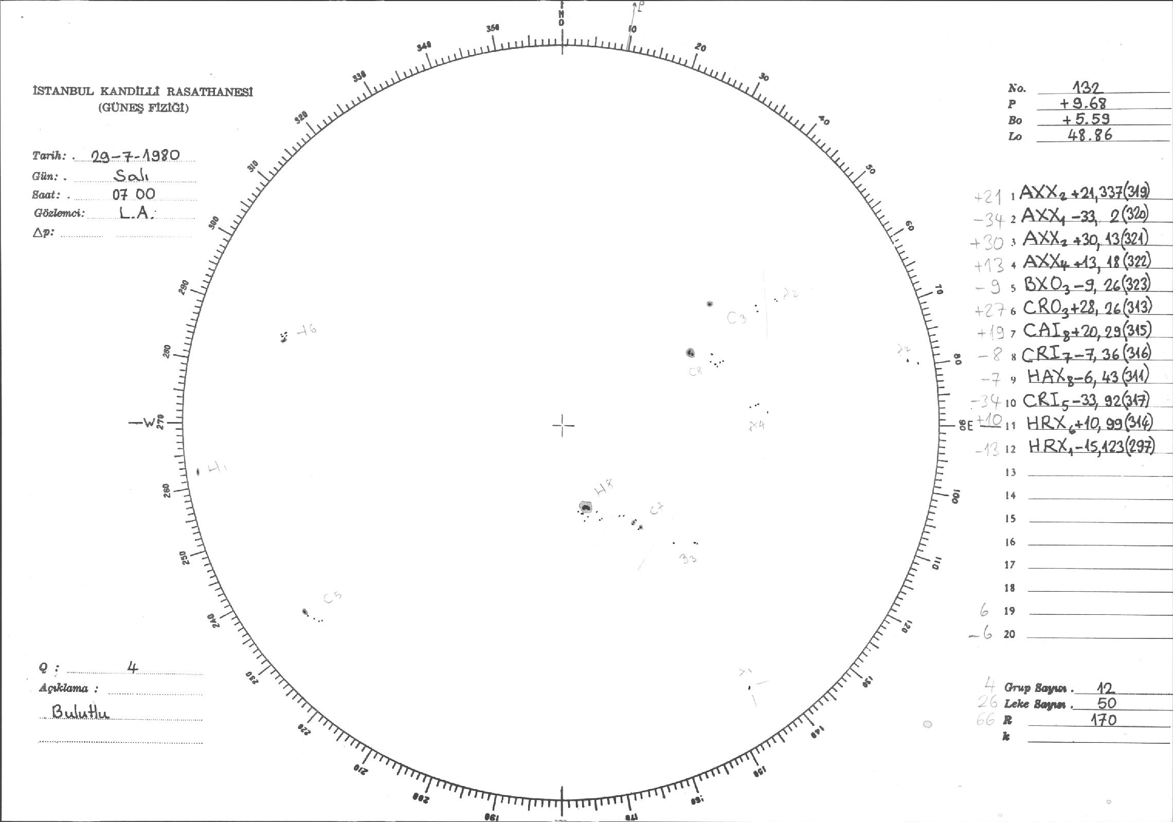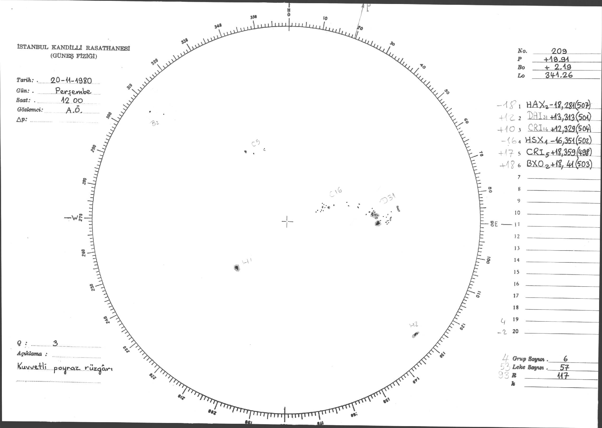 Güneş Lekesi Çizimleri / Kandilli Sunspot Drawings