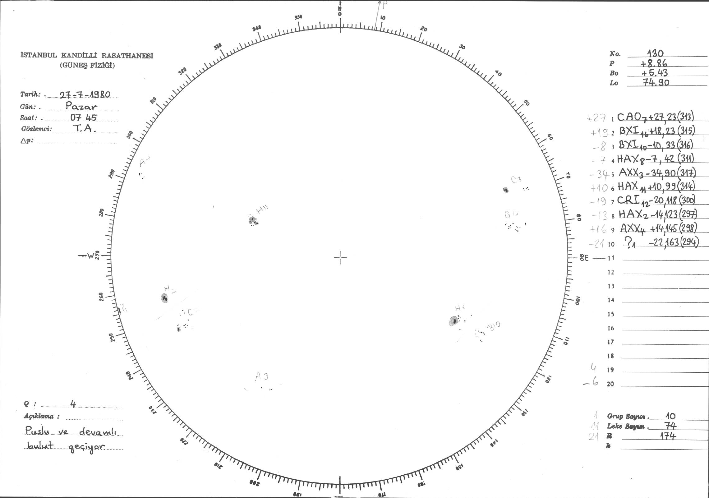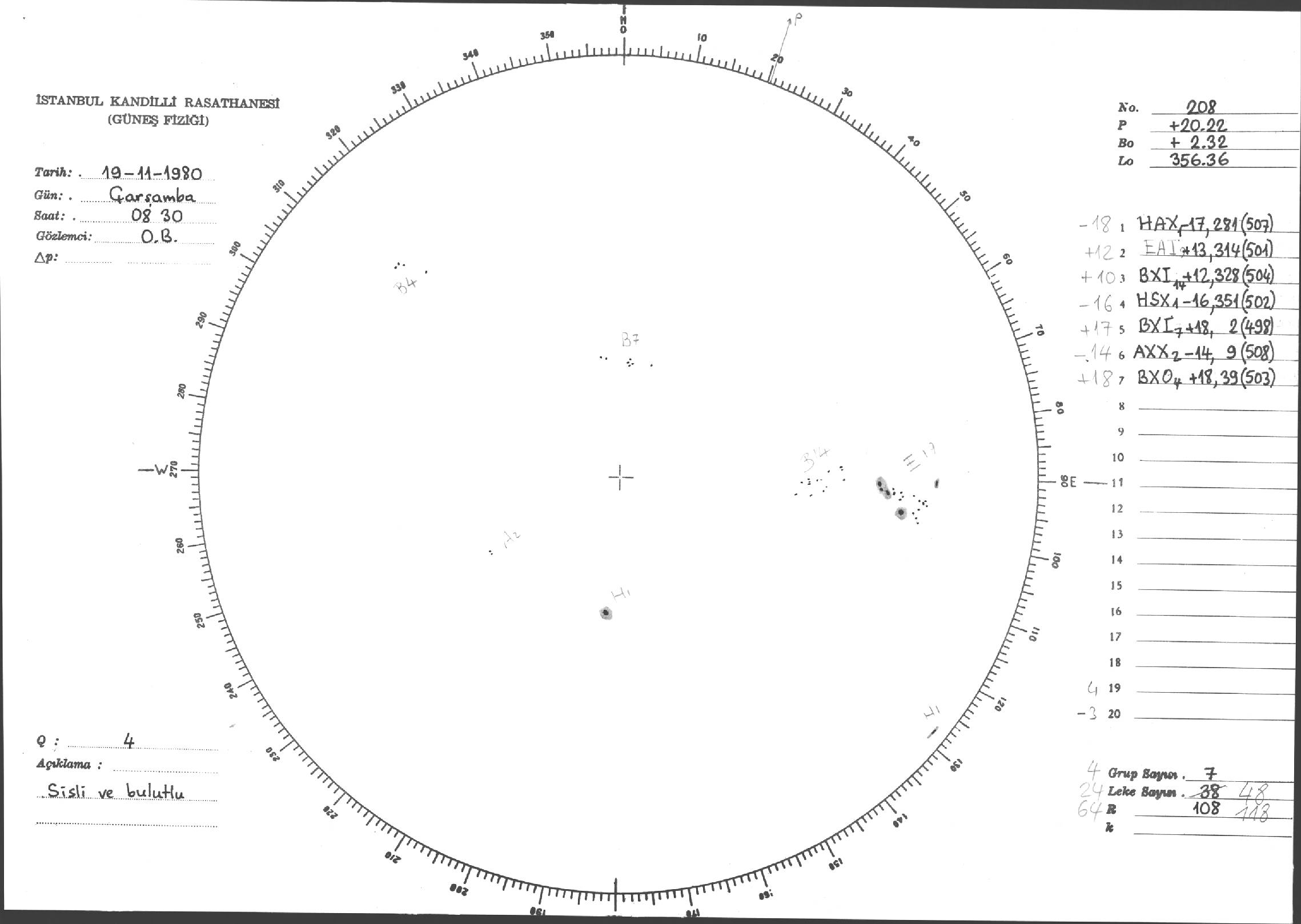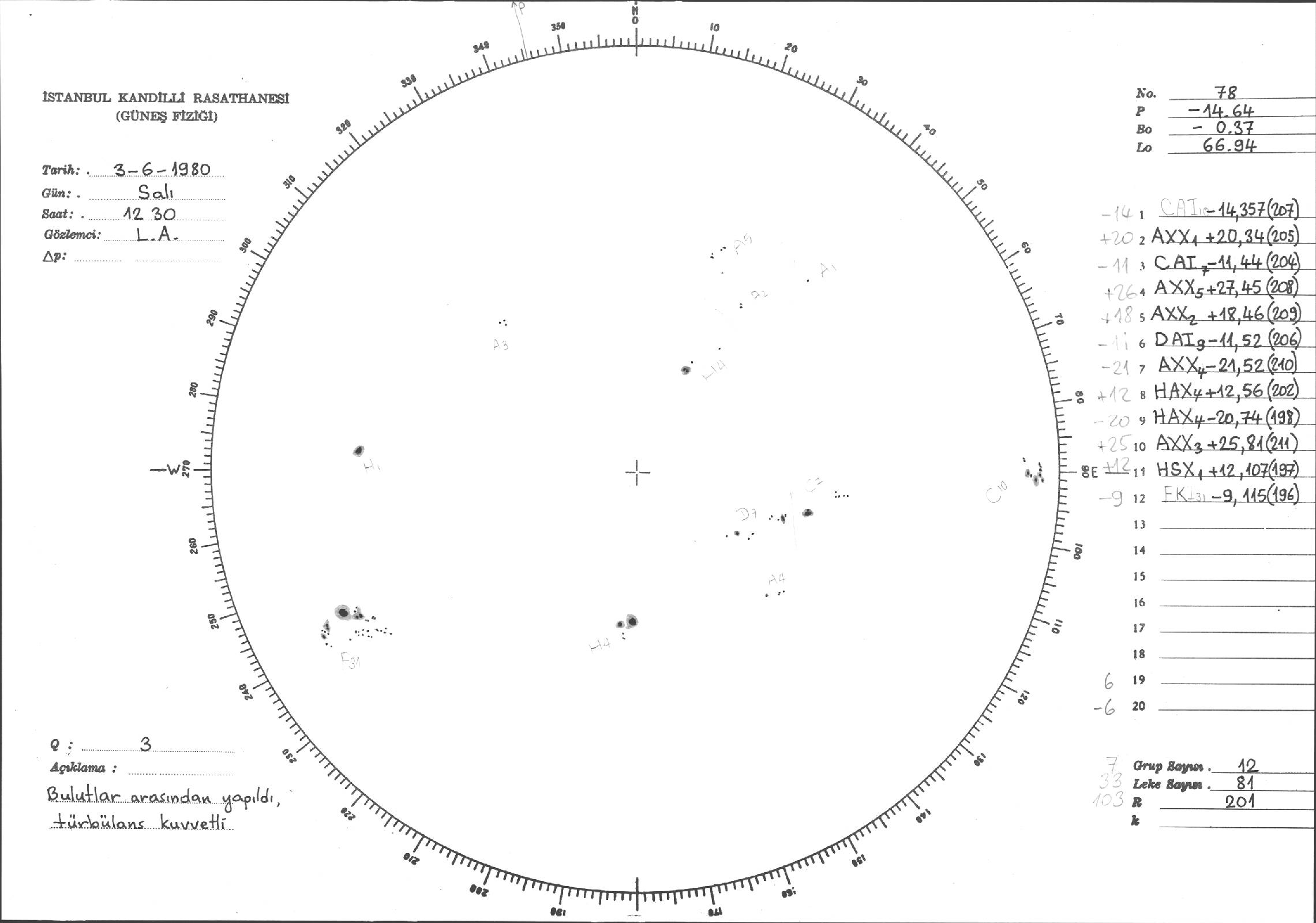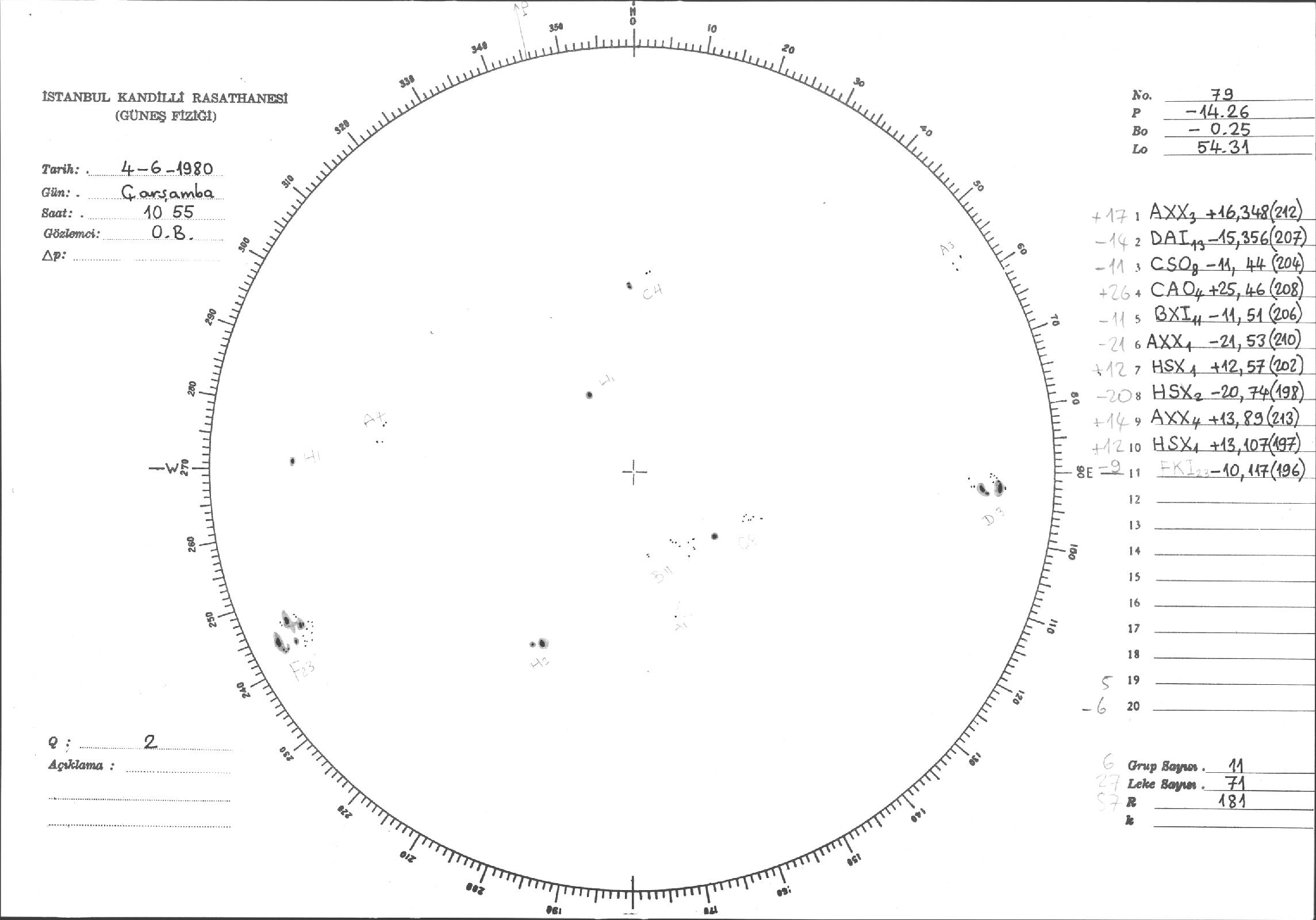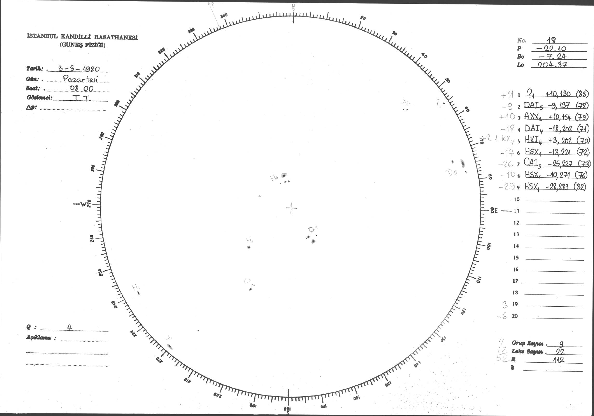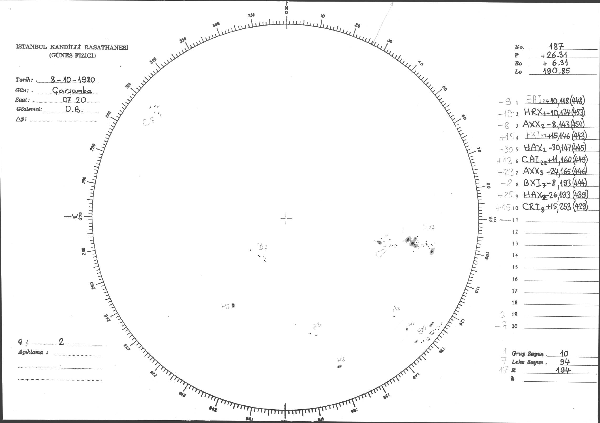Güneş Lekesi Çizimleri / Kandilli Sunspot Drawings