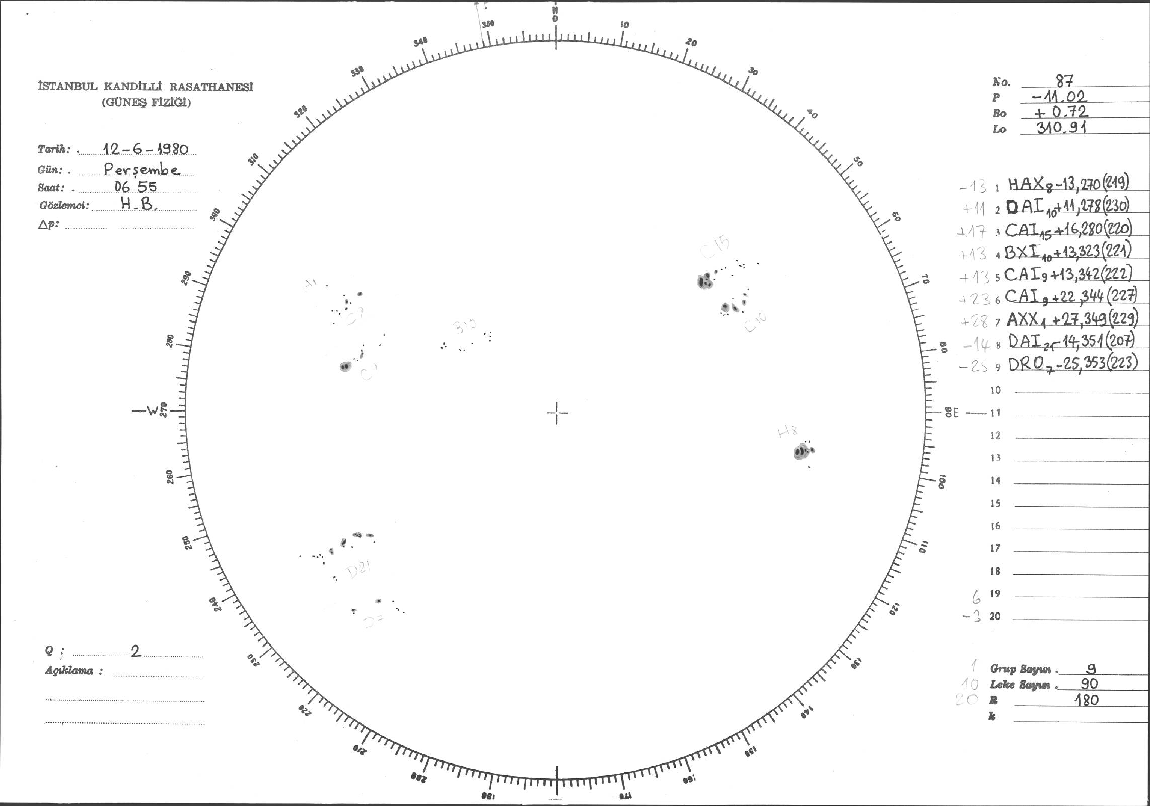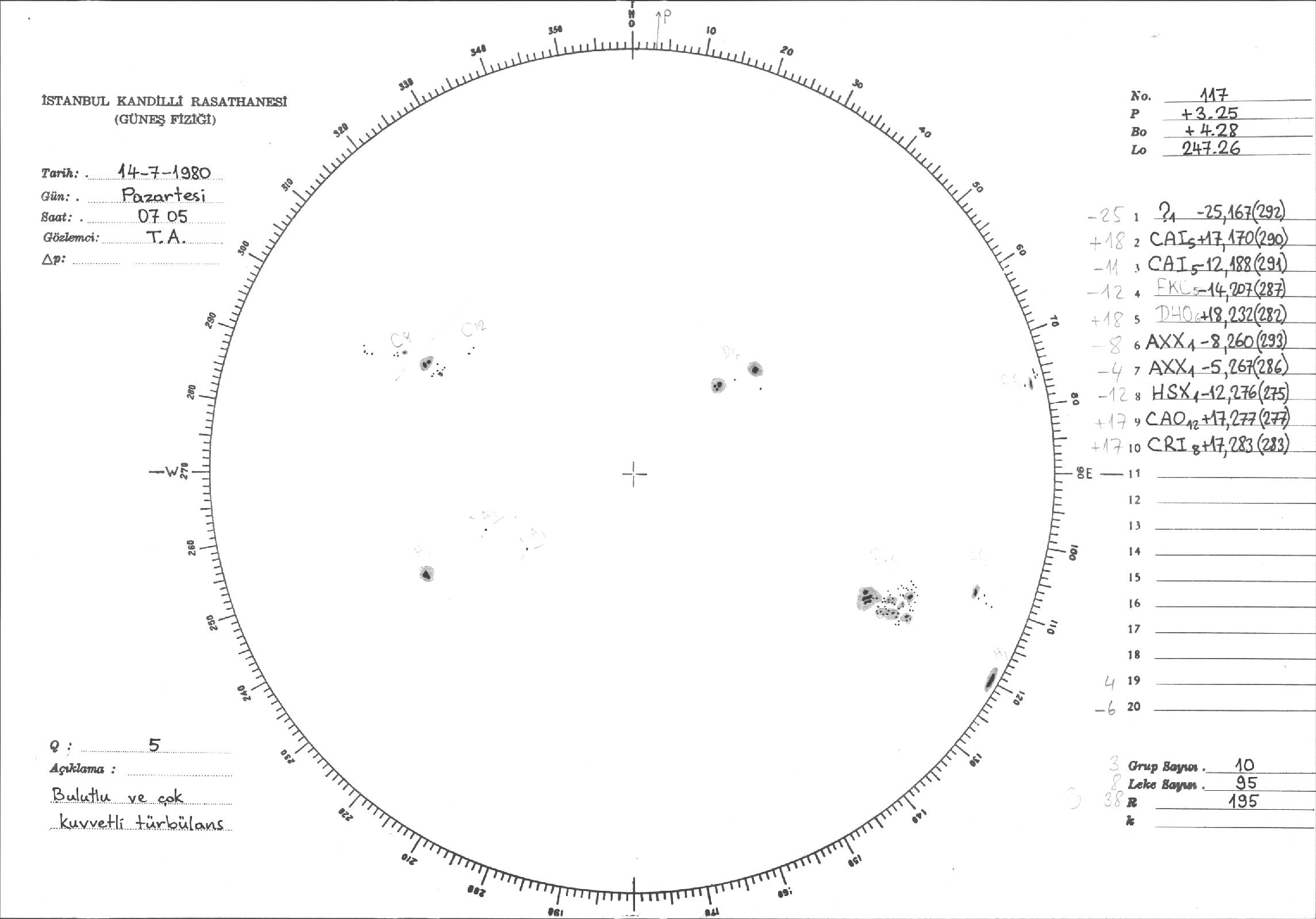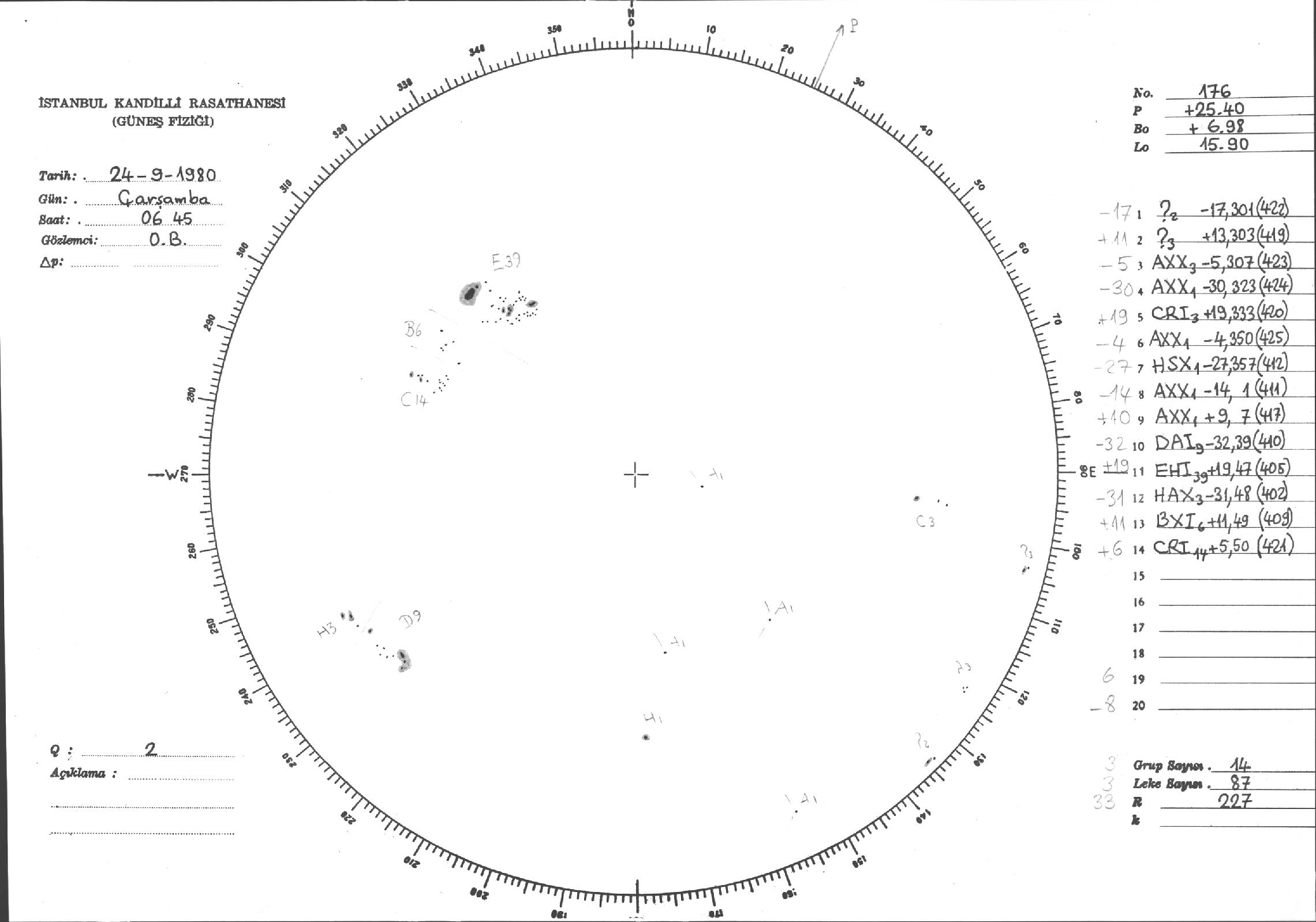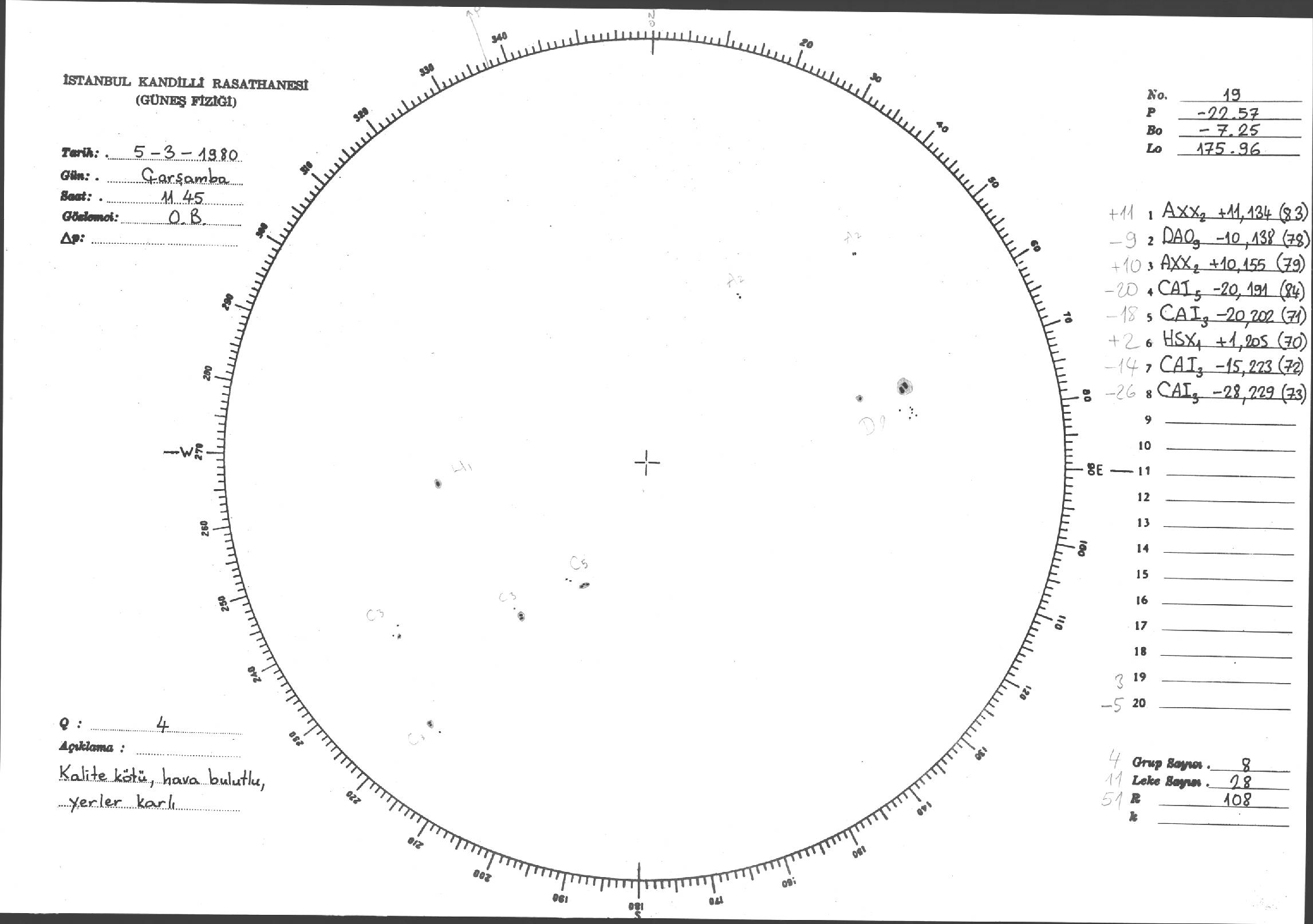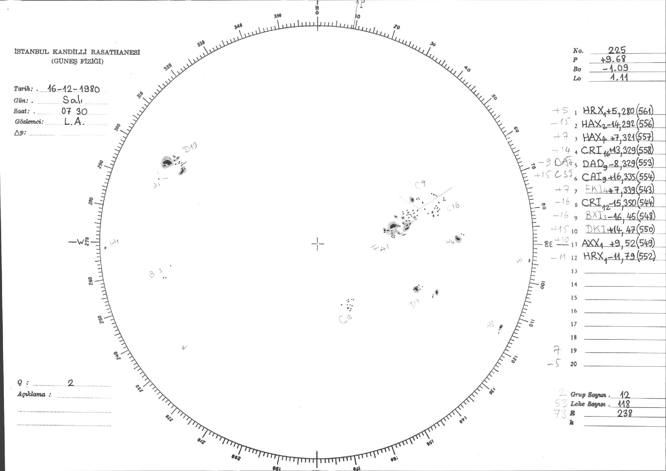 Güneş Lekesi Çizimleri / Kandilli Sunspot Drawings