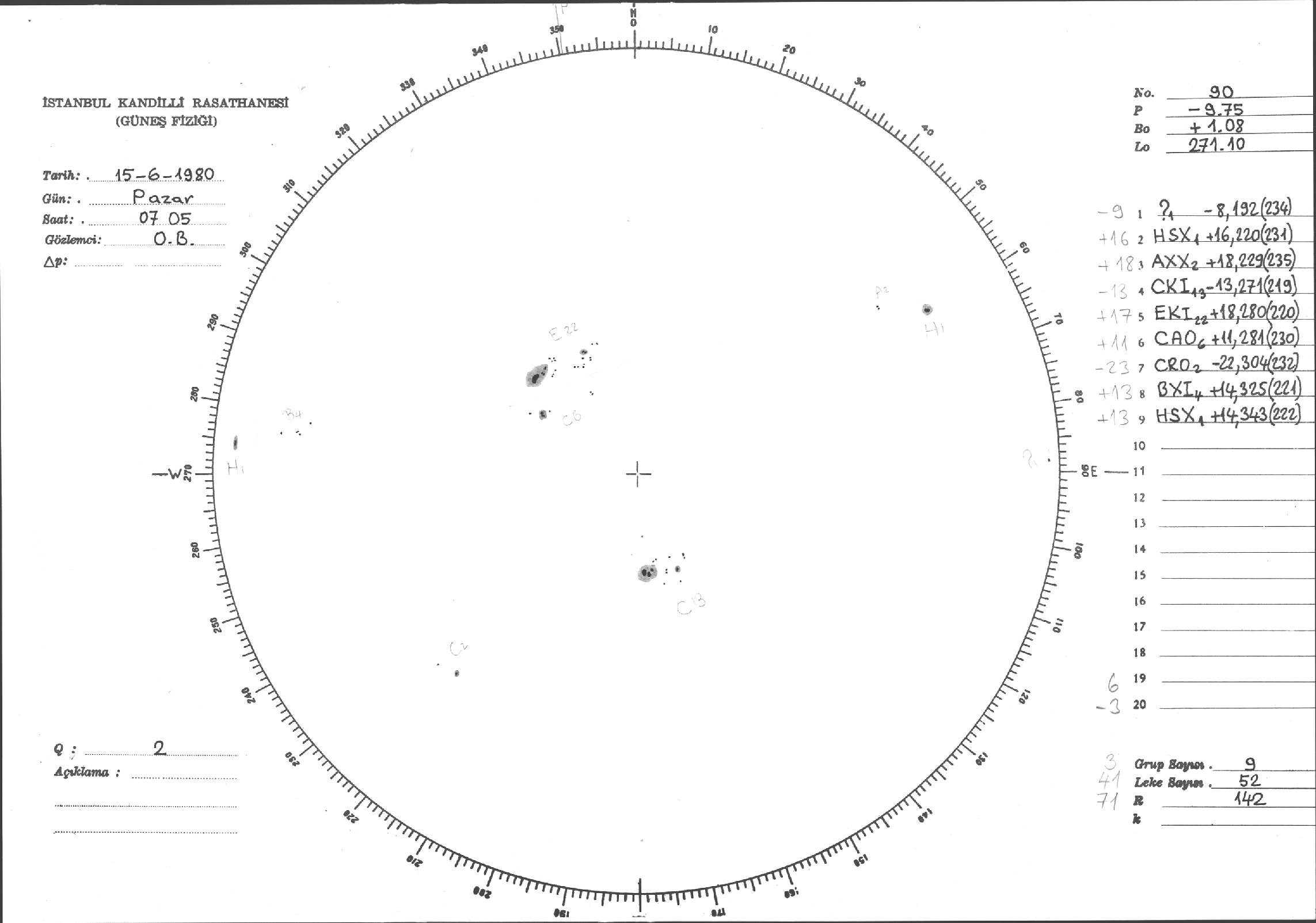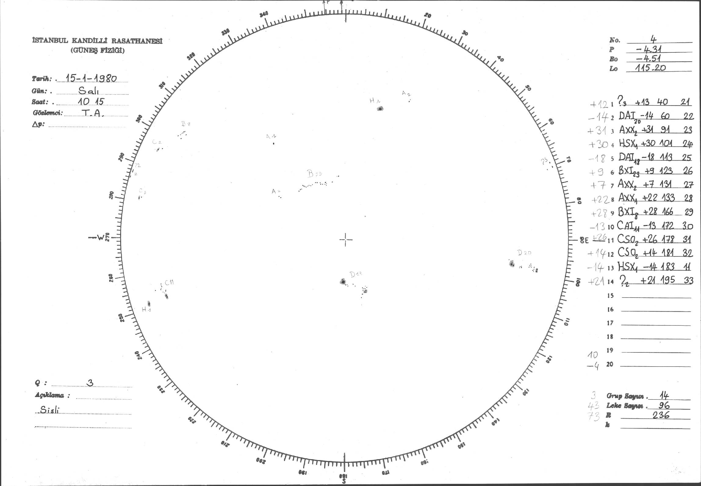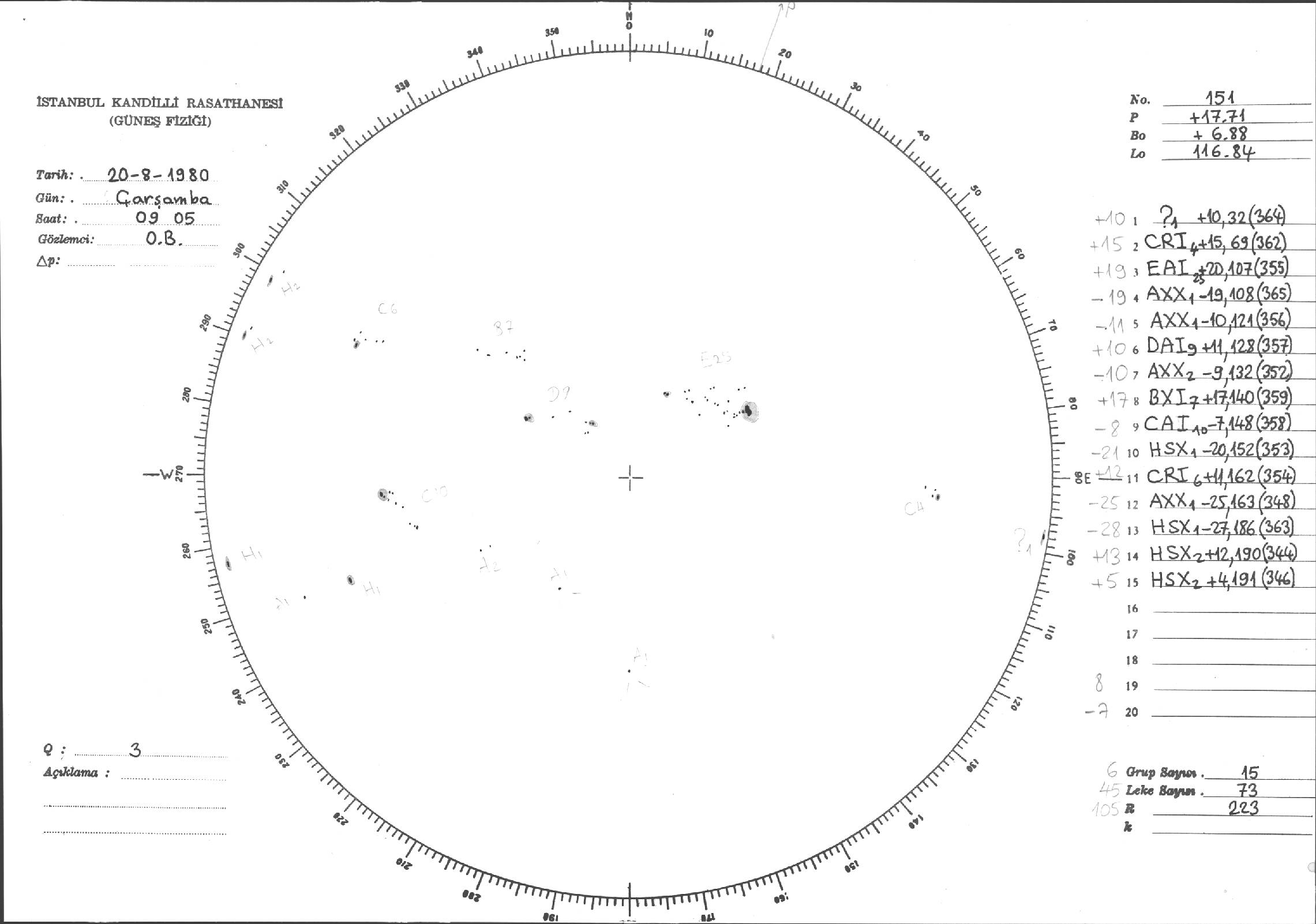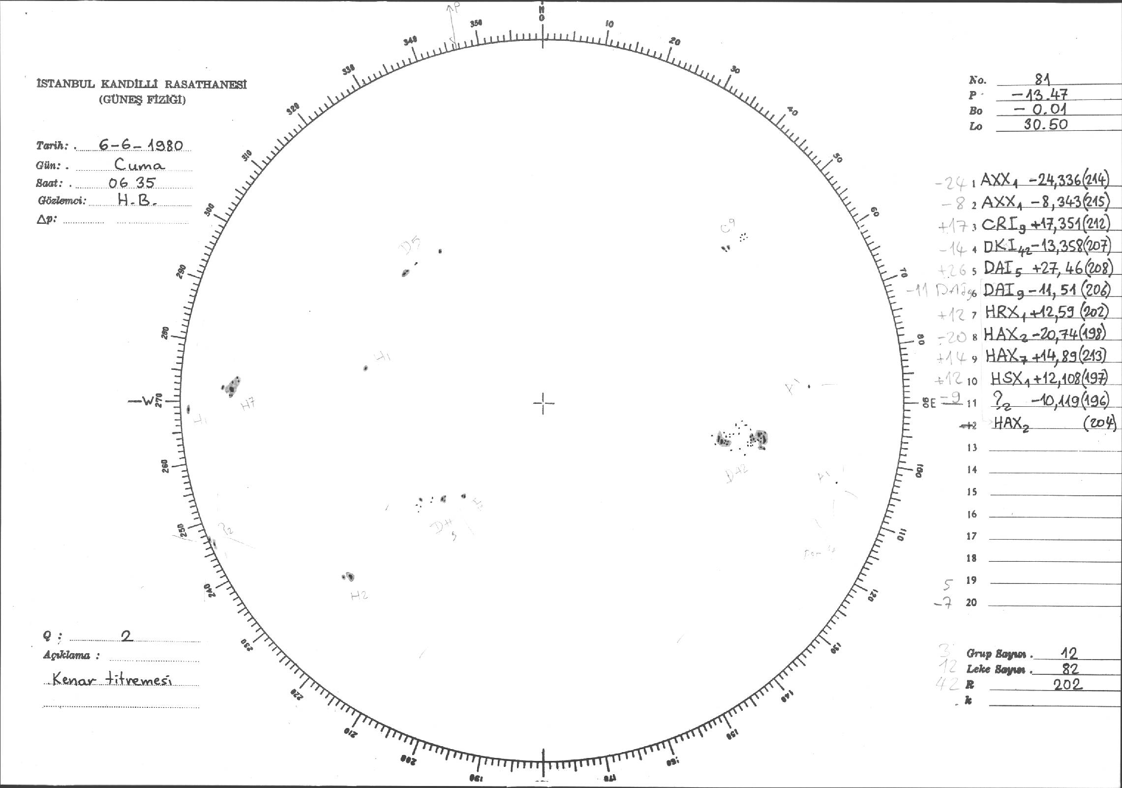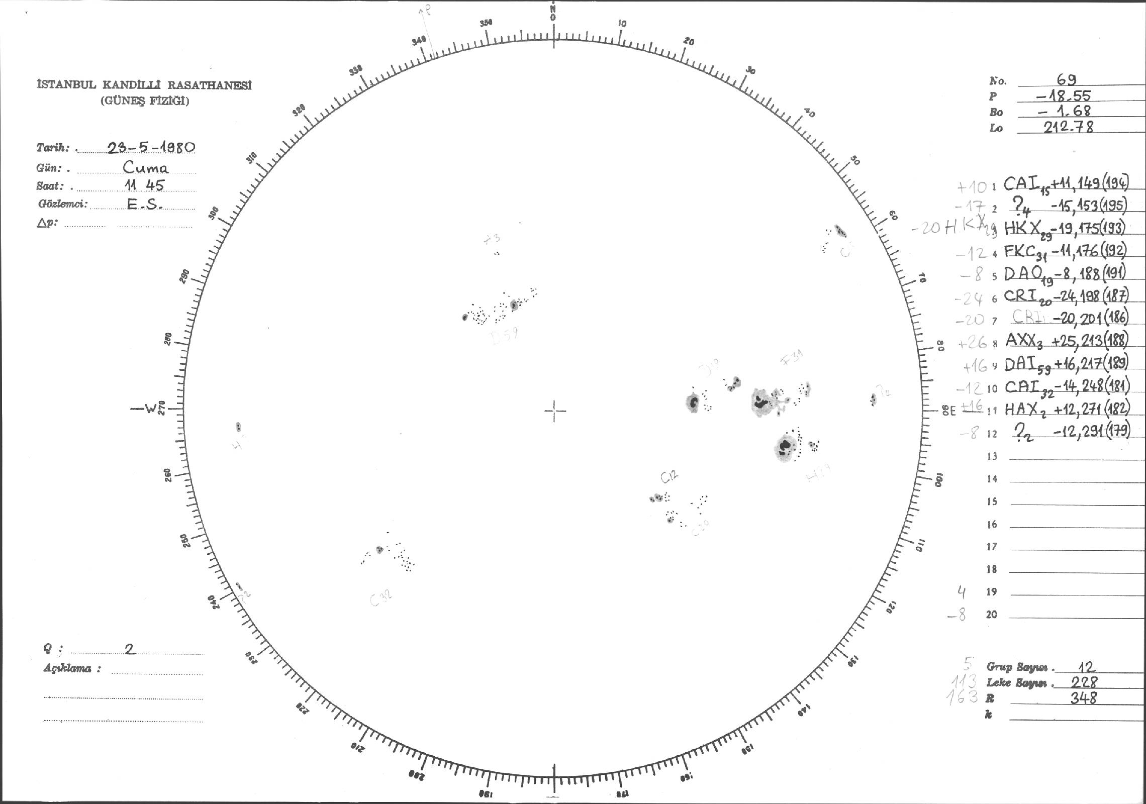 Güneş Lekesi Çizimleri / Kandilli Sunspot Drawings