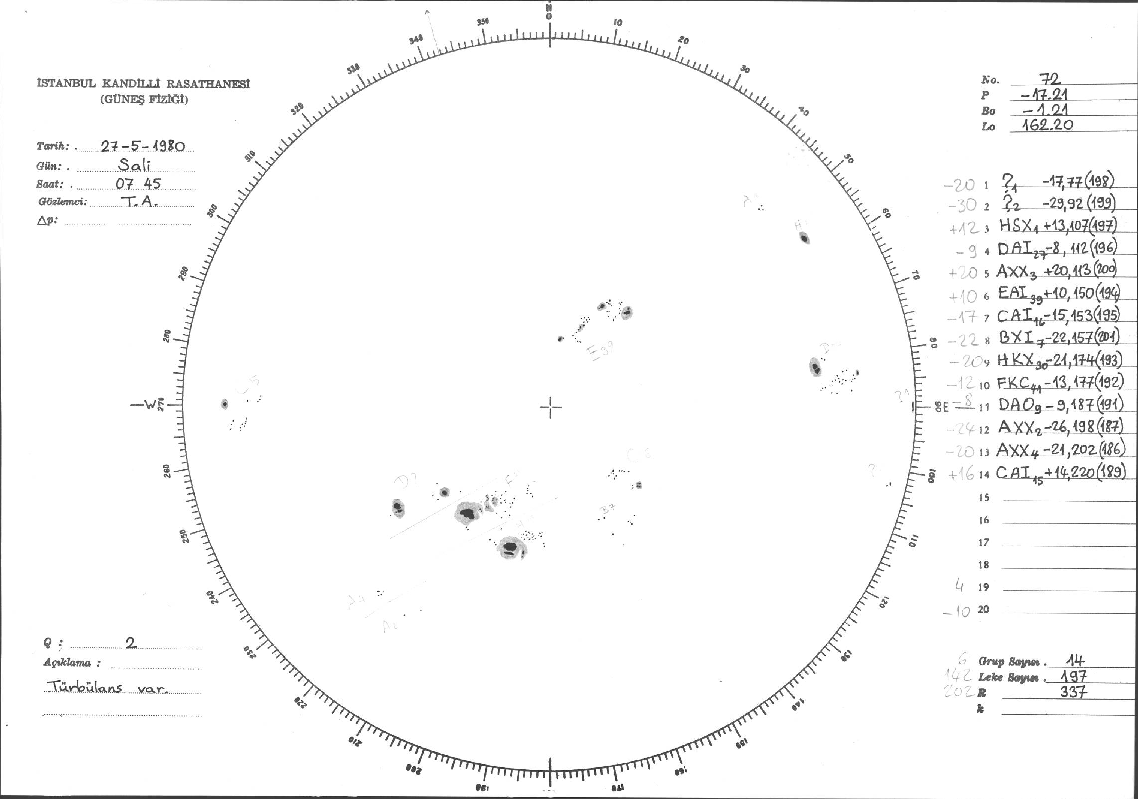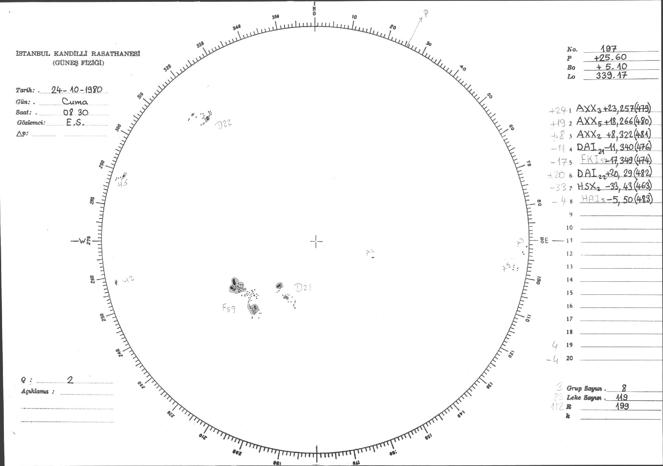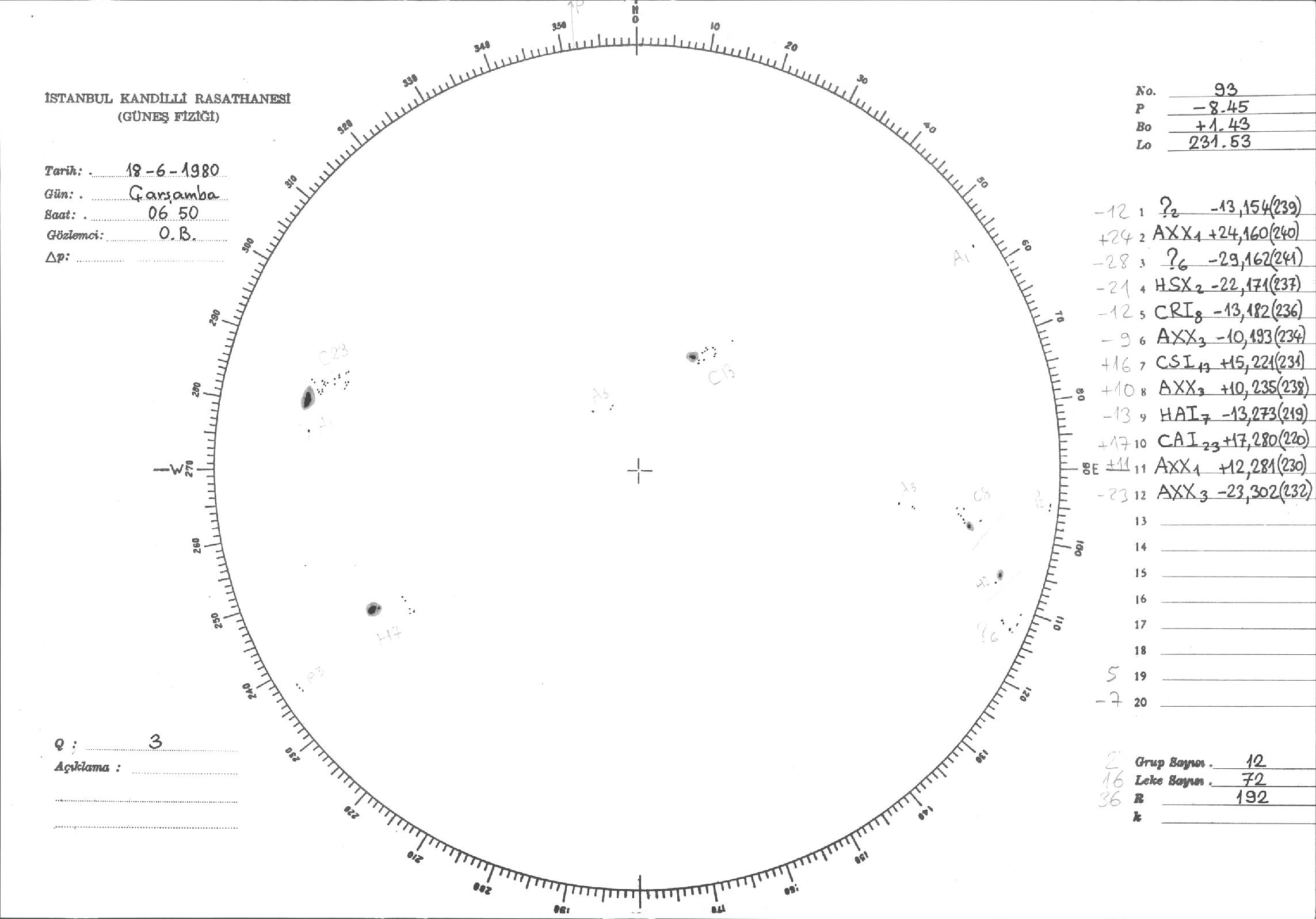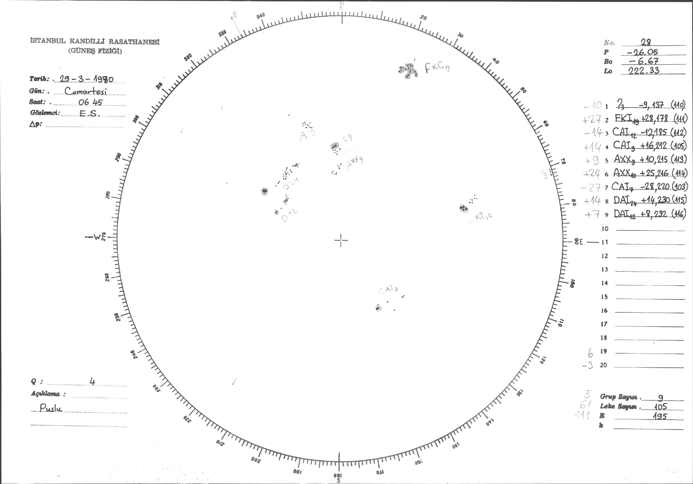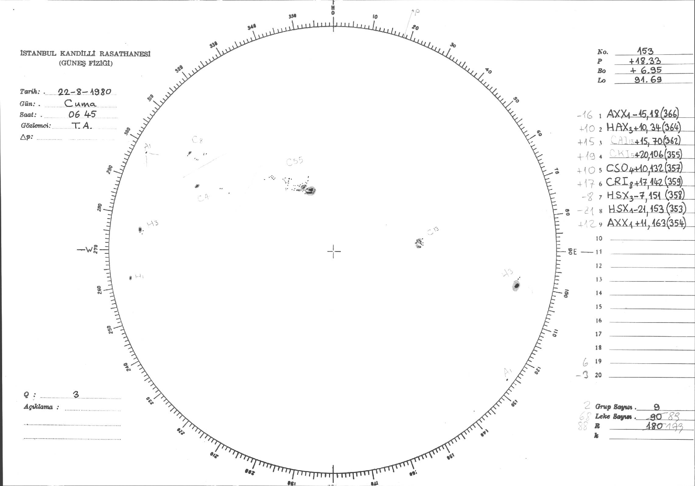 Güneş Lekesi Çizimleri / Kandilli Sunspot Drawings