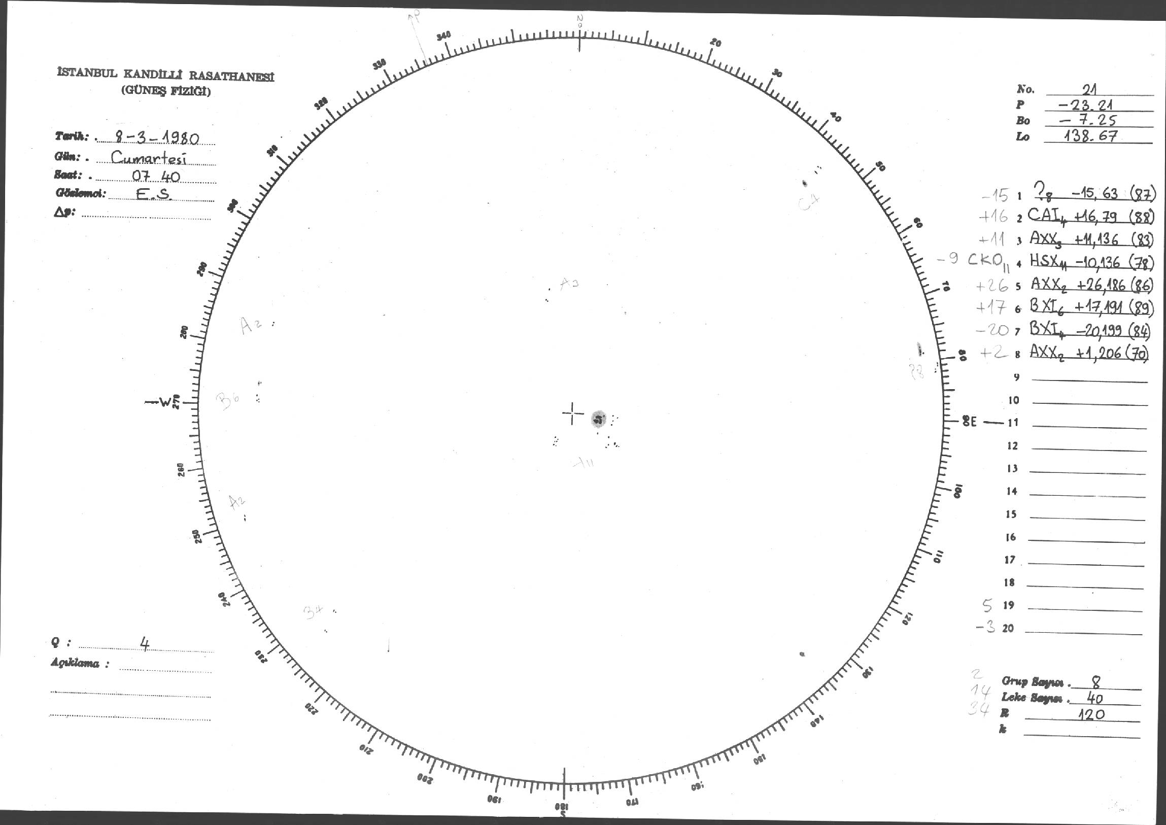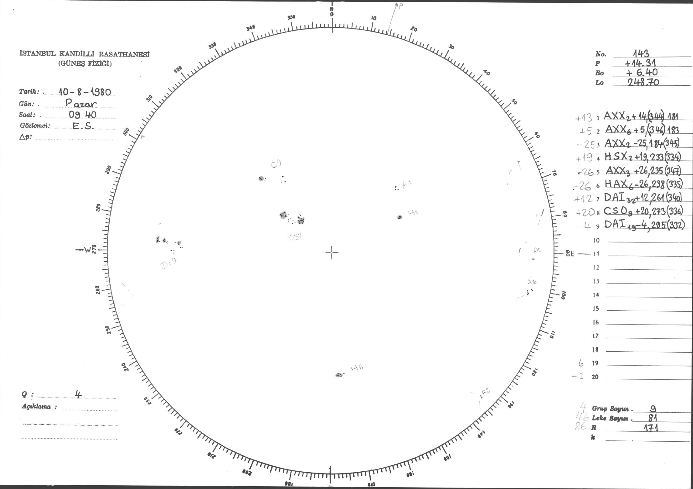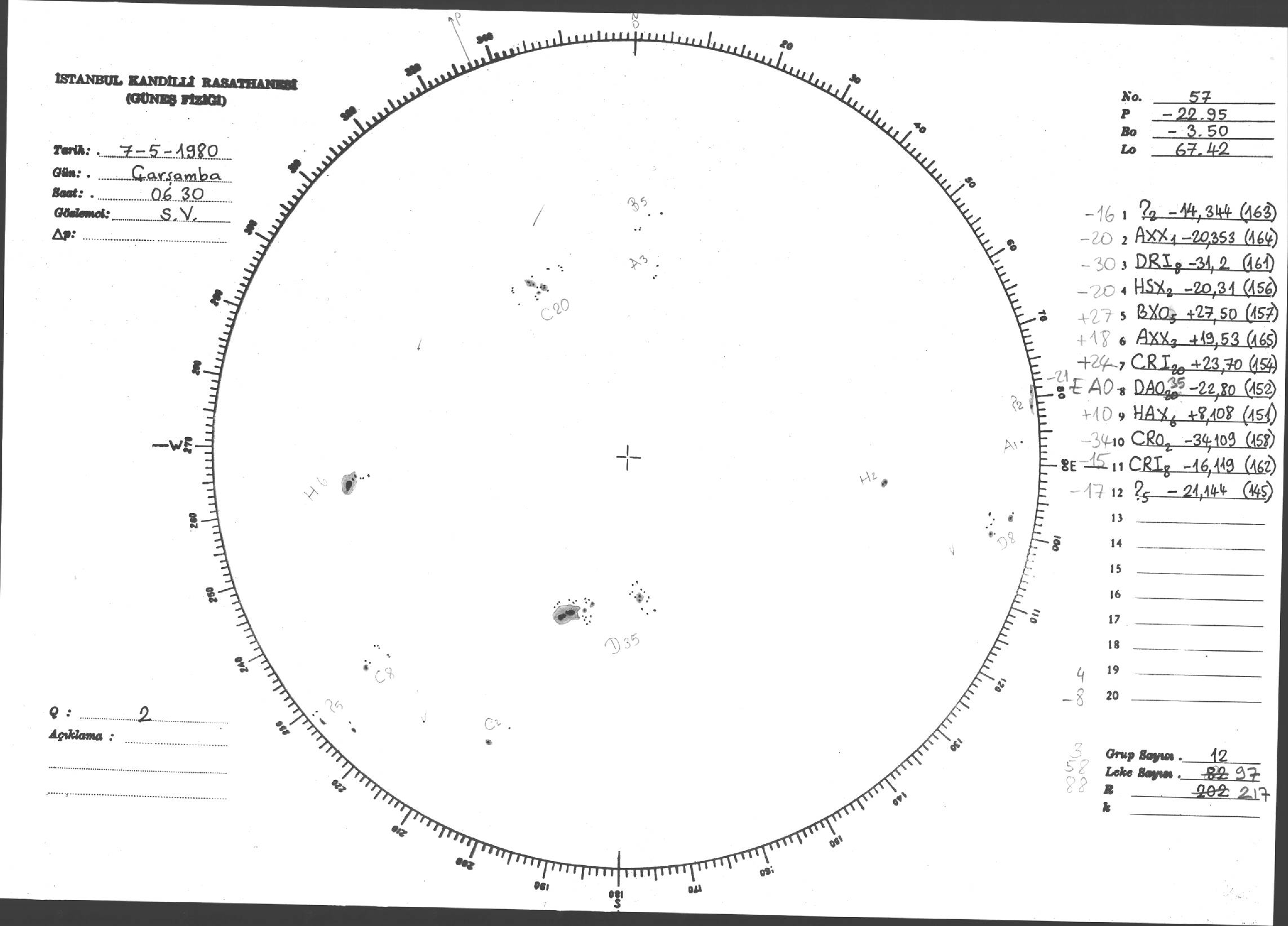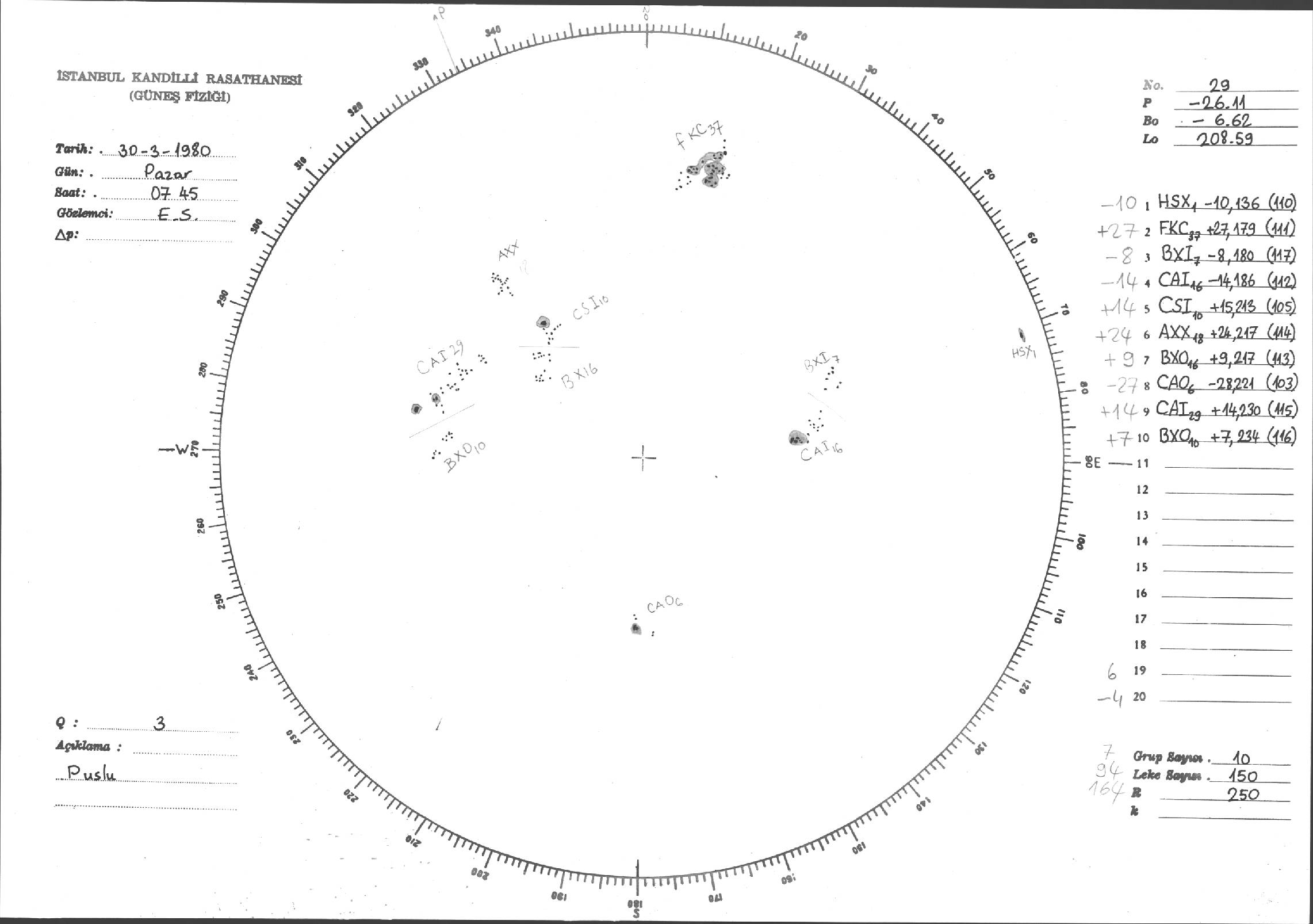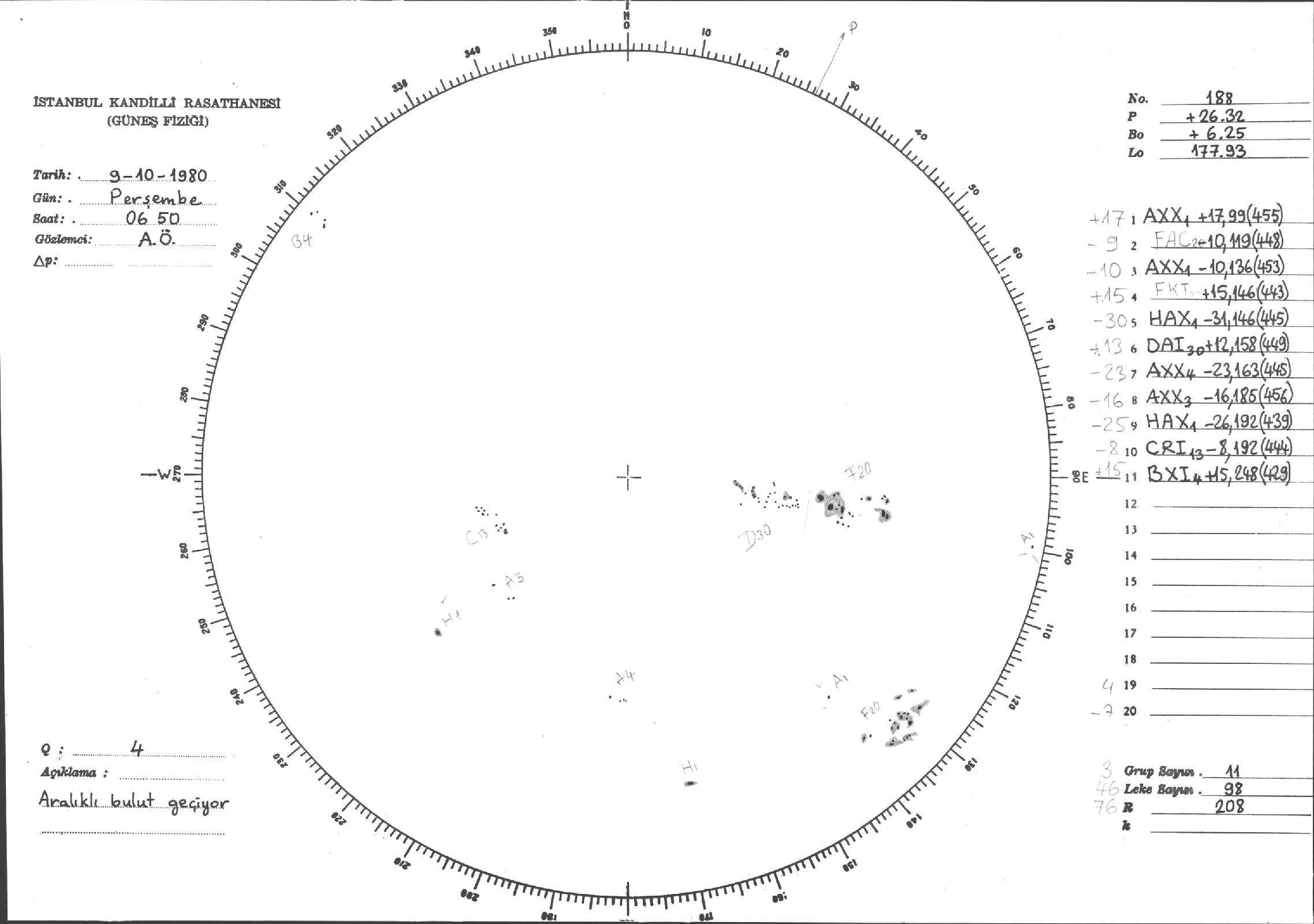 Güneş Lekesi Çizimleri / Kandilli Sunspot Drawings