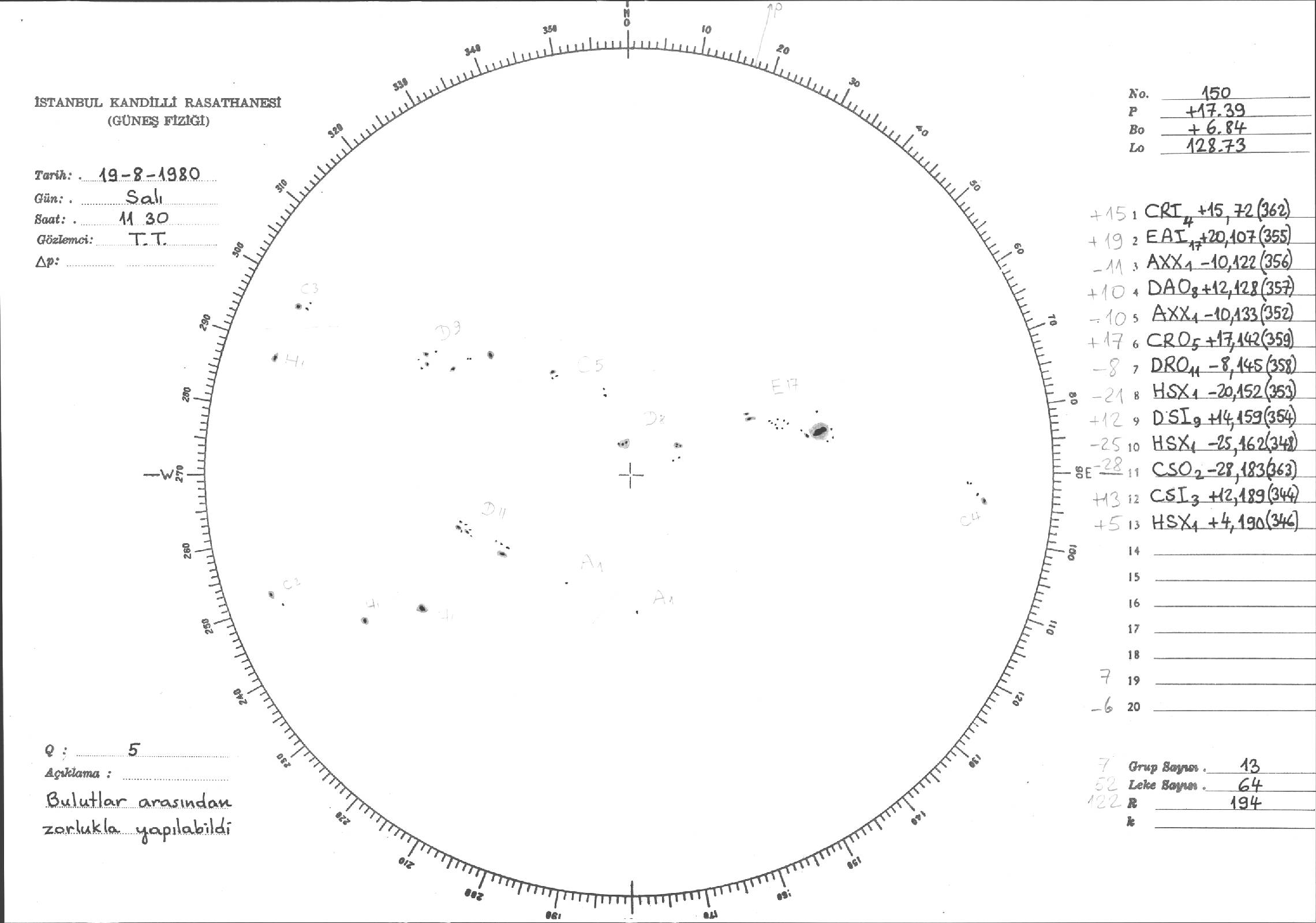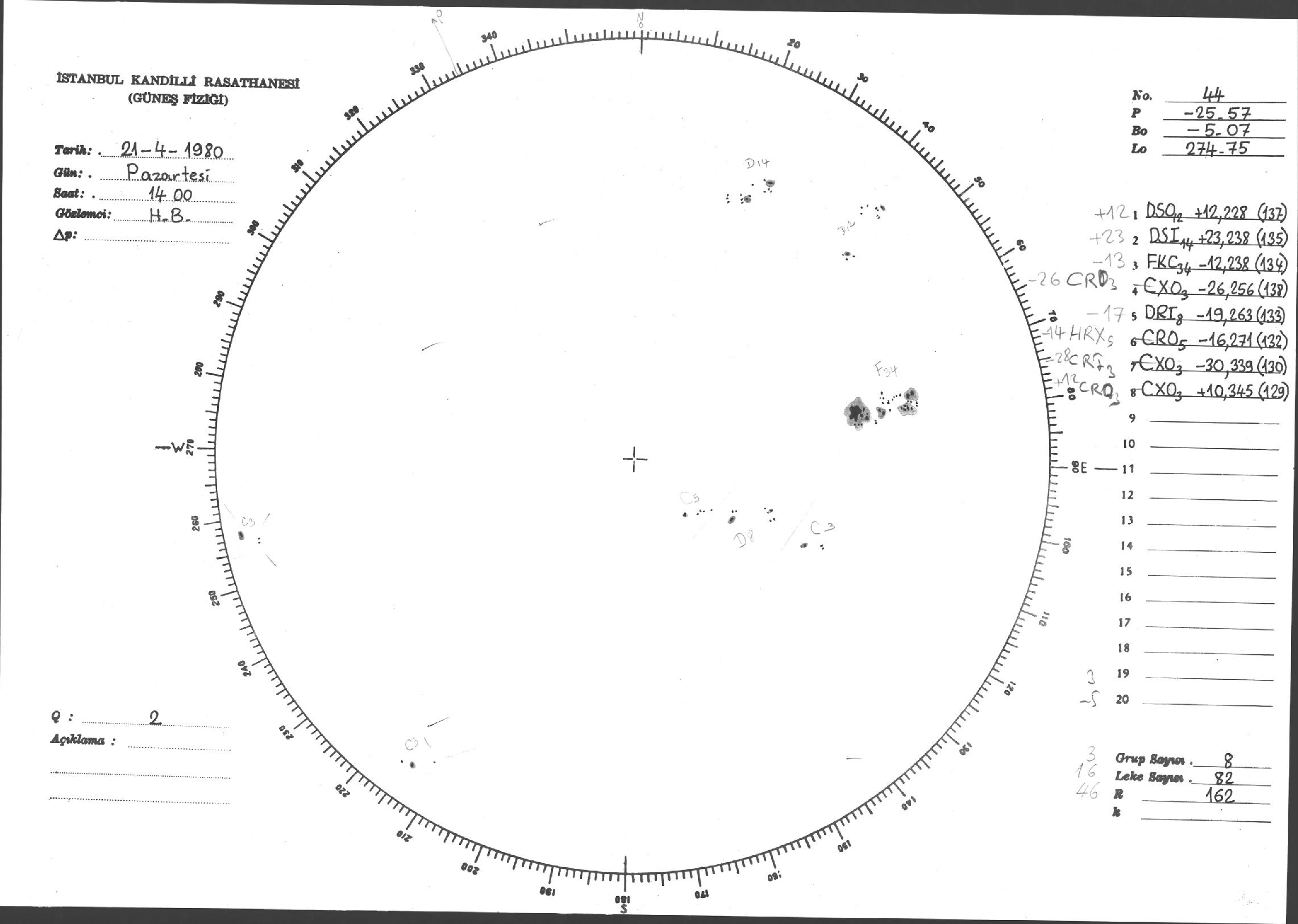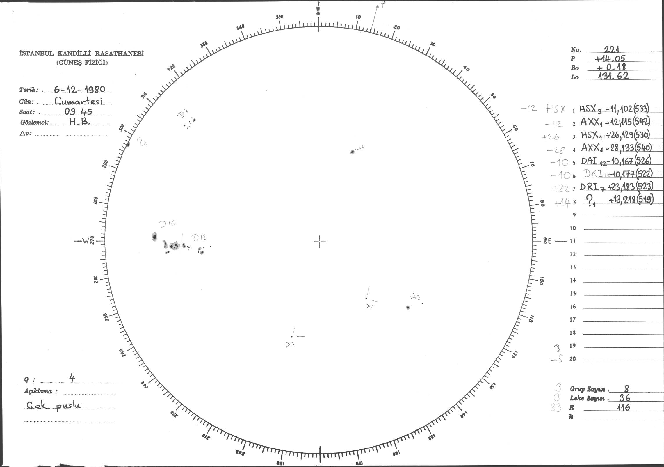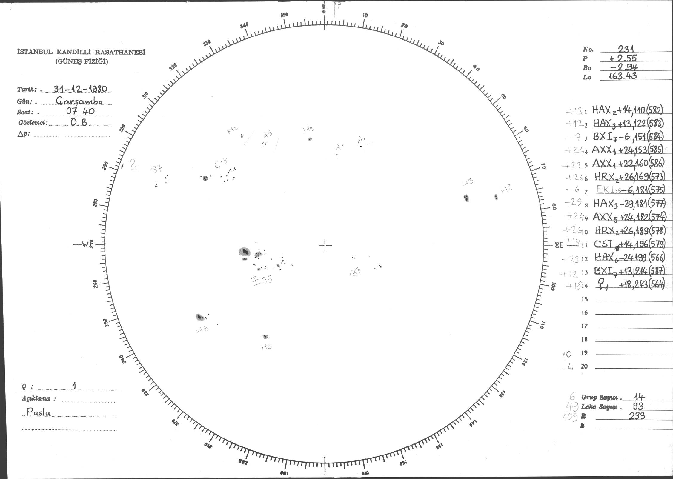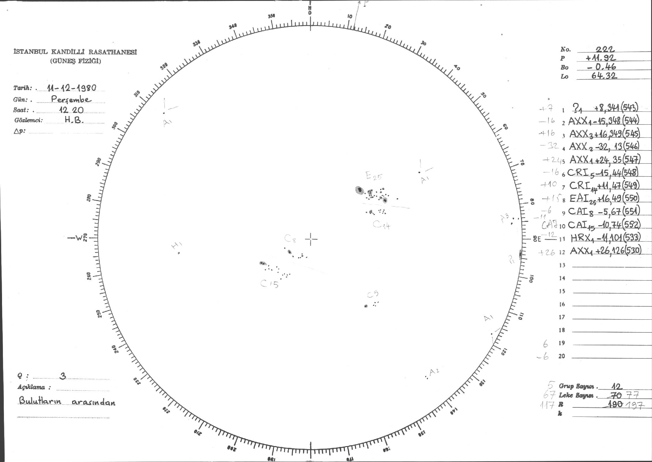 Güneş Lekesi Çizimleri / Kandilli Sunspot Drawings