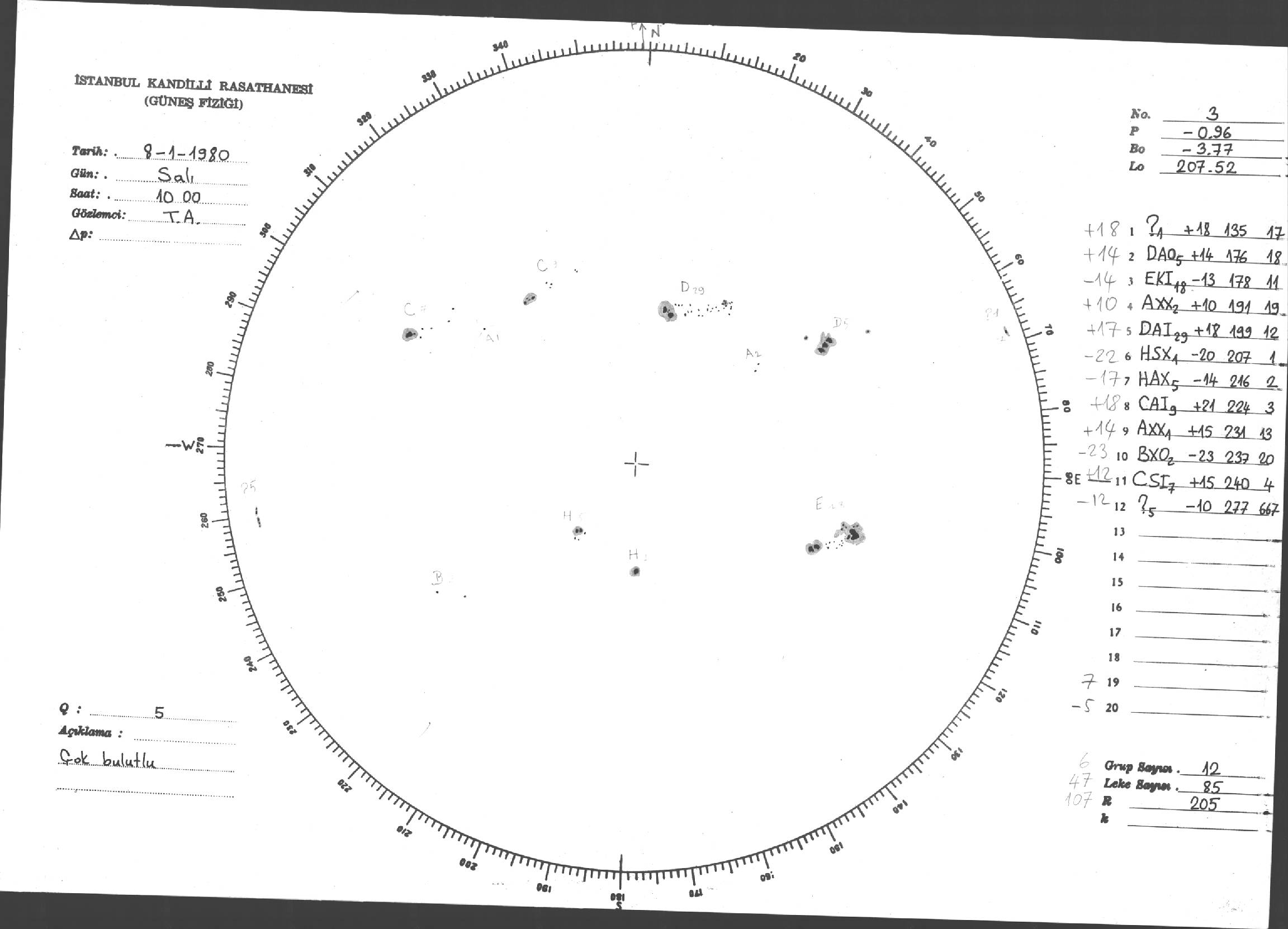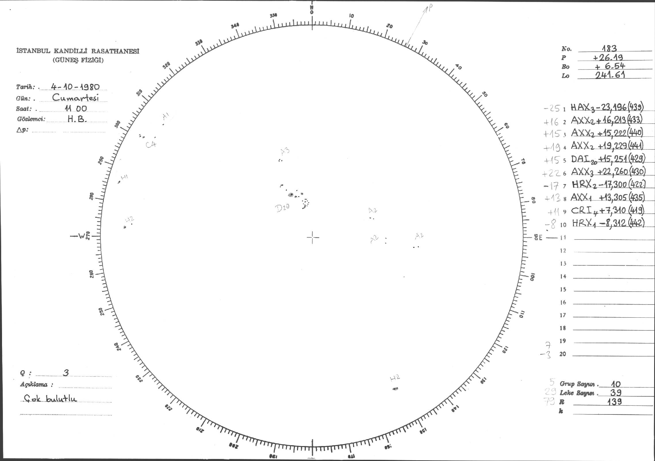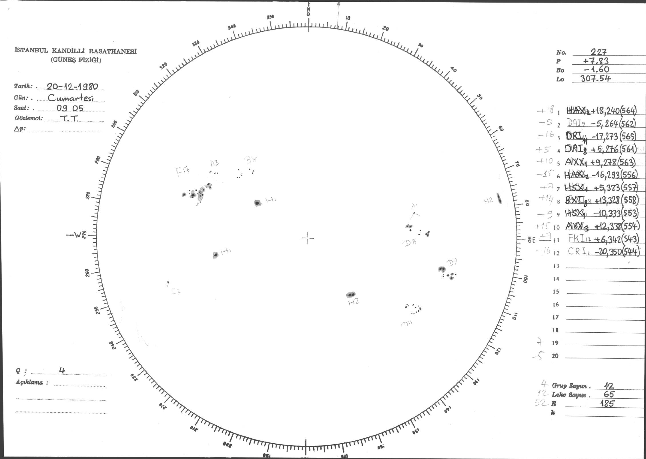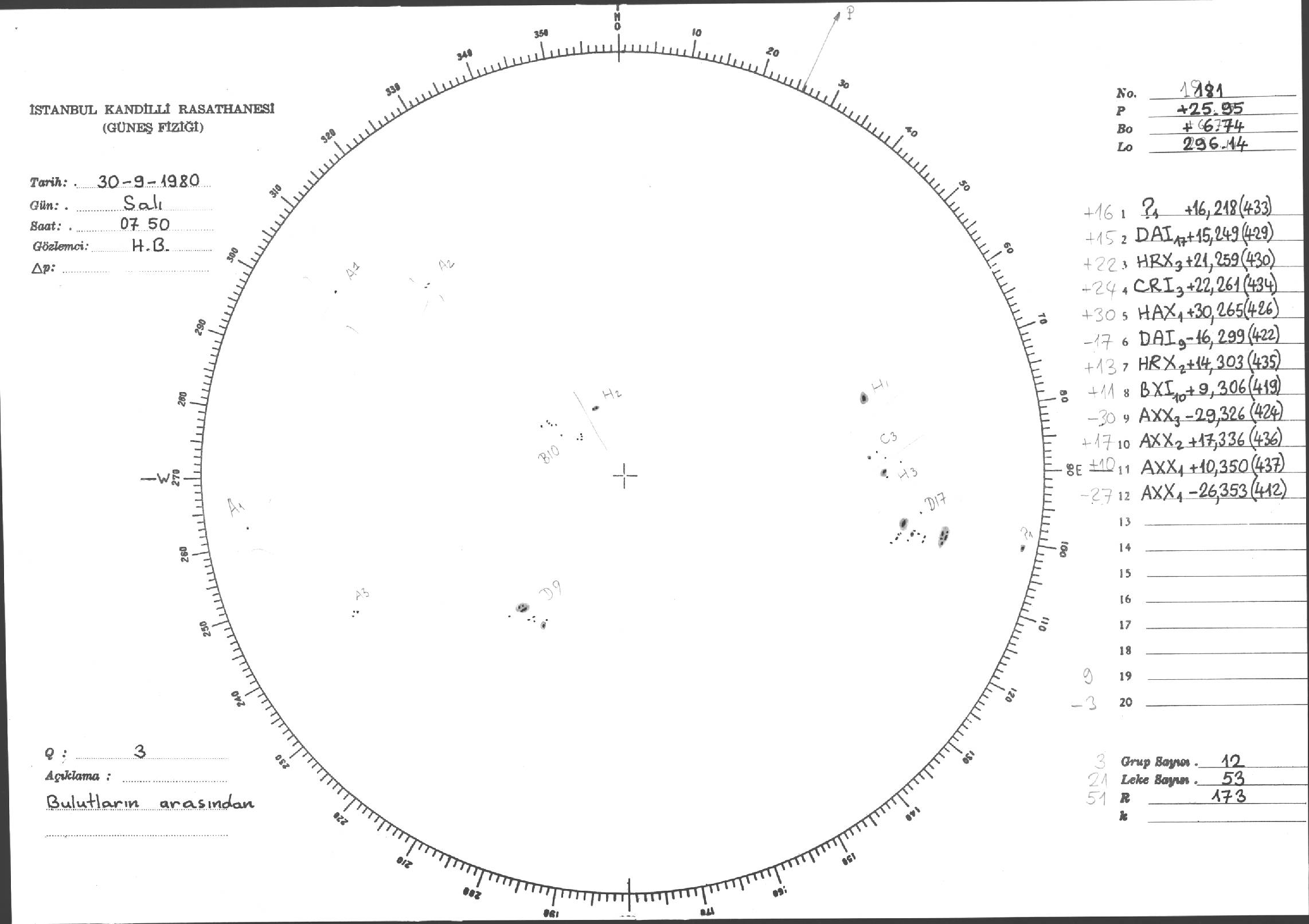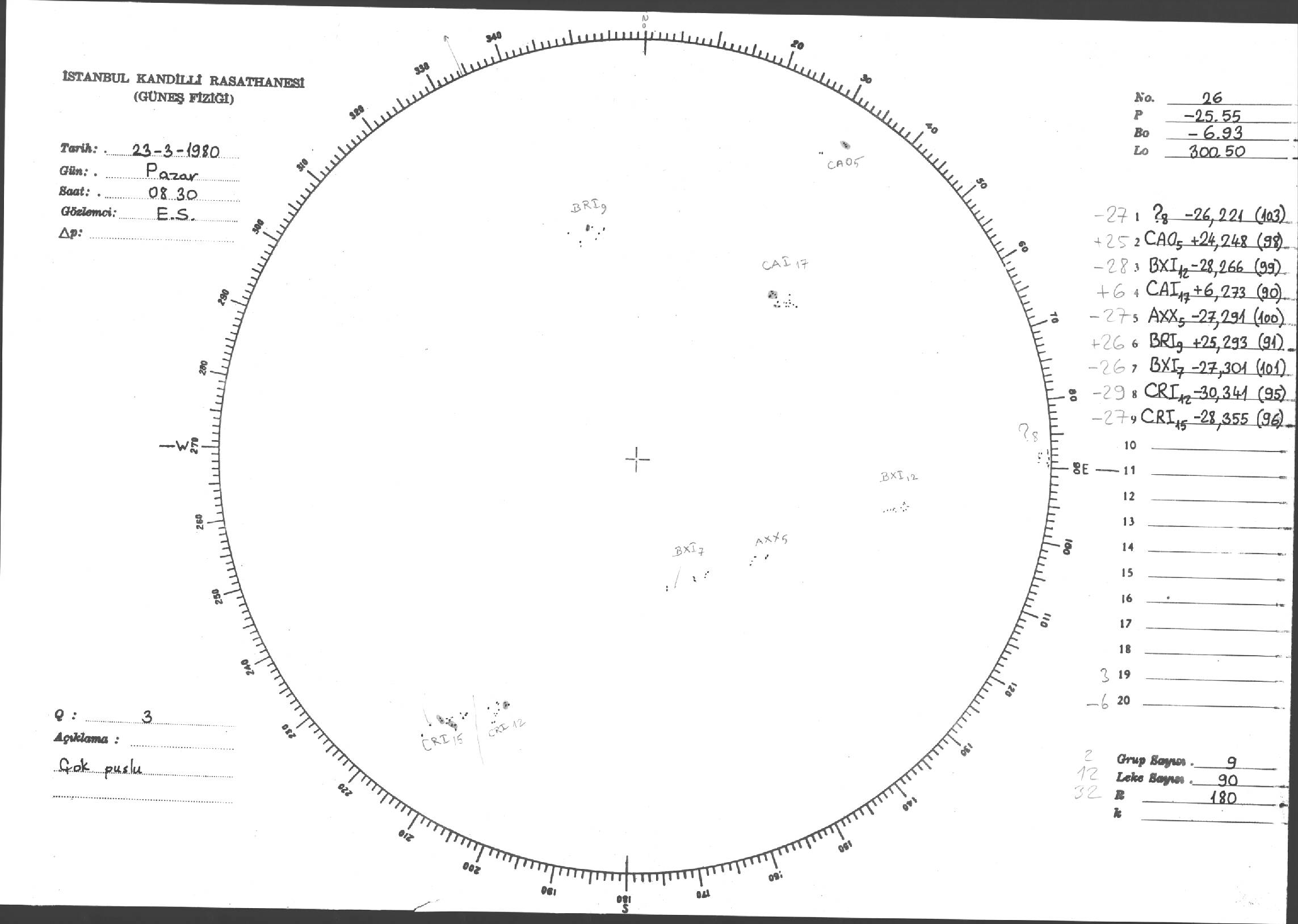 Güneş Lekesi Çizimleri / Kandilli Sunspot Drawings