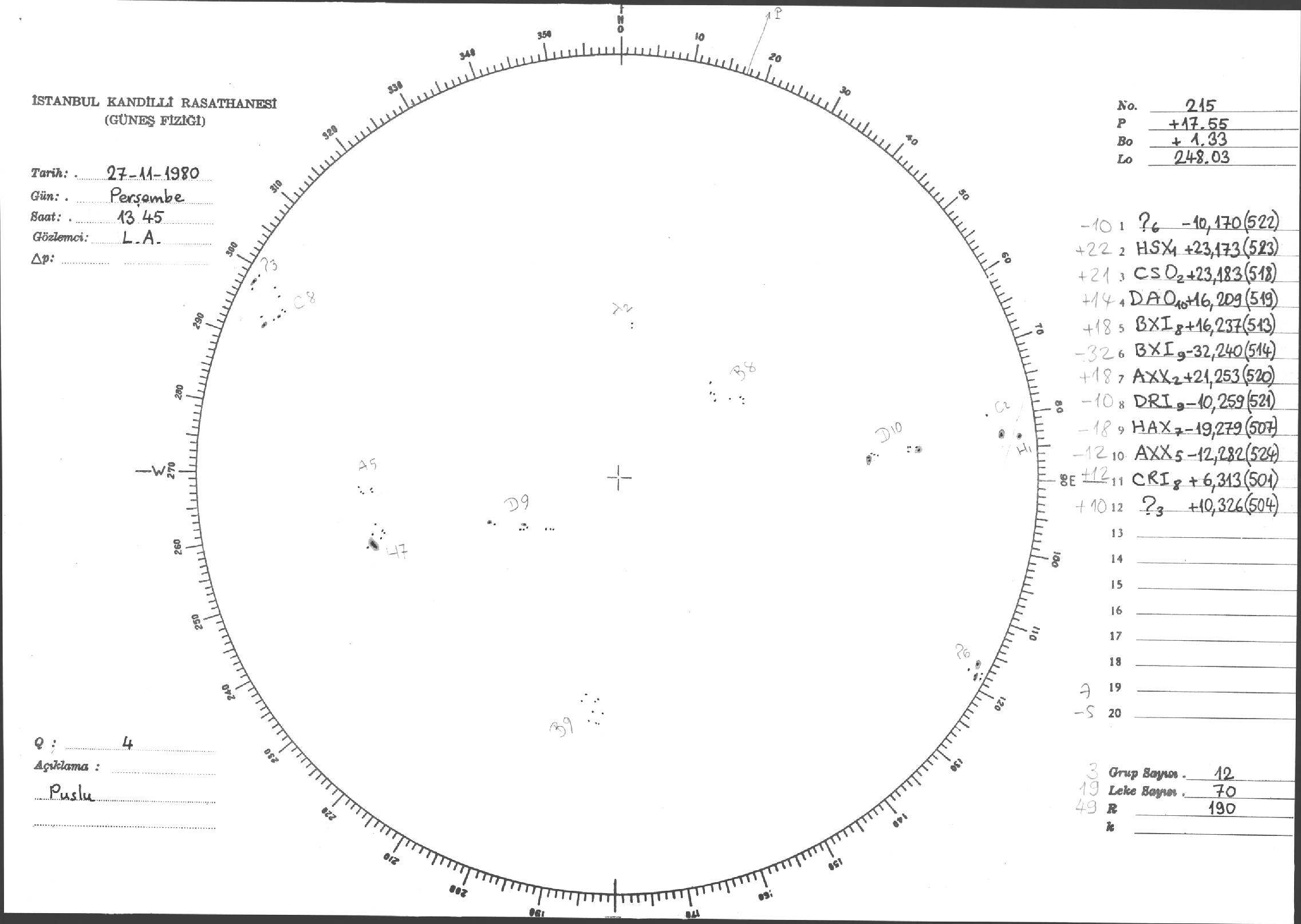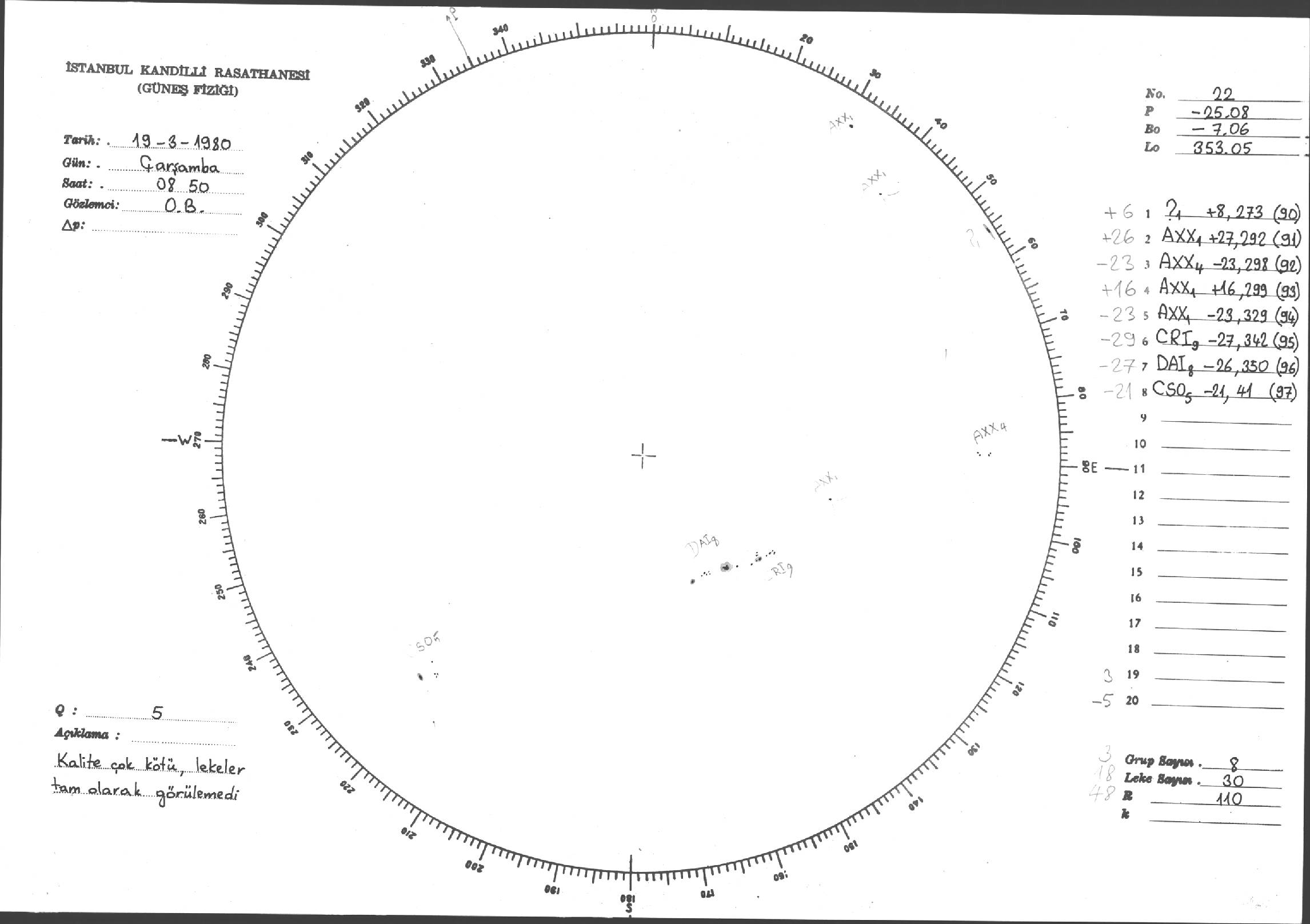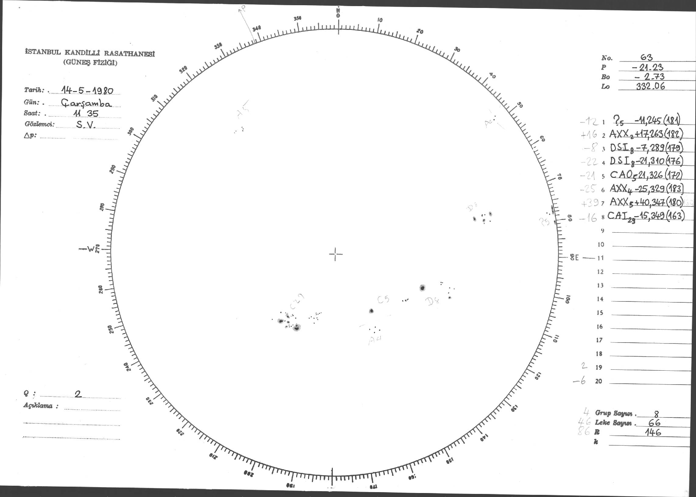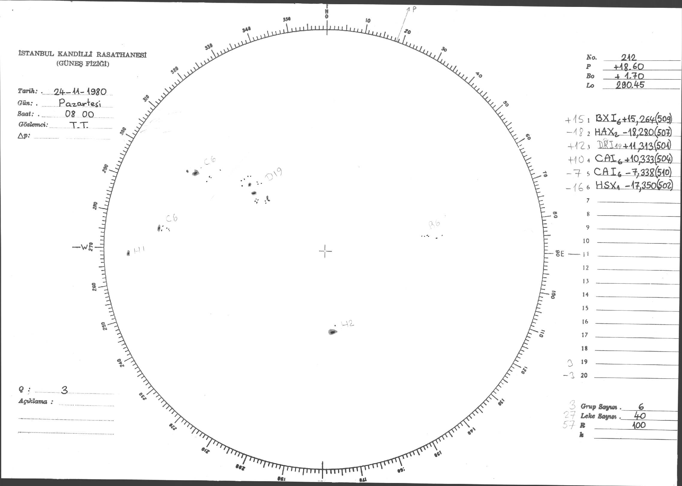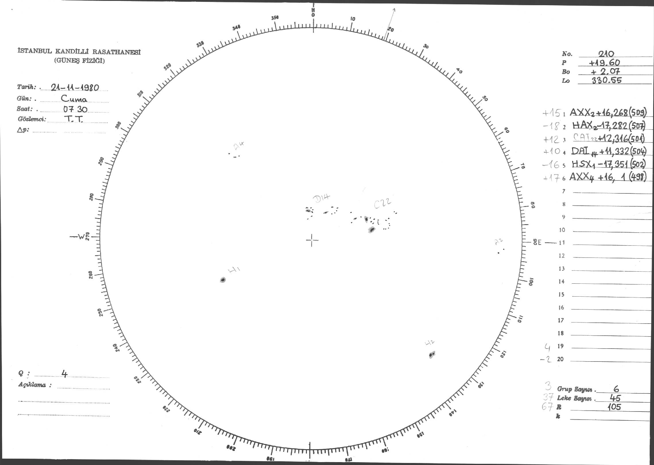 Güneş Lekesi Çizimleri / Kandilli Sunspot Drawings