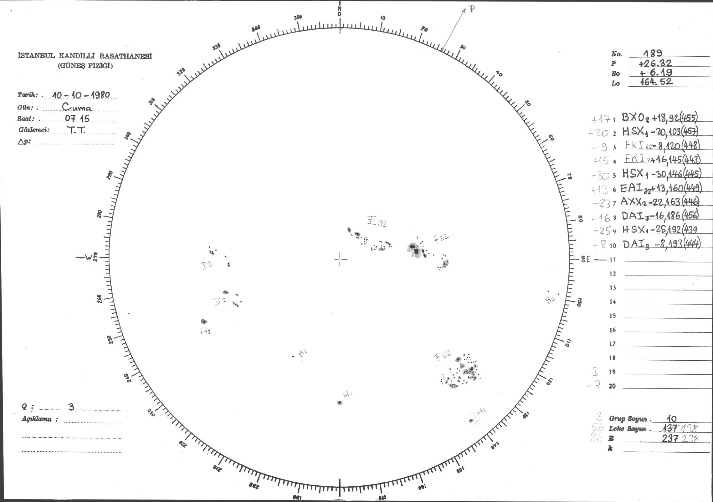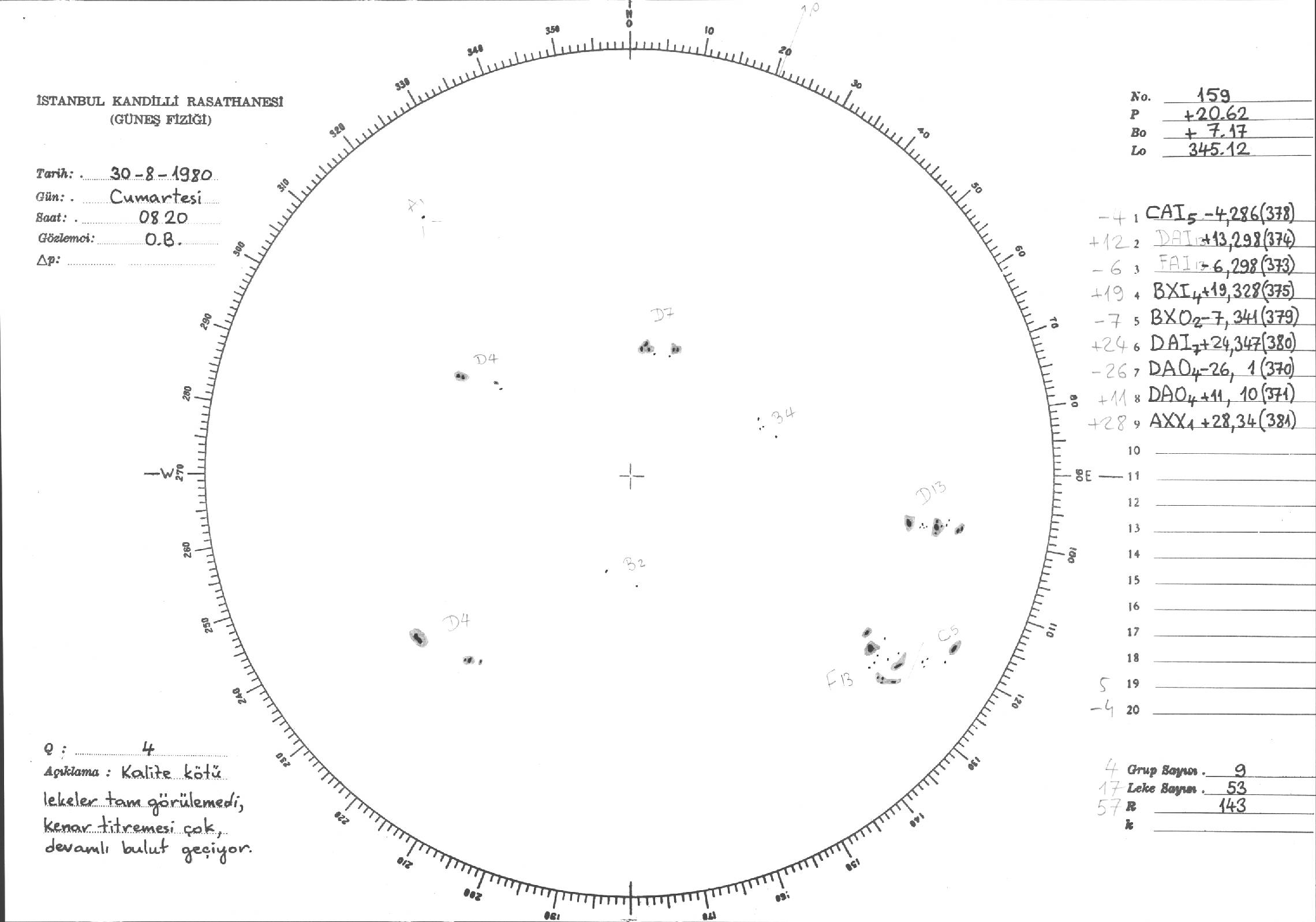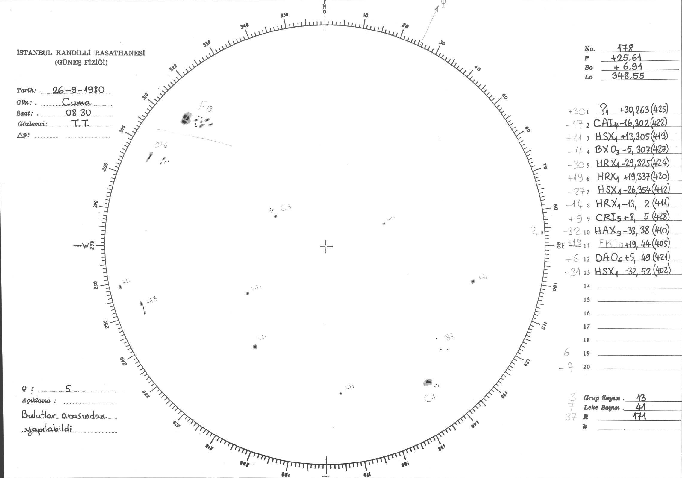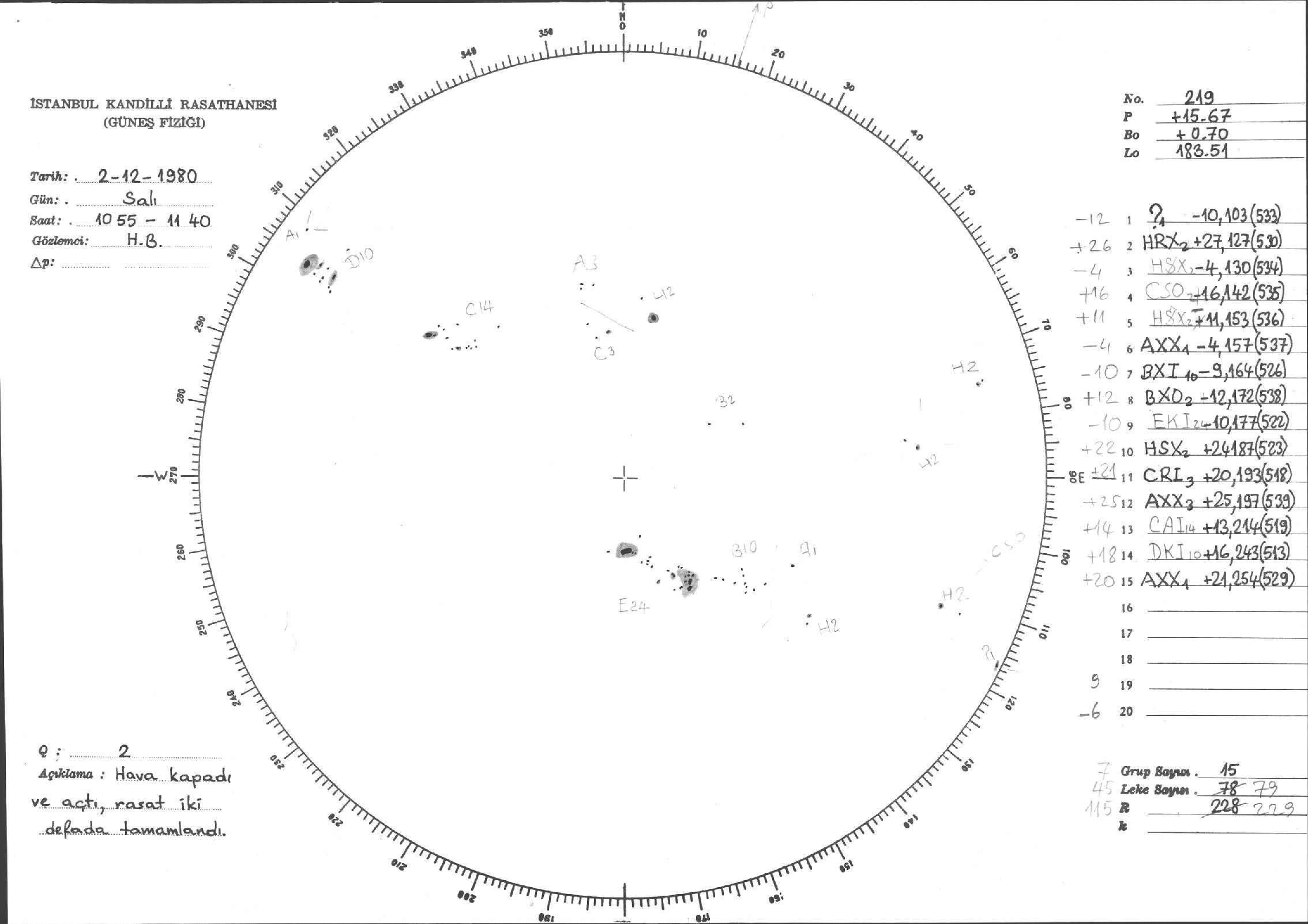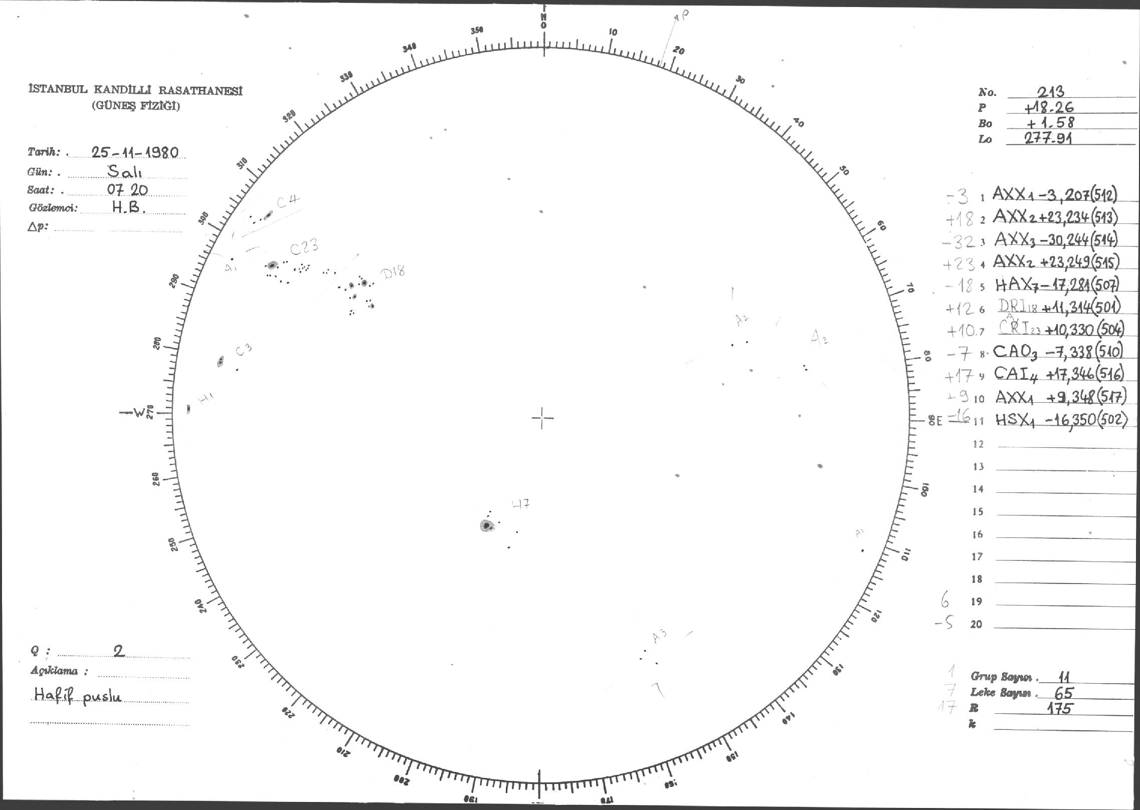 Güneş Lekesi Çizimleri / Kandilli Sunspot Drawings