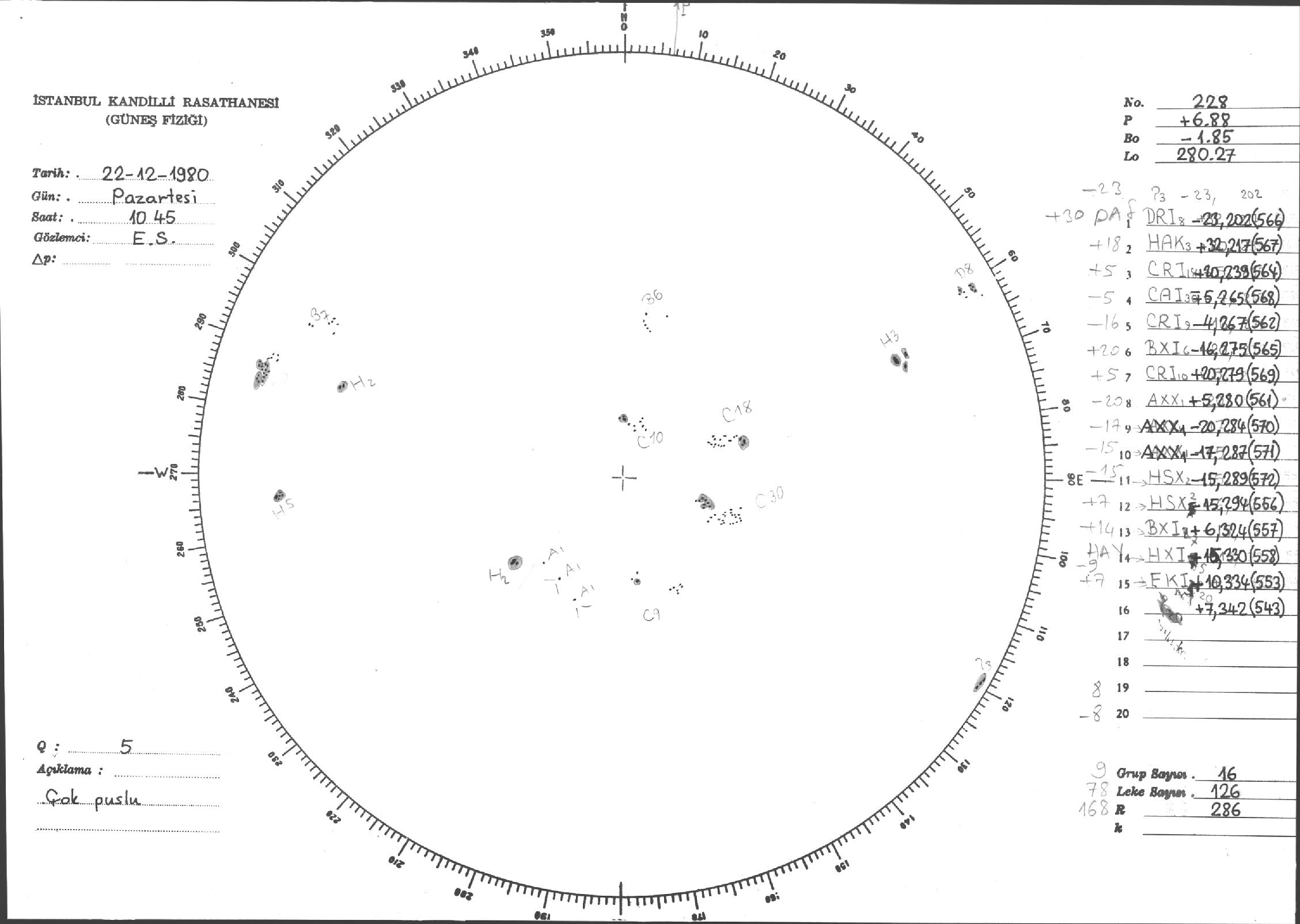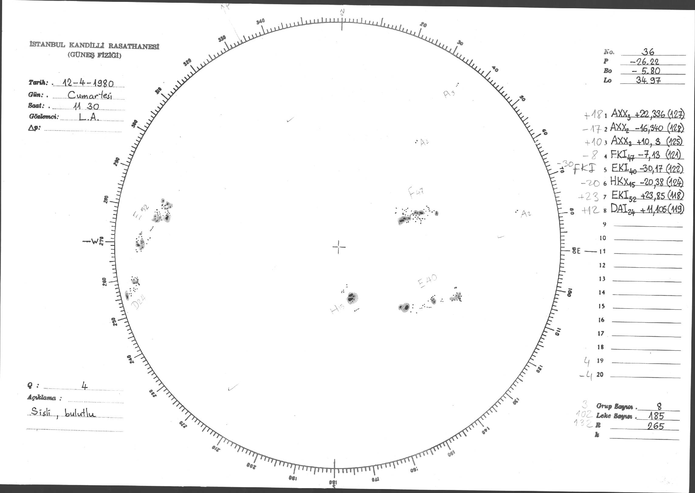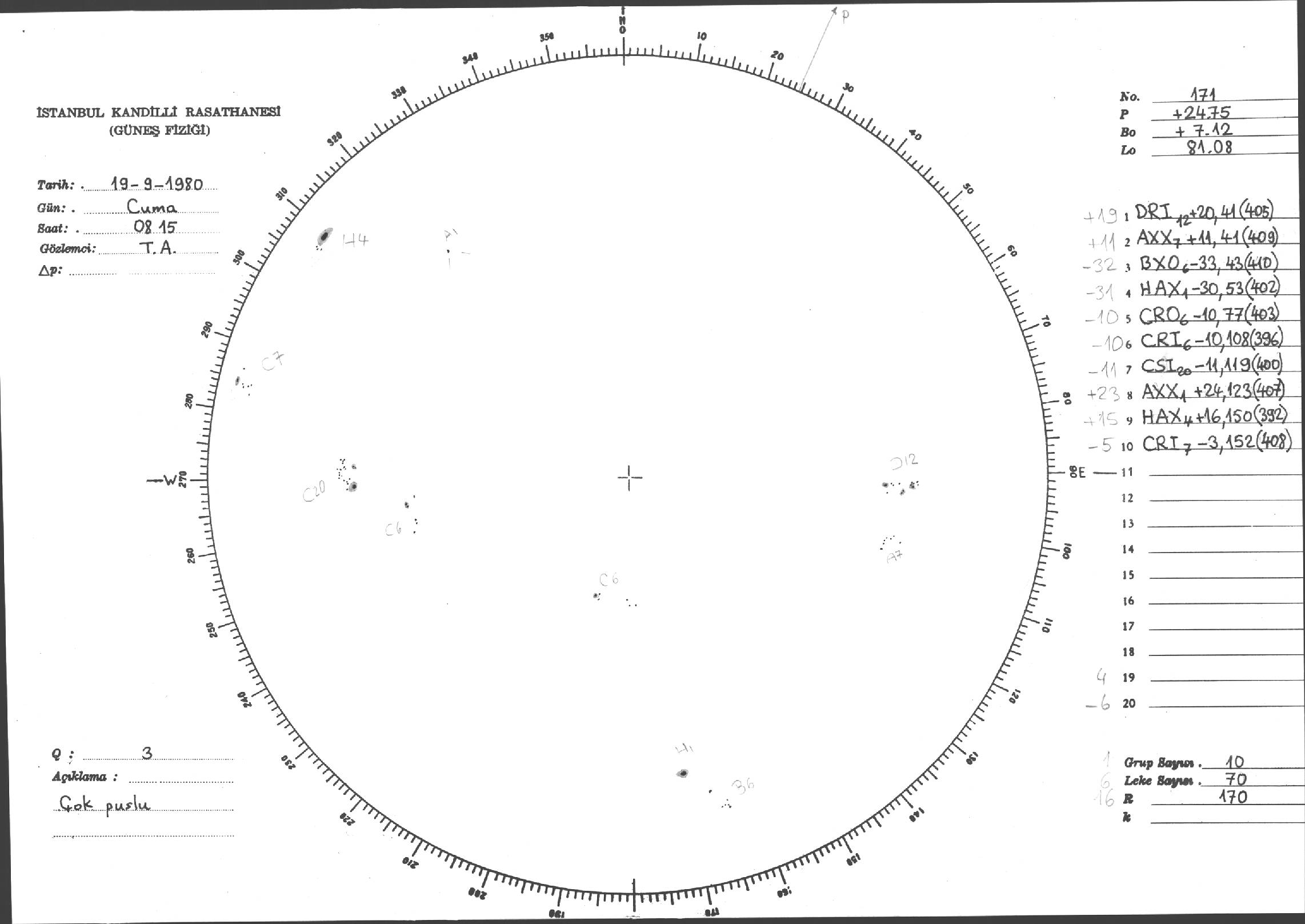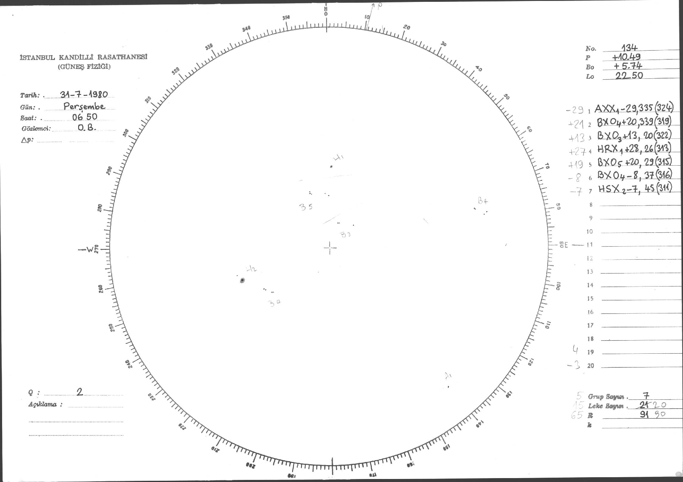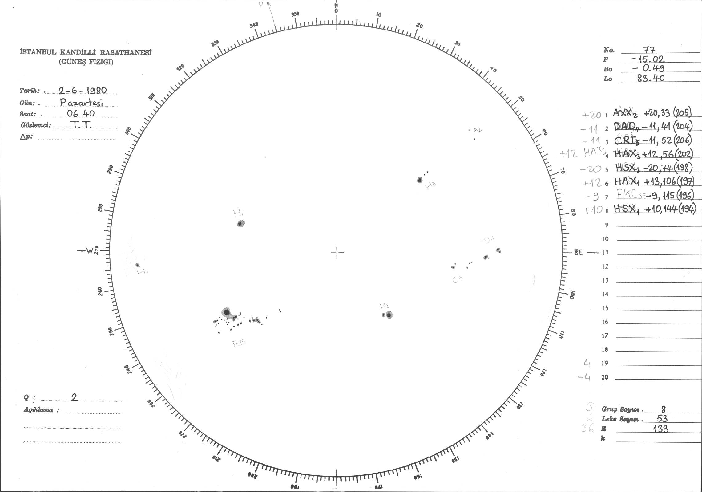 Güneş Lekesi Çizimleri / Kandilli Sunspot Drawings