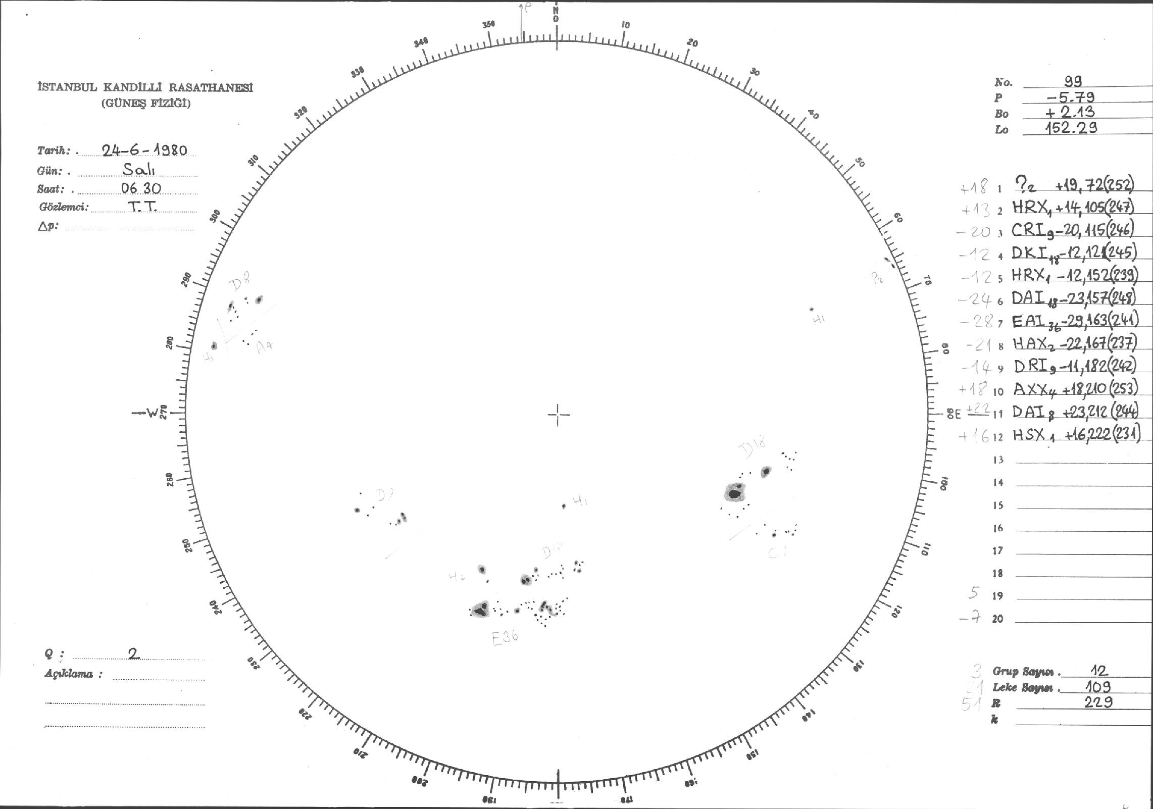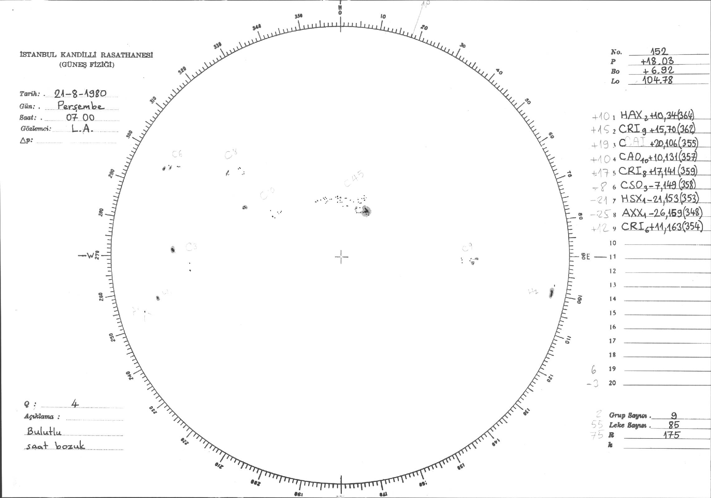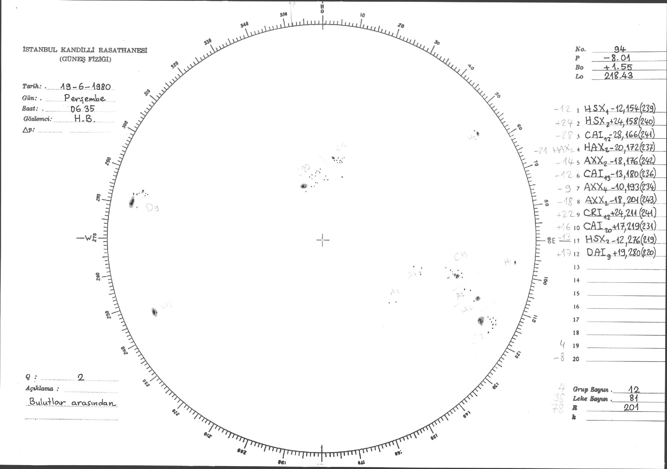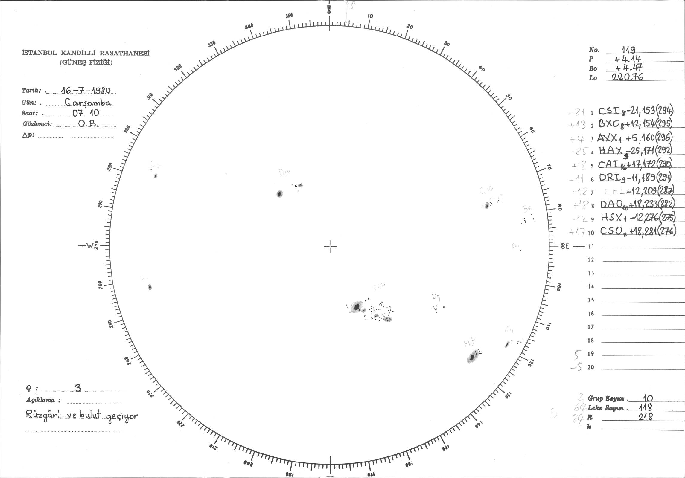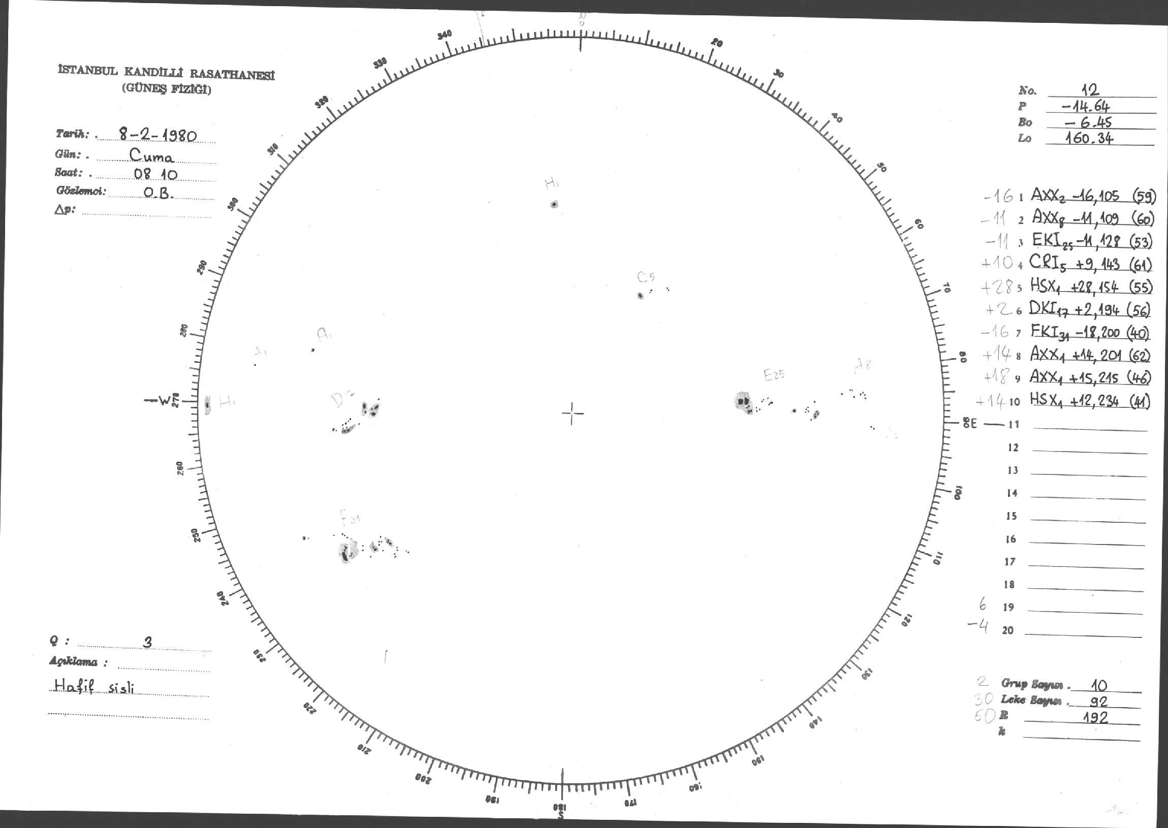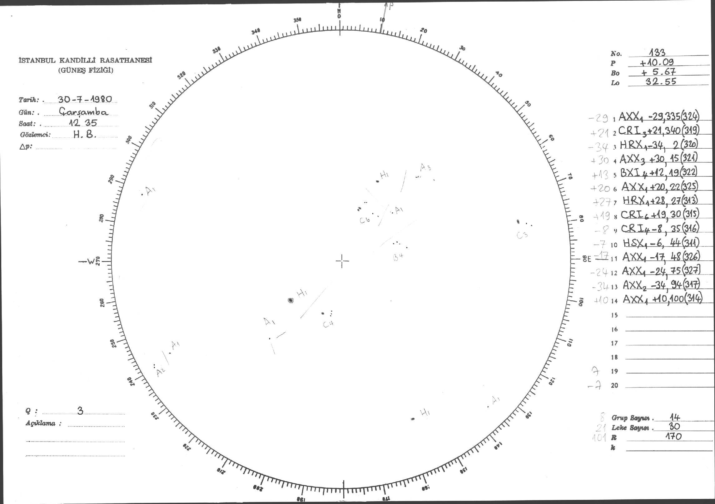 Güneş Lekesi Çizimleri / Kandilli Sunspot Drawings