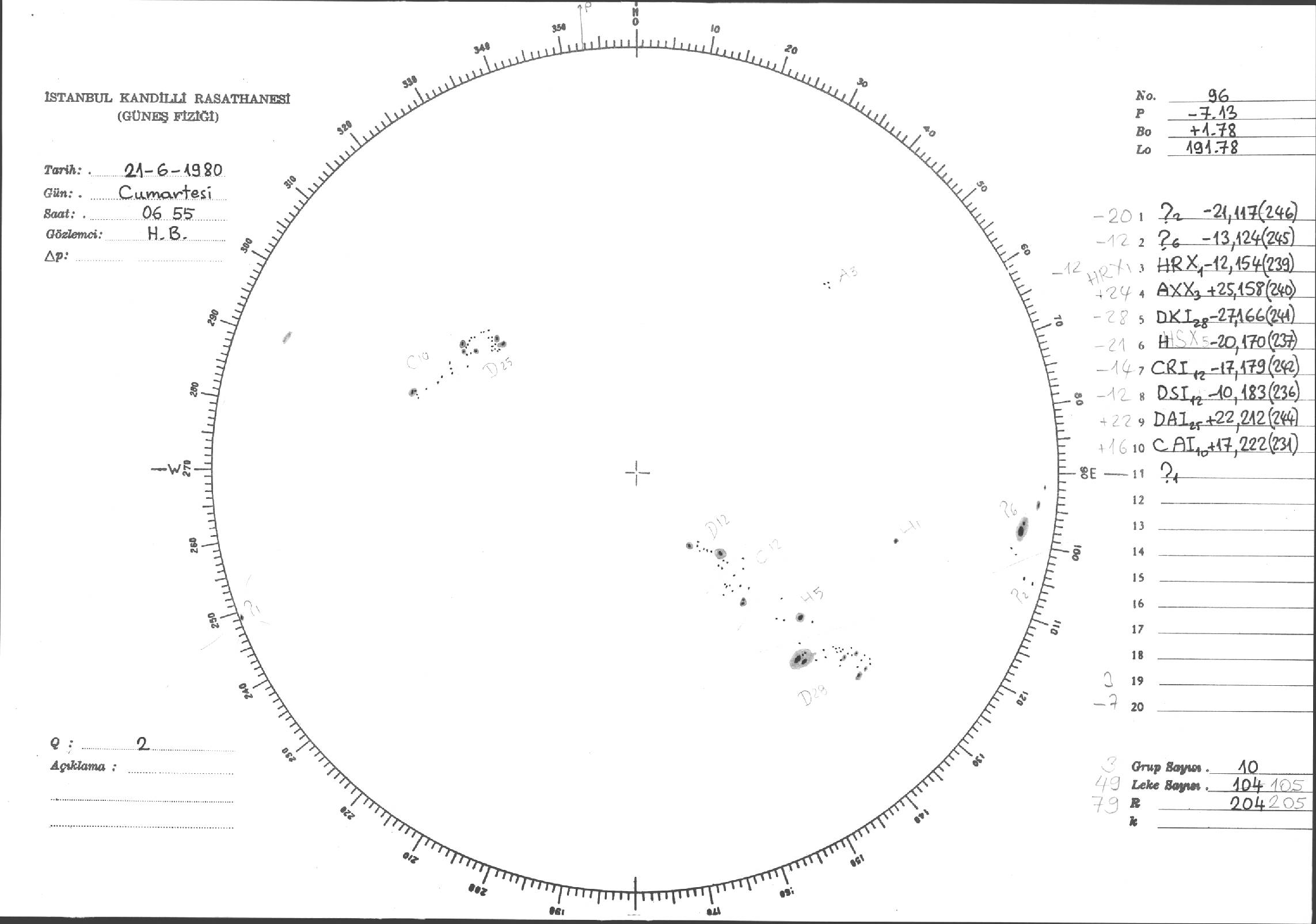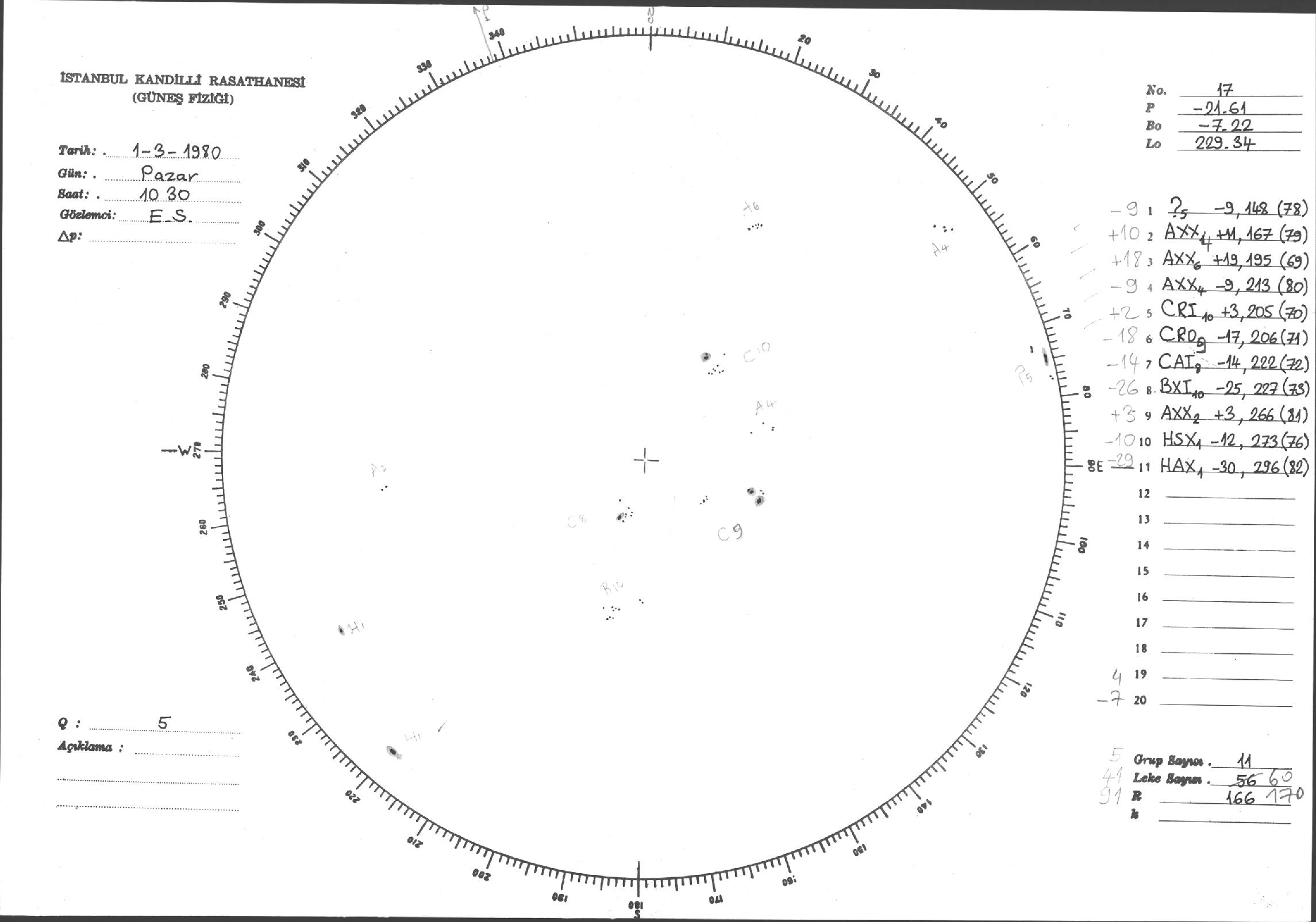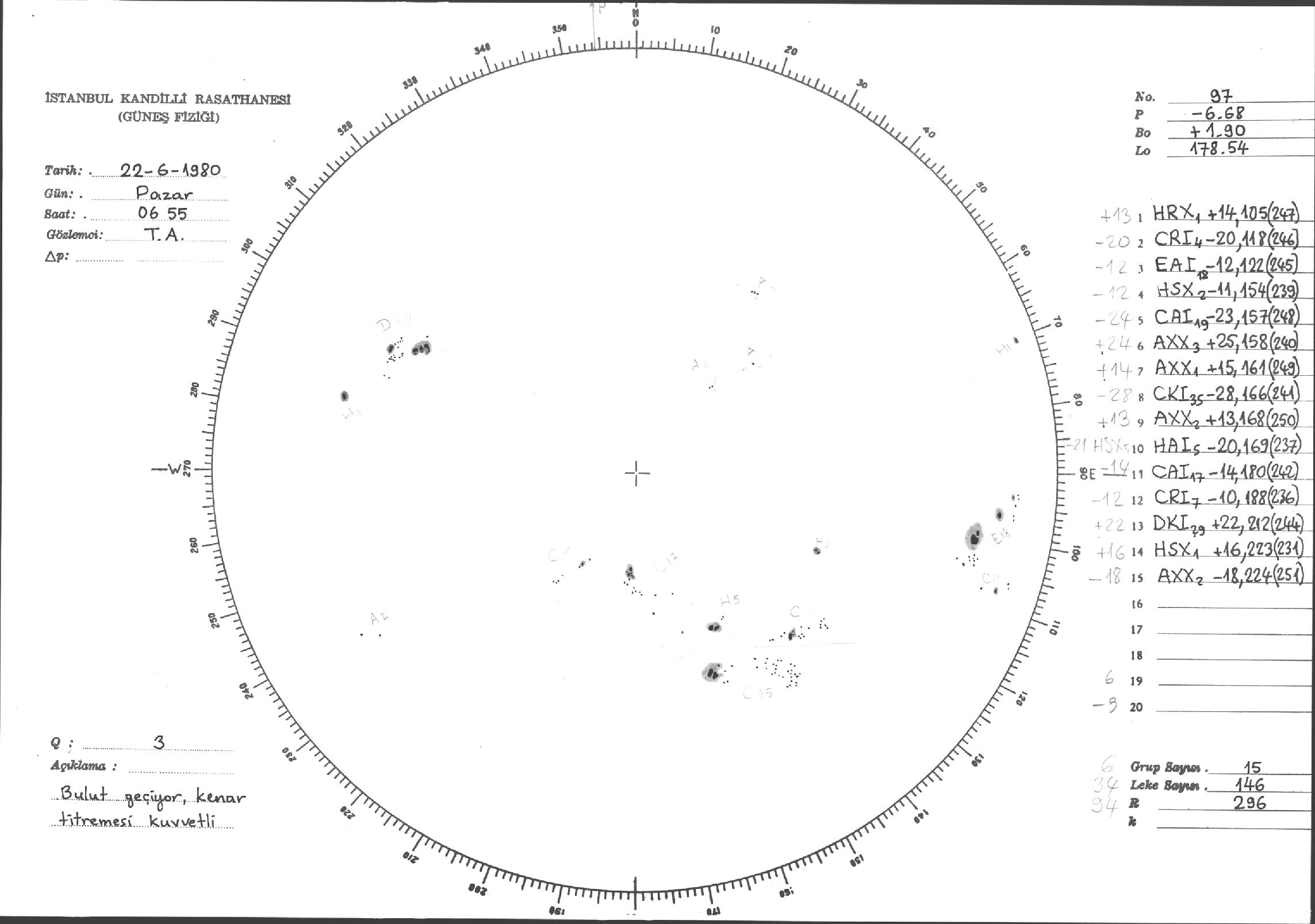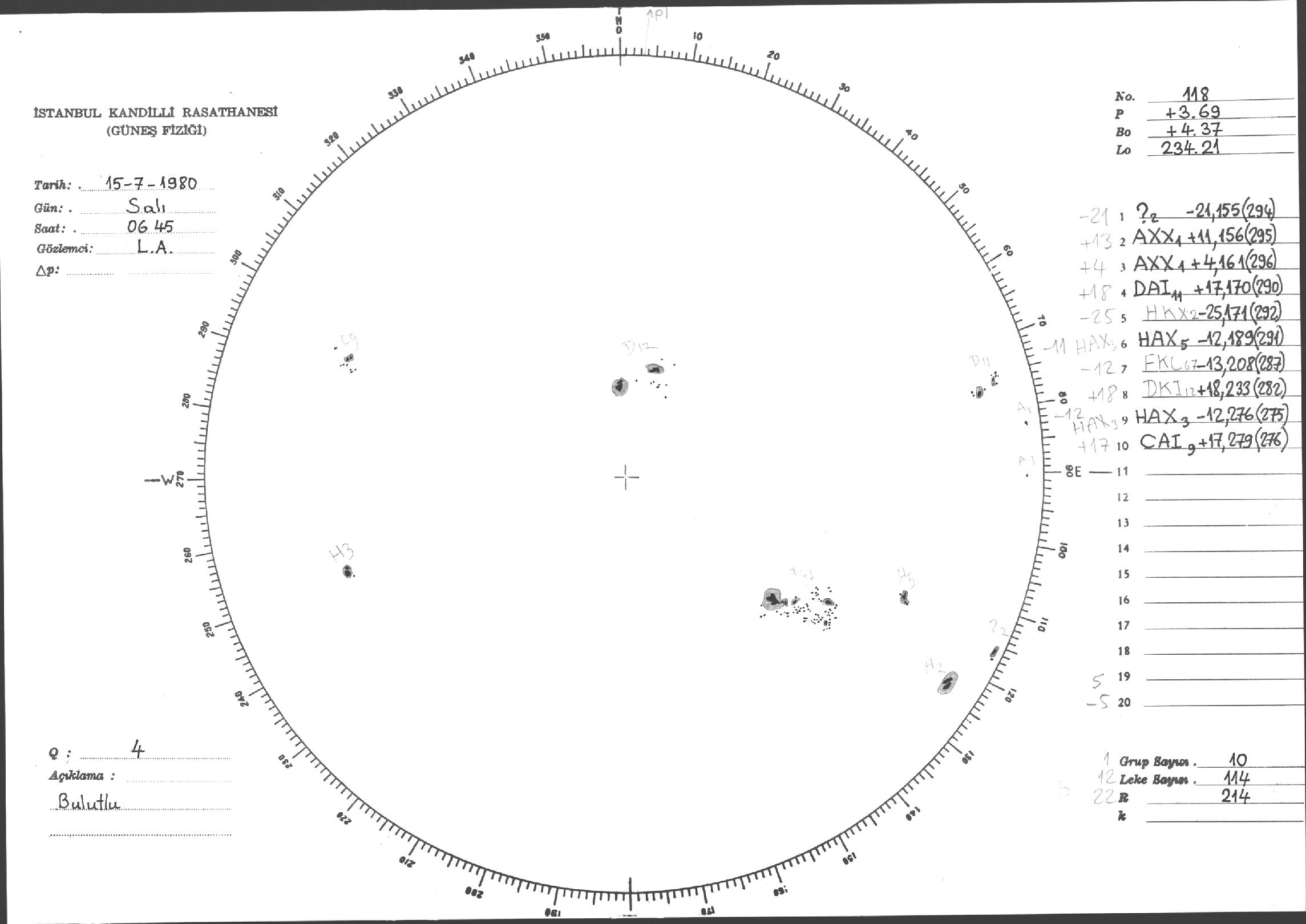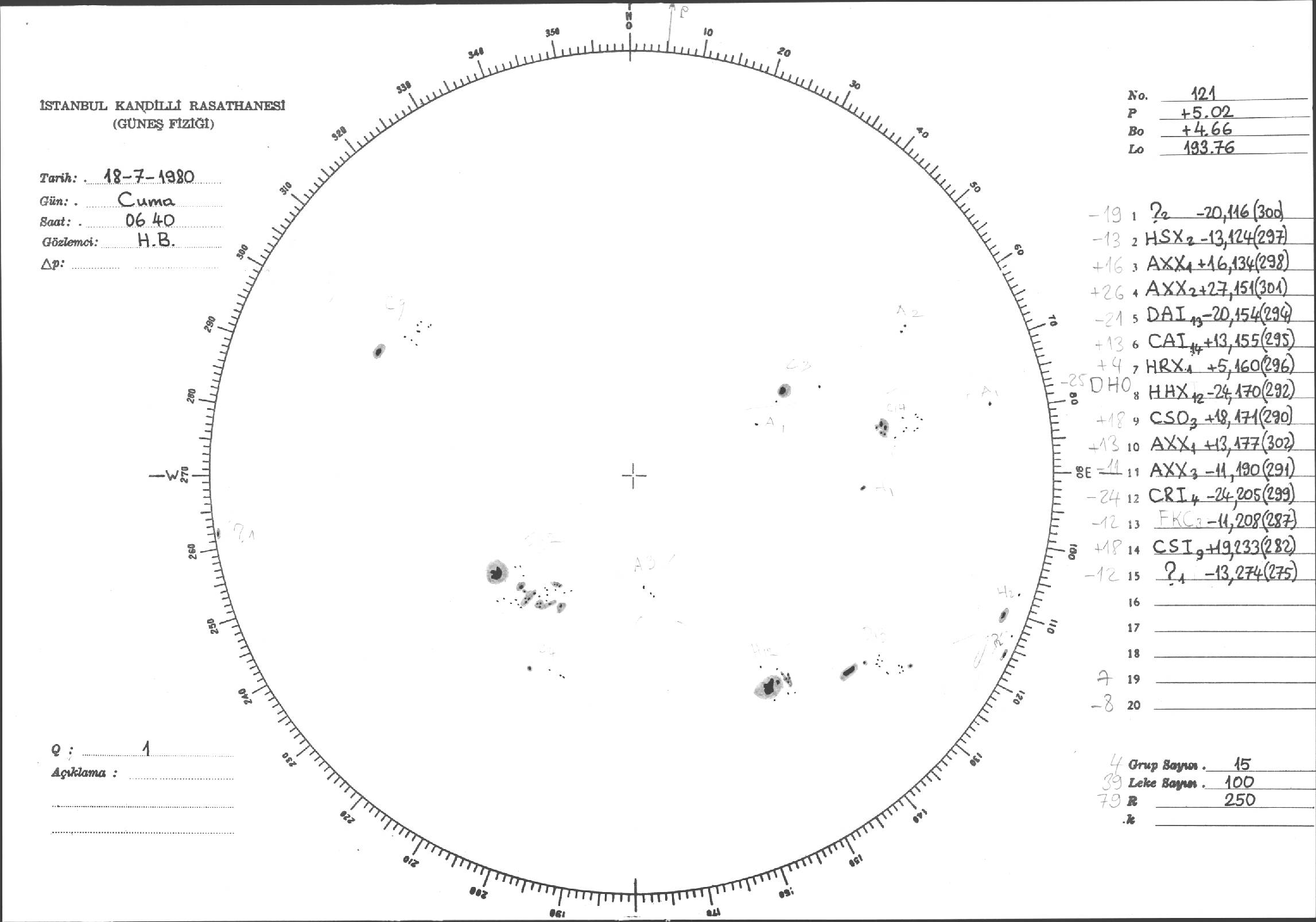 Güneş Lekesi Çizimleri / Kandilli Sunspot Drawings