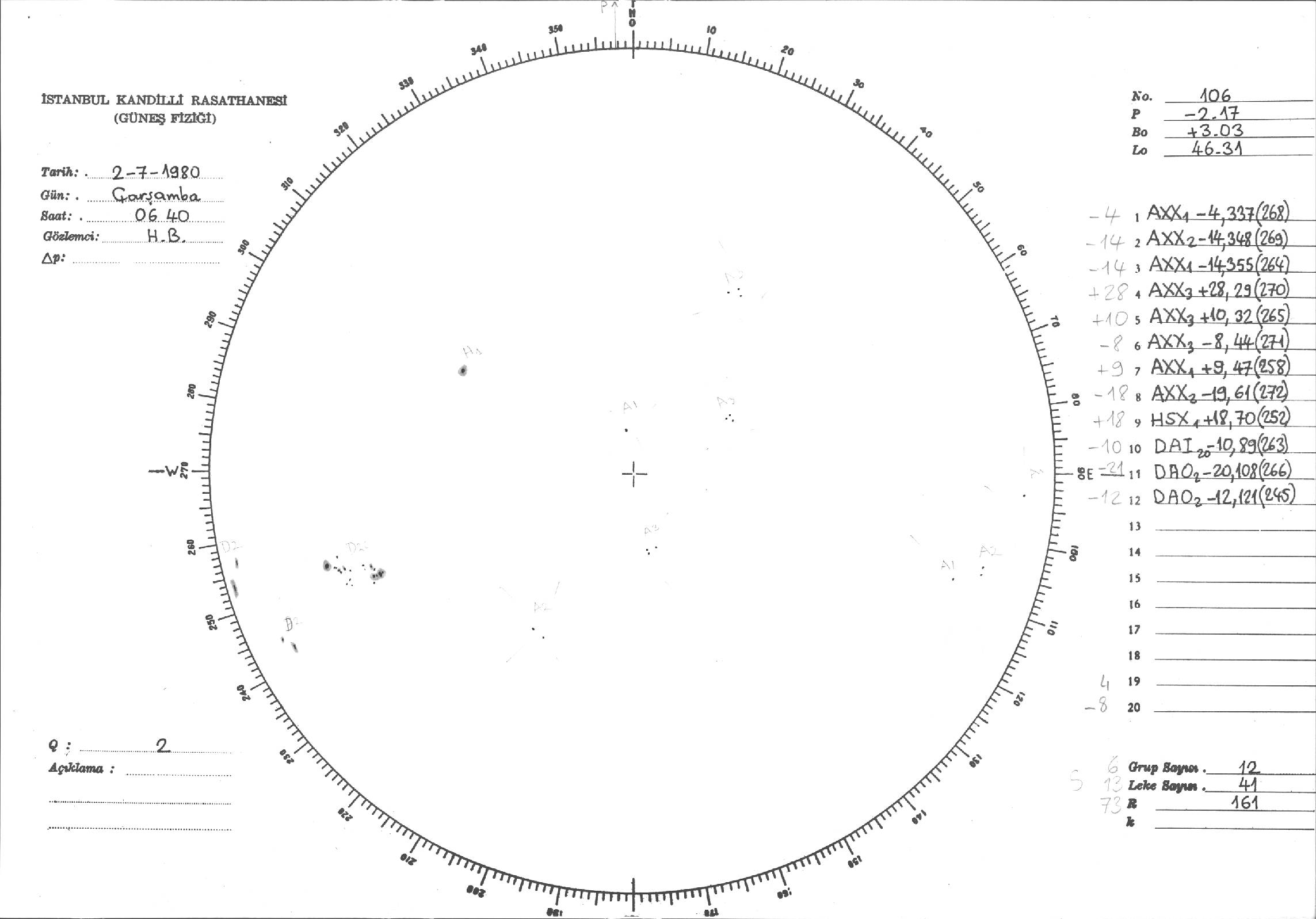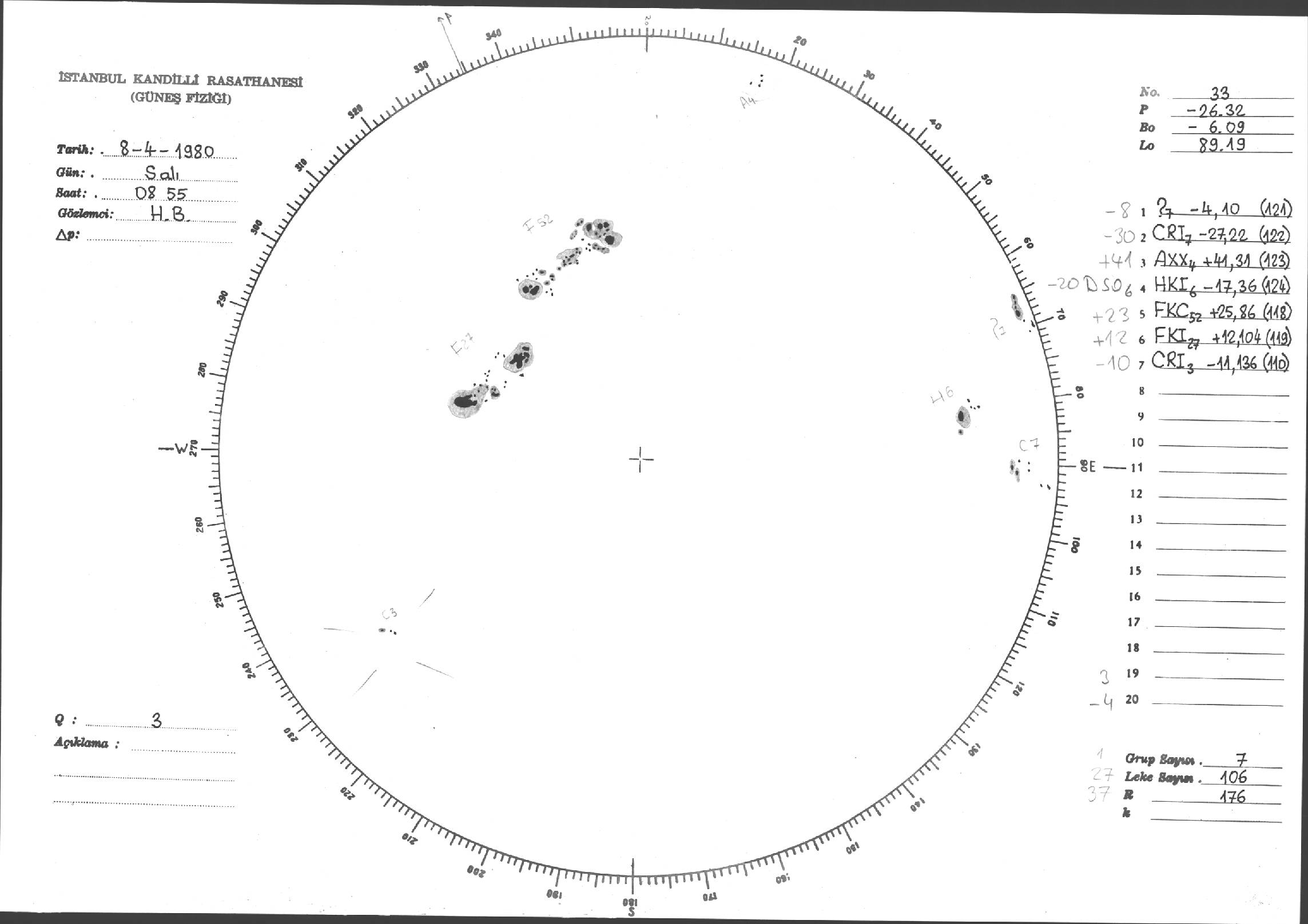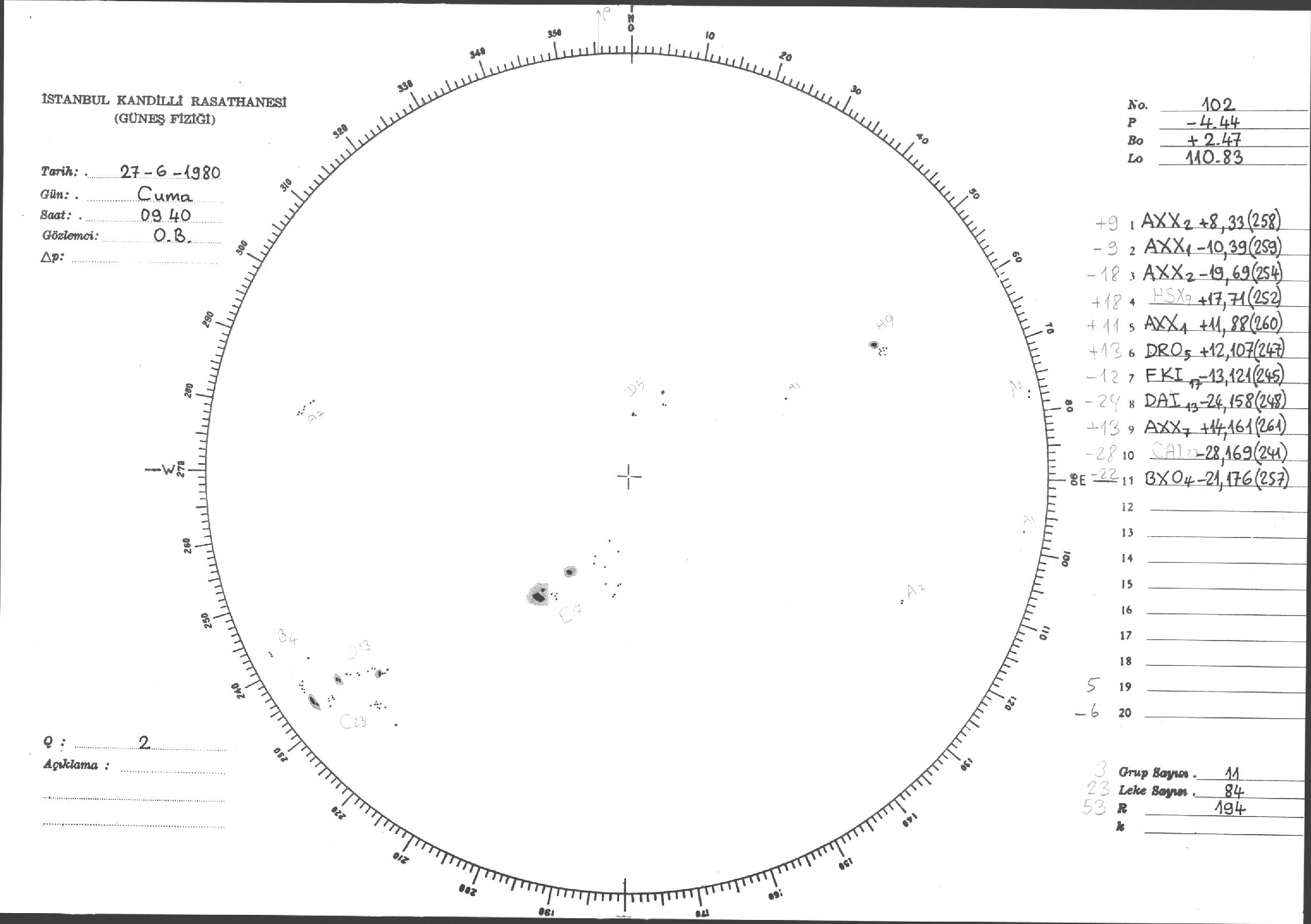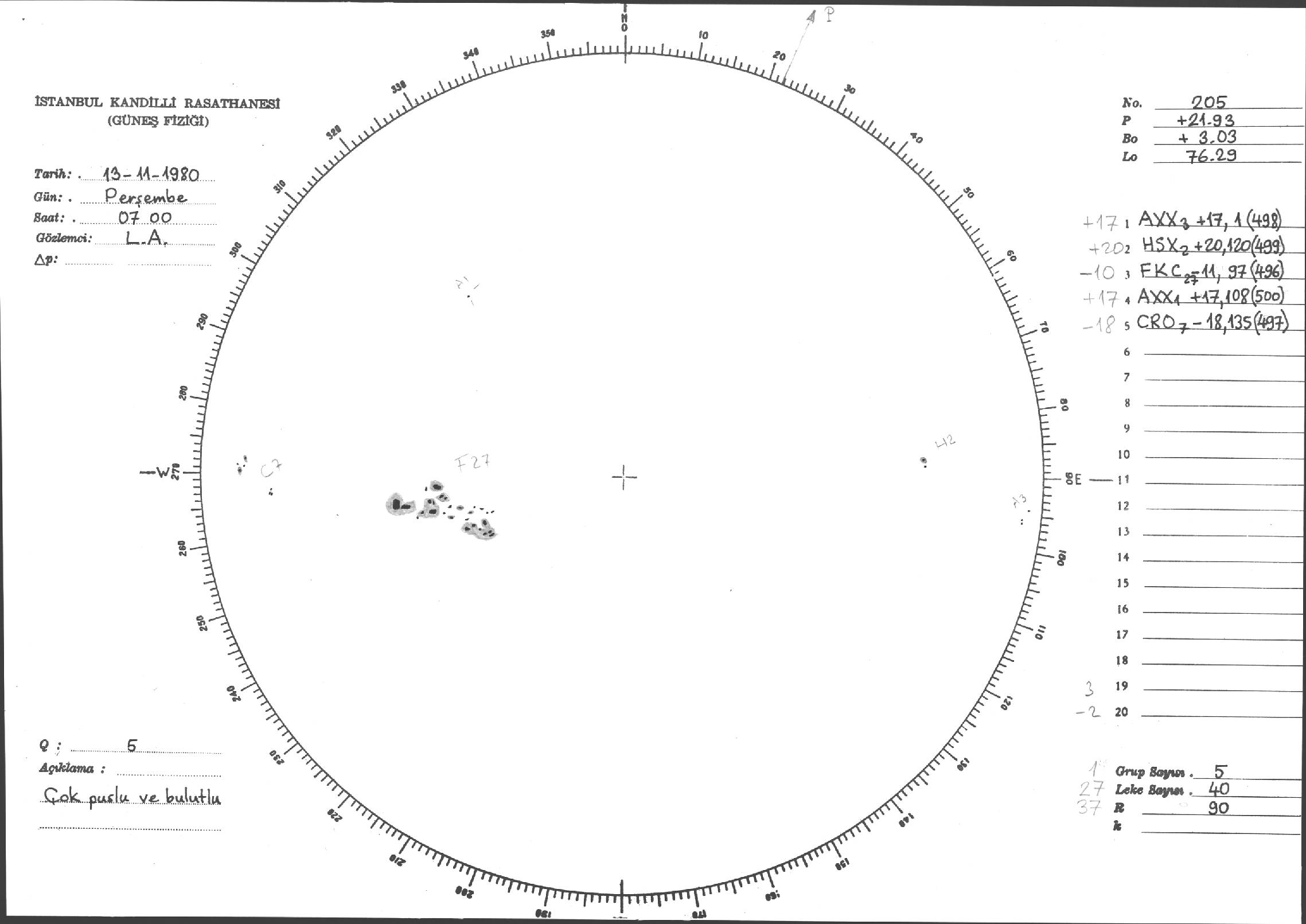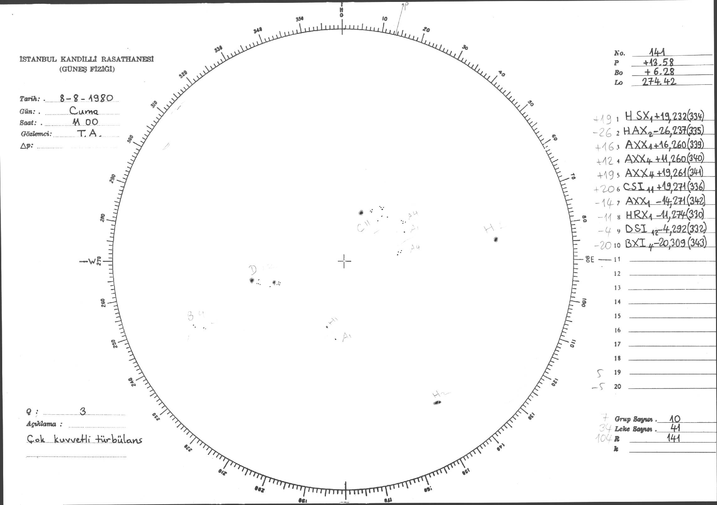 Güneş Lekesi Çizimleri / Kandilli Sunspot Drawings