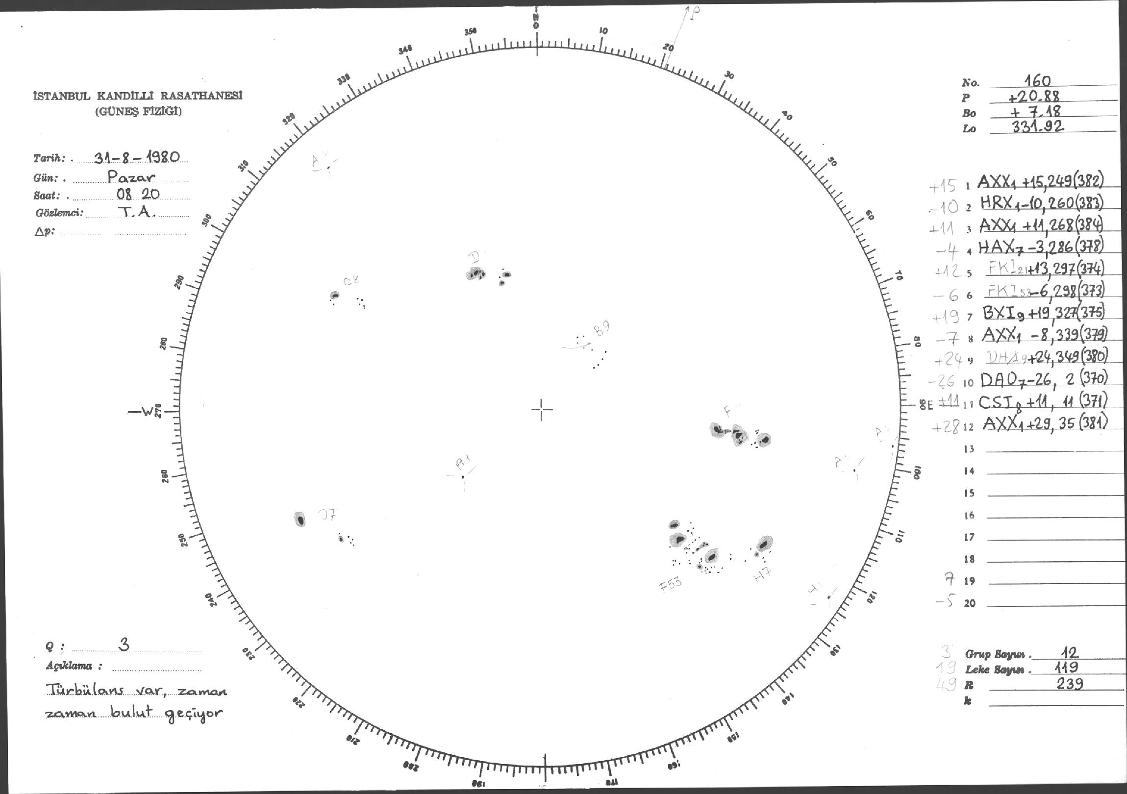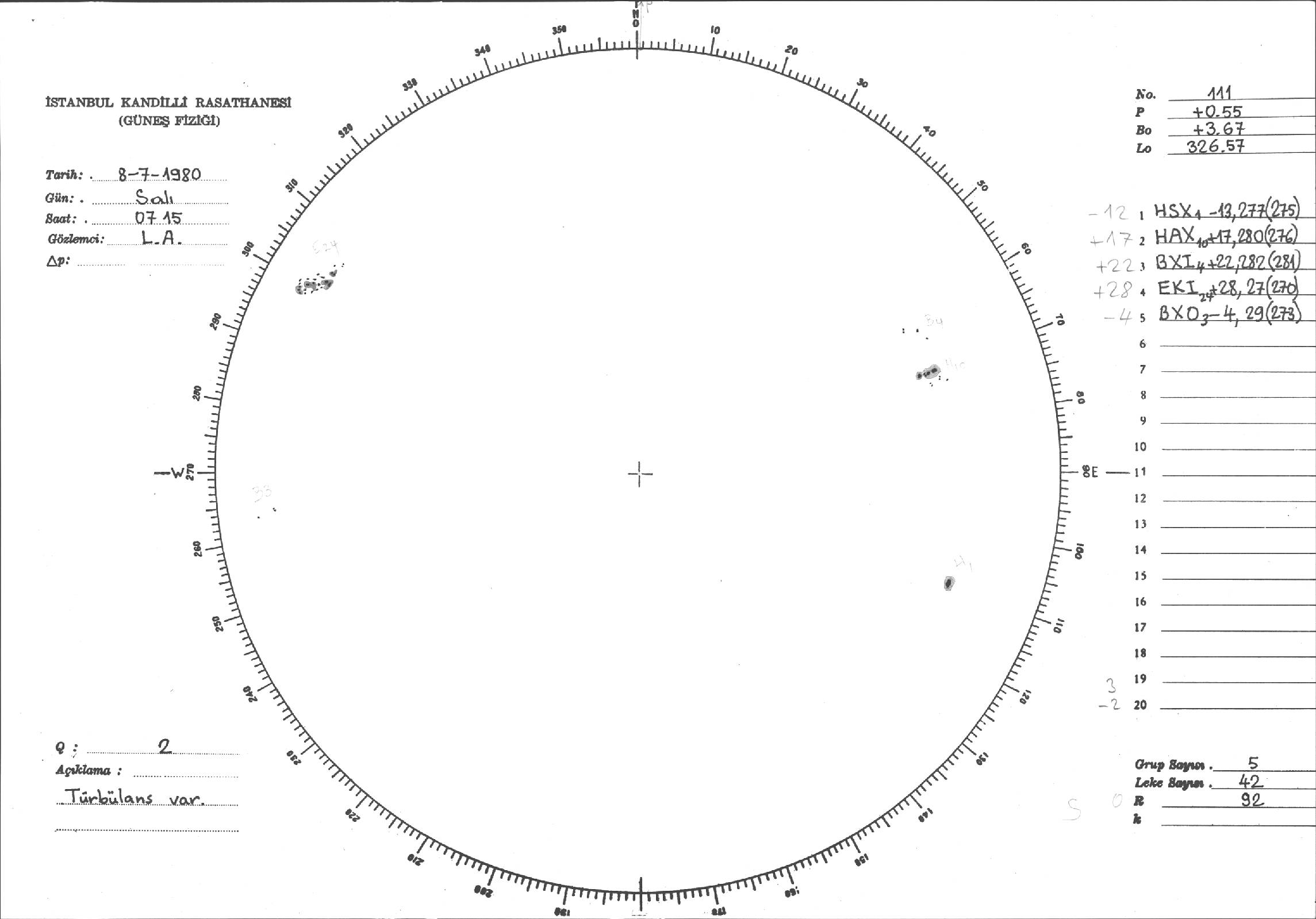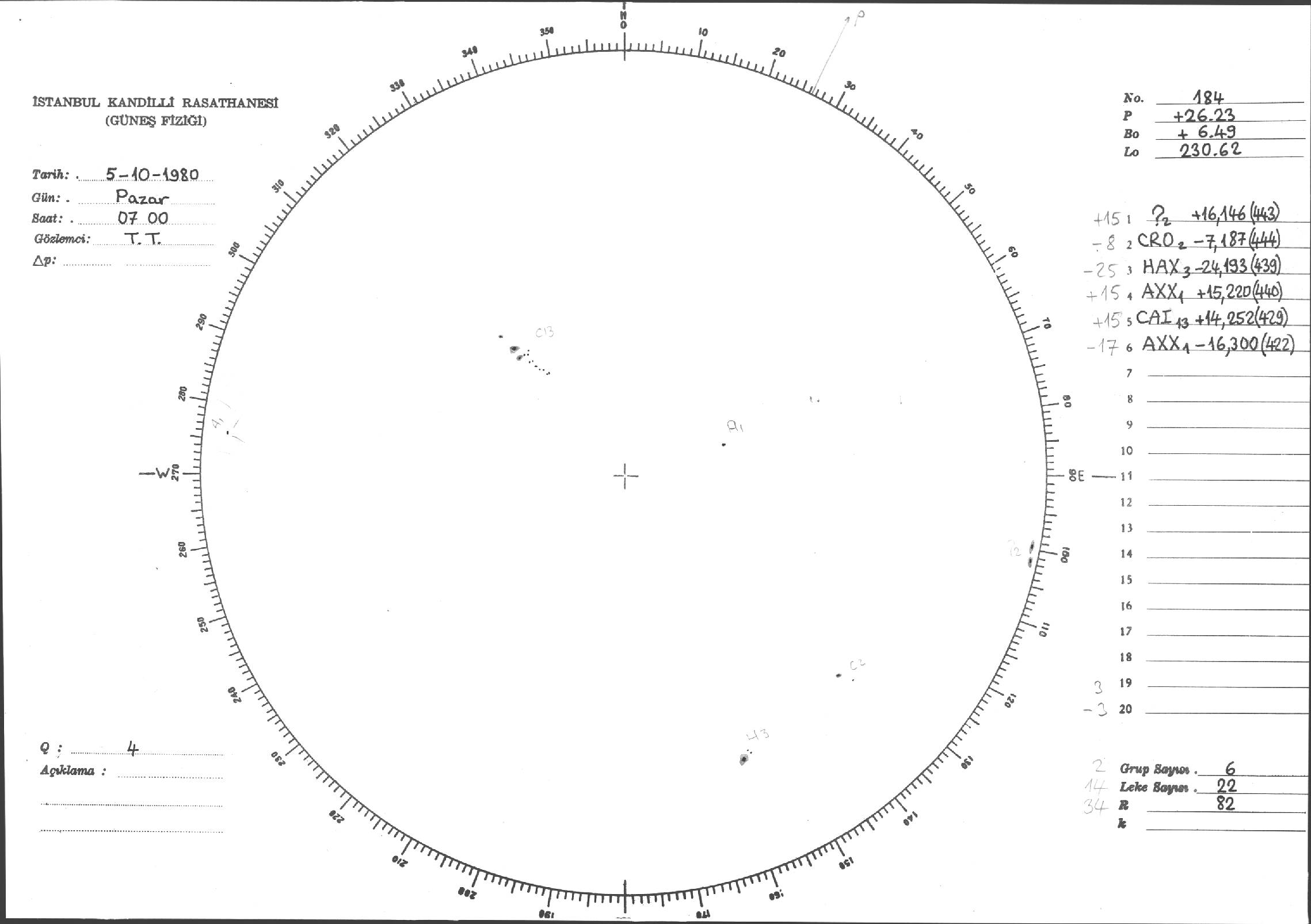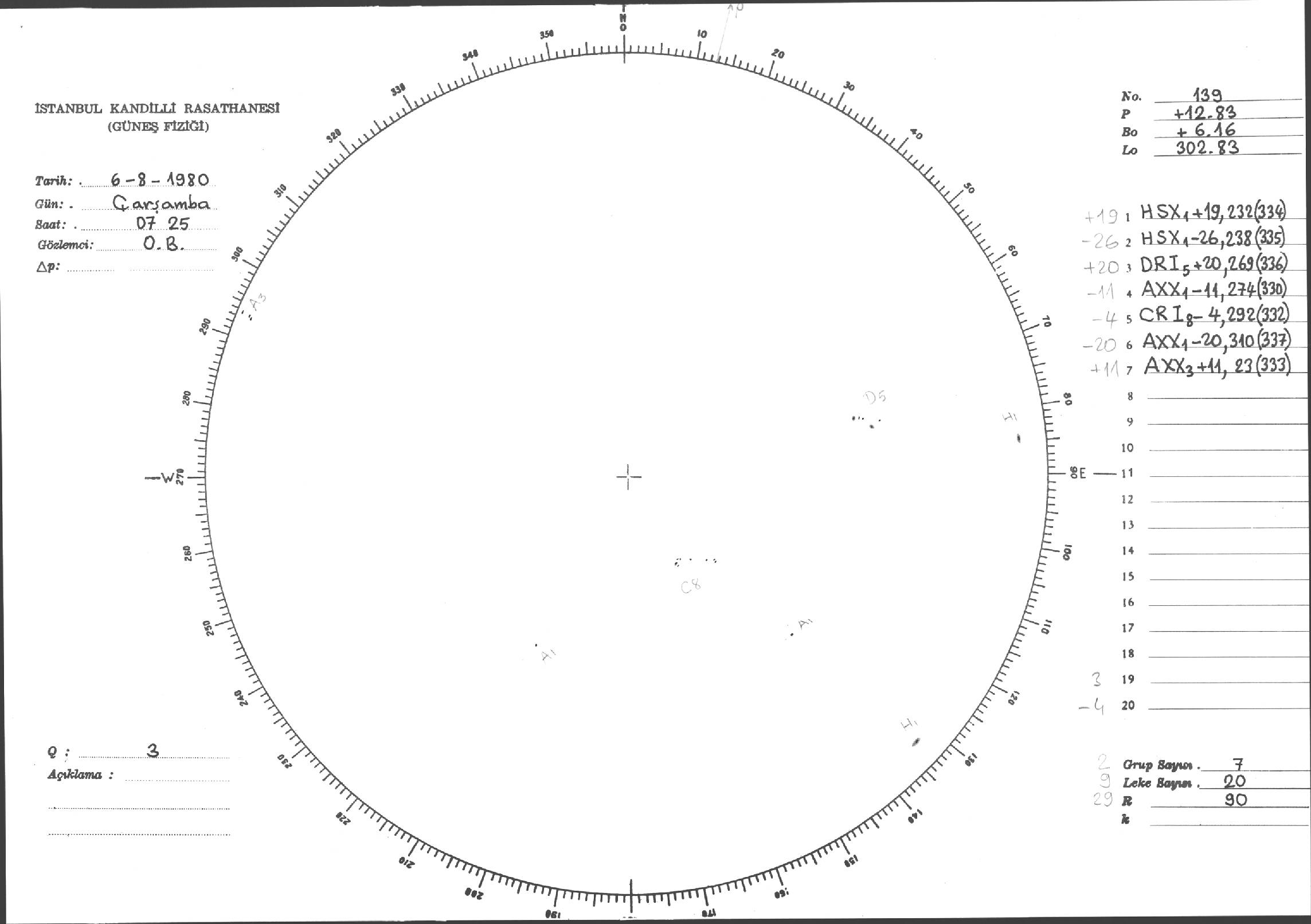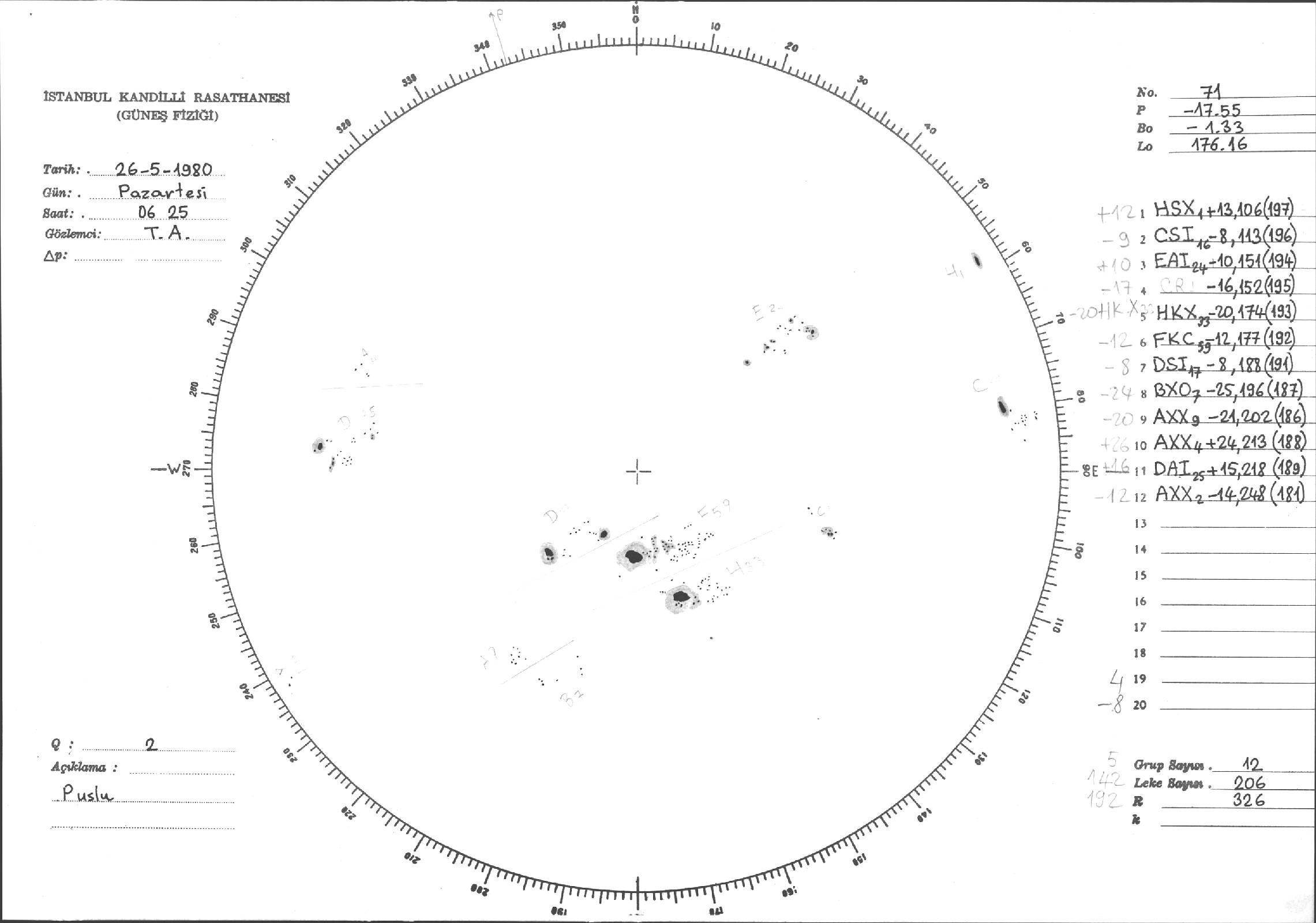 Güneş Lekesi Çizimleri / Kandilli Sunspot Drawings