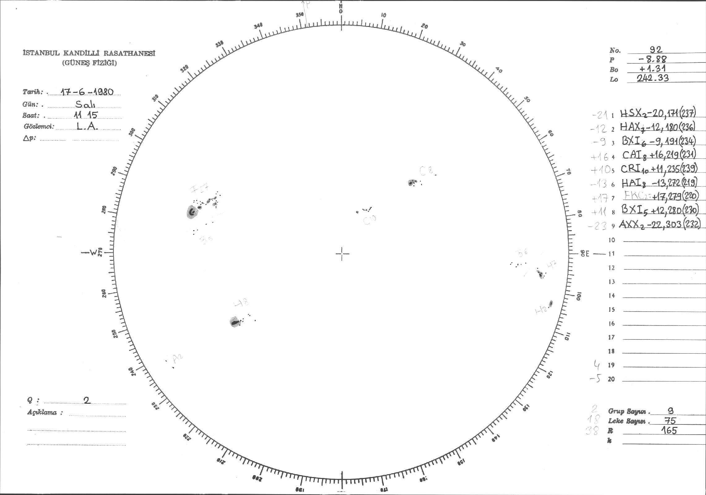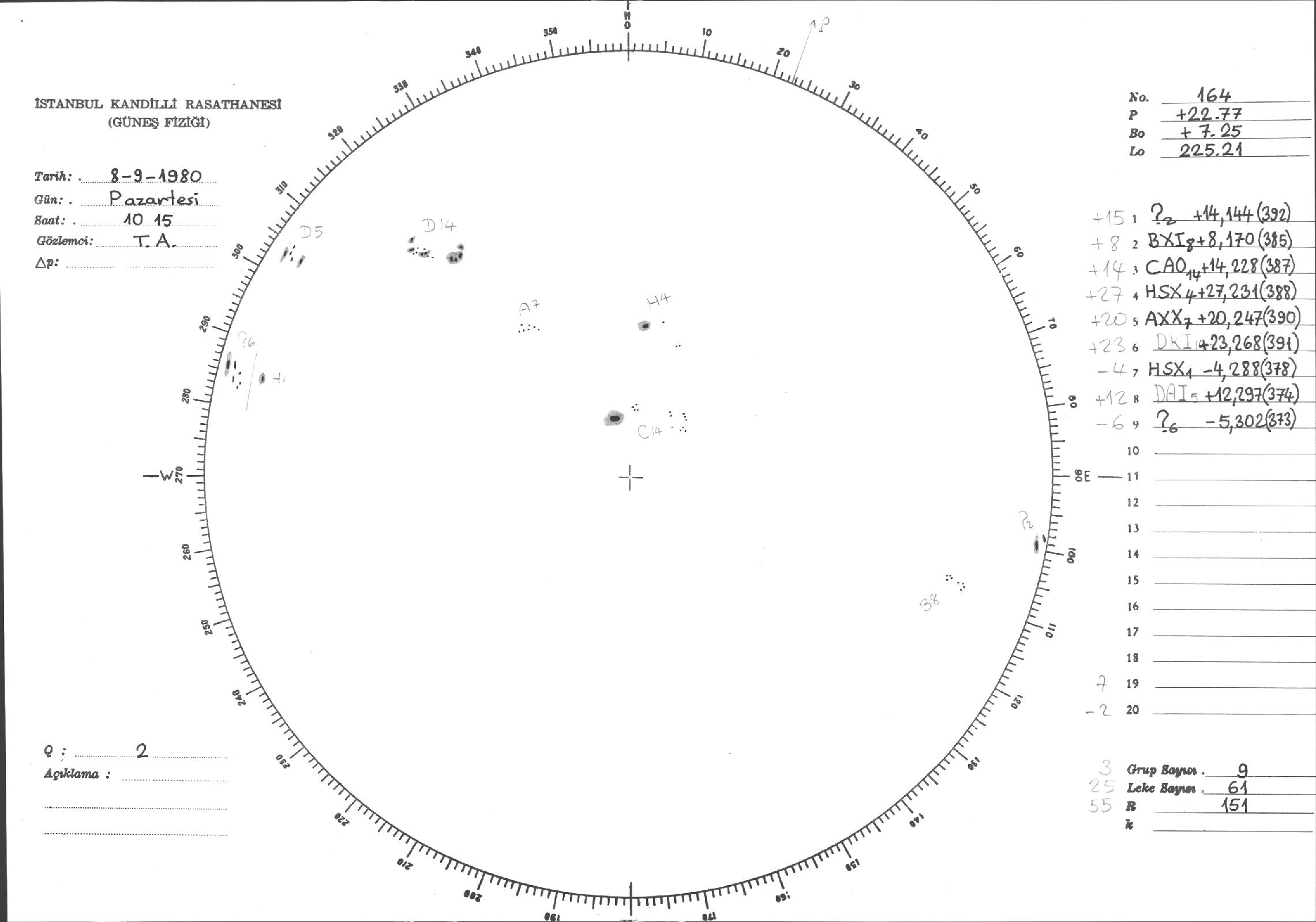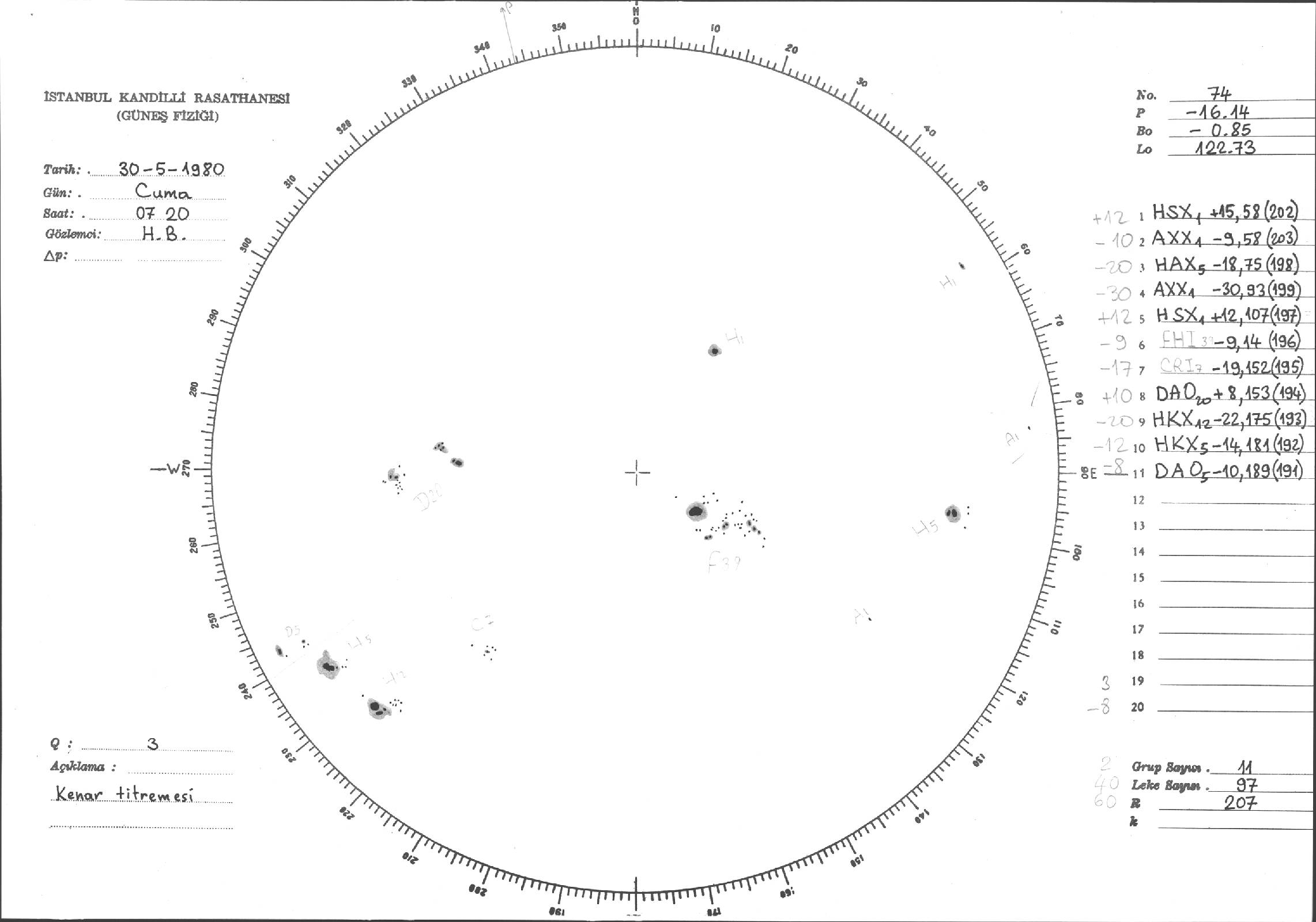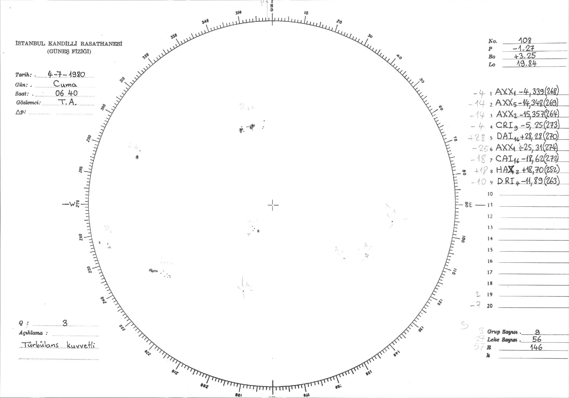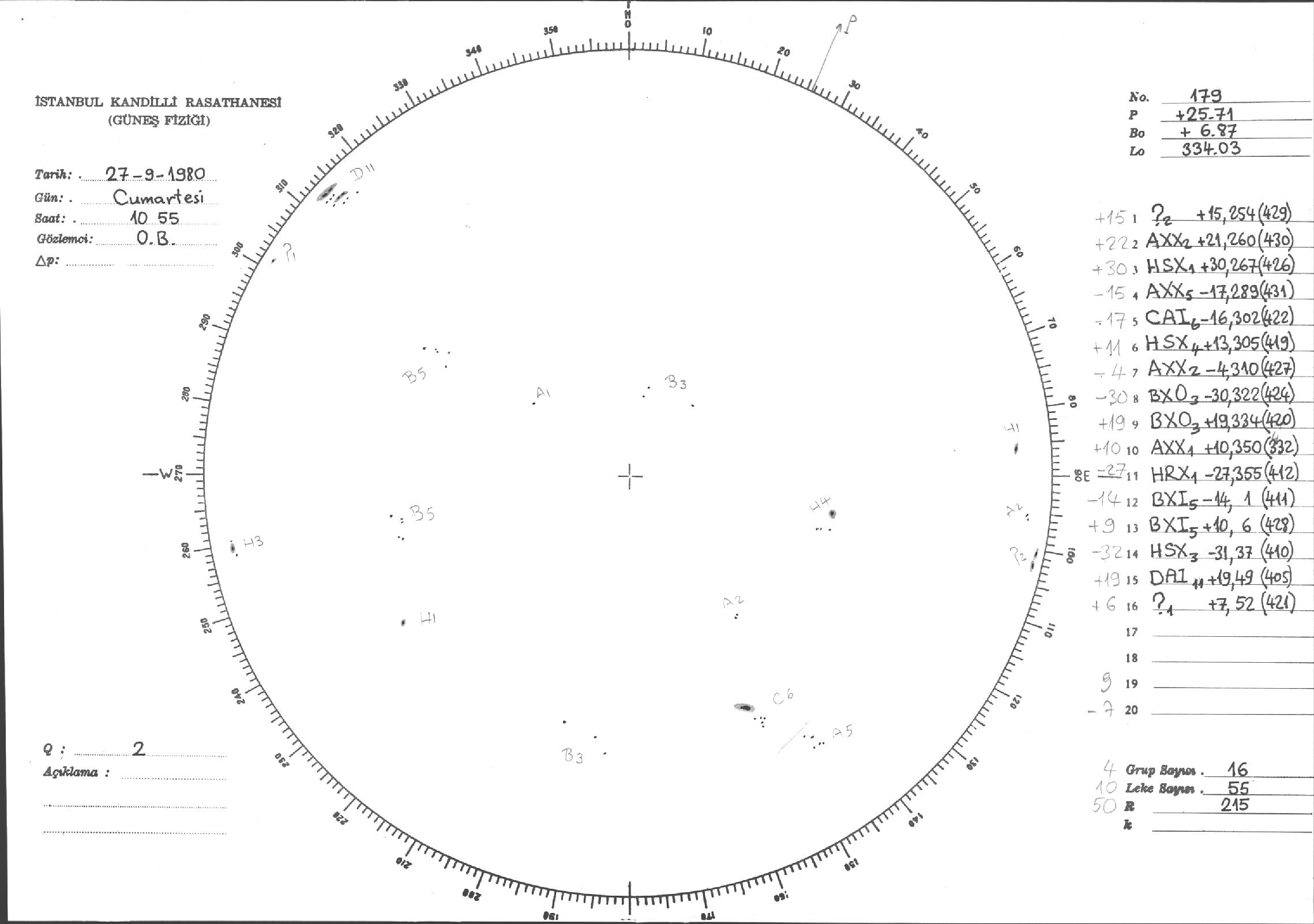 Güneş Lekesi Çizimleri / Kandilli Sunspot Drawings