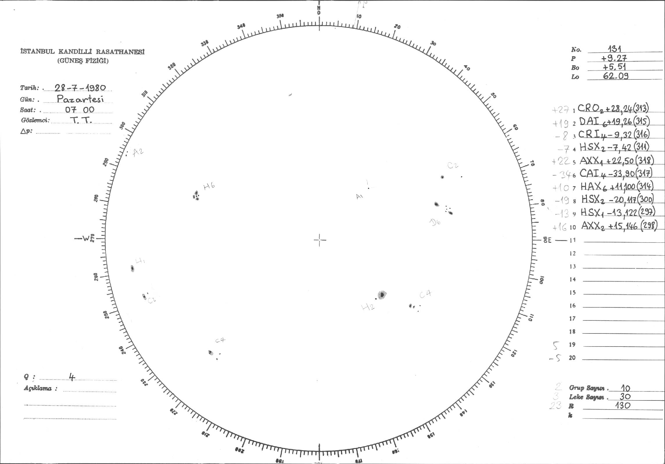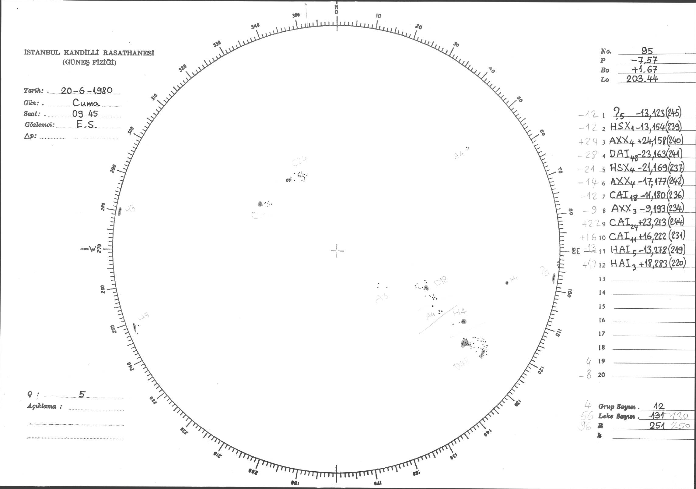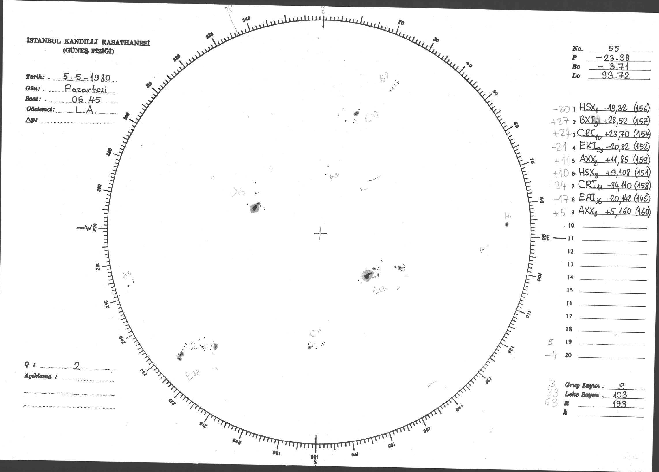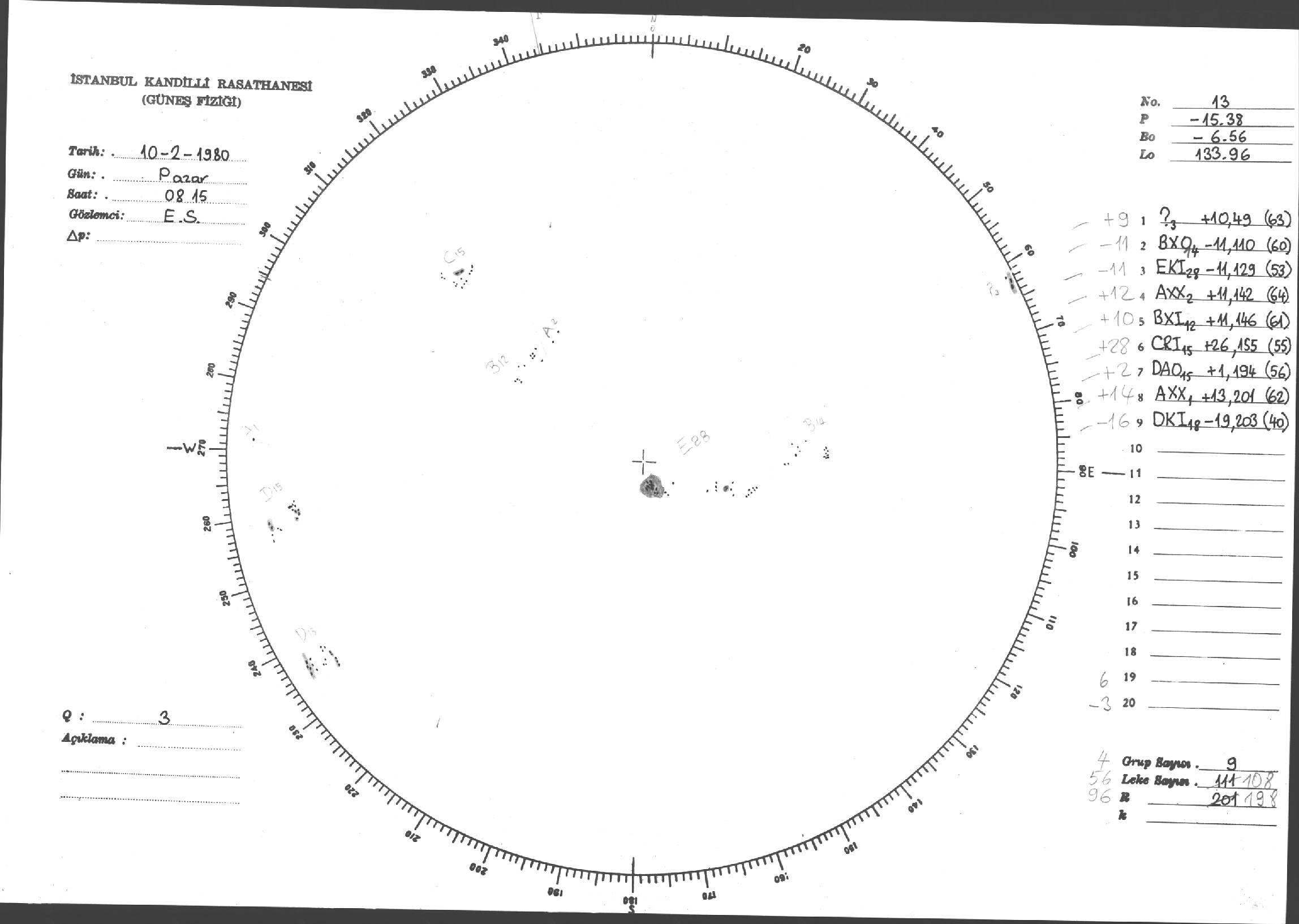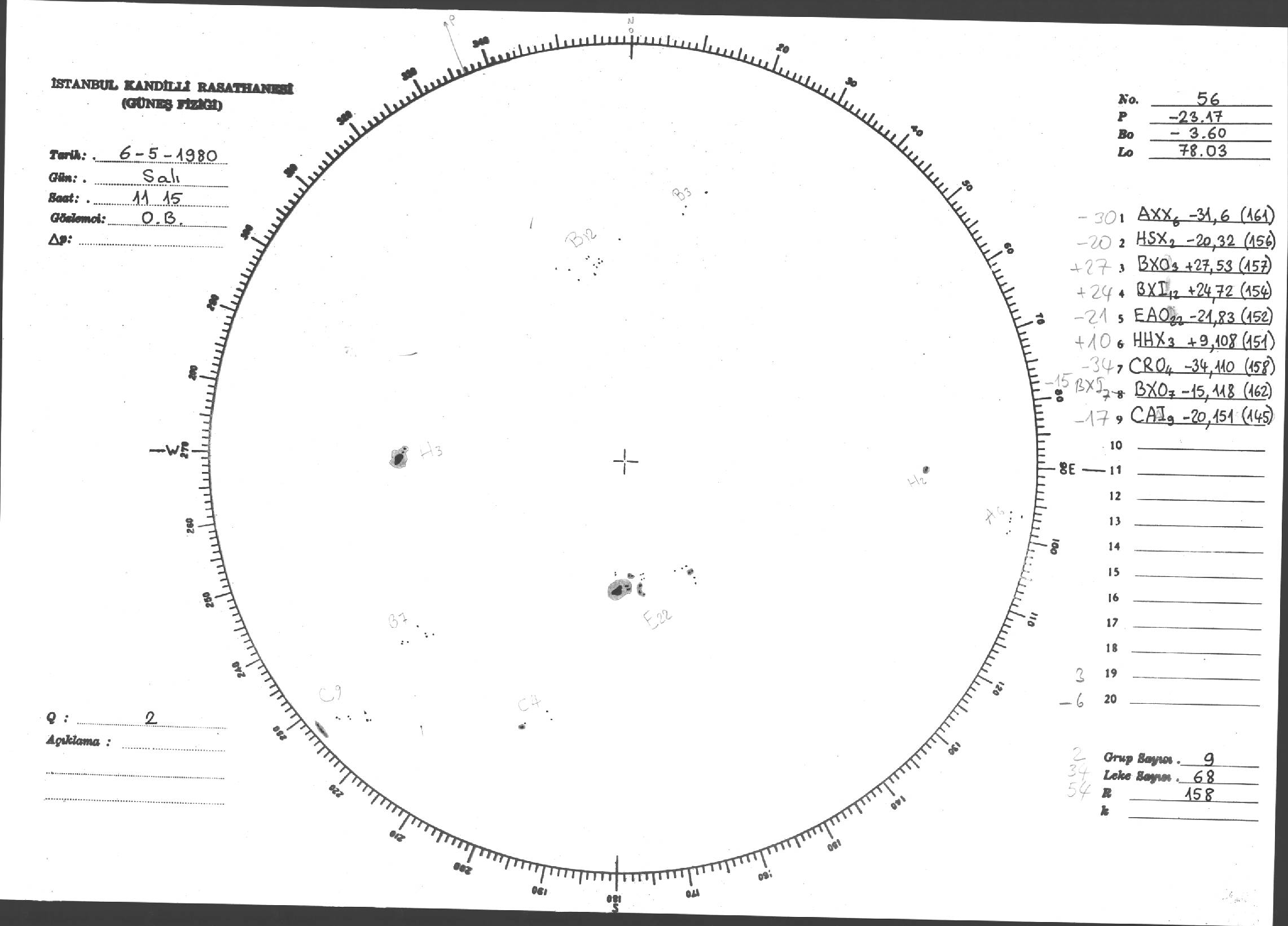 Güneş Lekesi Çizimleri / Kandilli Sunspot Drawings