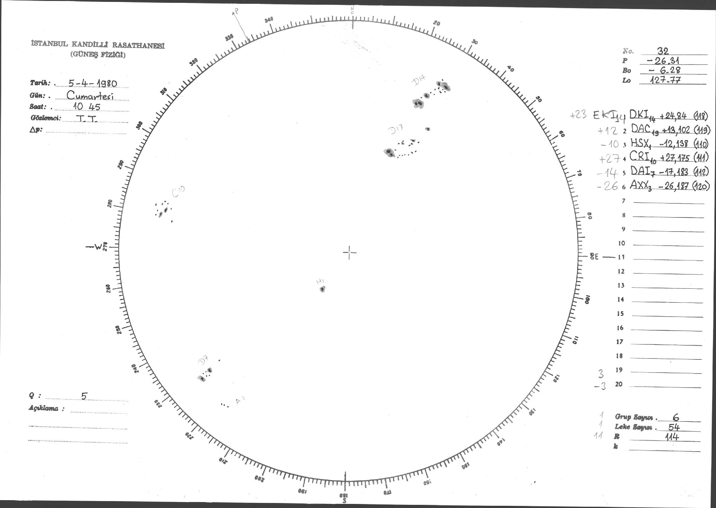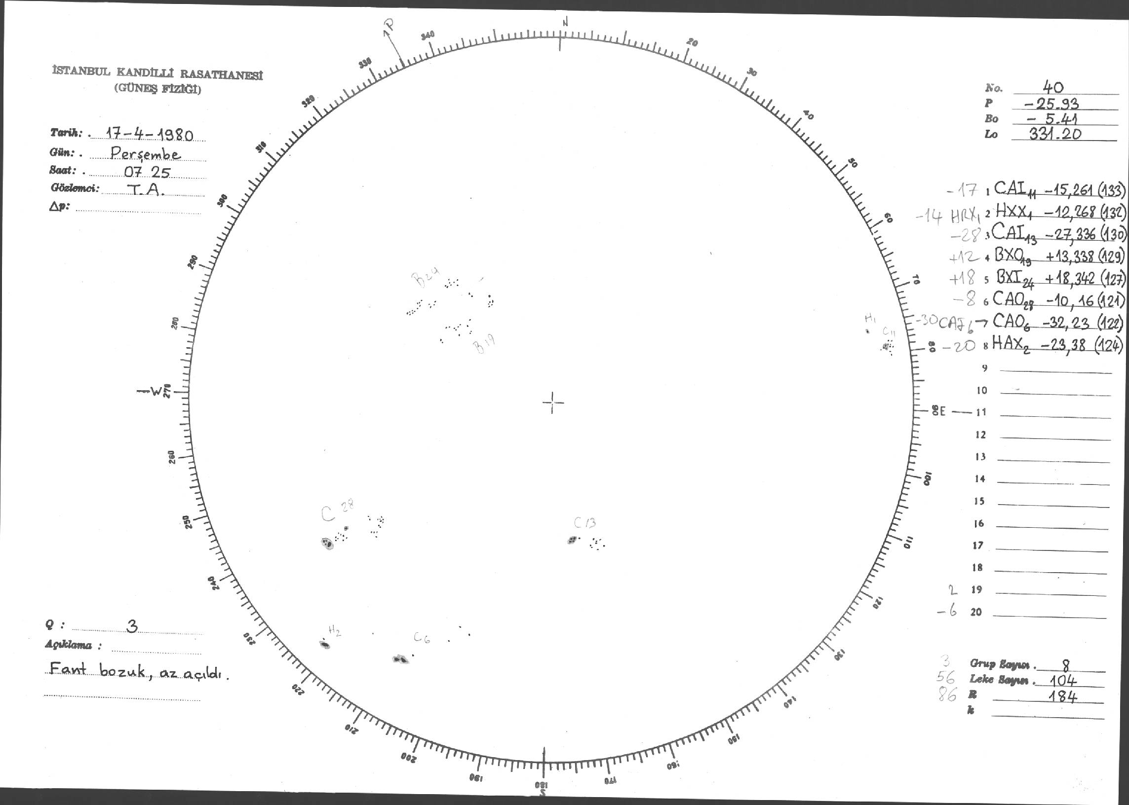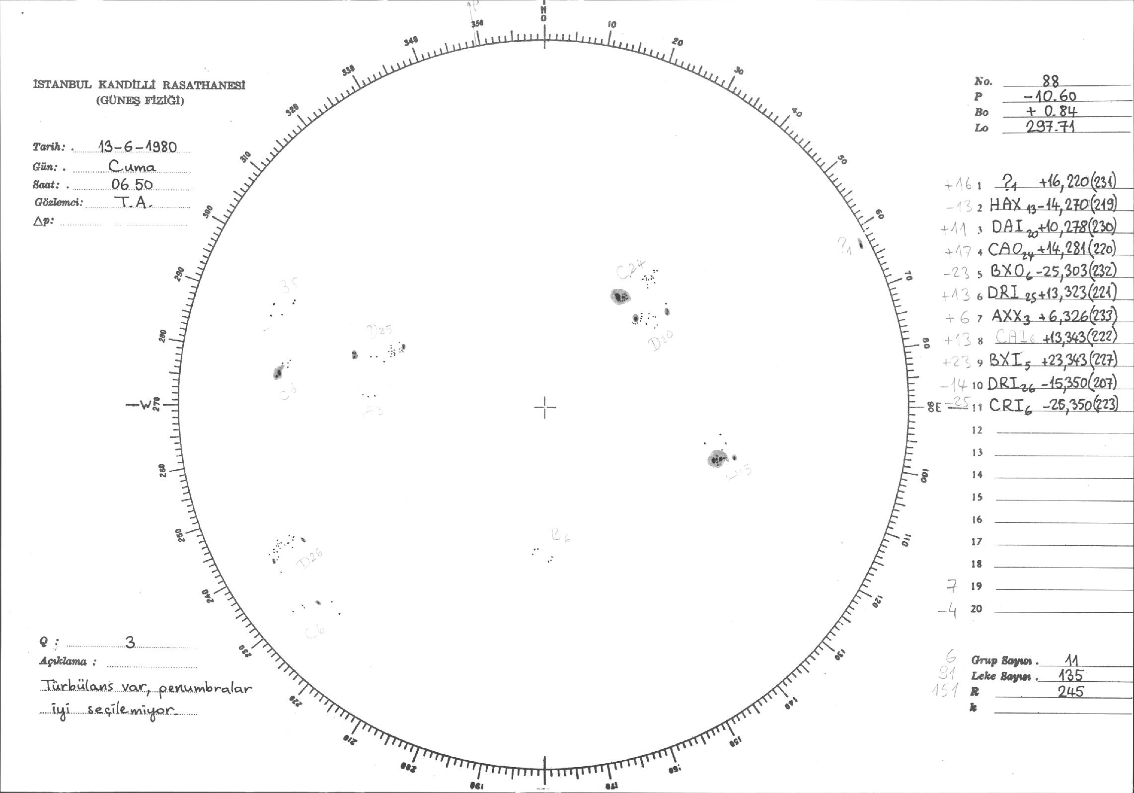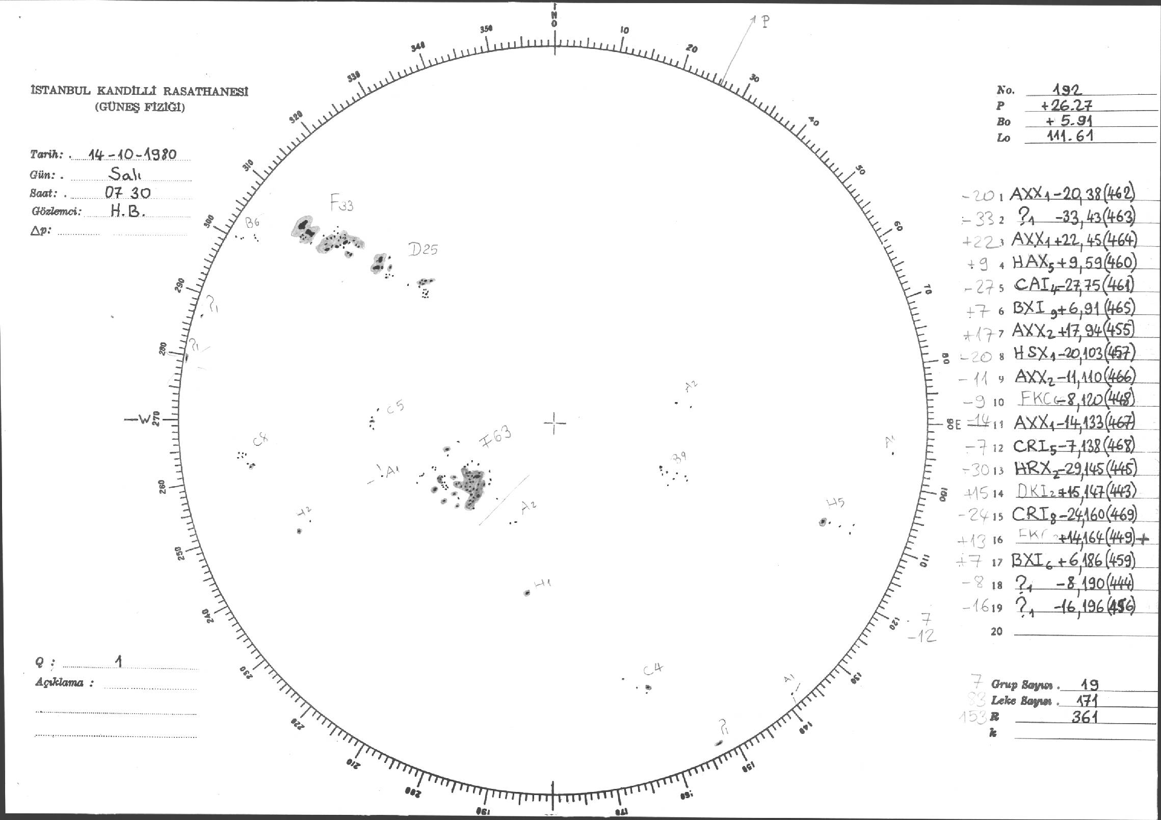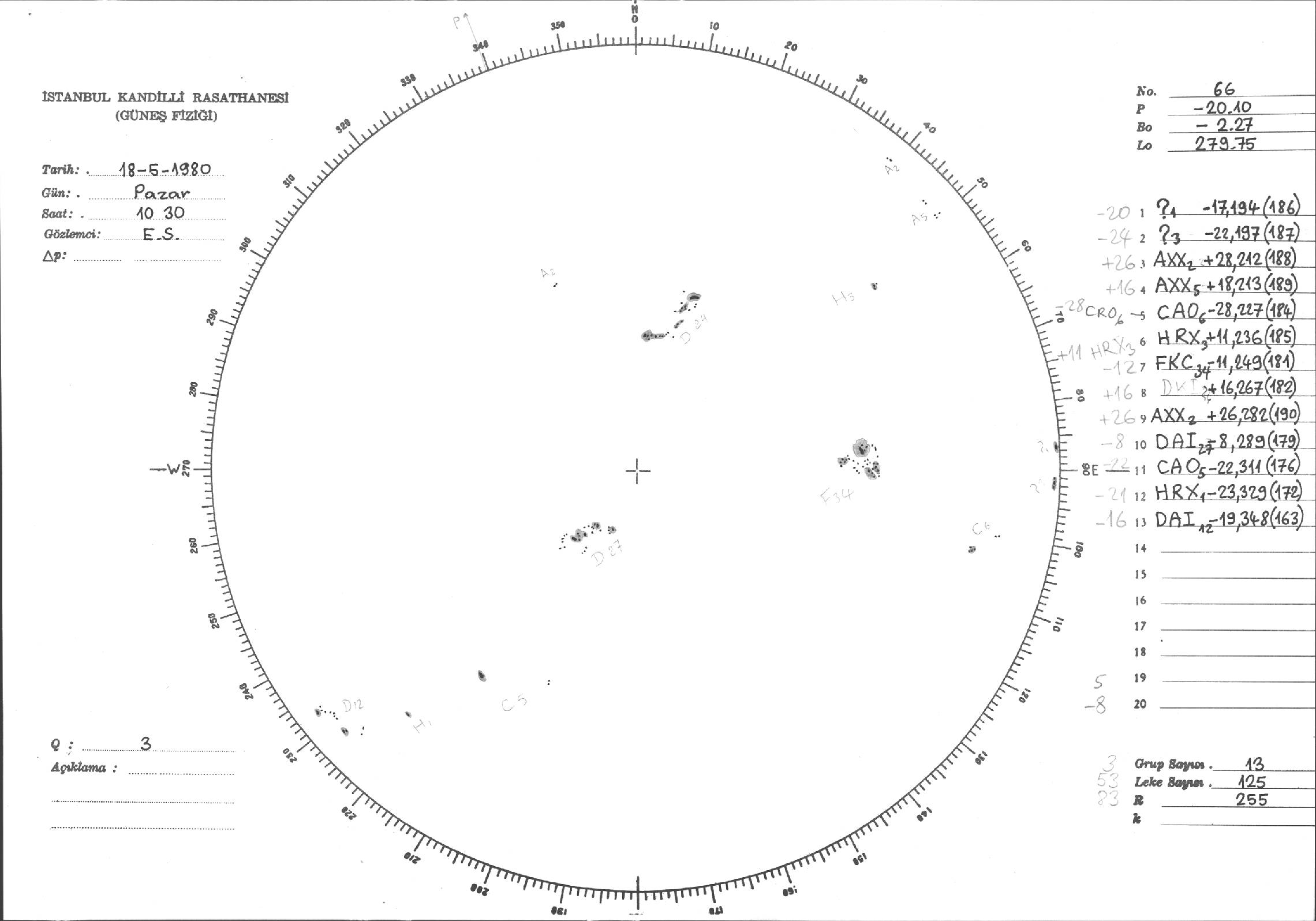 Güneş Lekesi Çizimleri / Kandilli Sunspot Drawings