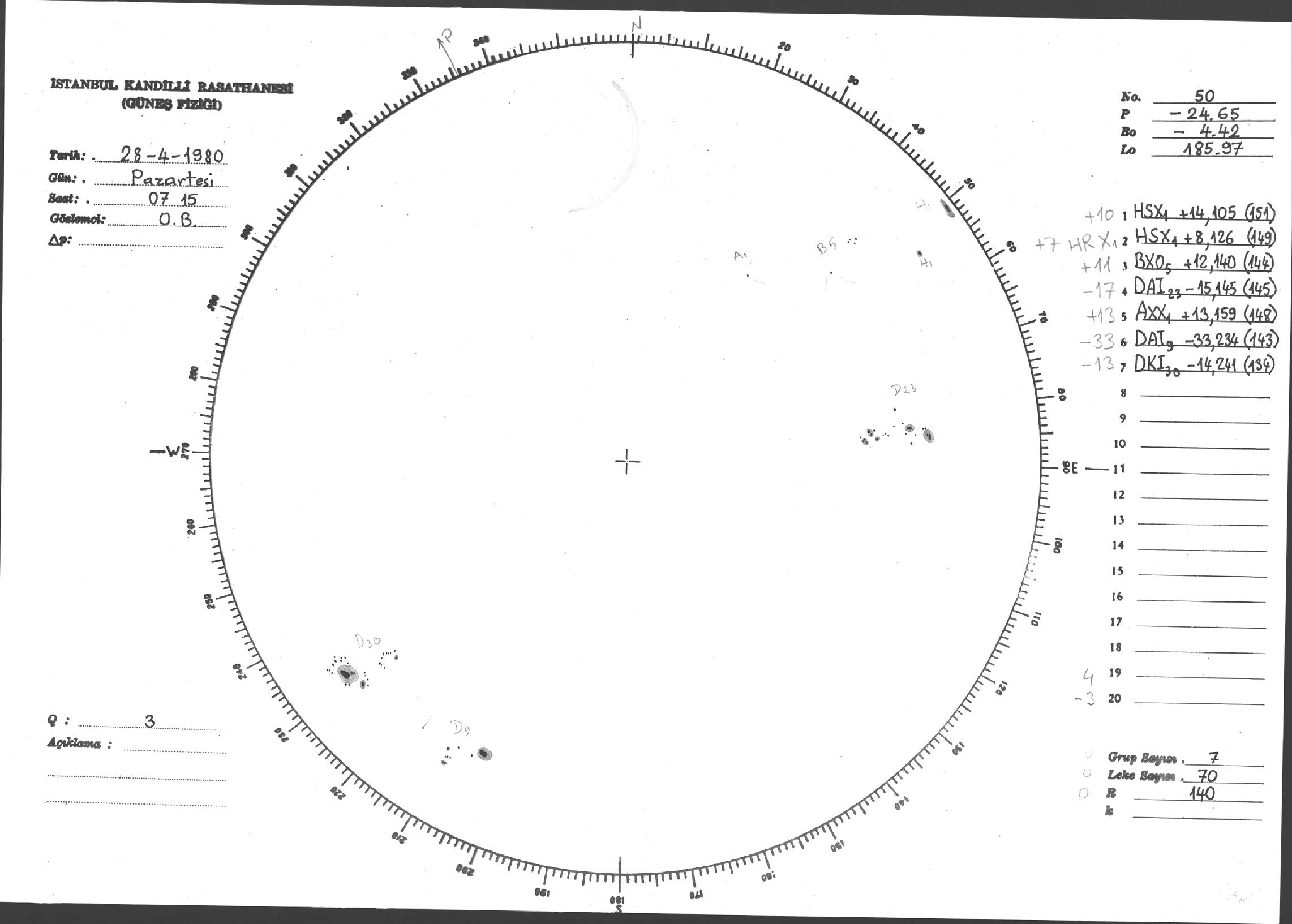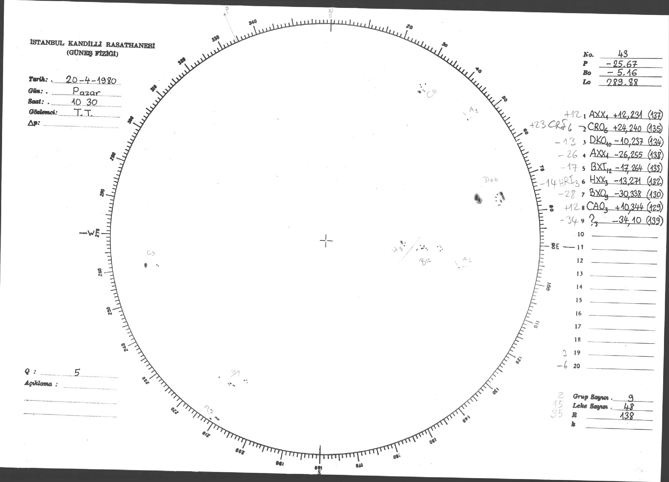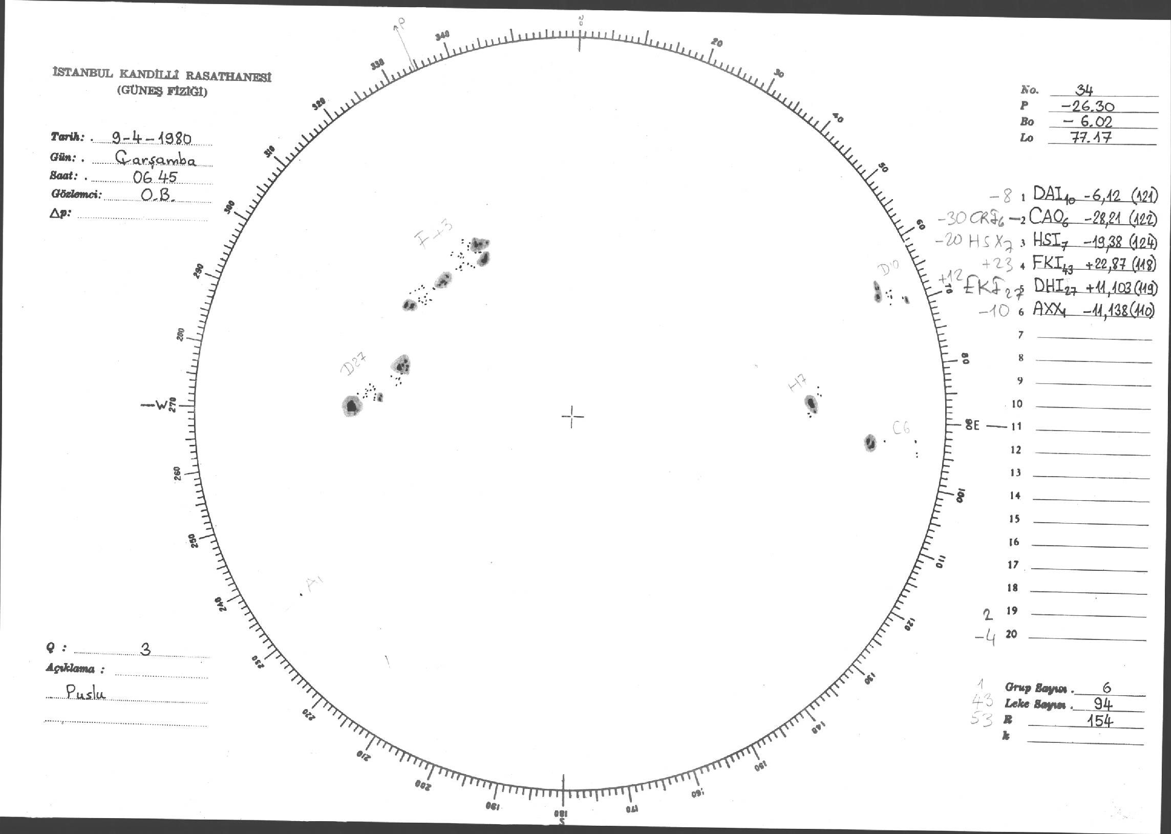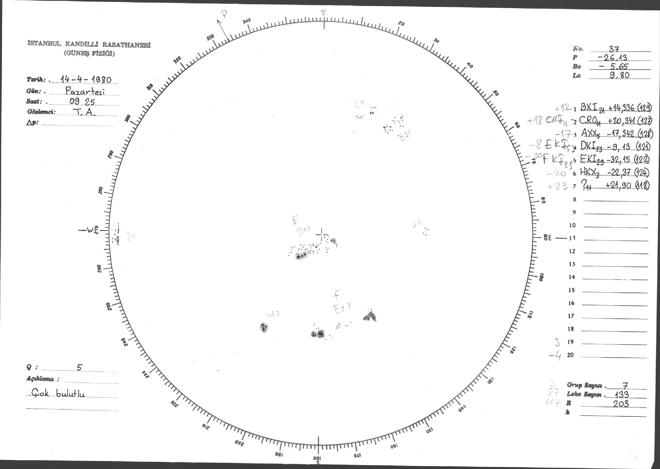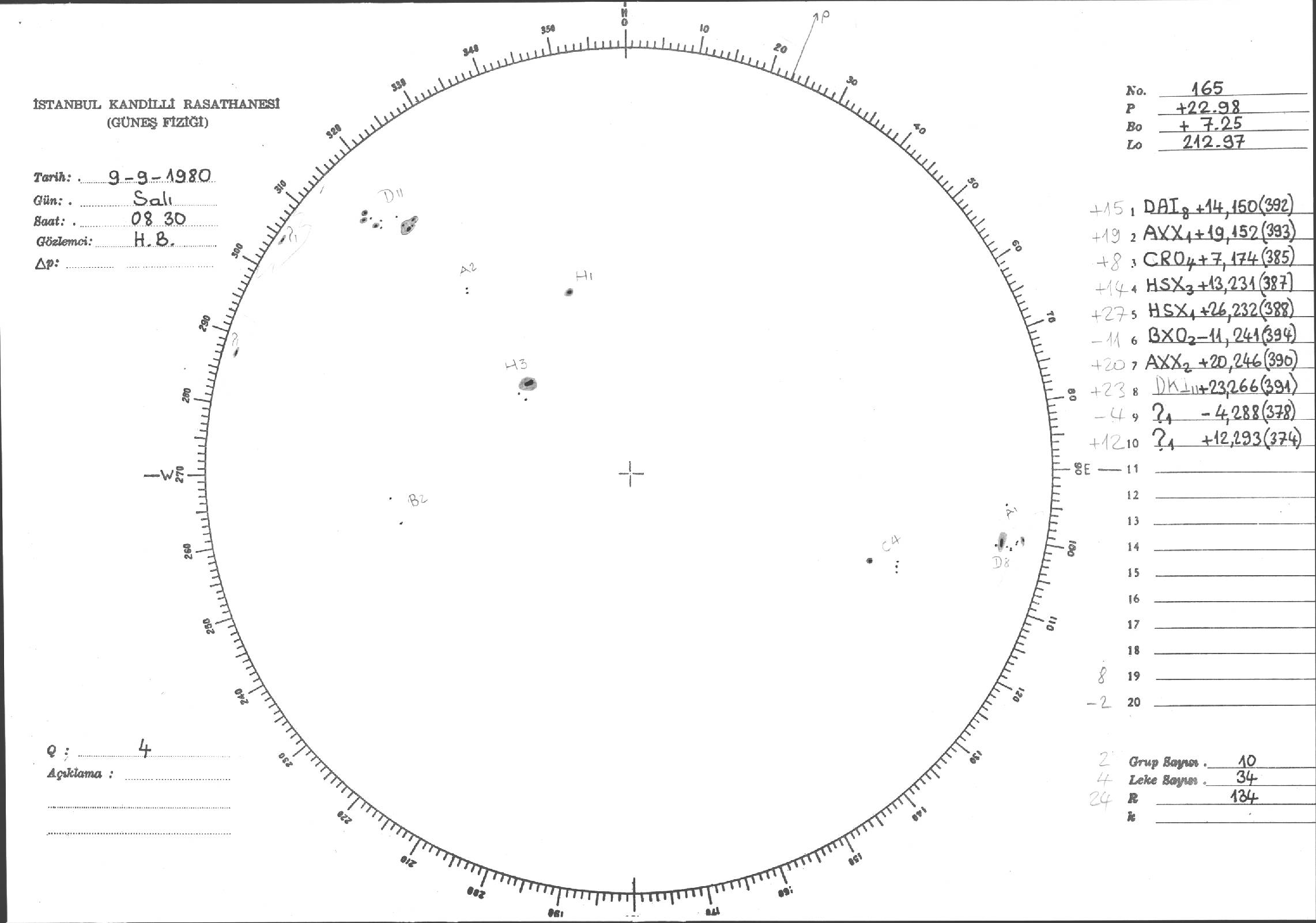 Güneş Lekesi Çizimleri / Kandilli Sunspot Drawings