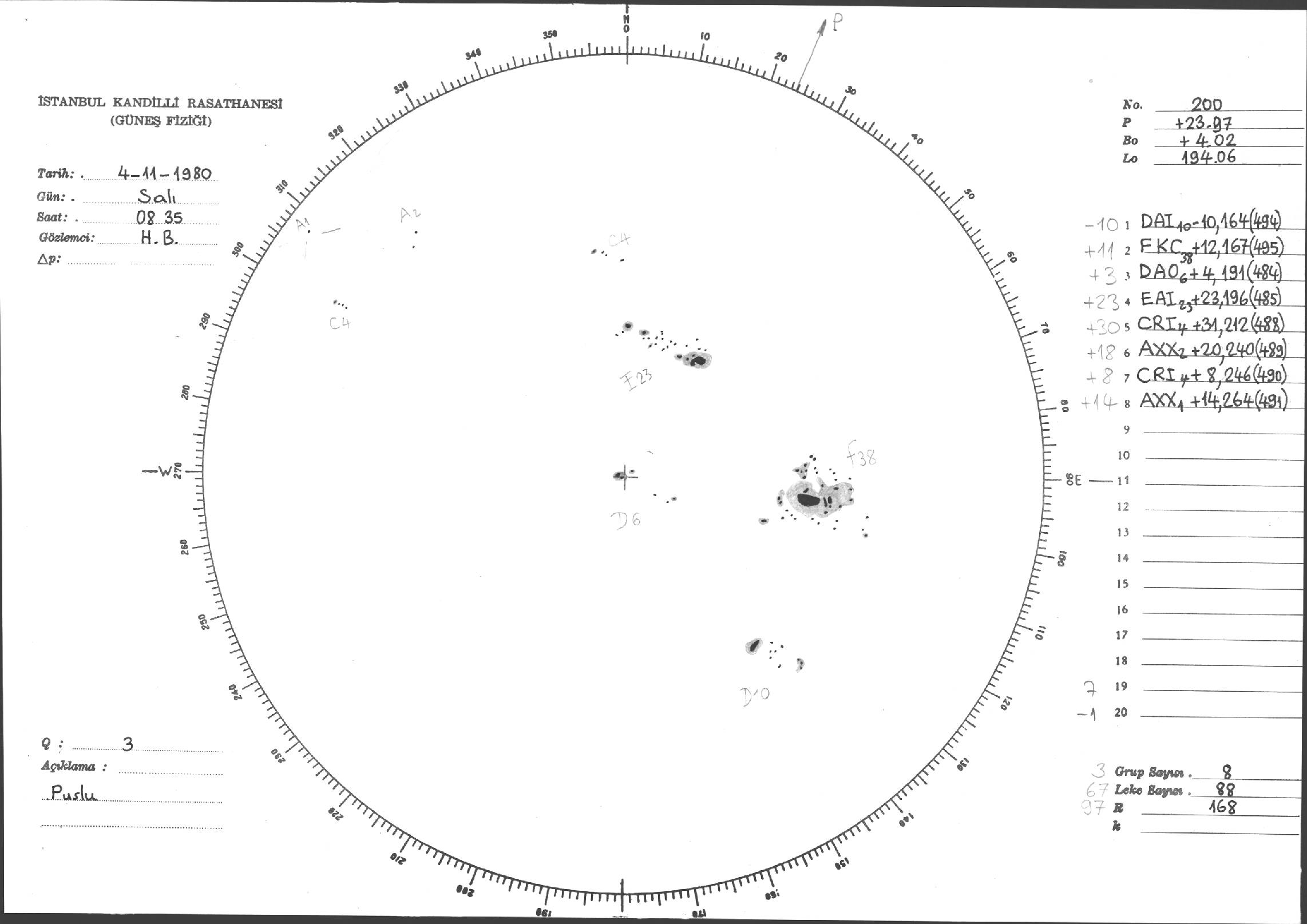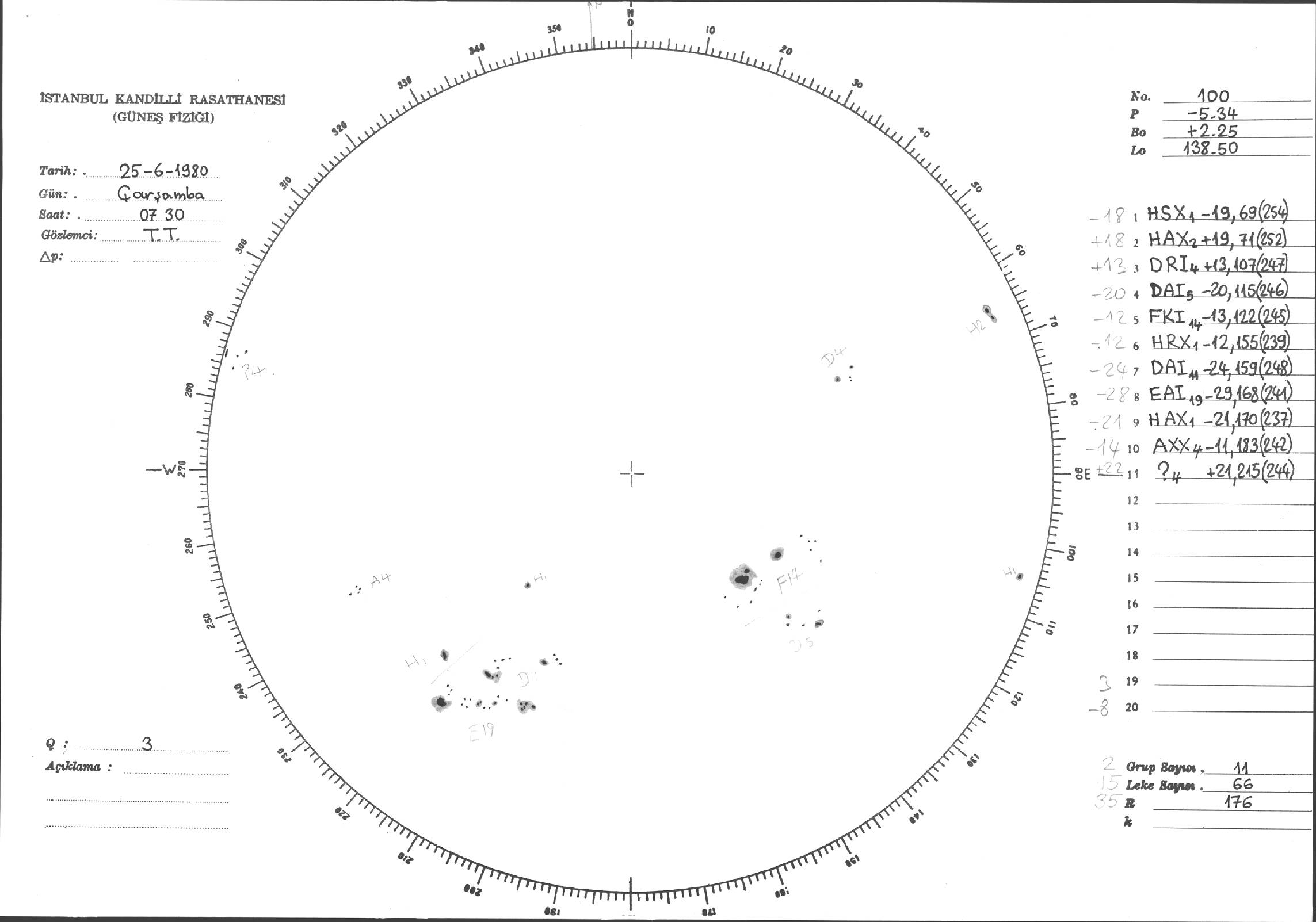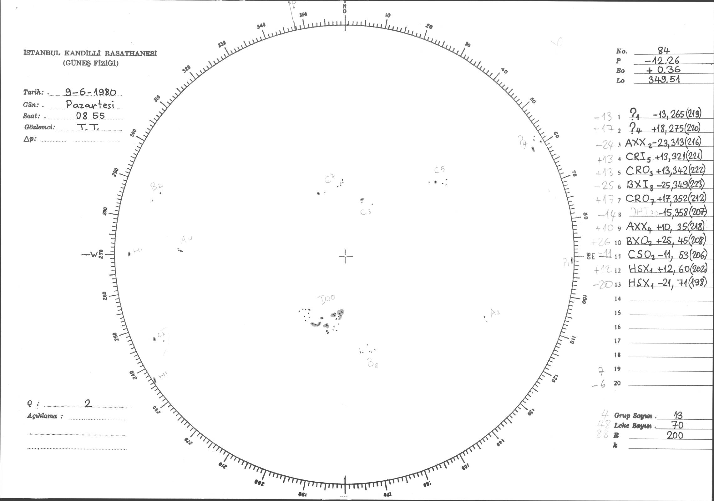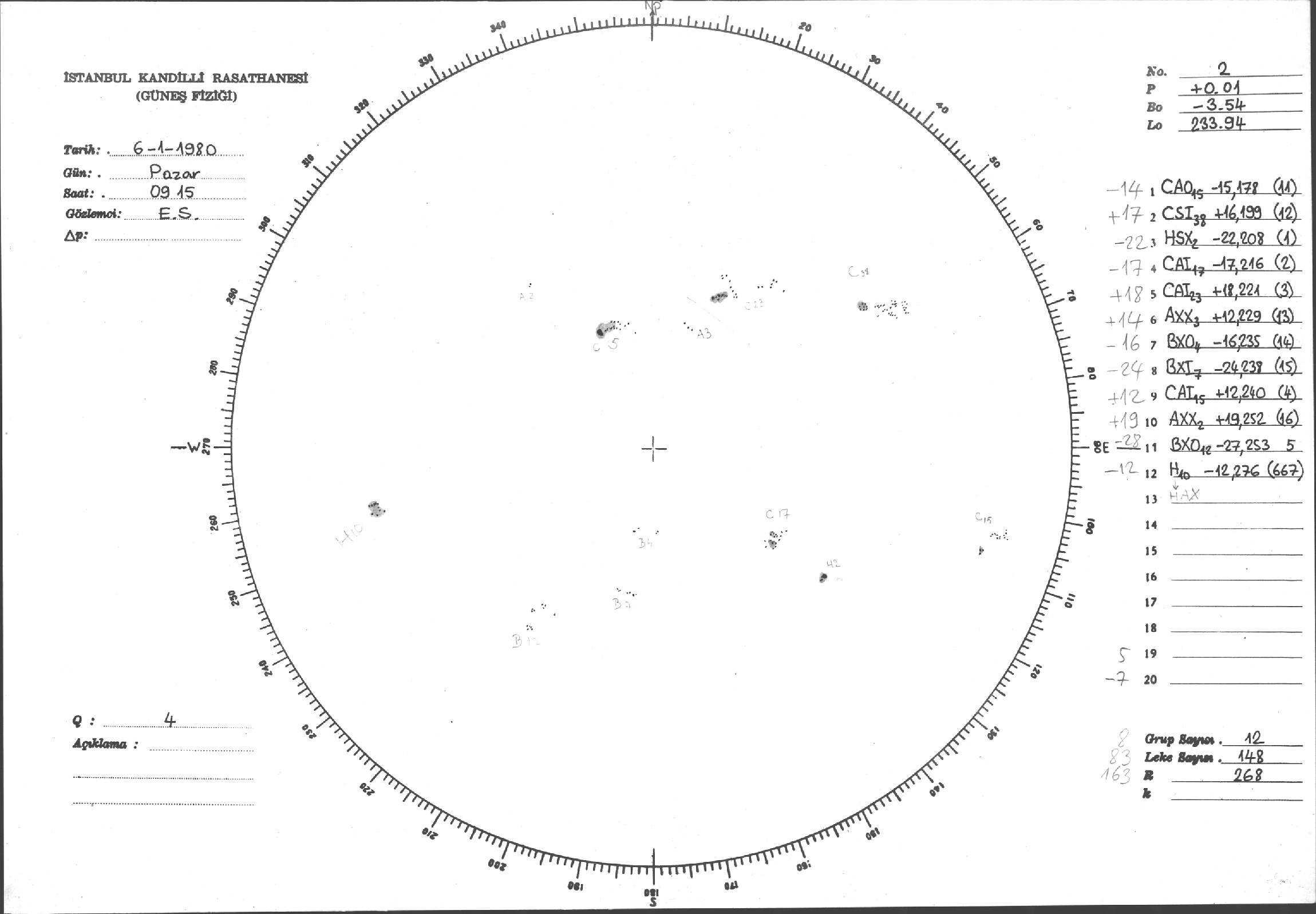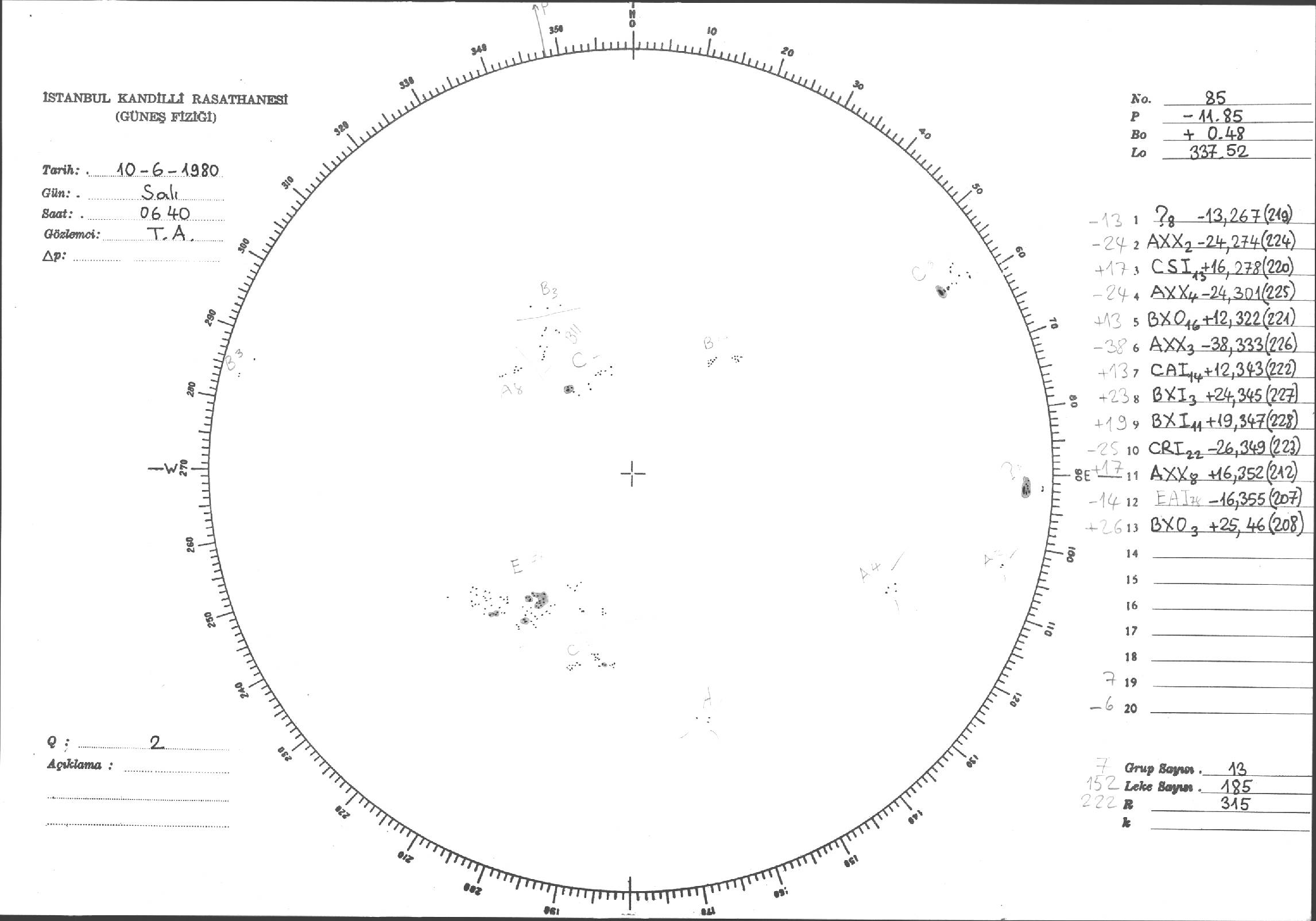 Güneş Lekesi Çizimleri / Kandilli Sunspot Drawings