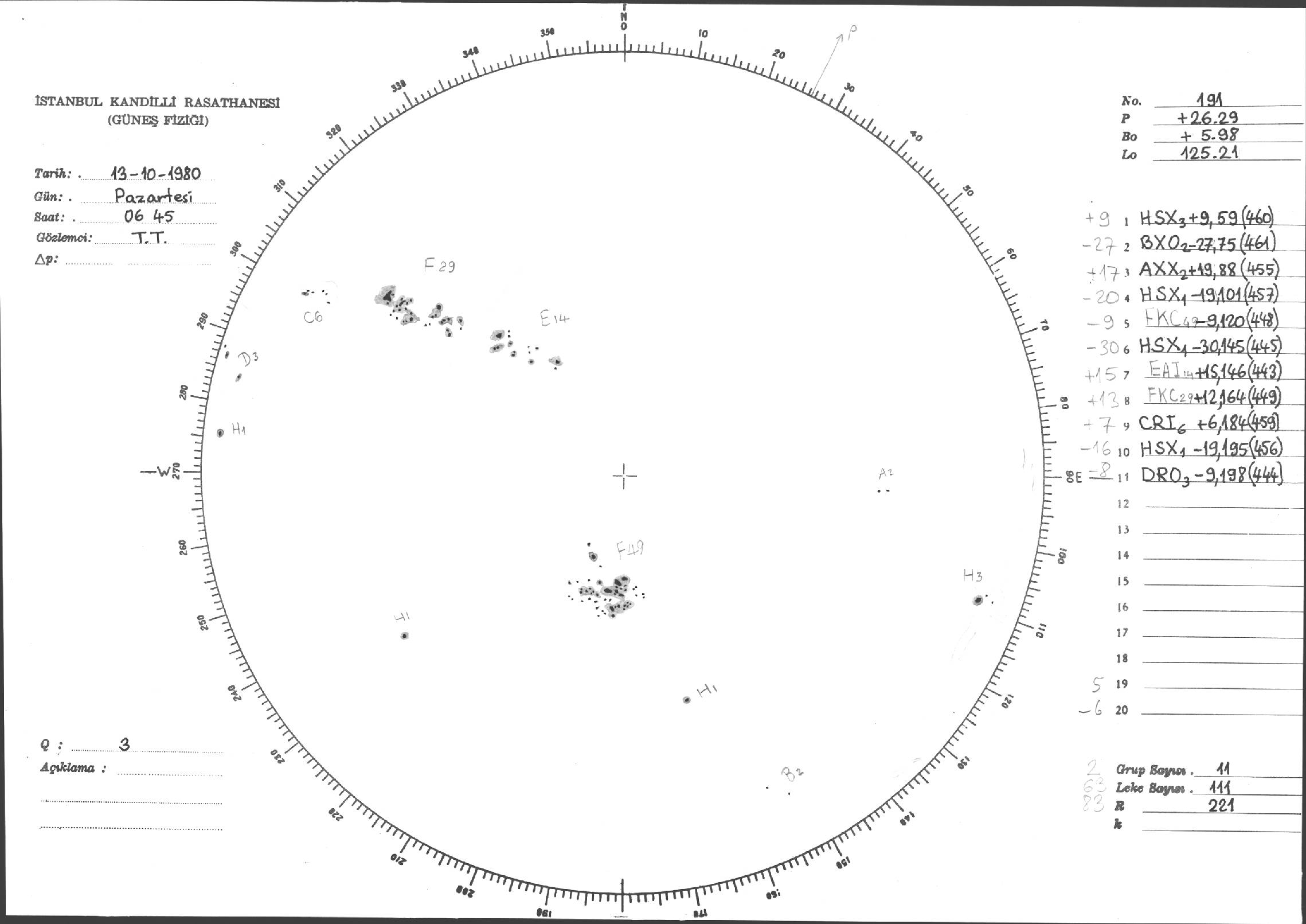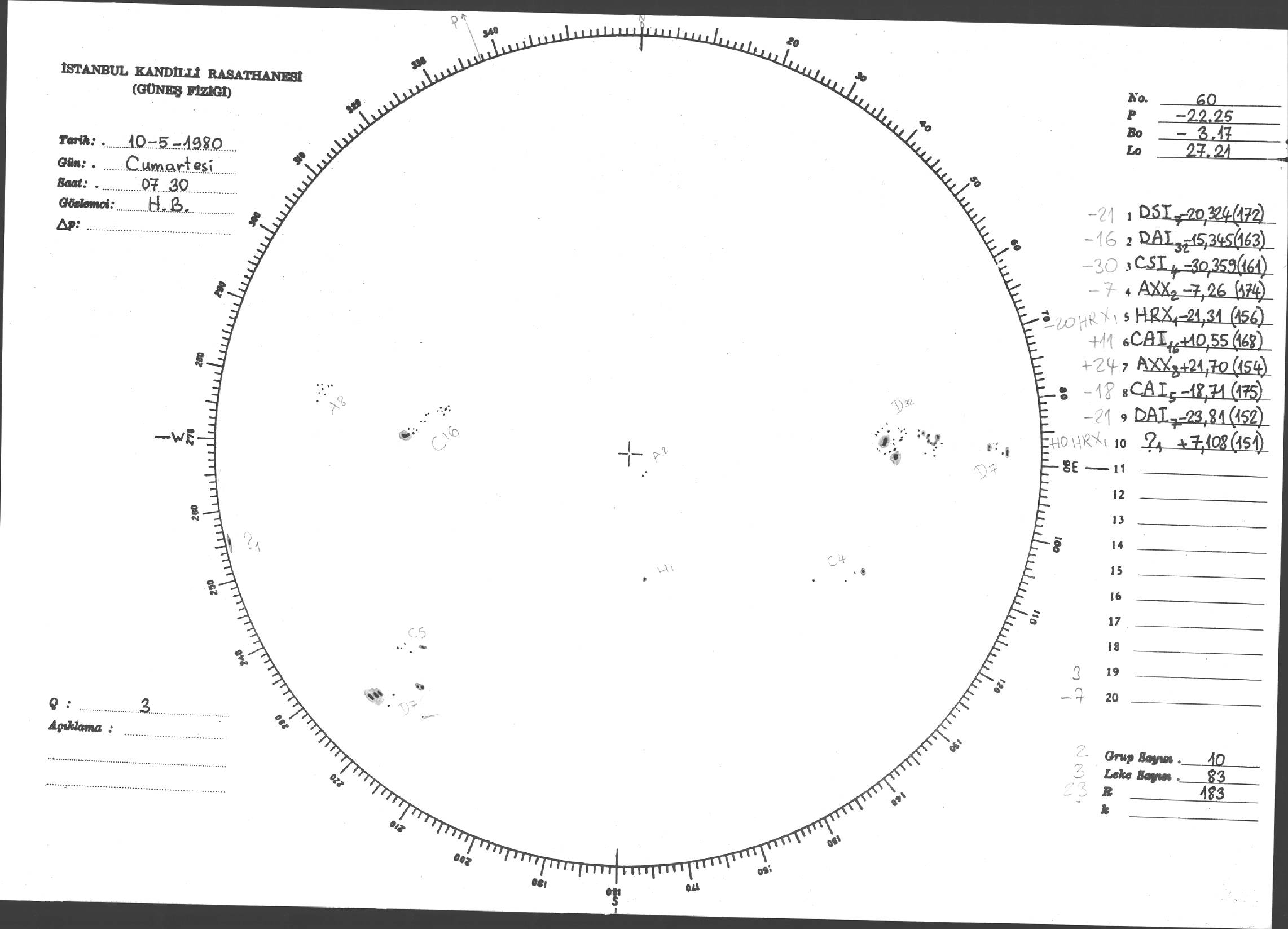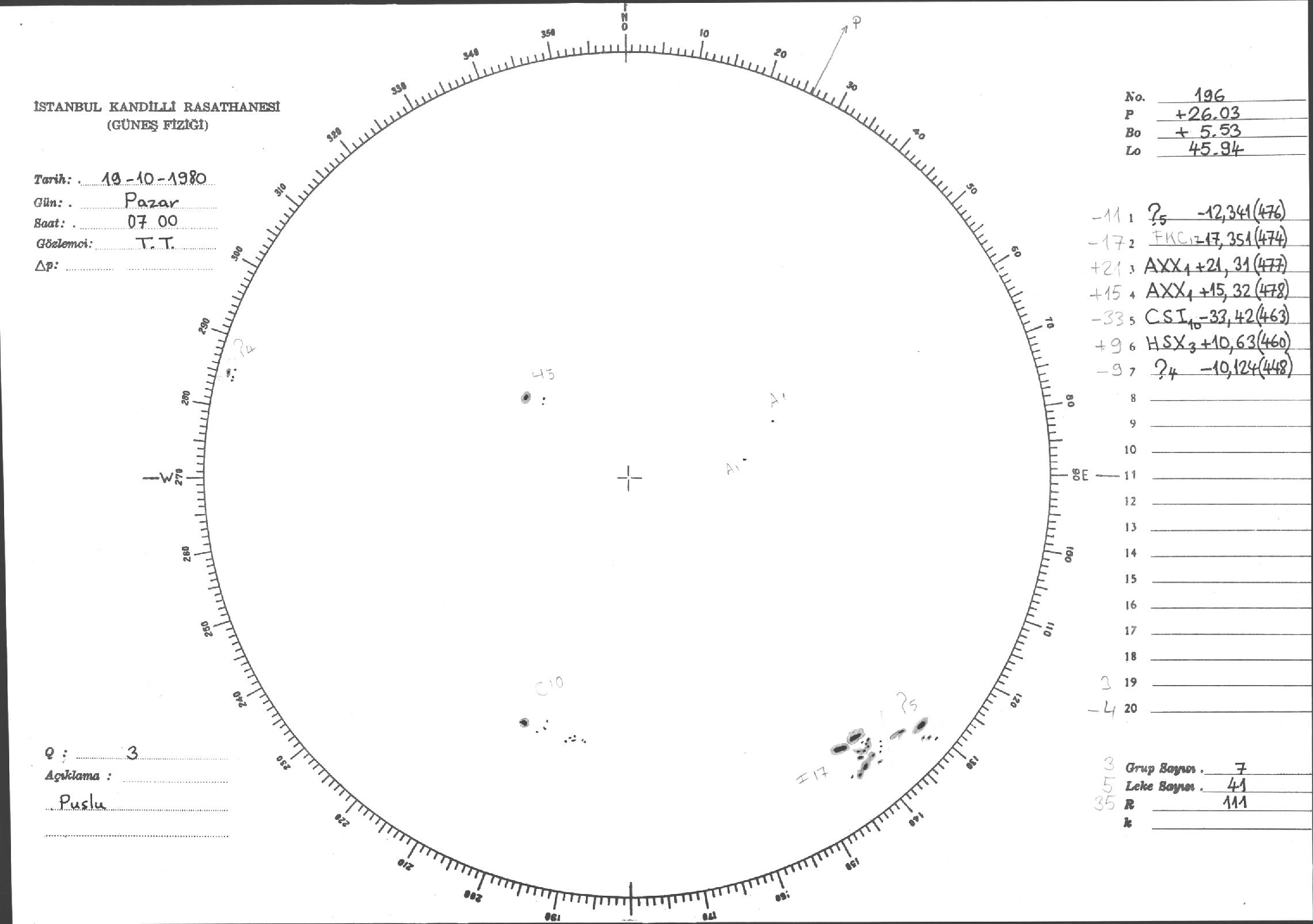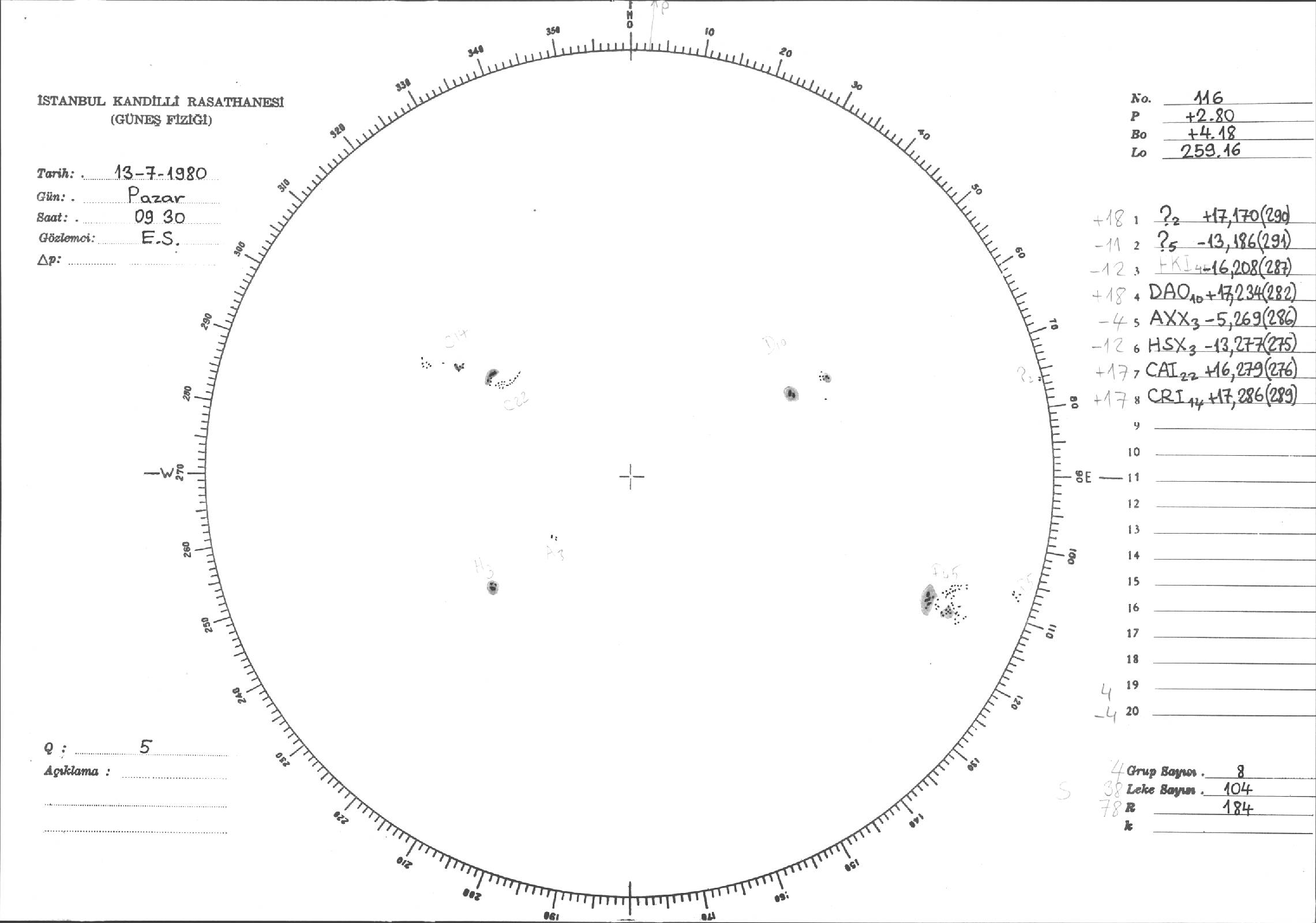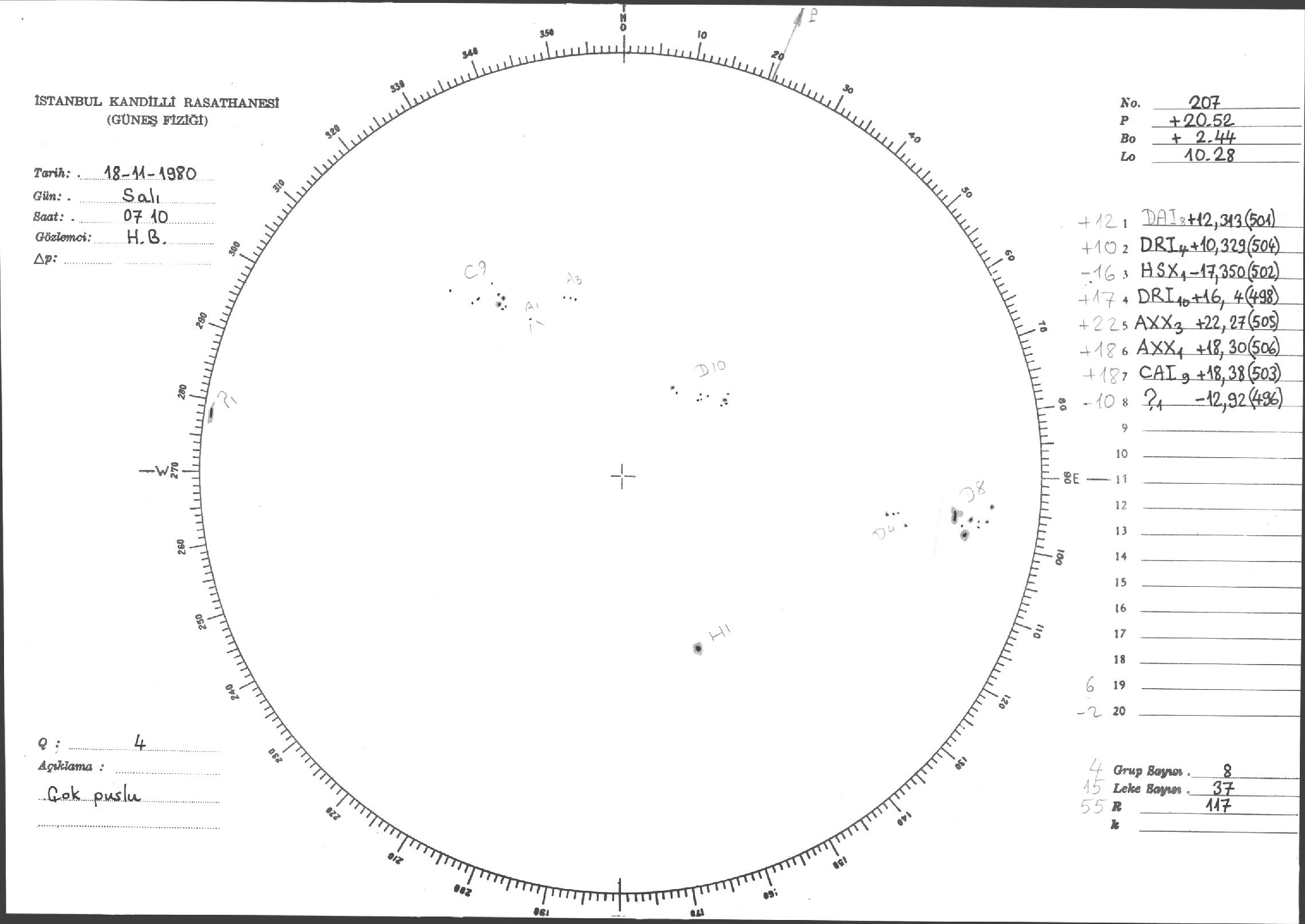 Güneş Lekesi Çizimleri / Kandilli Sunspot Drawings