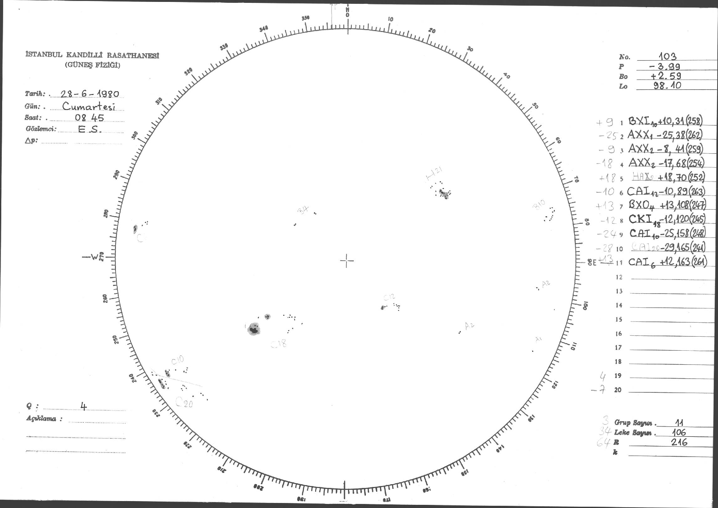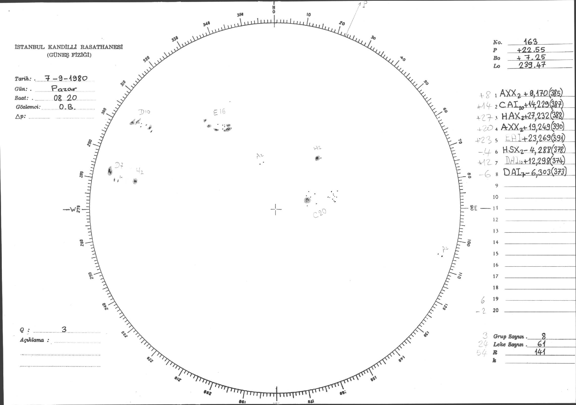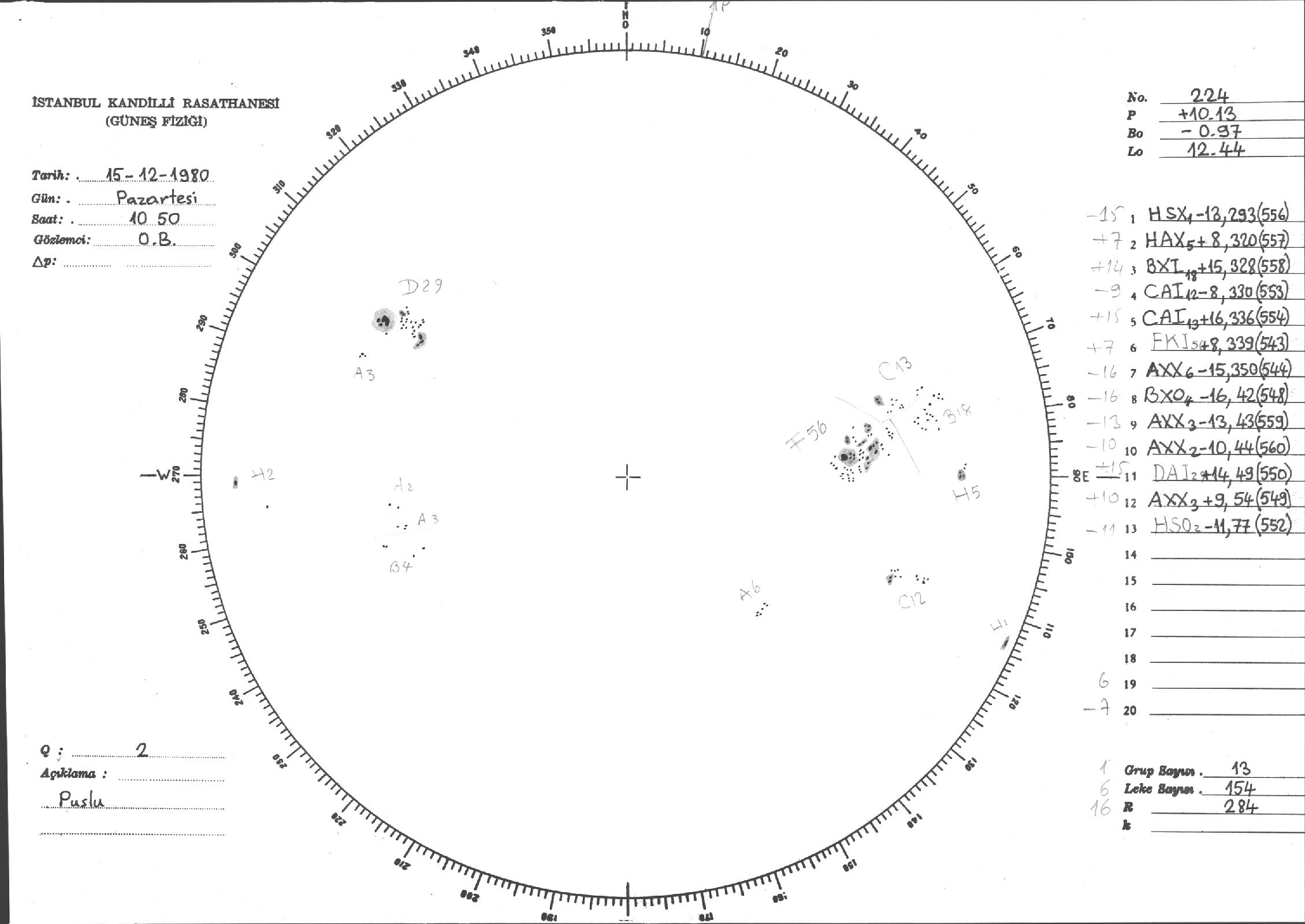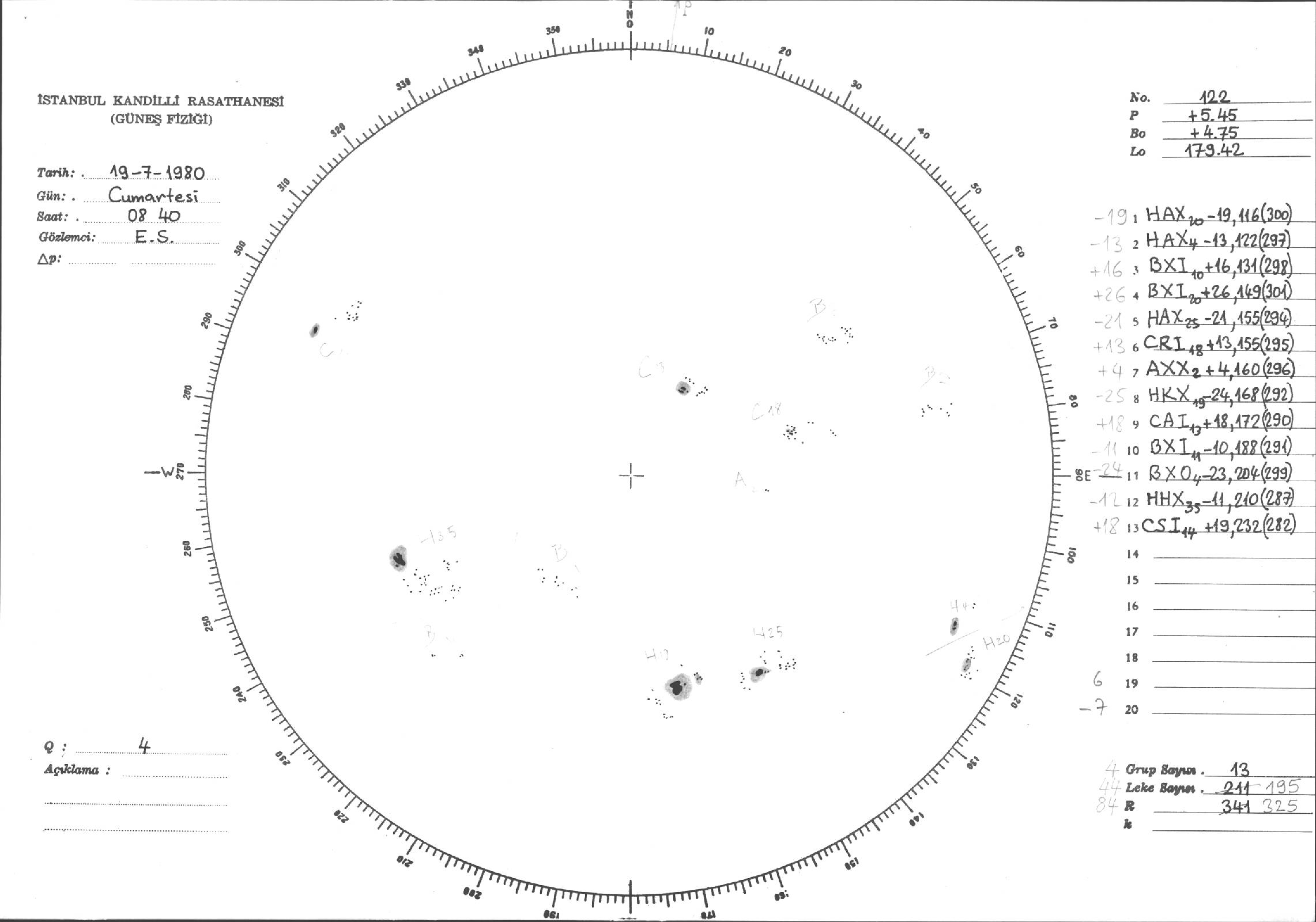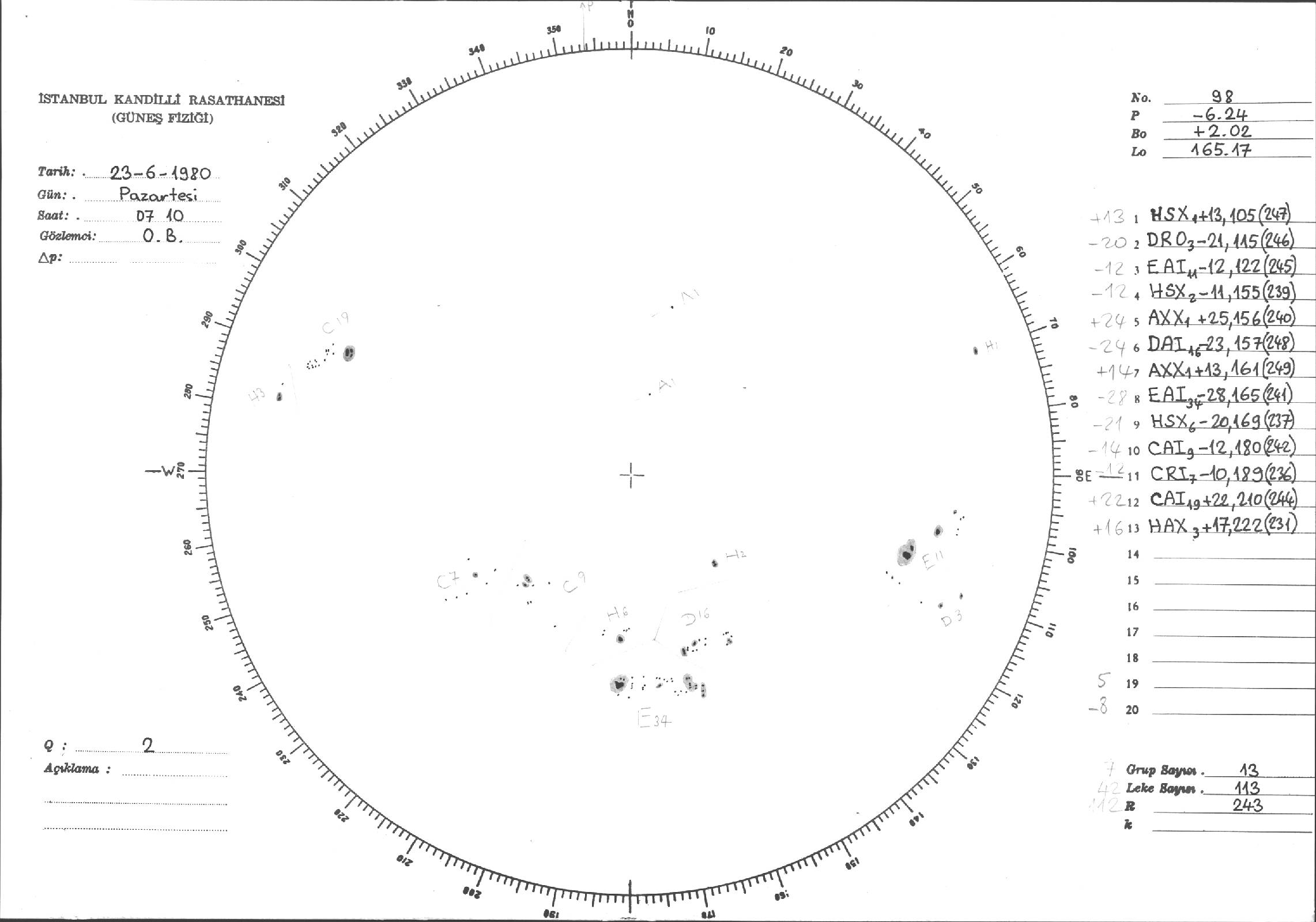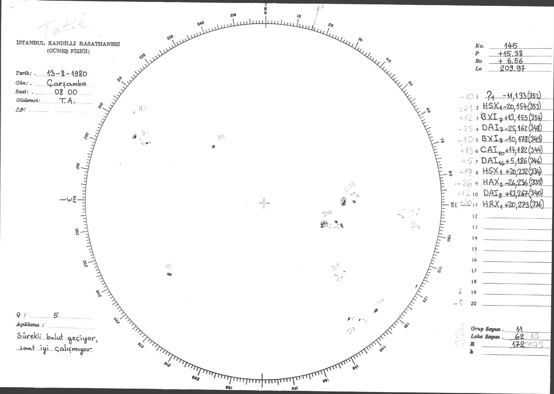 Güneş Lekesi Çizimleri / Kandilli Sunspot Drawings