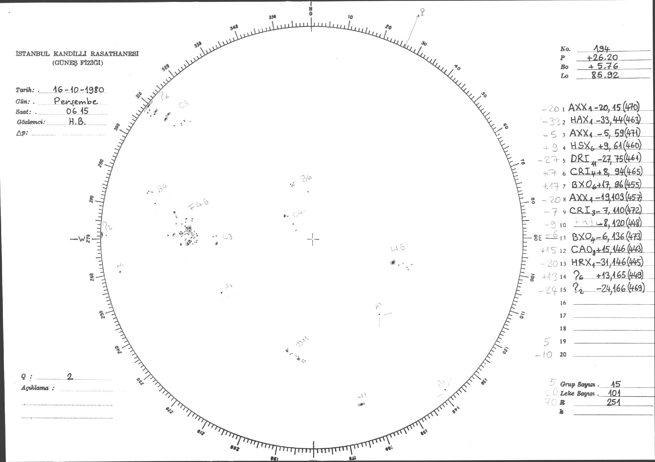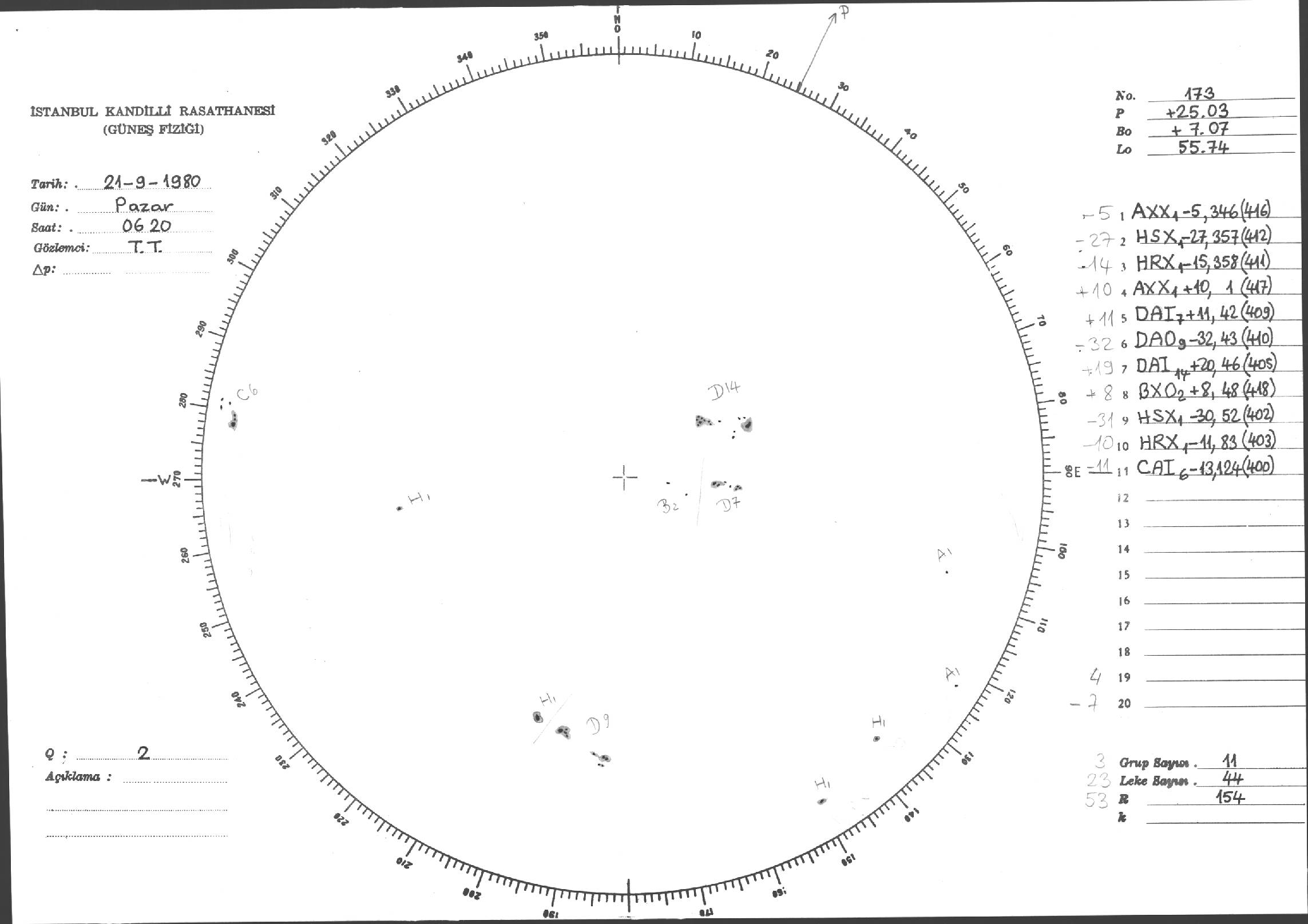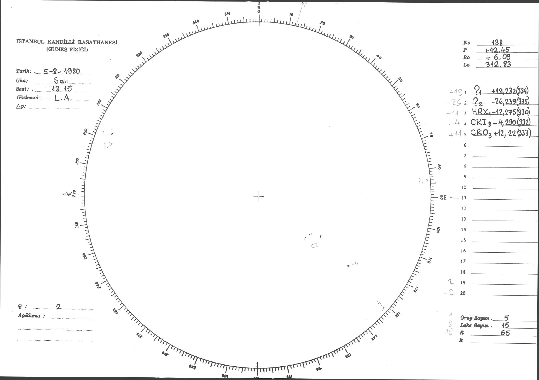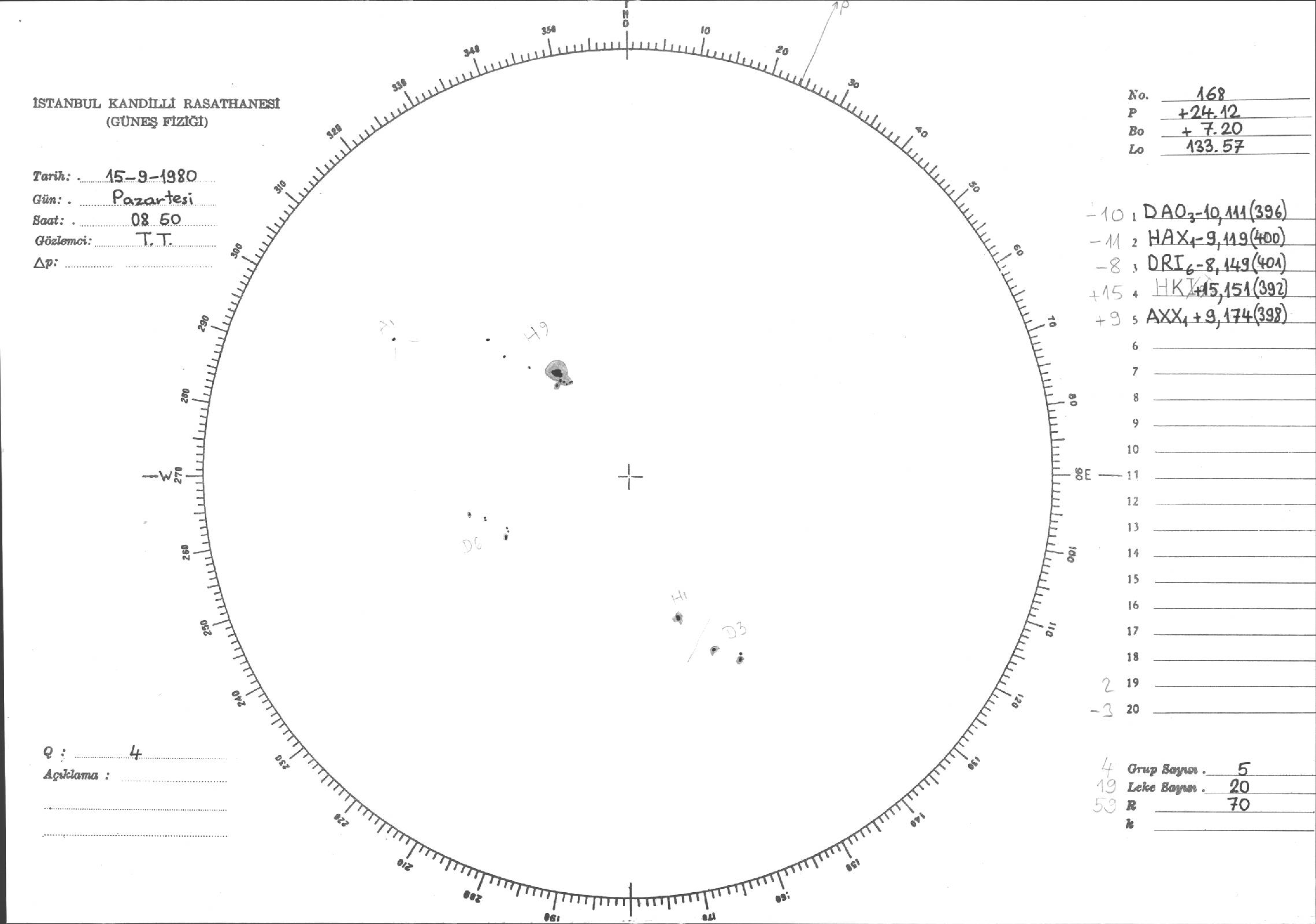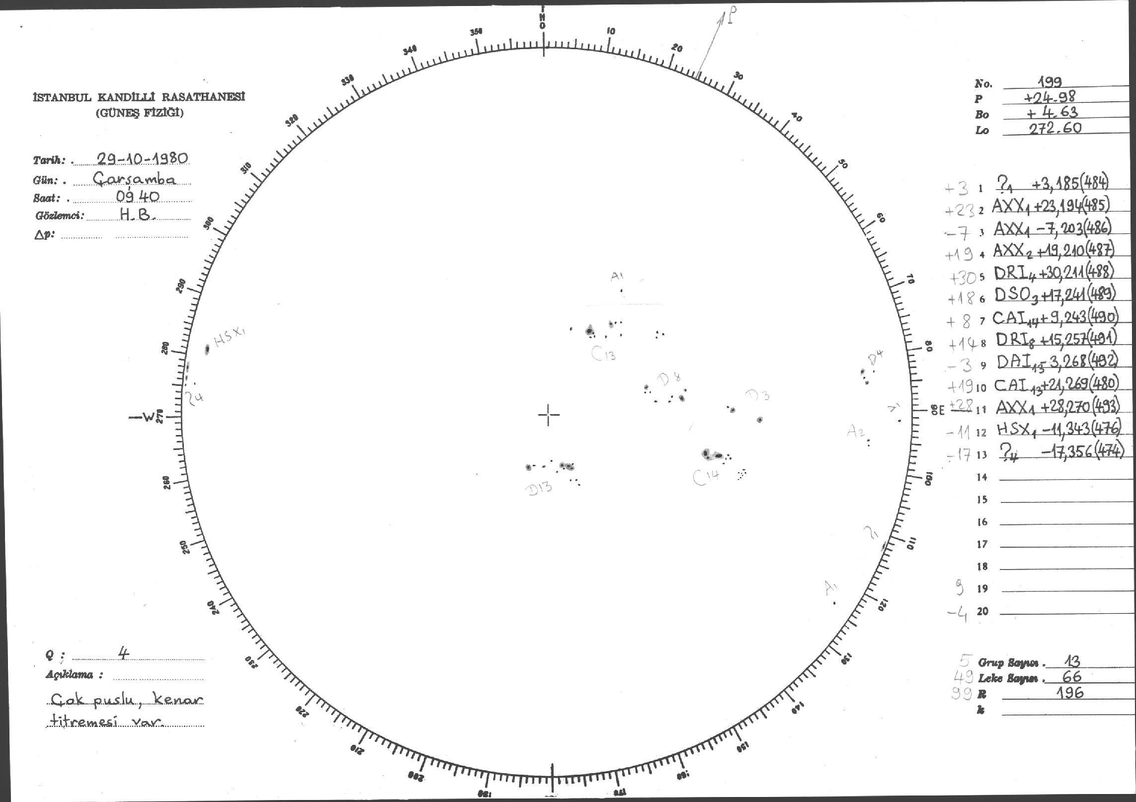 Güneş Lekesi Çizimleri / Kandilli Sunspot Drawings