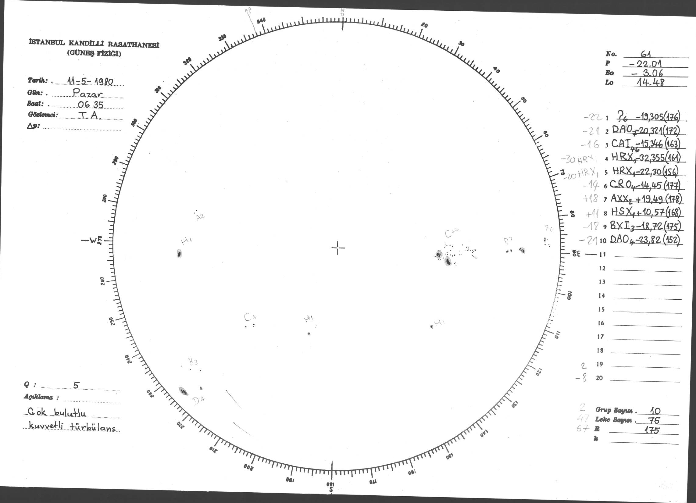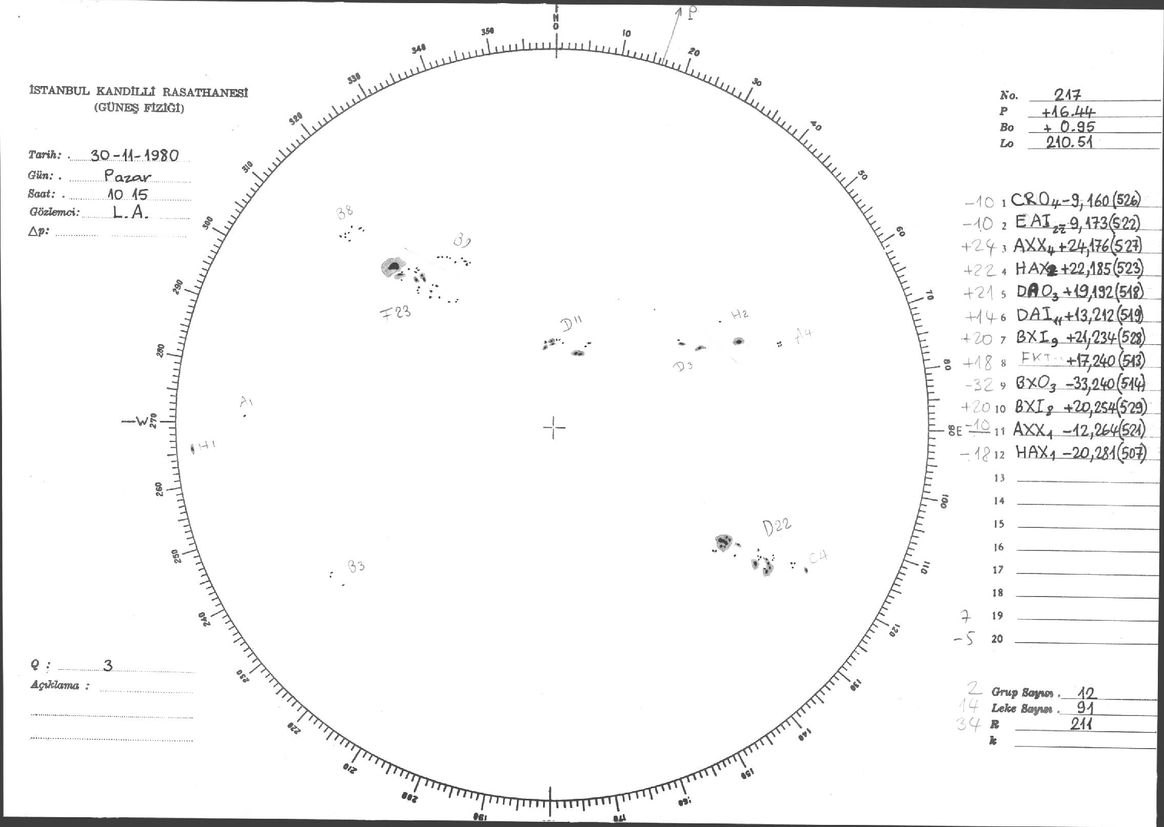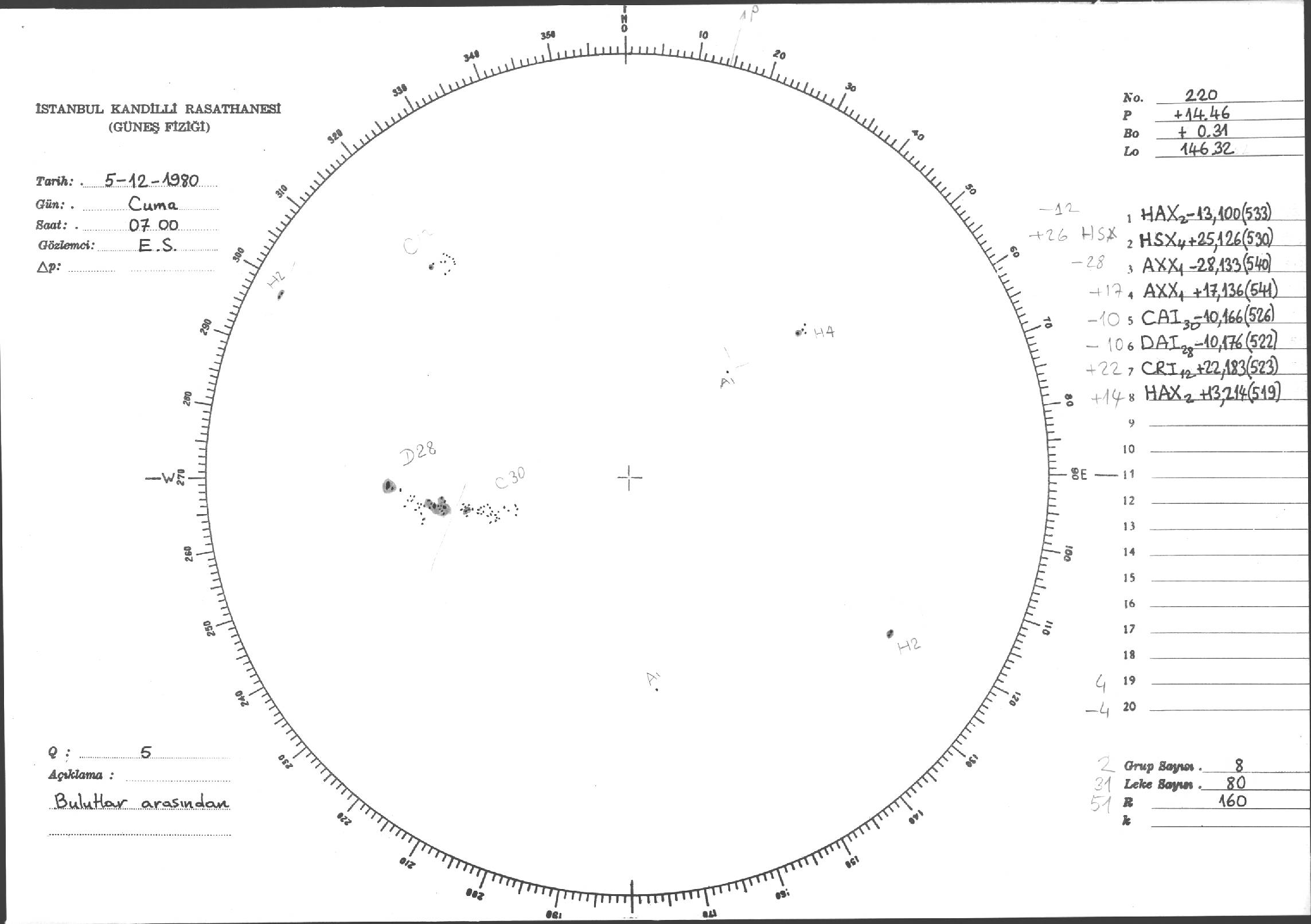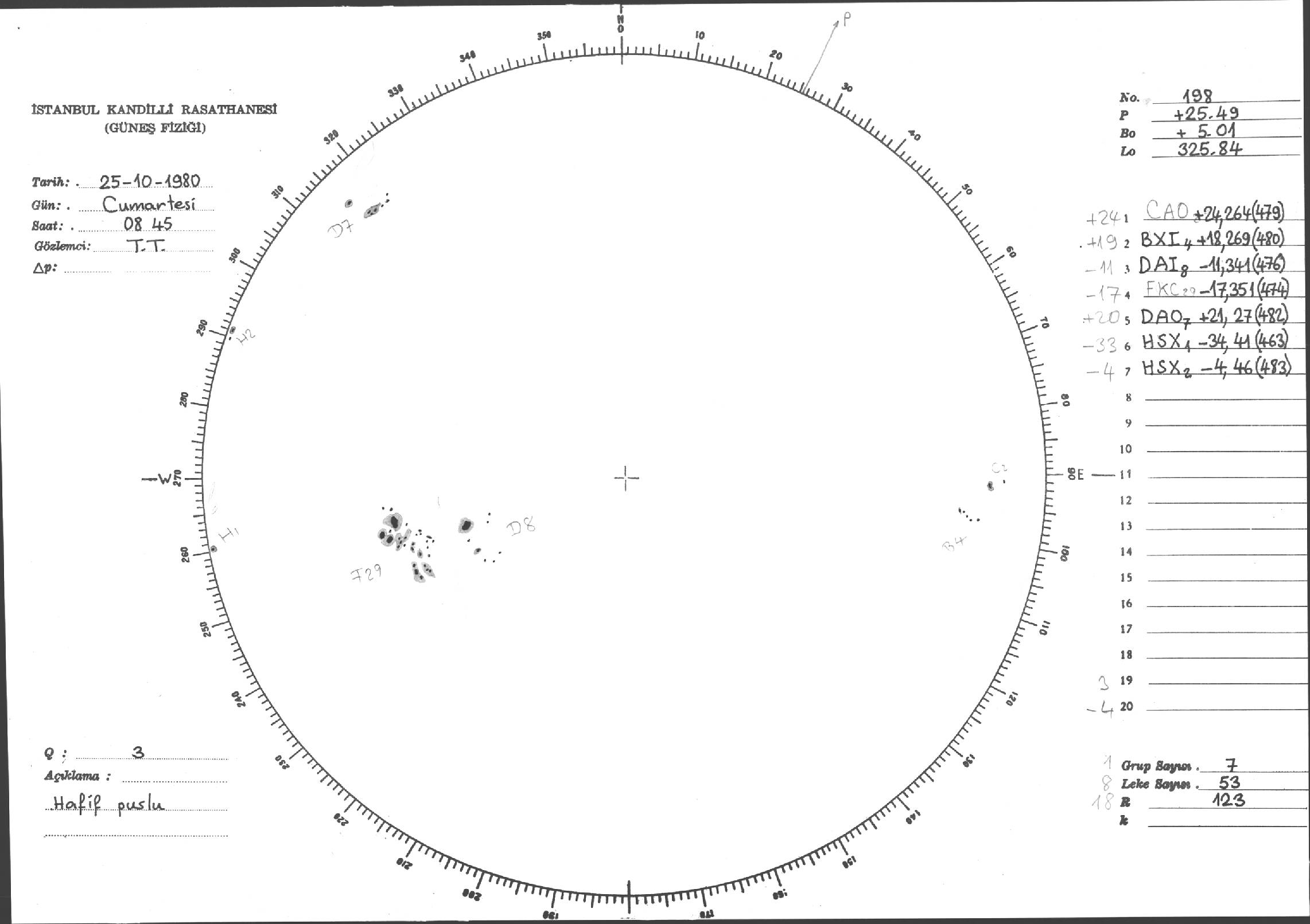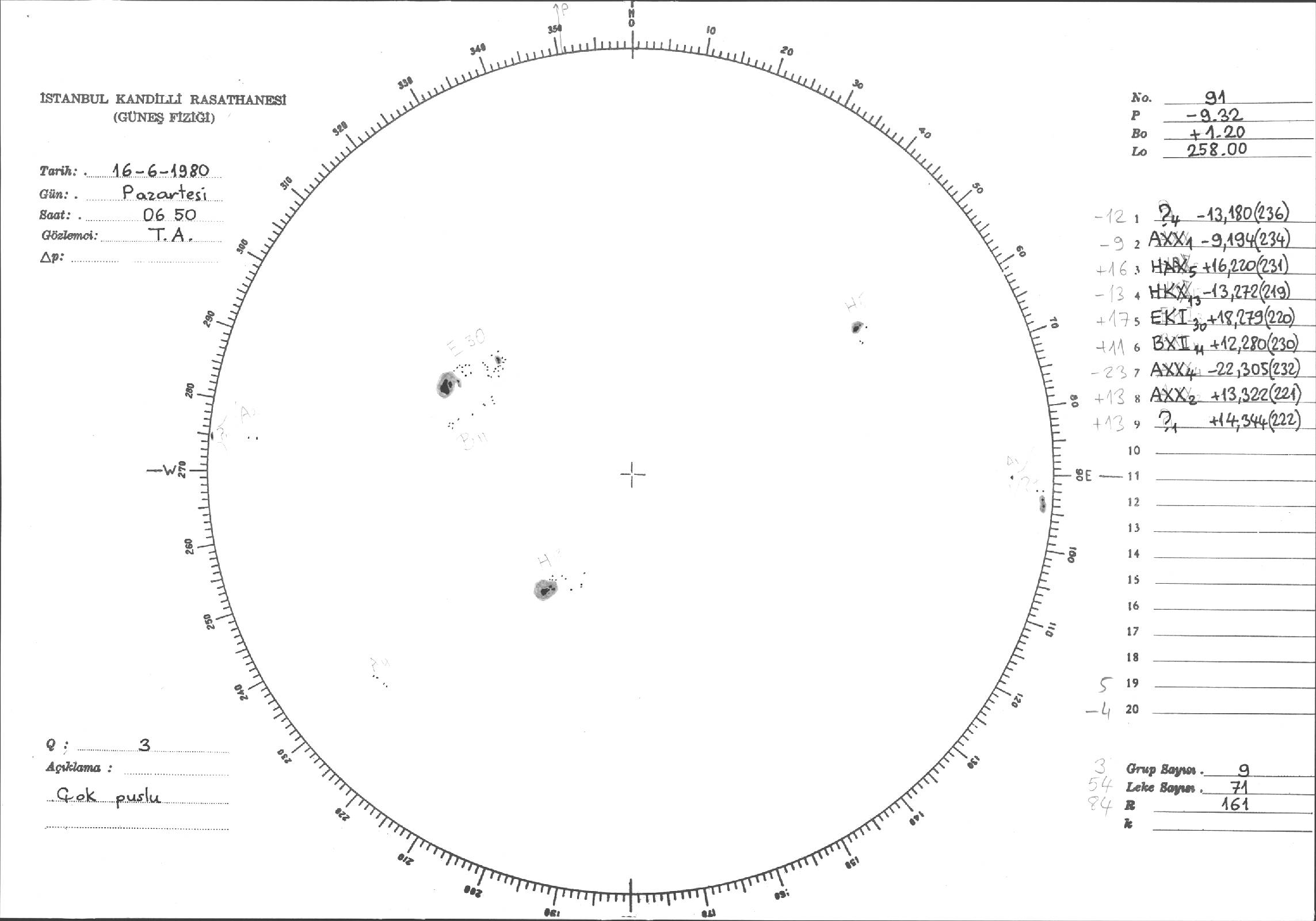 Güneş Lekesi Çizimleri / Kandilli Sunspot Drawings