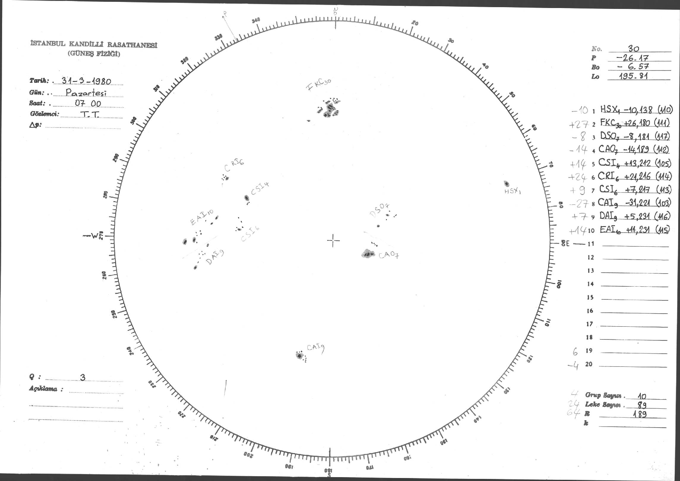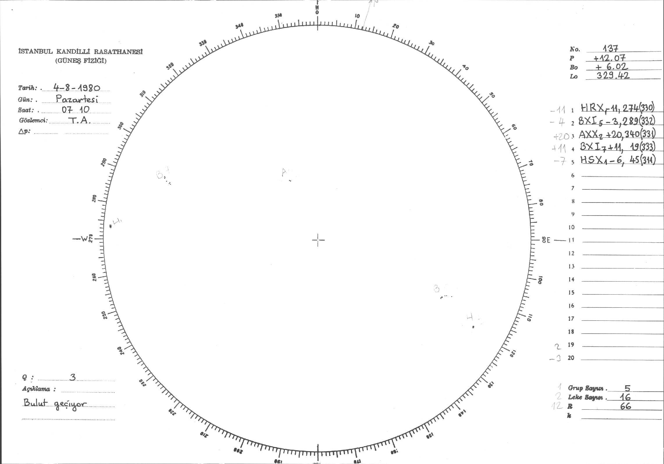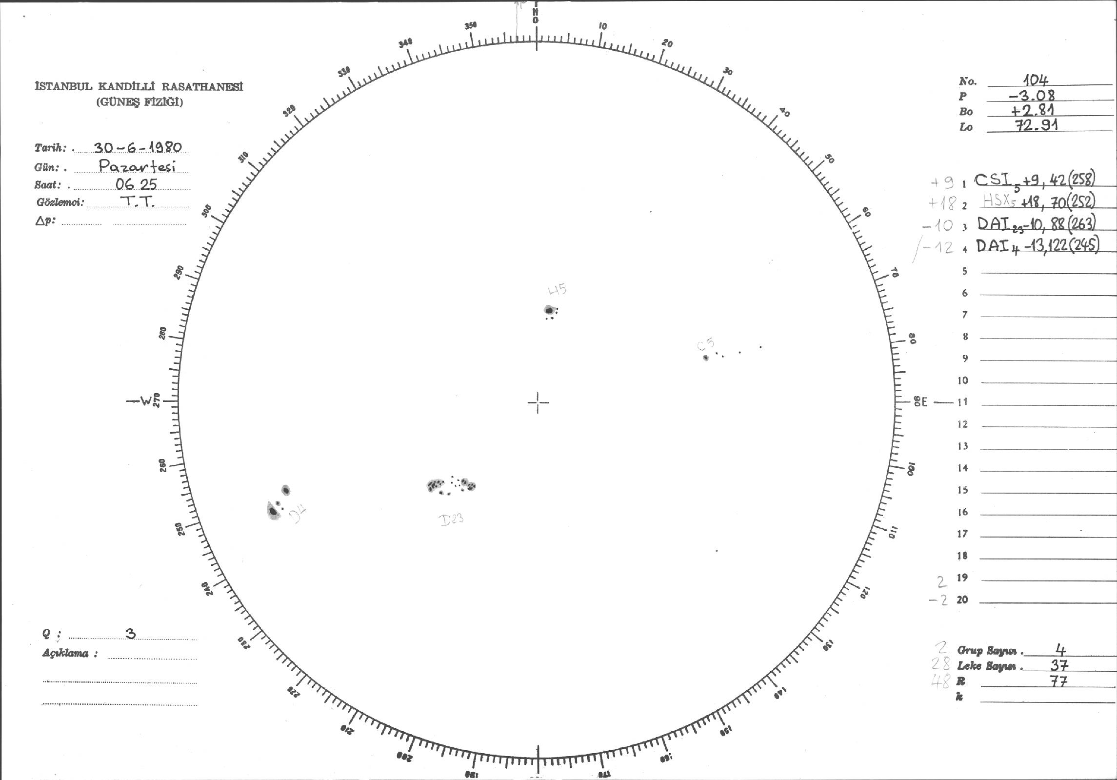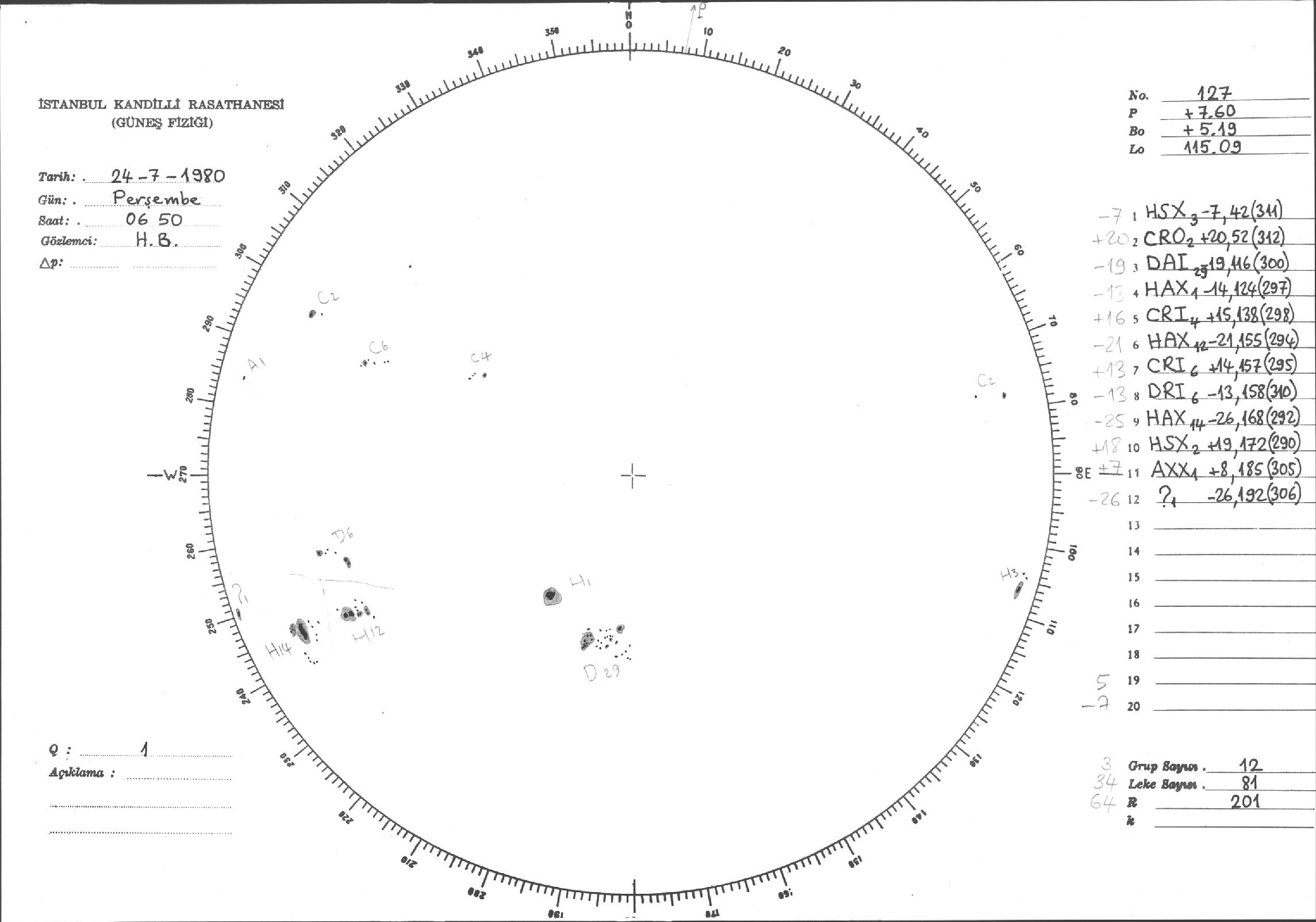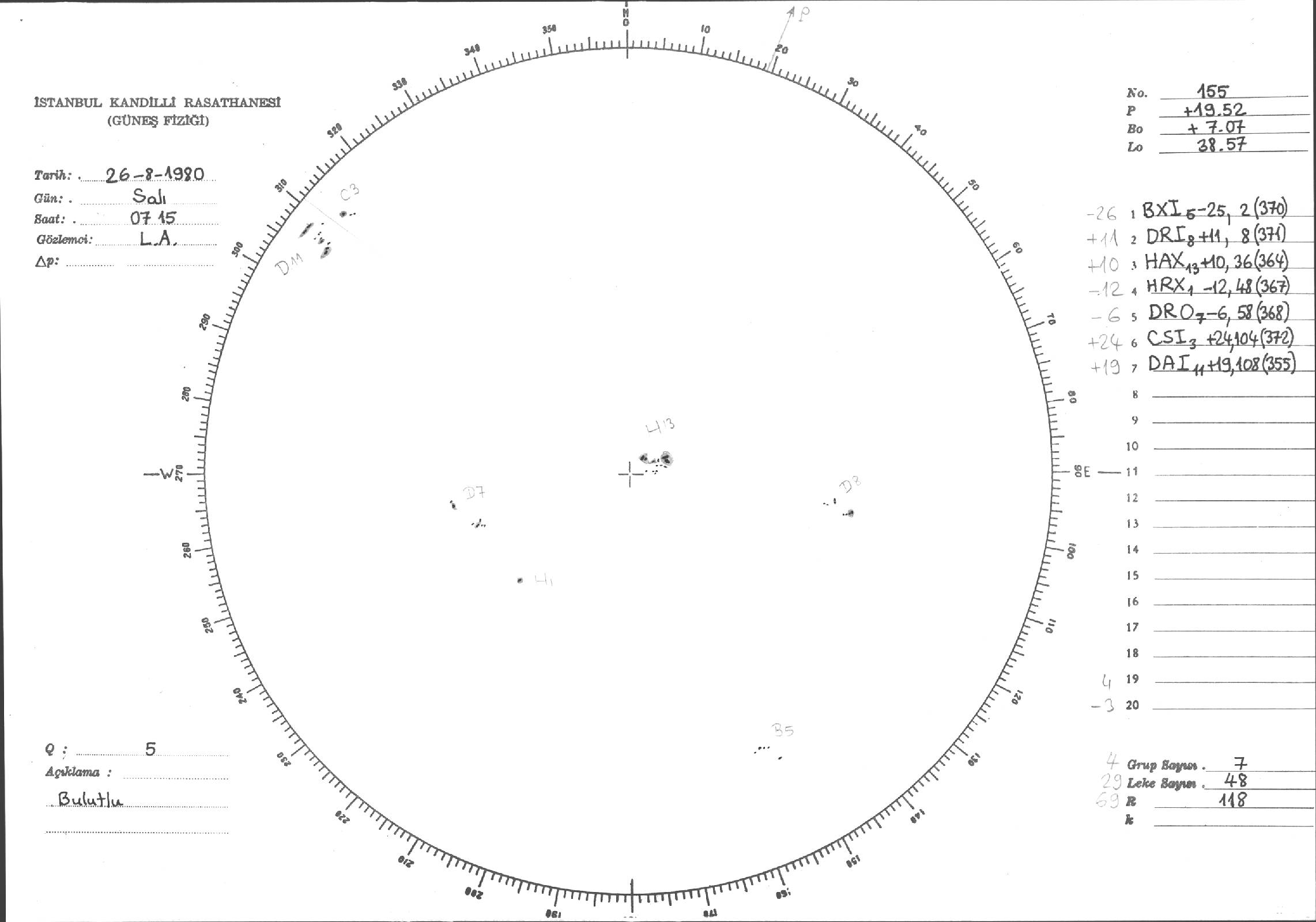 Güneş Lekesi Çizimleri / Kandilli Sunspot Drawings