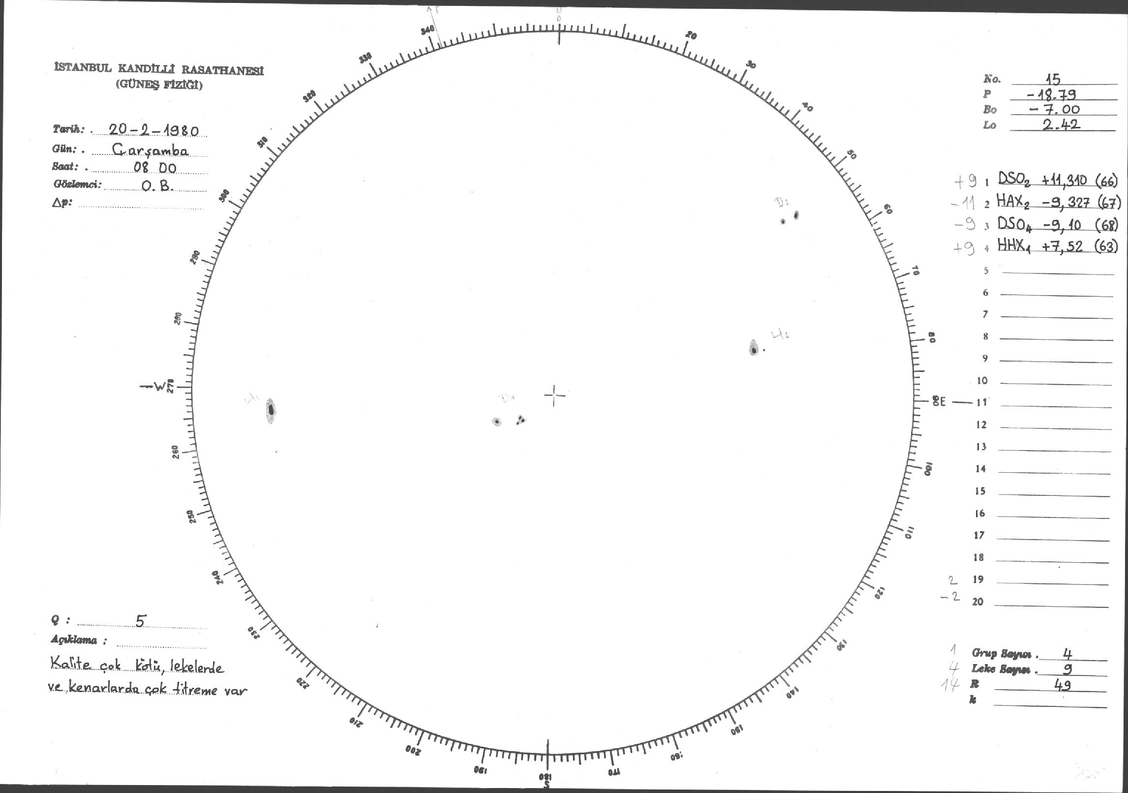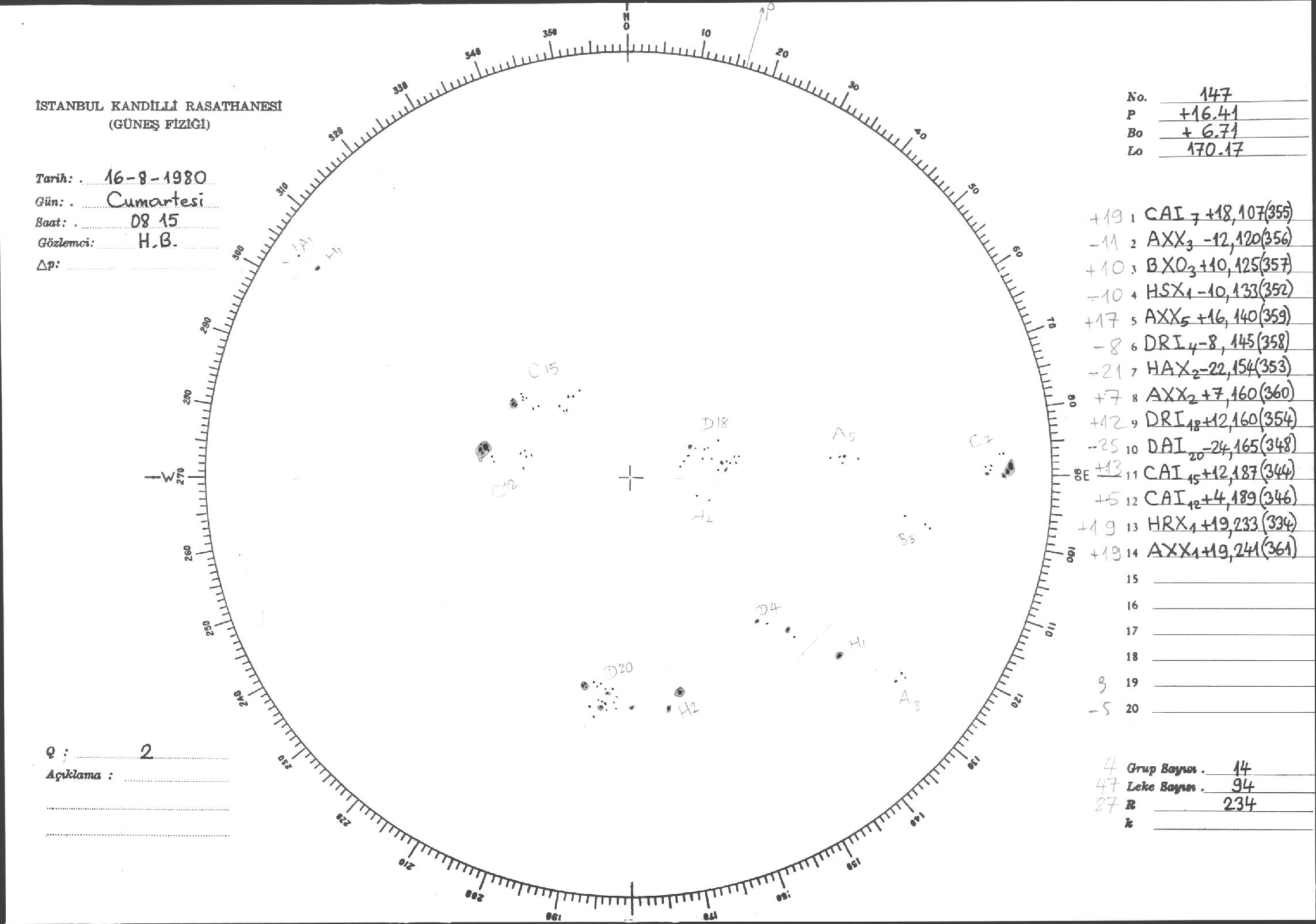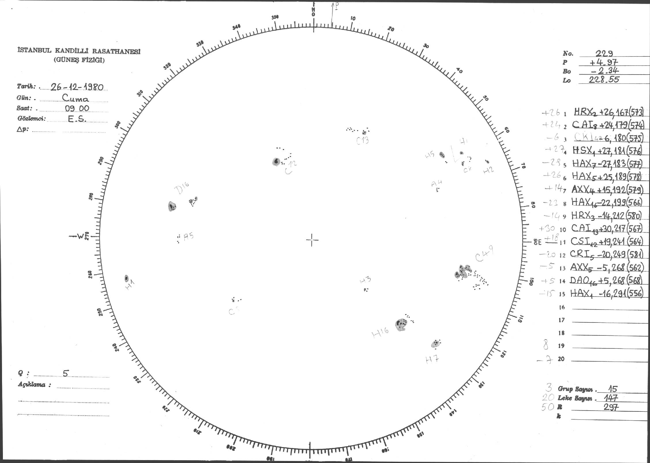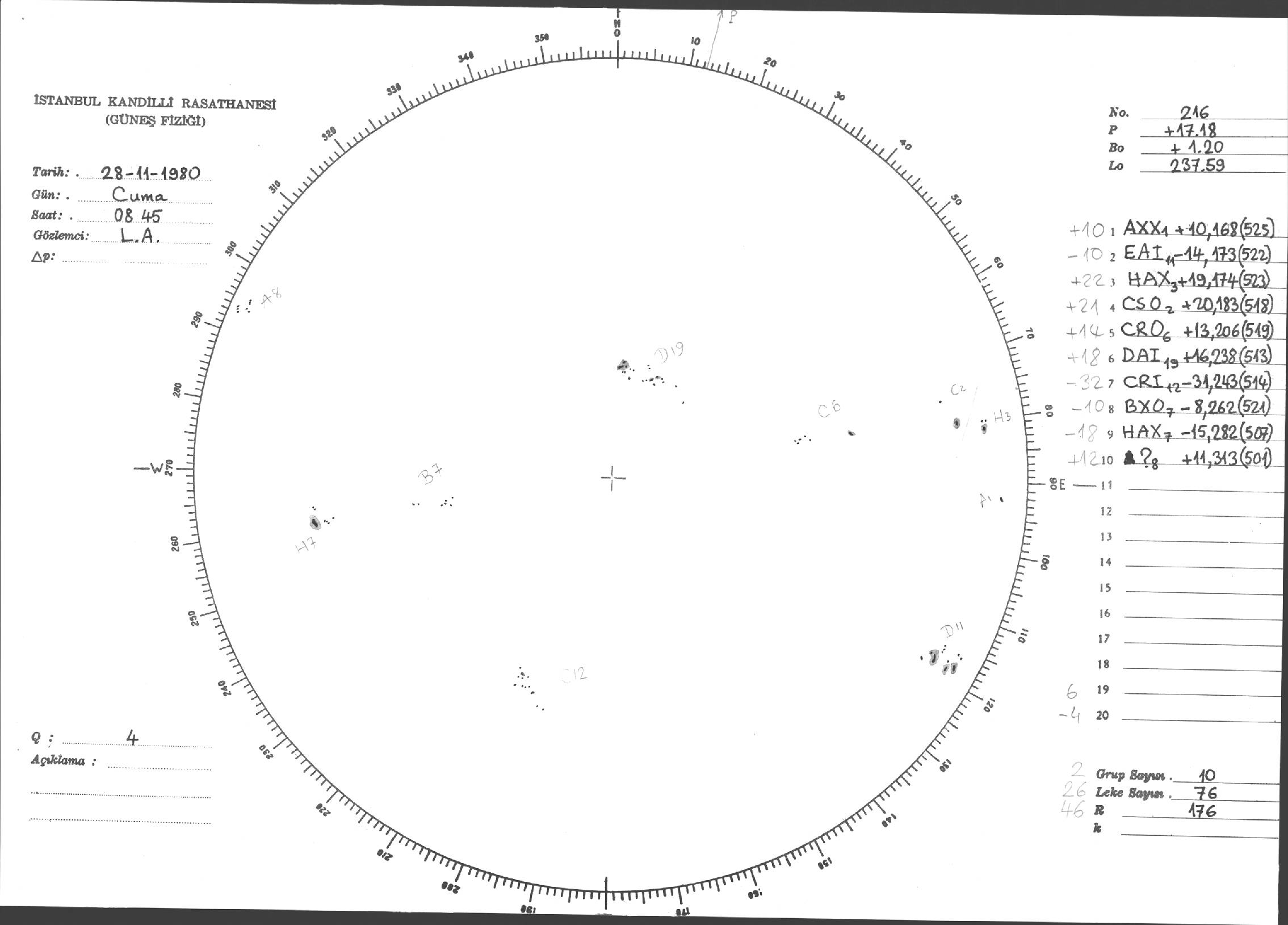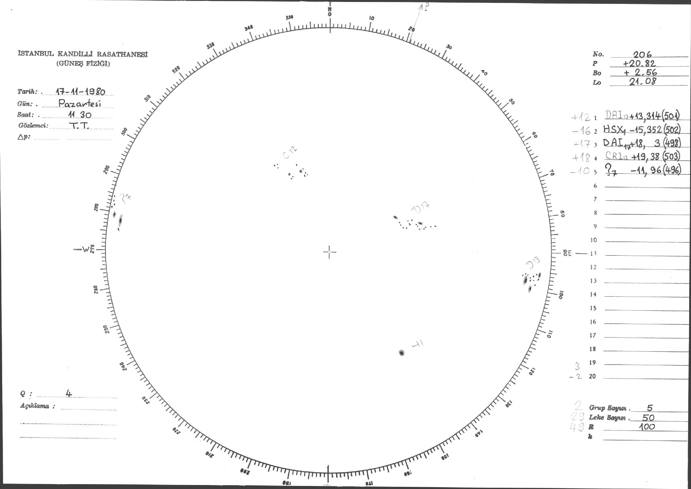 Güneş Lekesi Çizimleri / Kandilli Sunspot Drawings